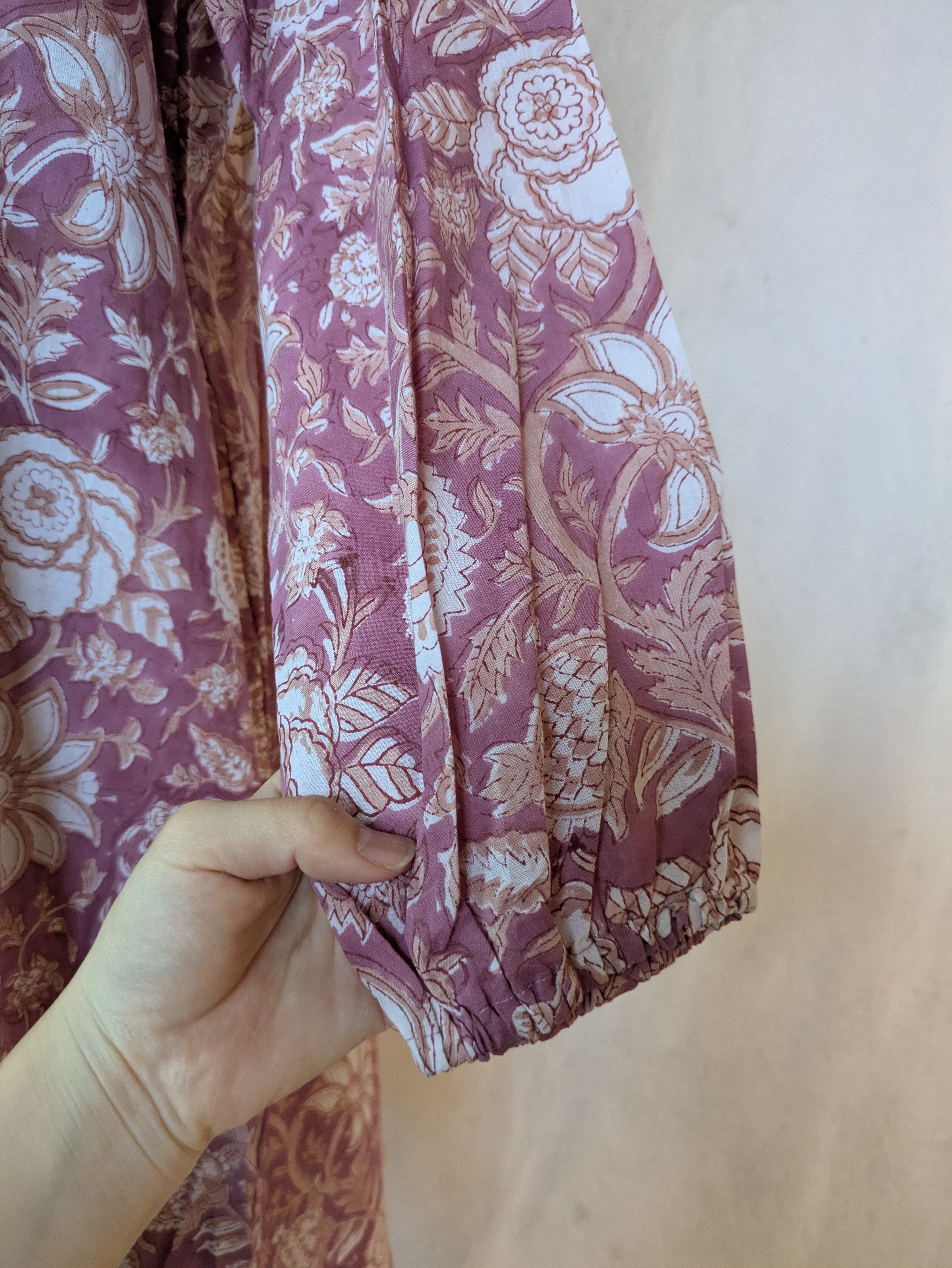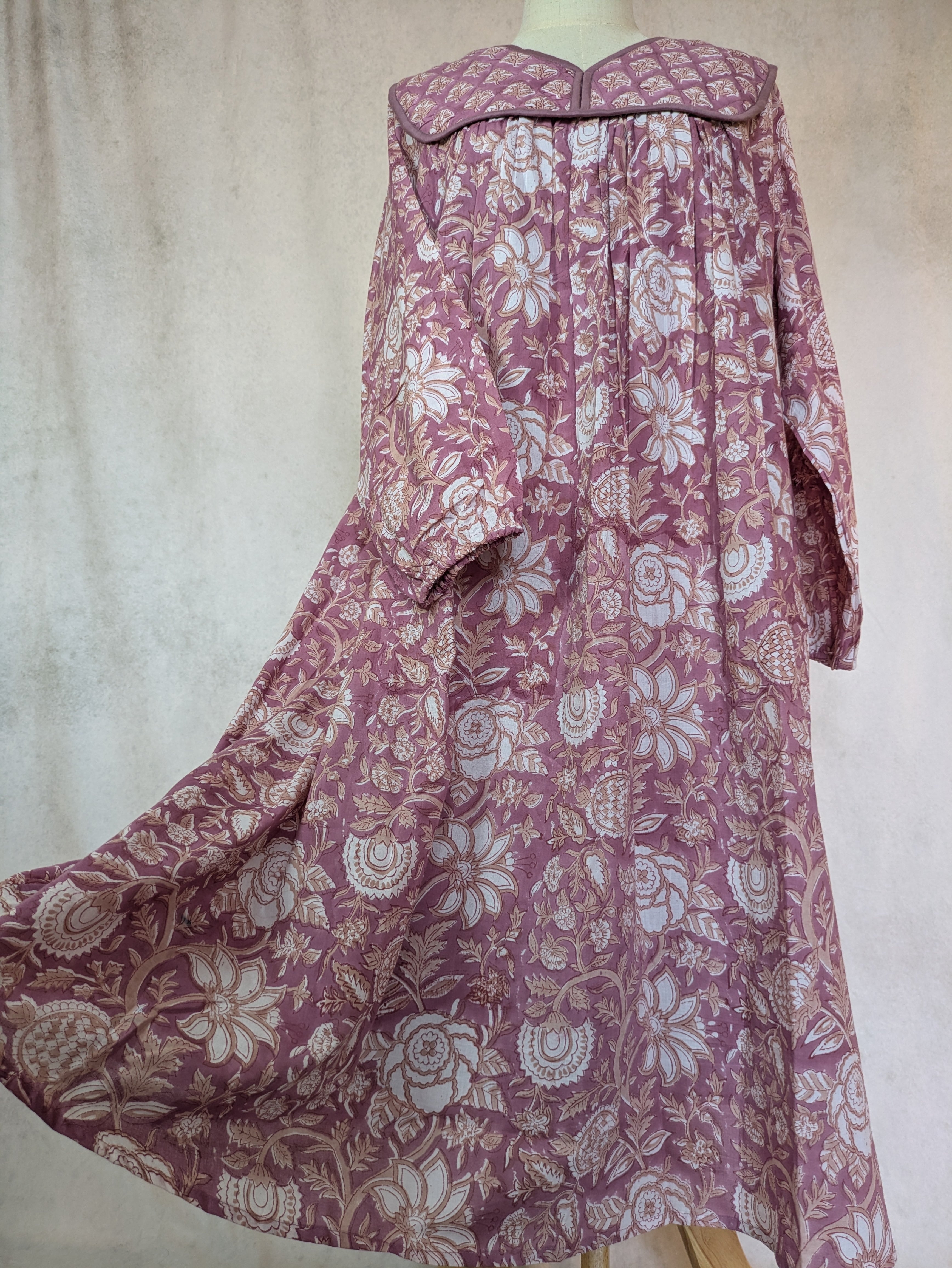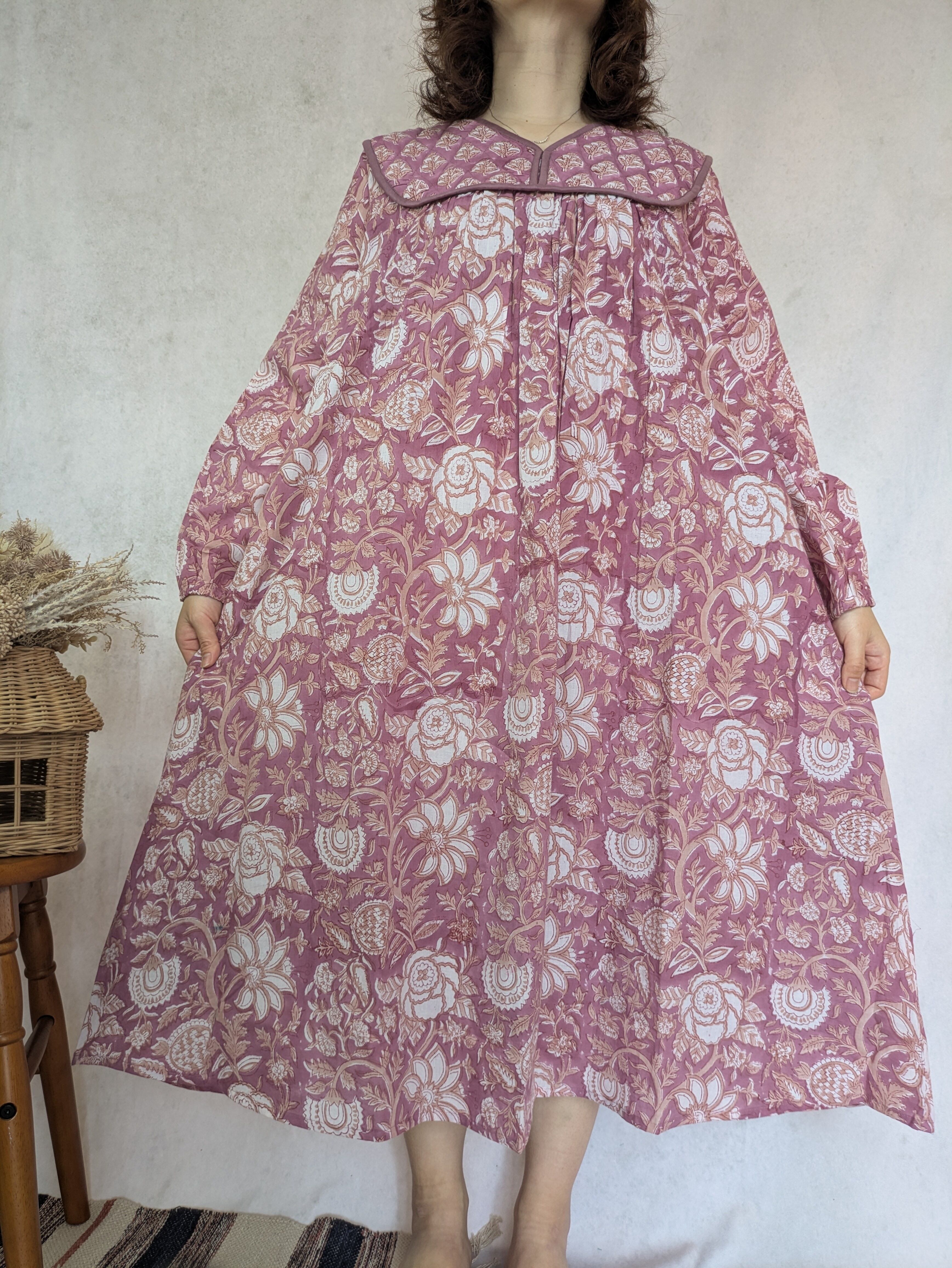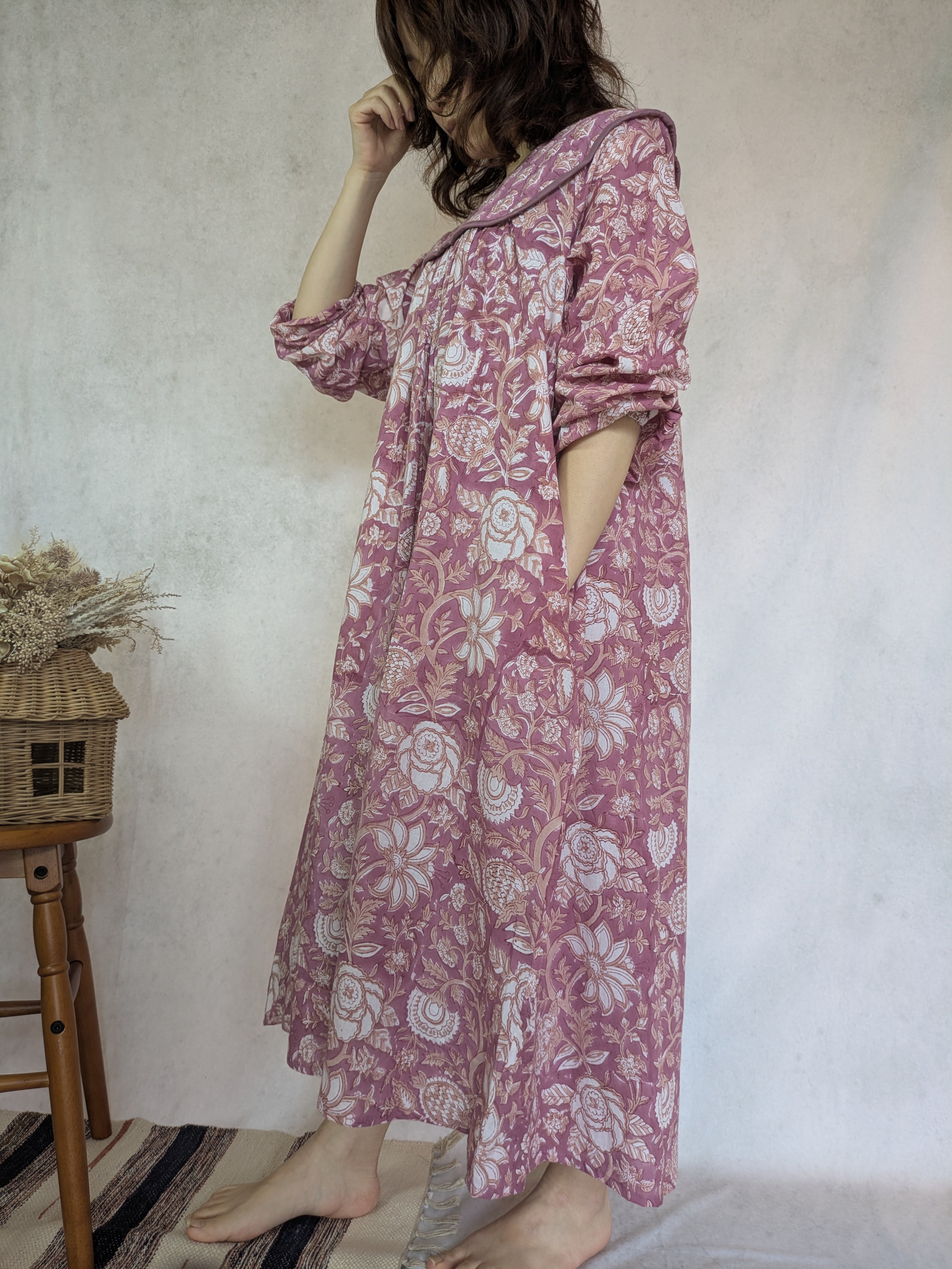 こちらは、インドの伝統工芸であるハンドブロックプリントで作られたワンピースです。