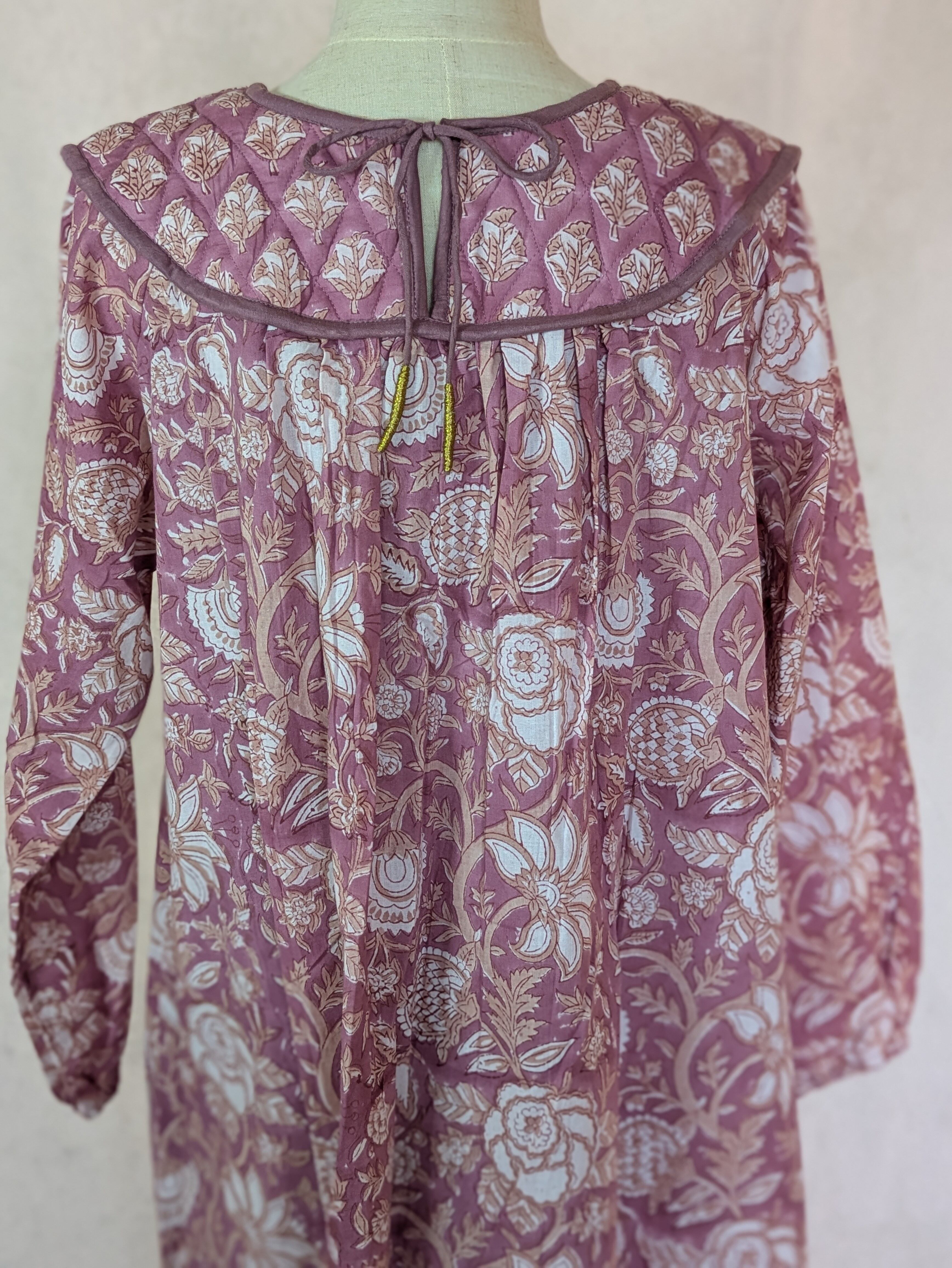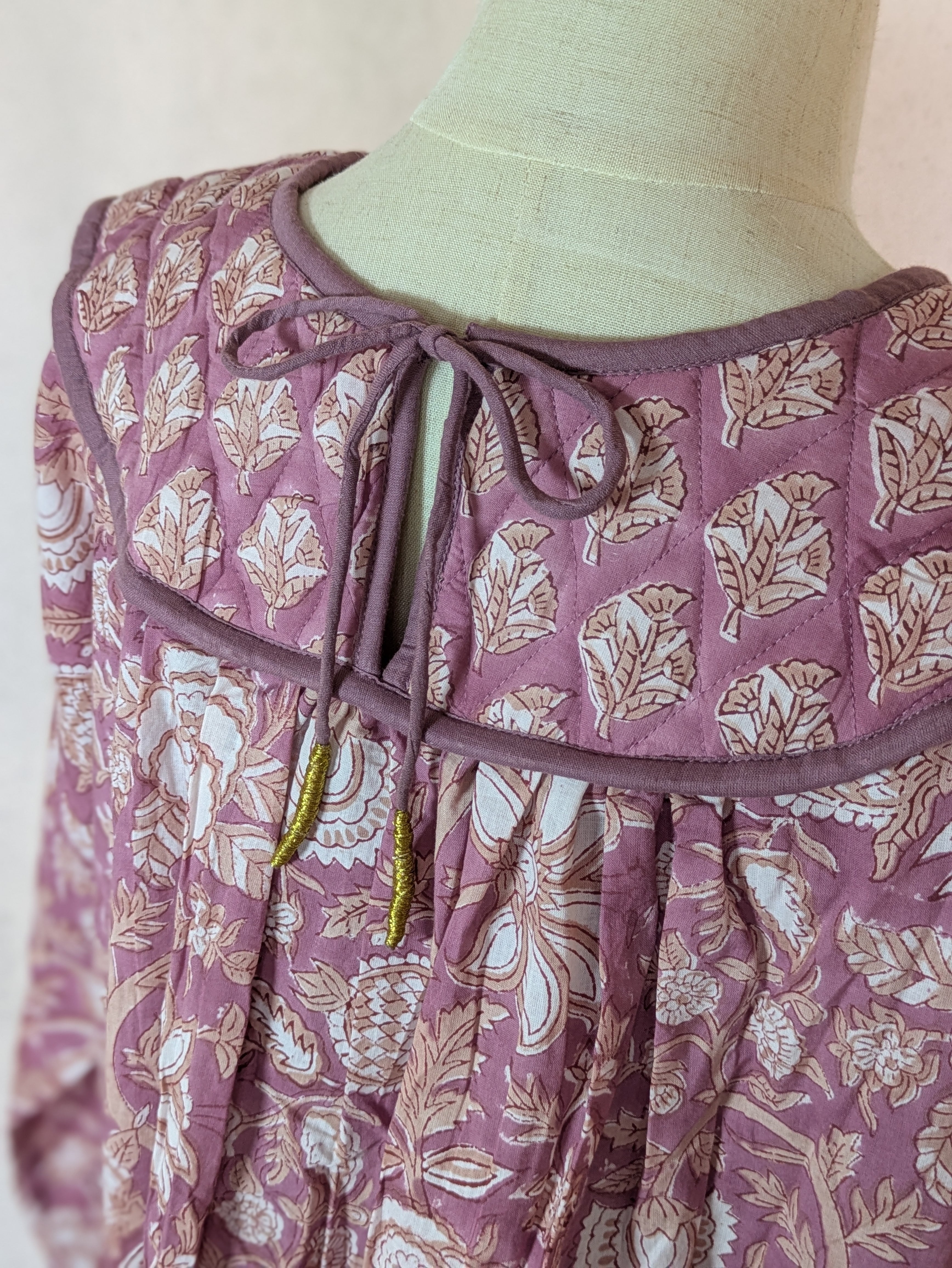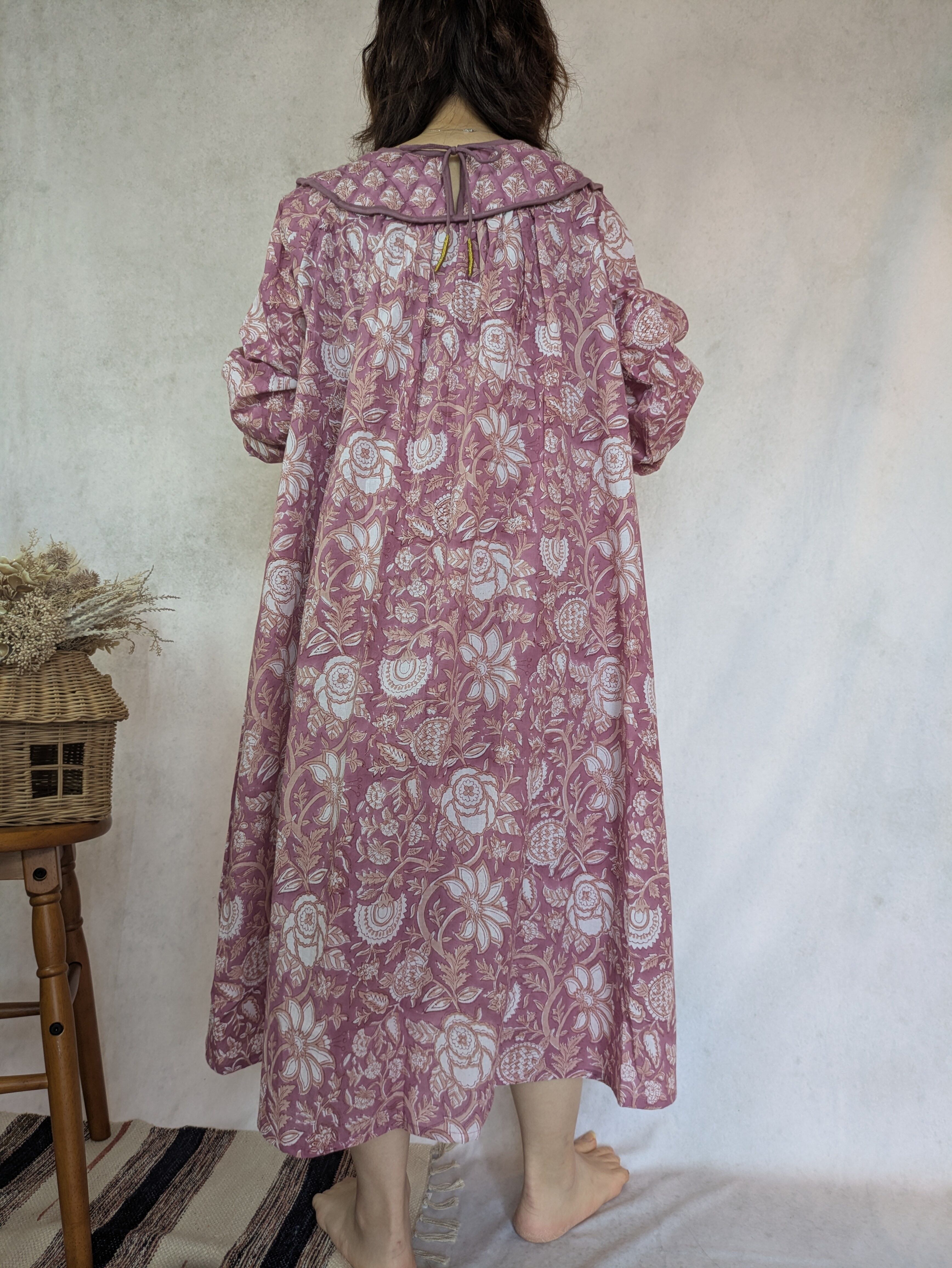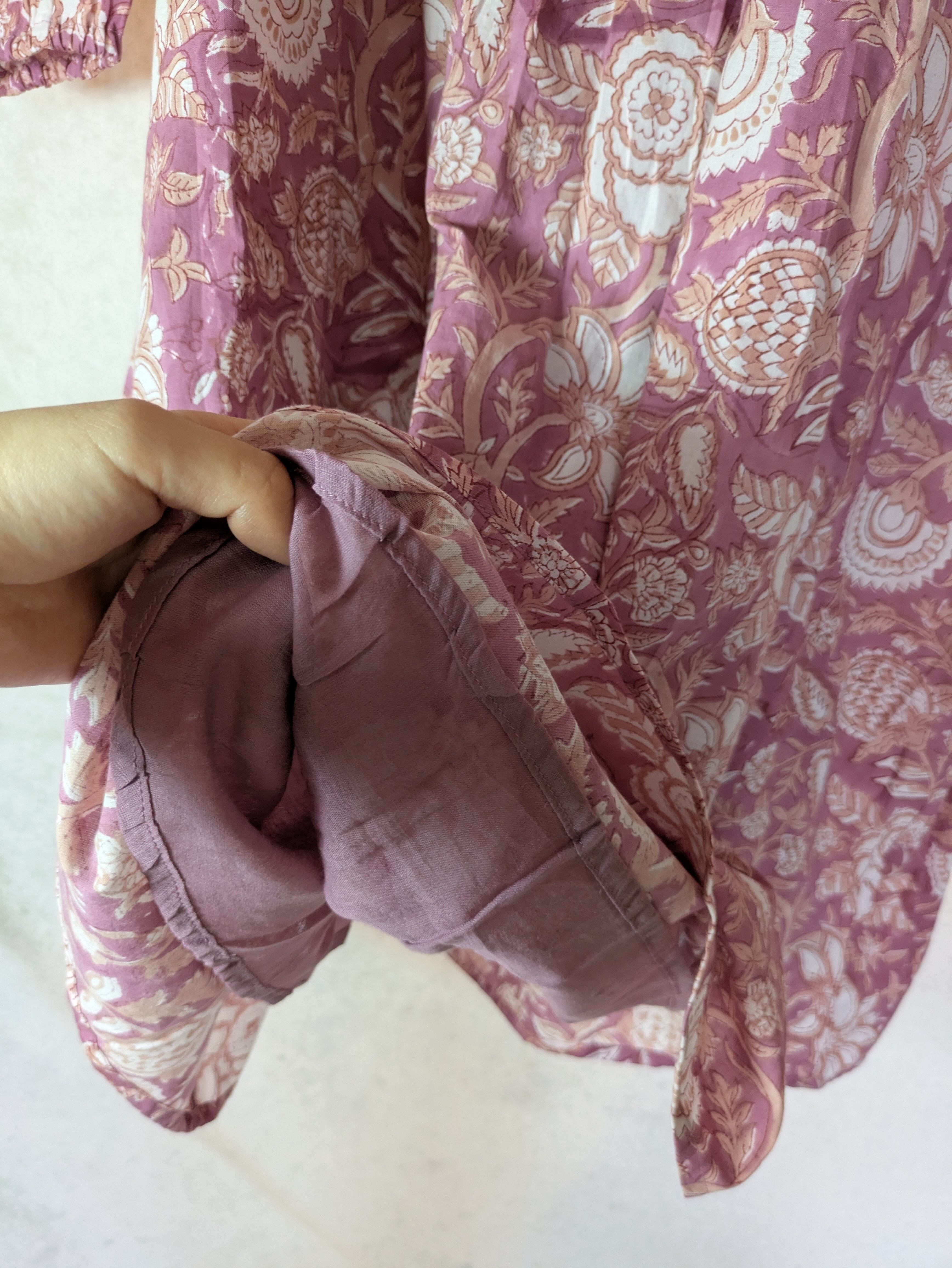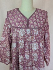 こちらは、インドの伝統工芸であるハンドブロックプリントで作られたワンピースです。