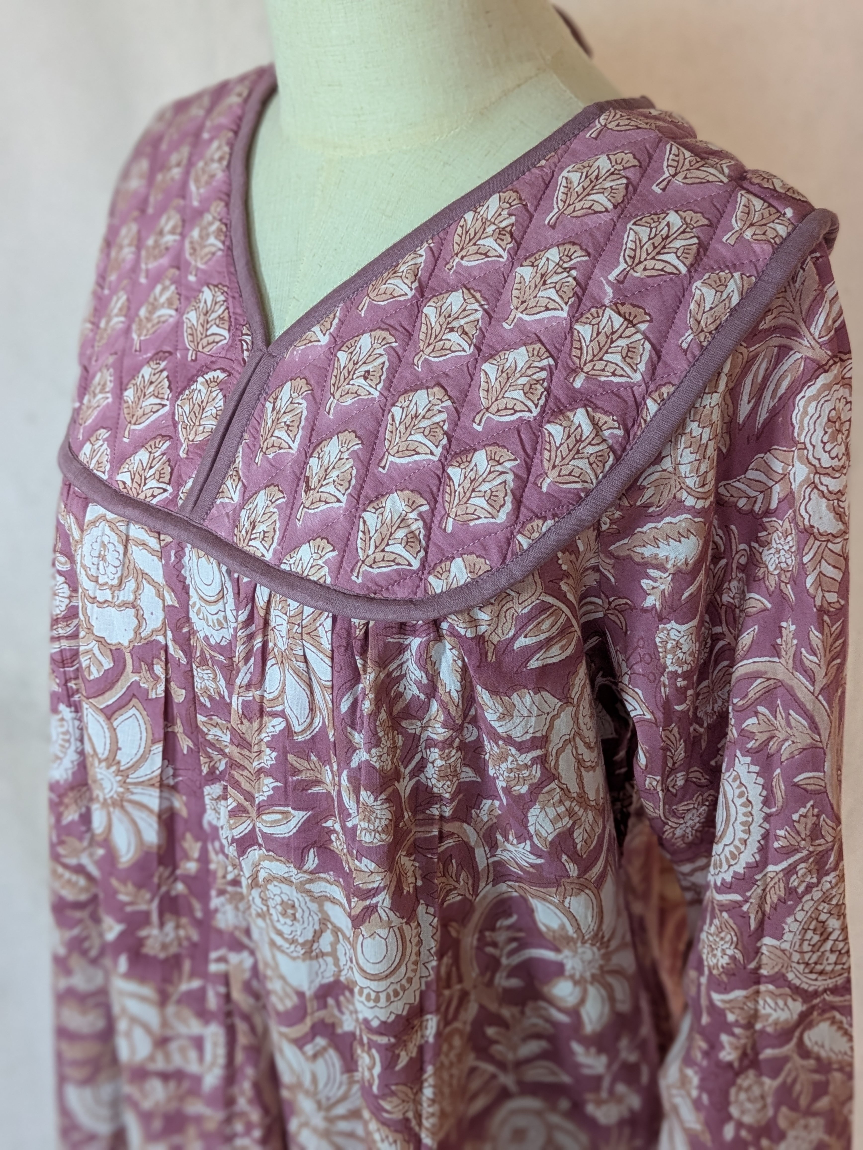 【低身長向け】キルティングヨークワンピース ブロックプリント