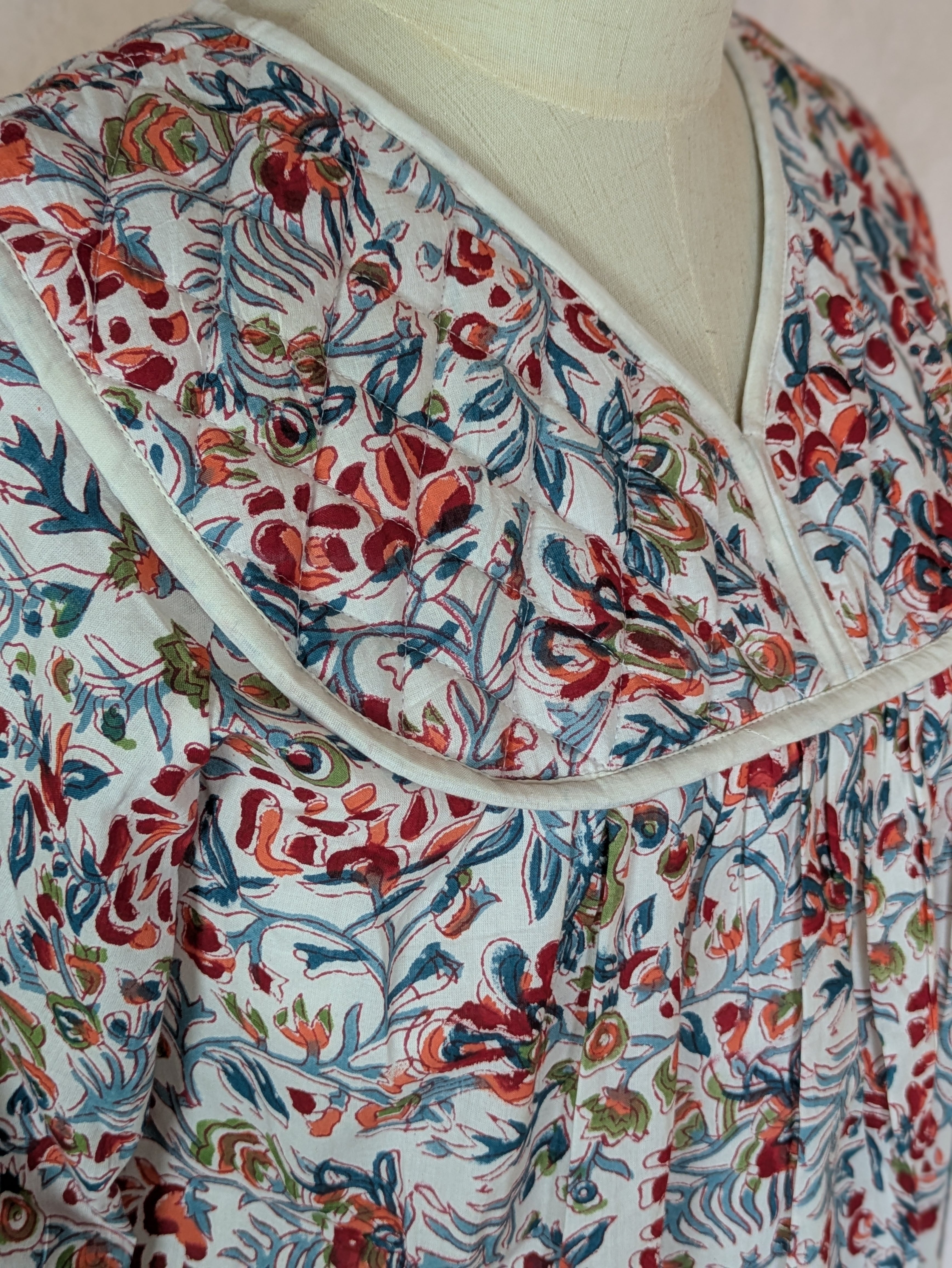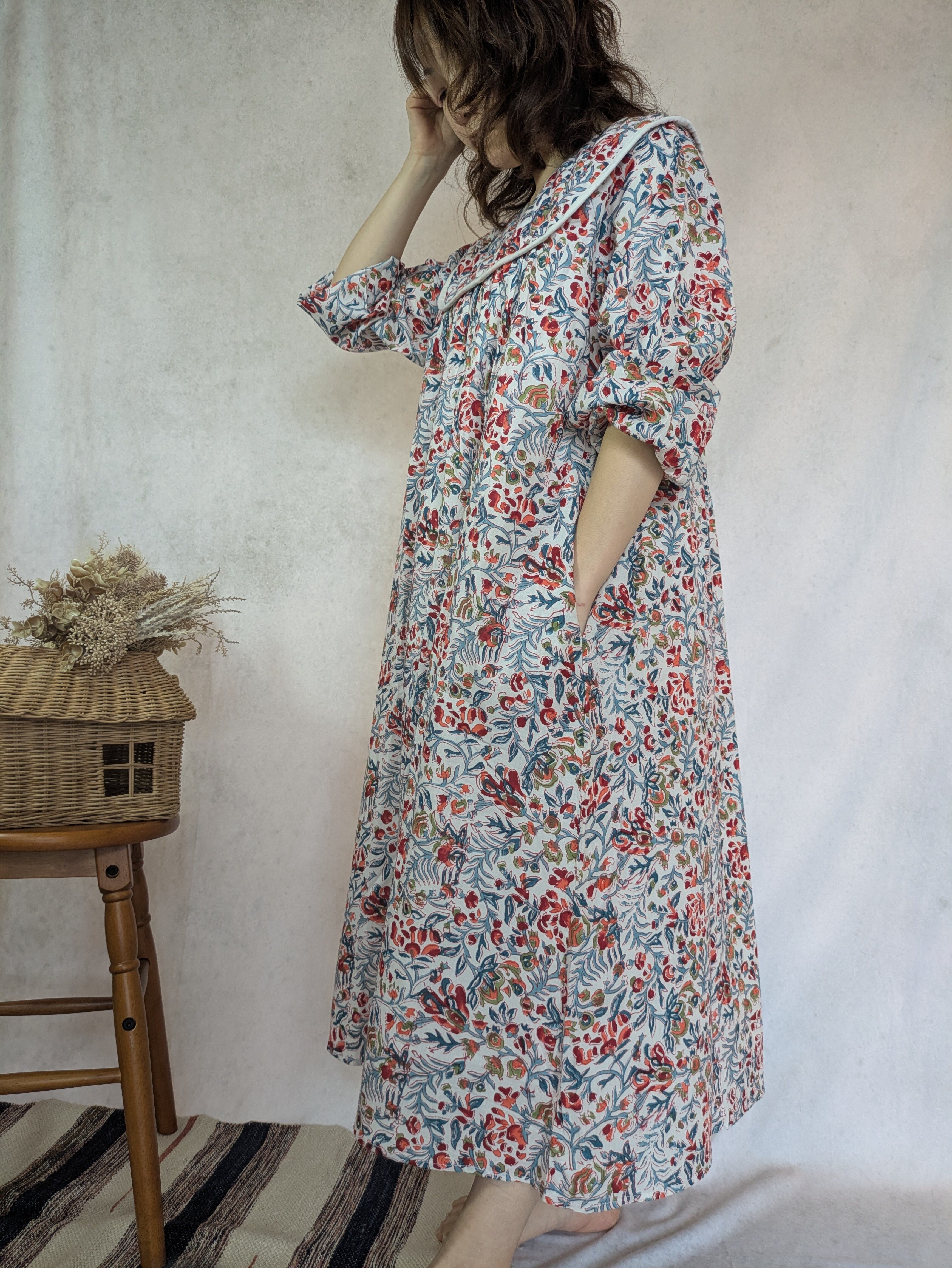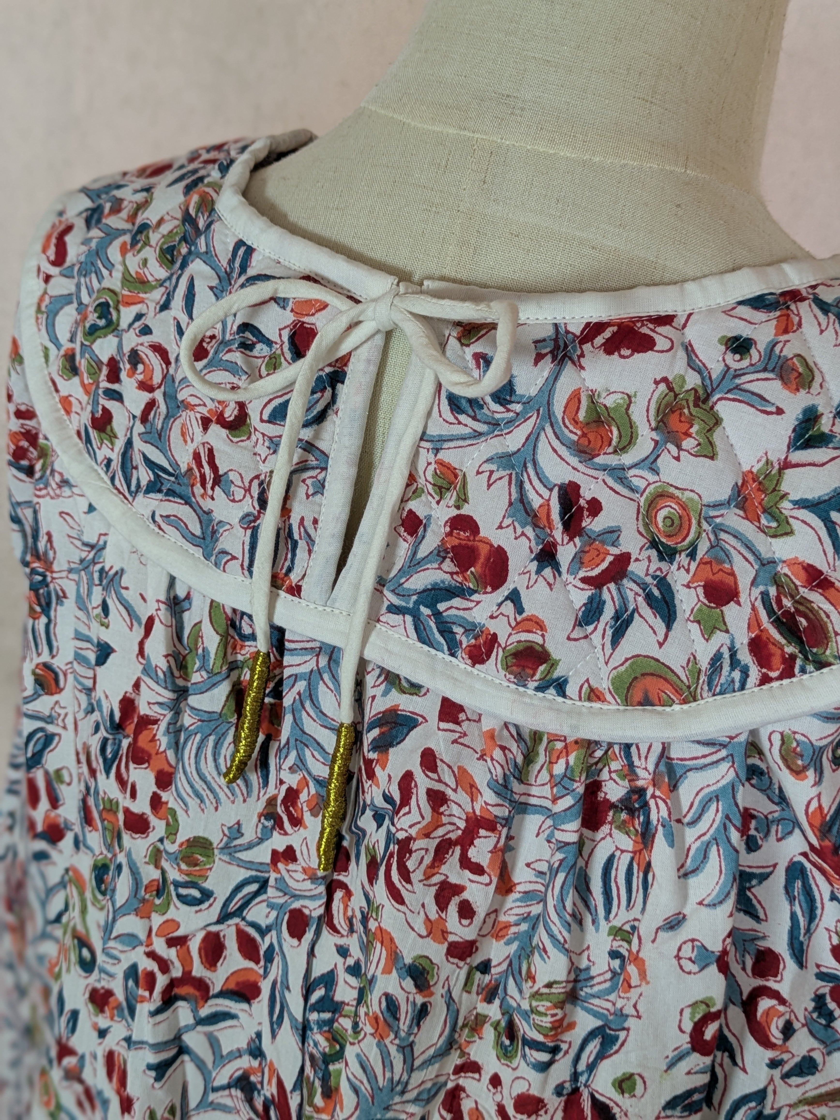 こちらは、インドの伝統工芸であるハンドブロックプリントで作られたワンピースです。