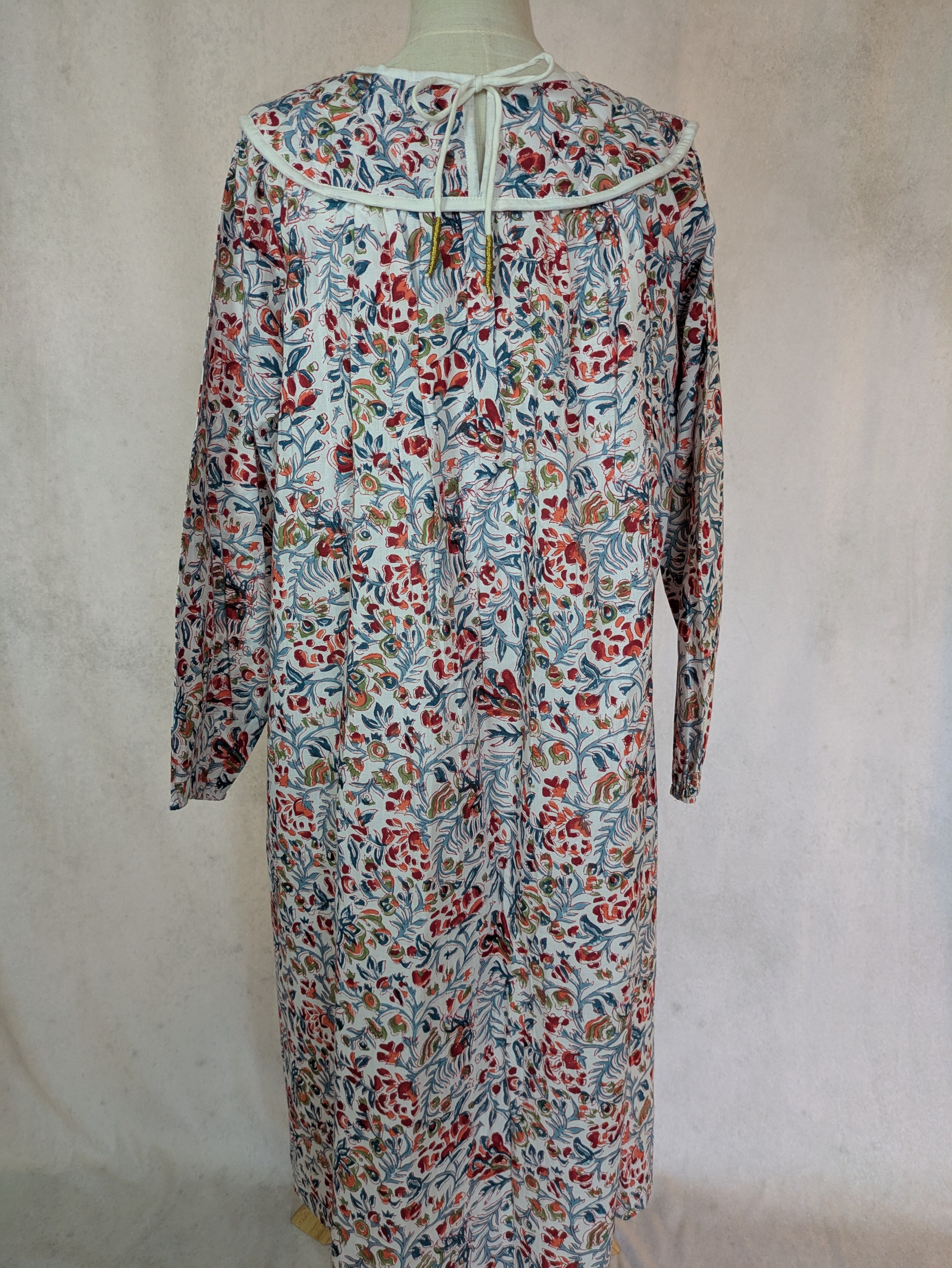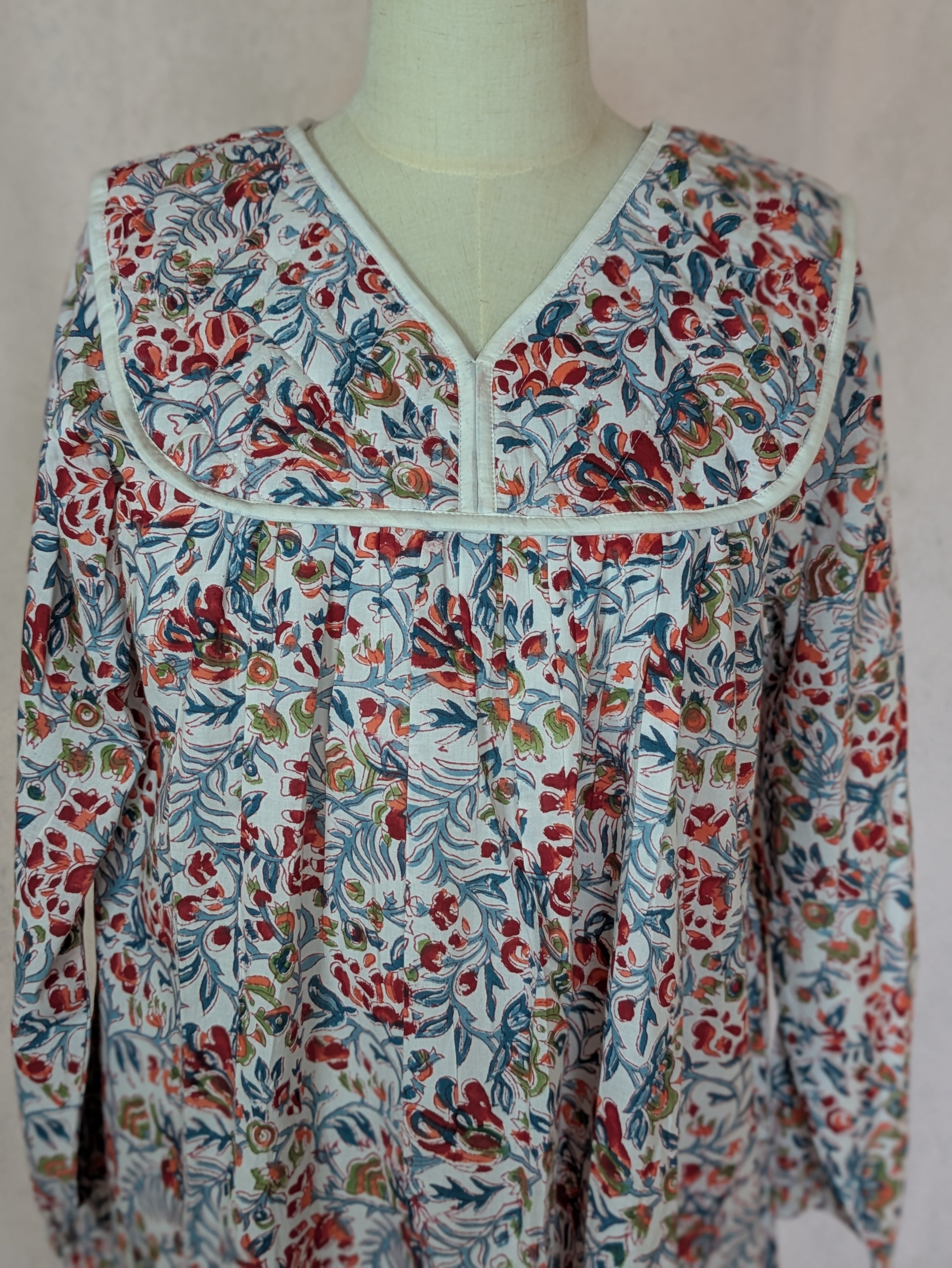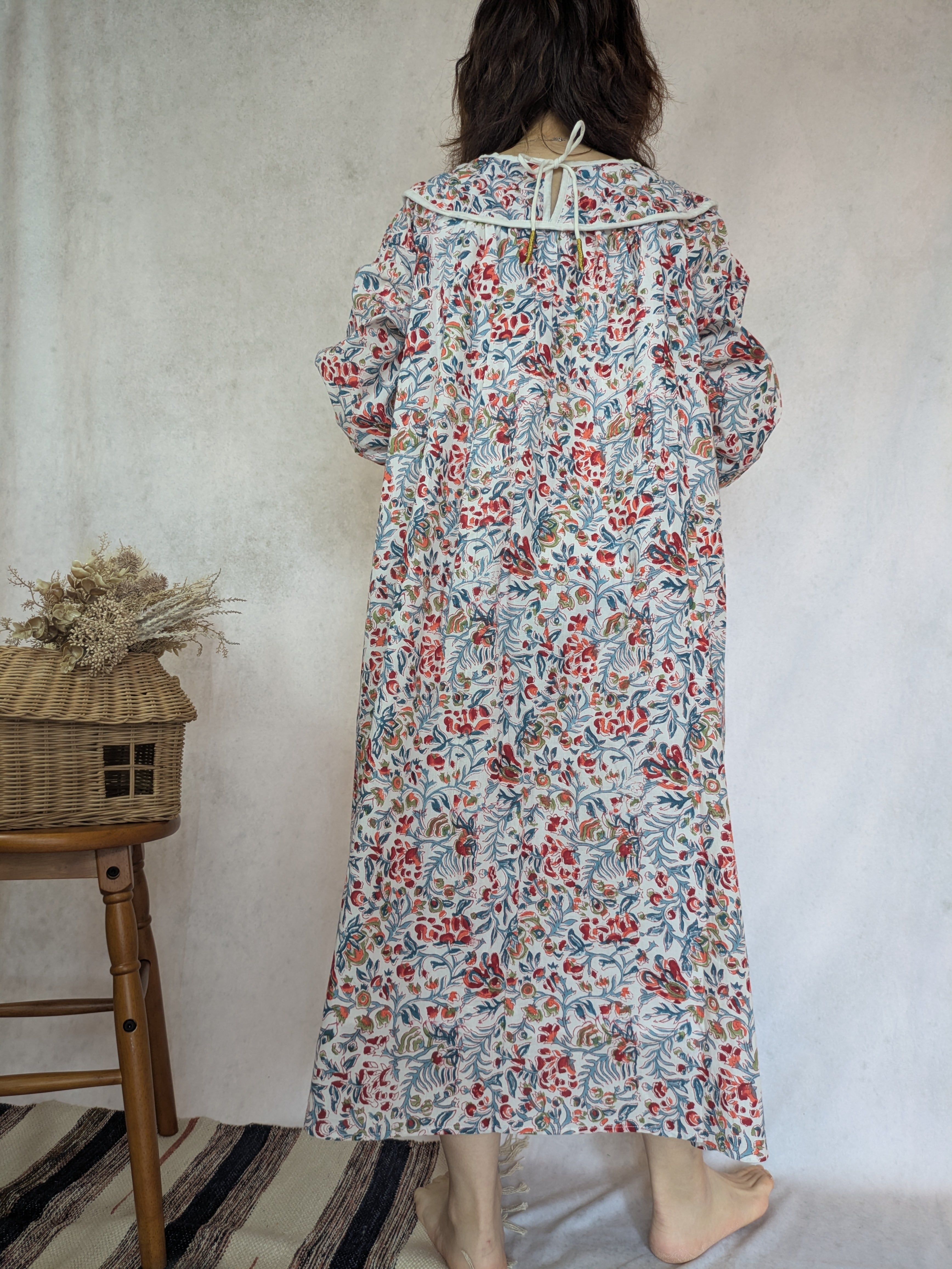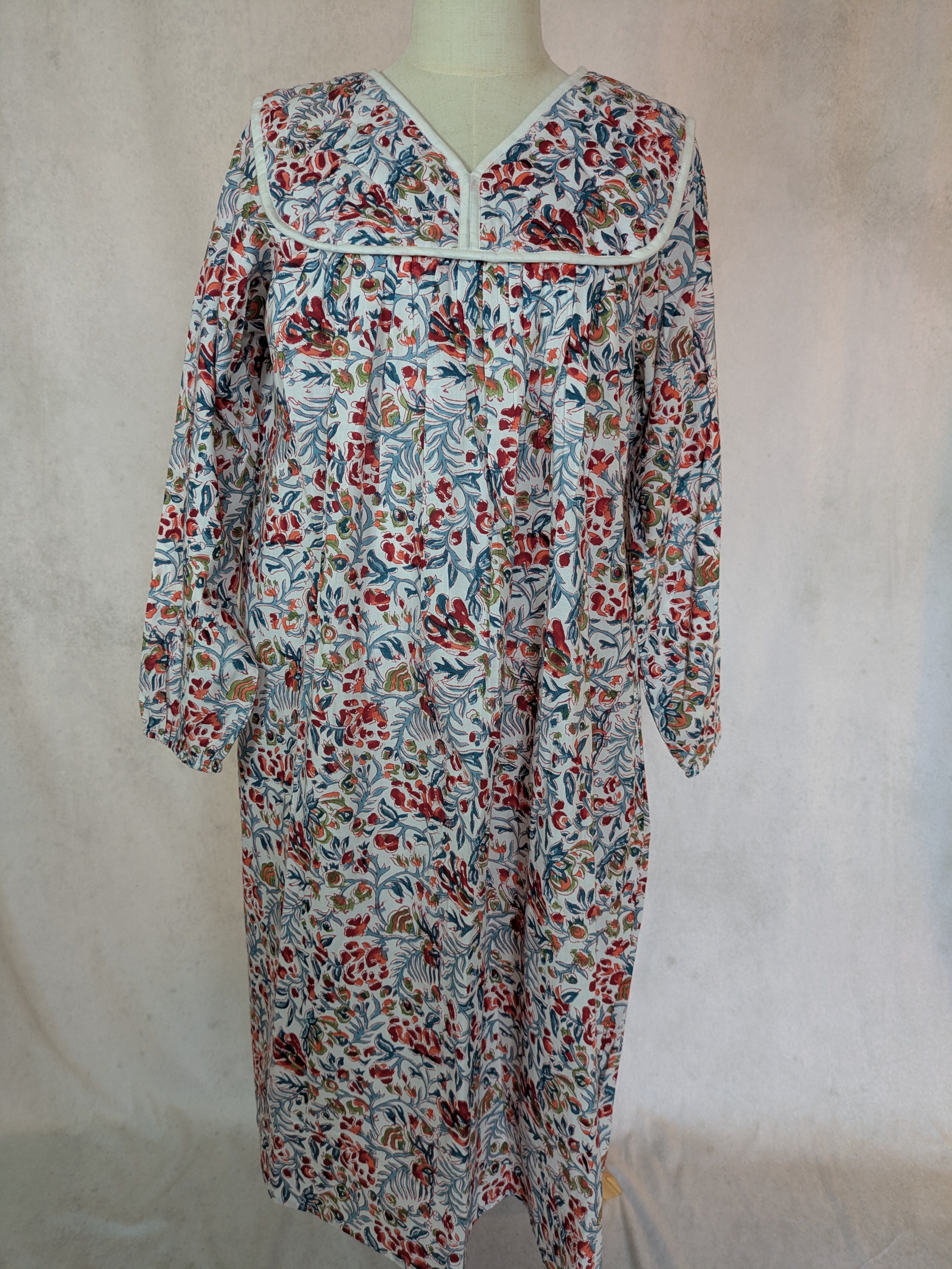 こちらは、インドの伝統工芸であるハンドブロックプリントで作られたワンピースです。
