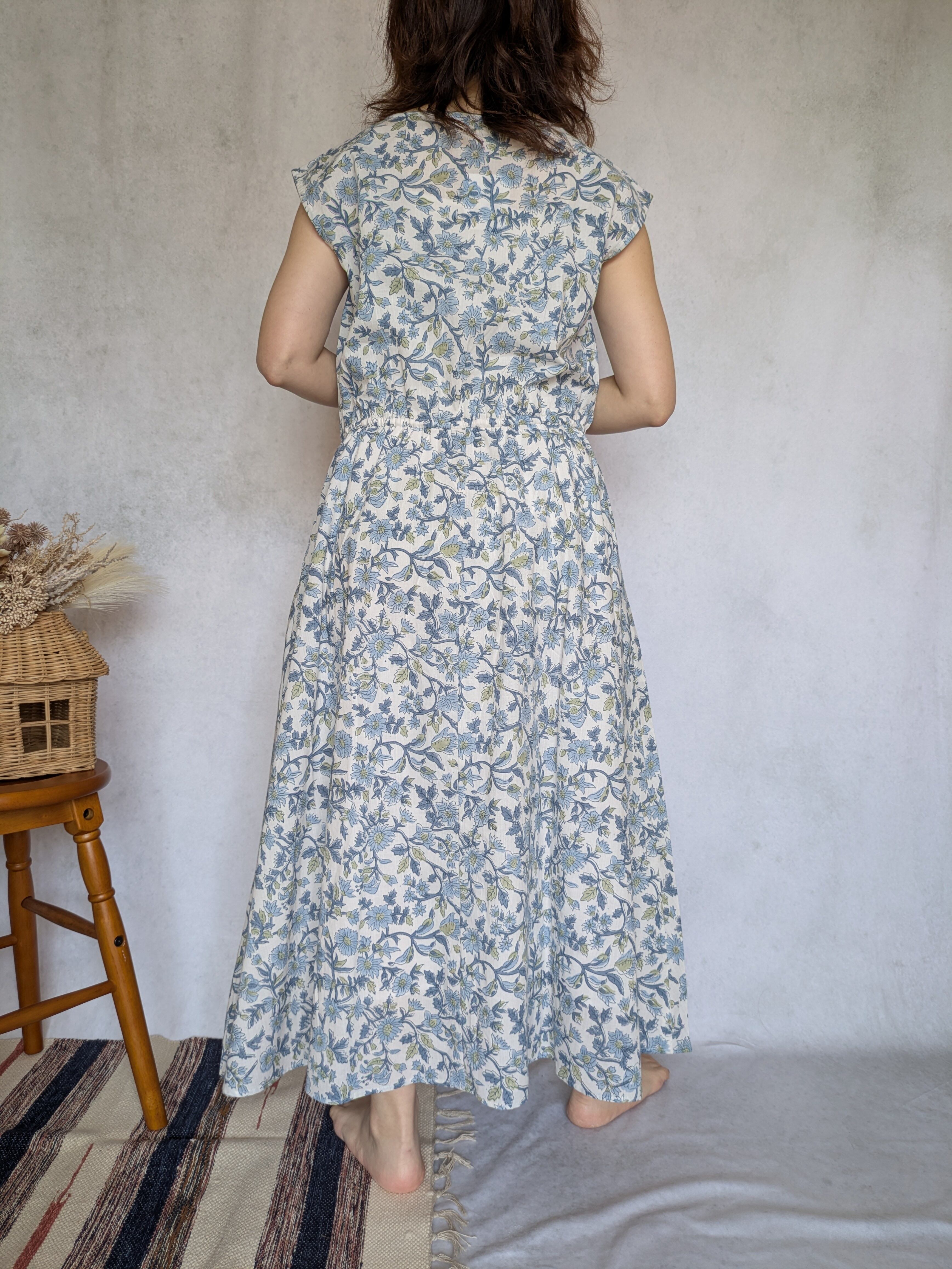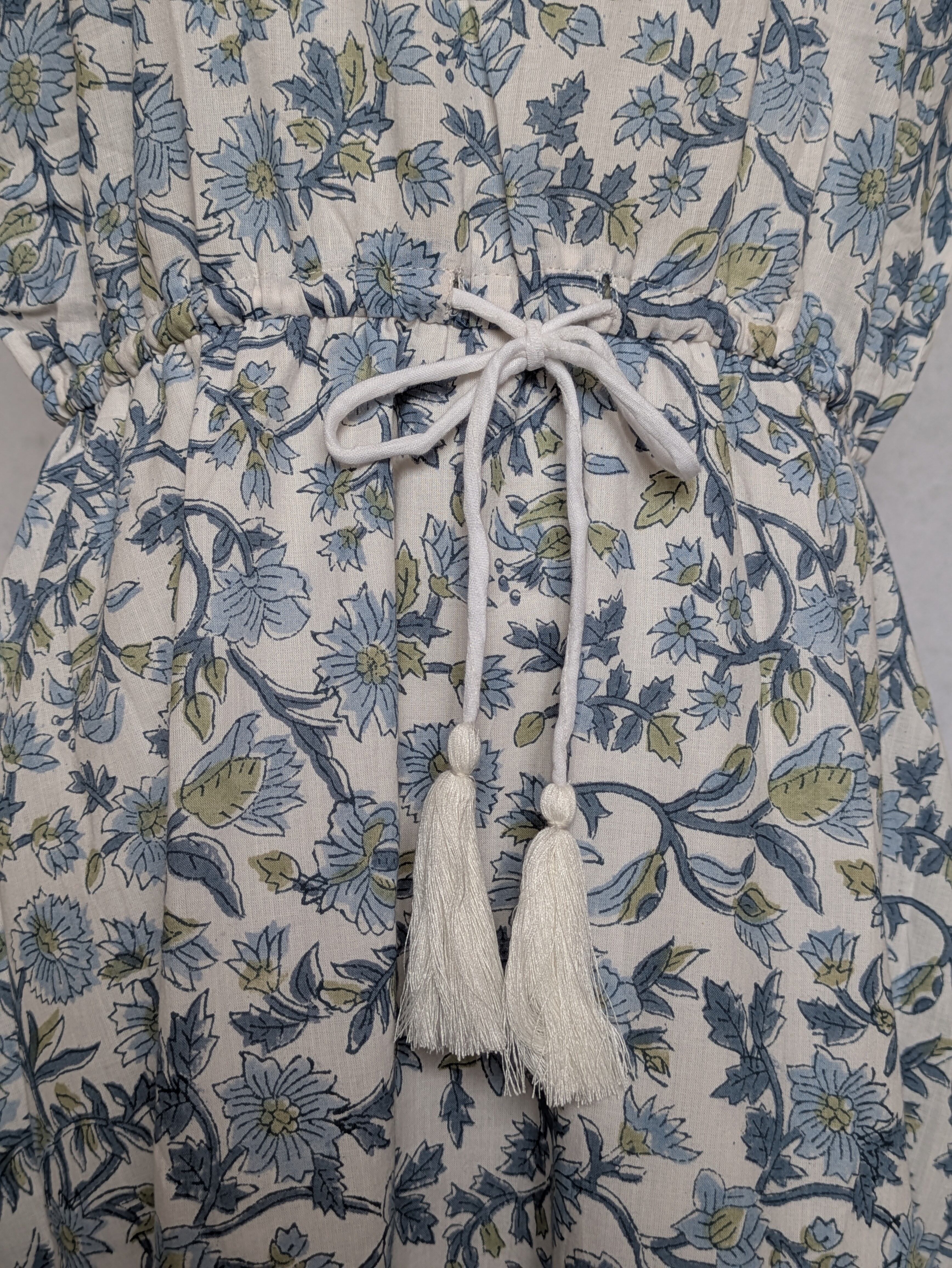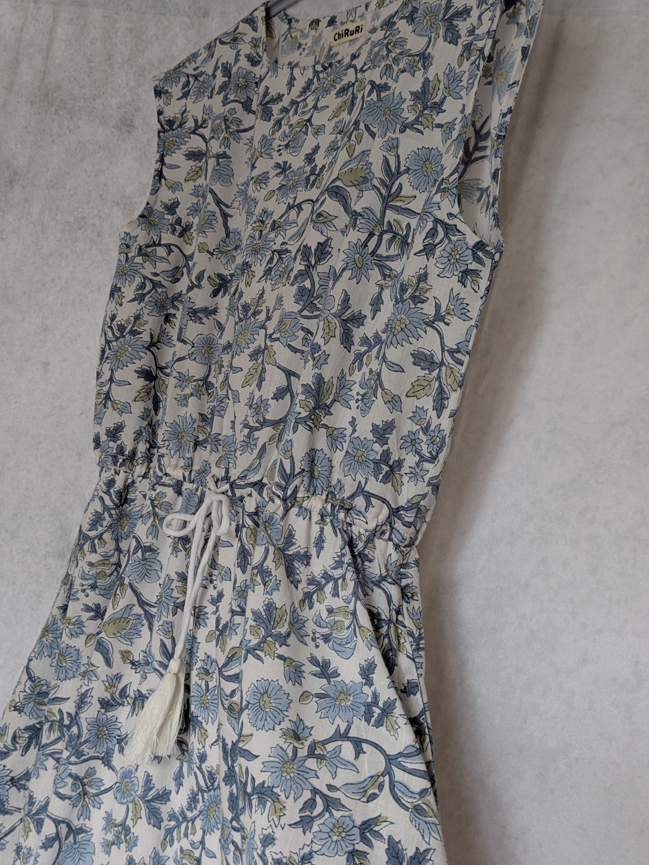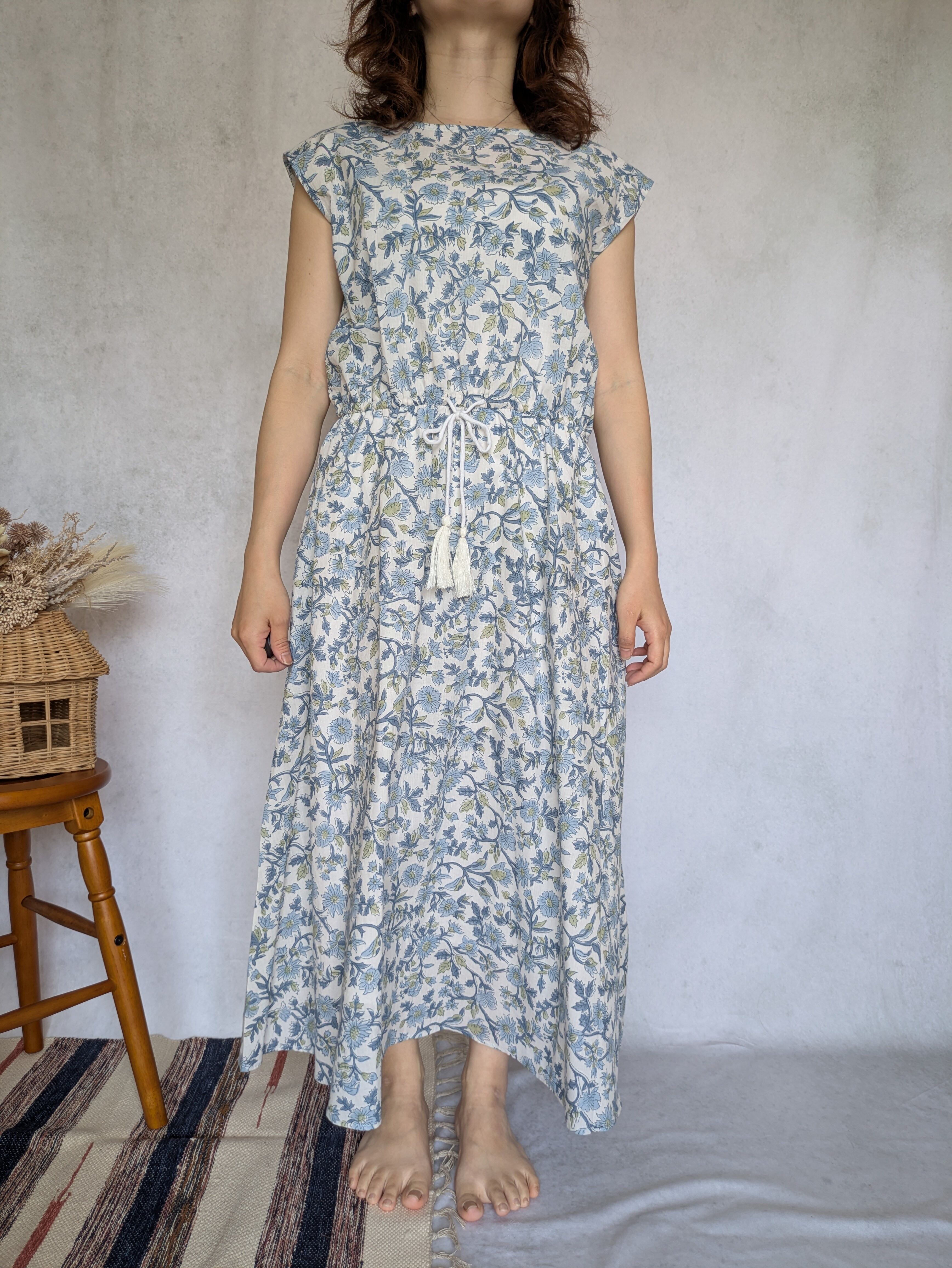 こちらは、インドの伝統工芸であるハンドブロックプリントで作られたワンピースです。