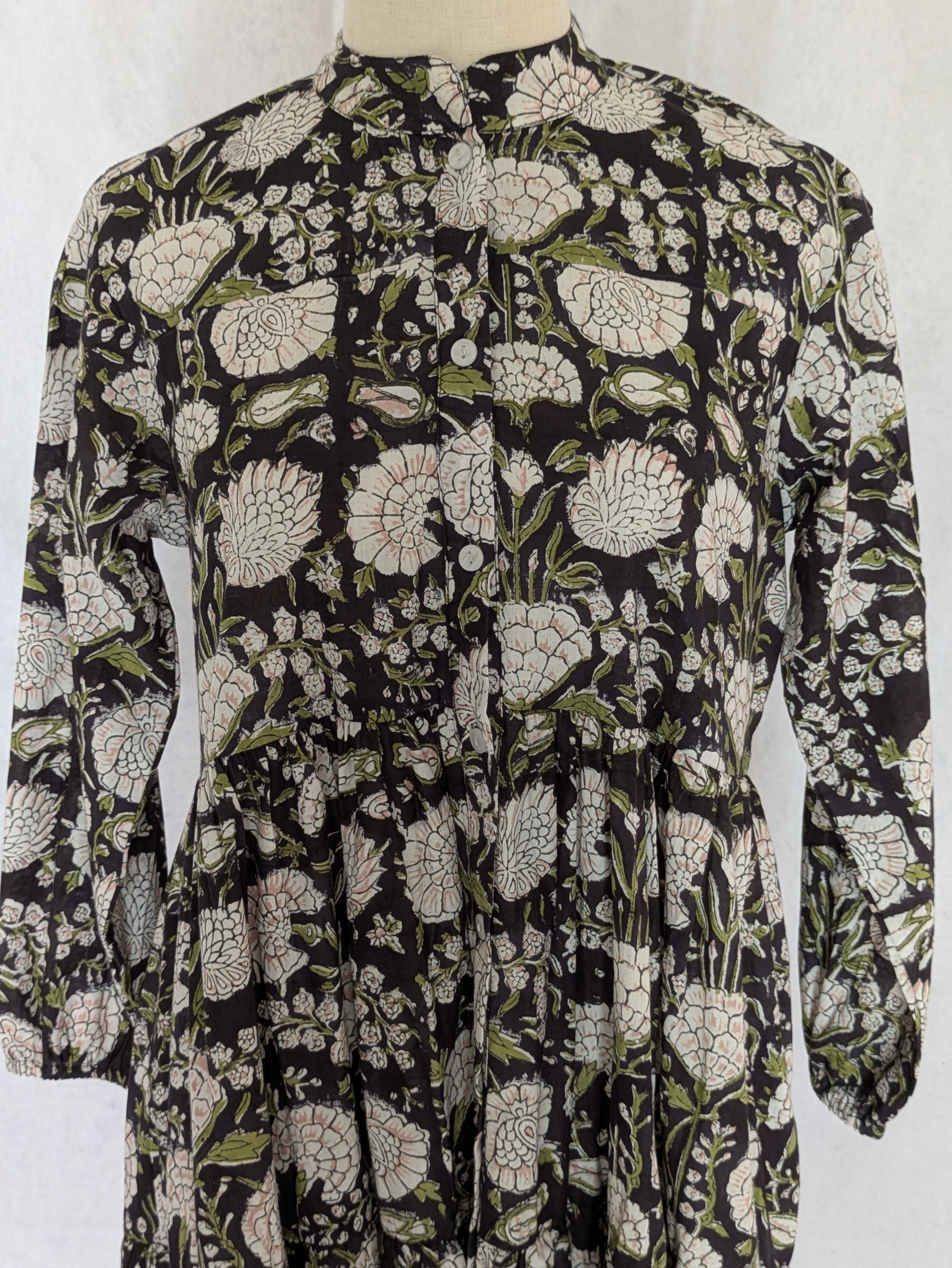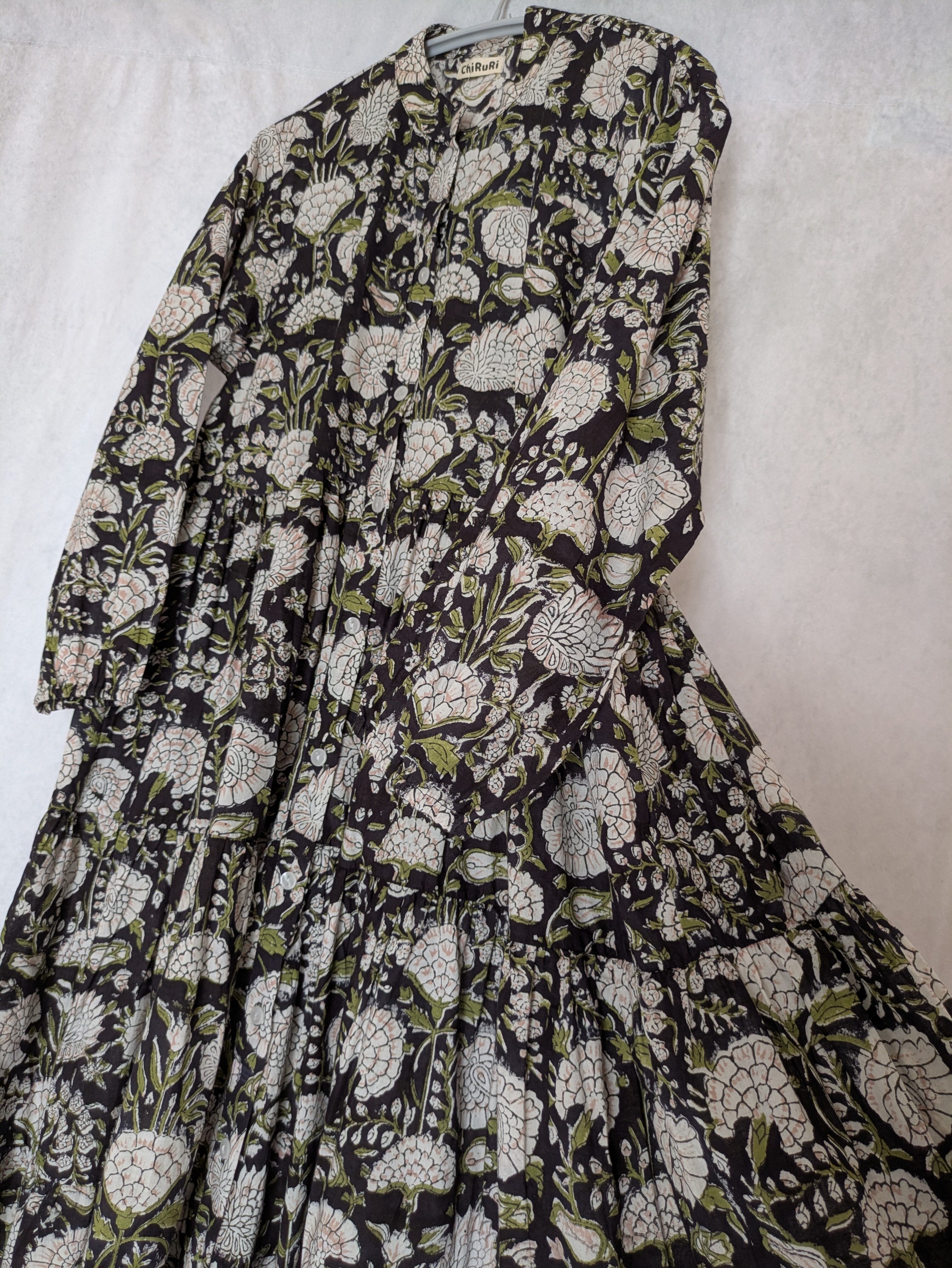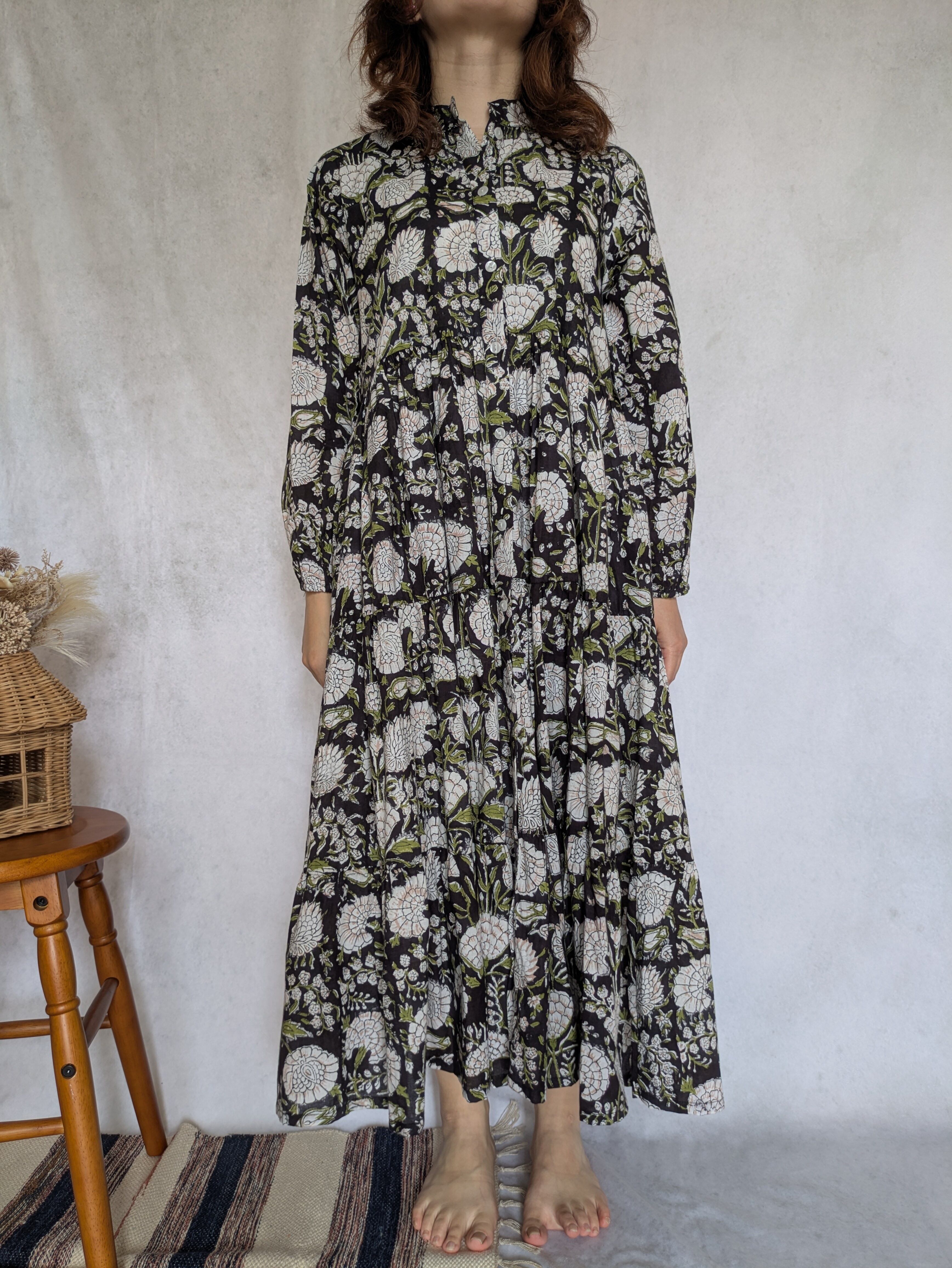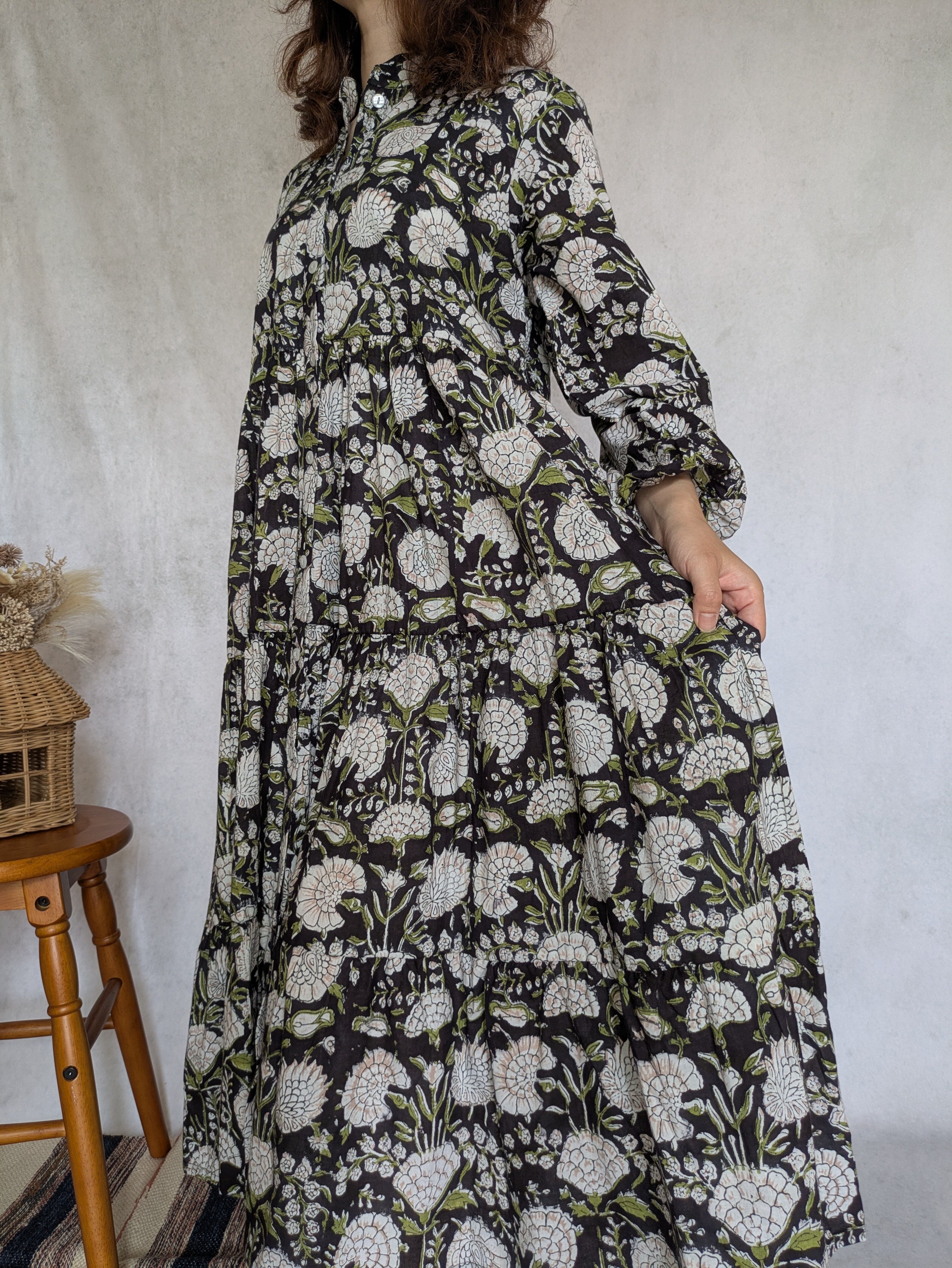 こちらは、インドの伝統工芸であるハンドブロックプリントで作られたワンピースです。