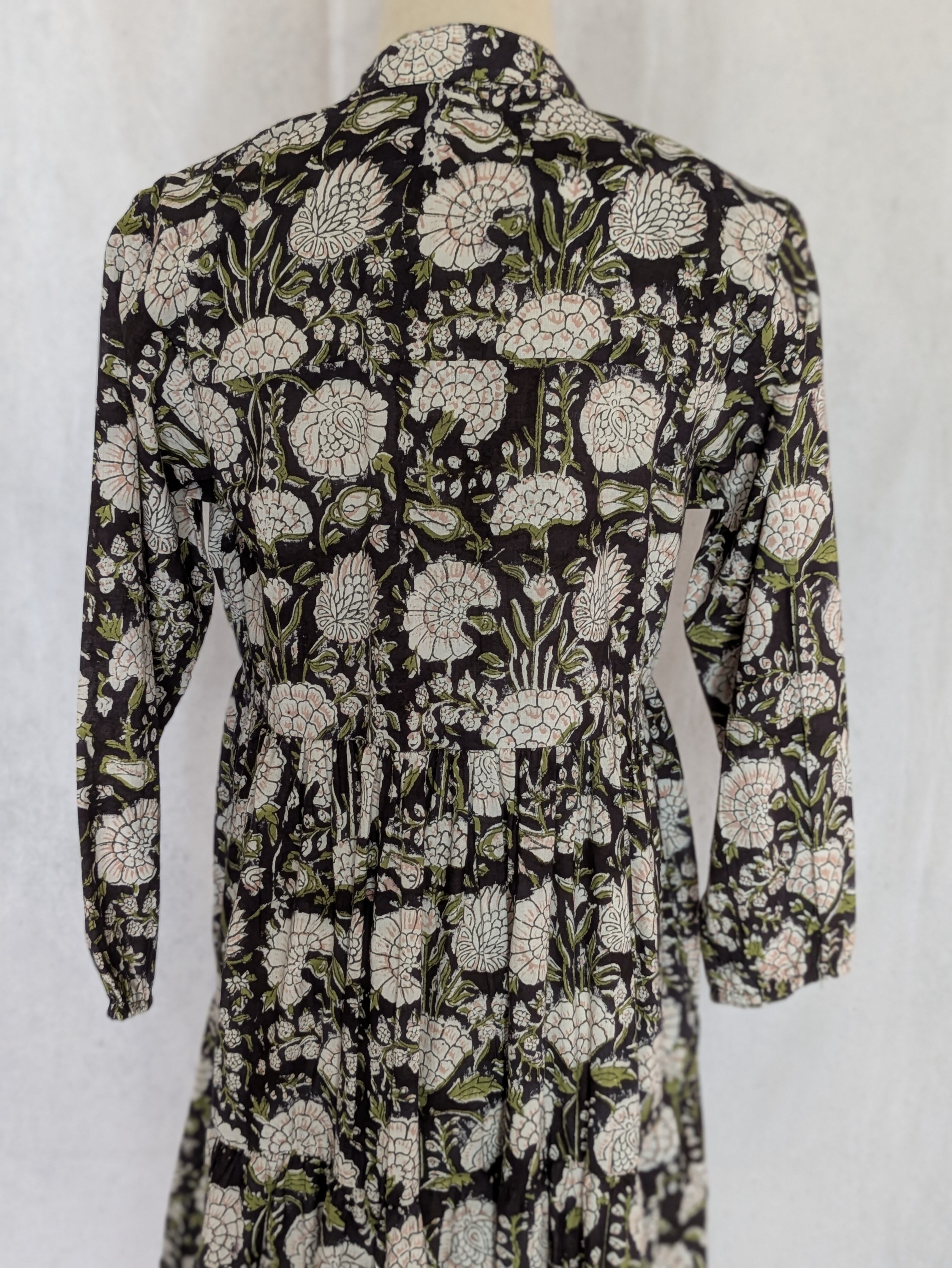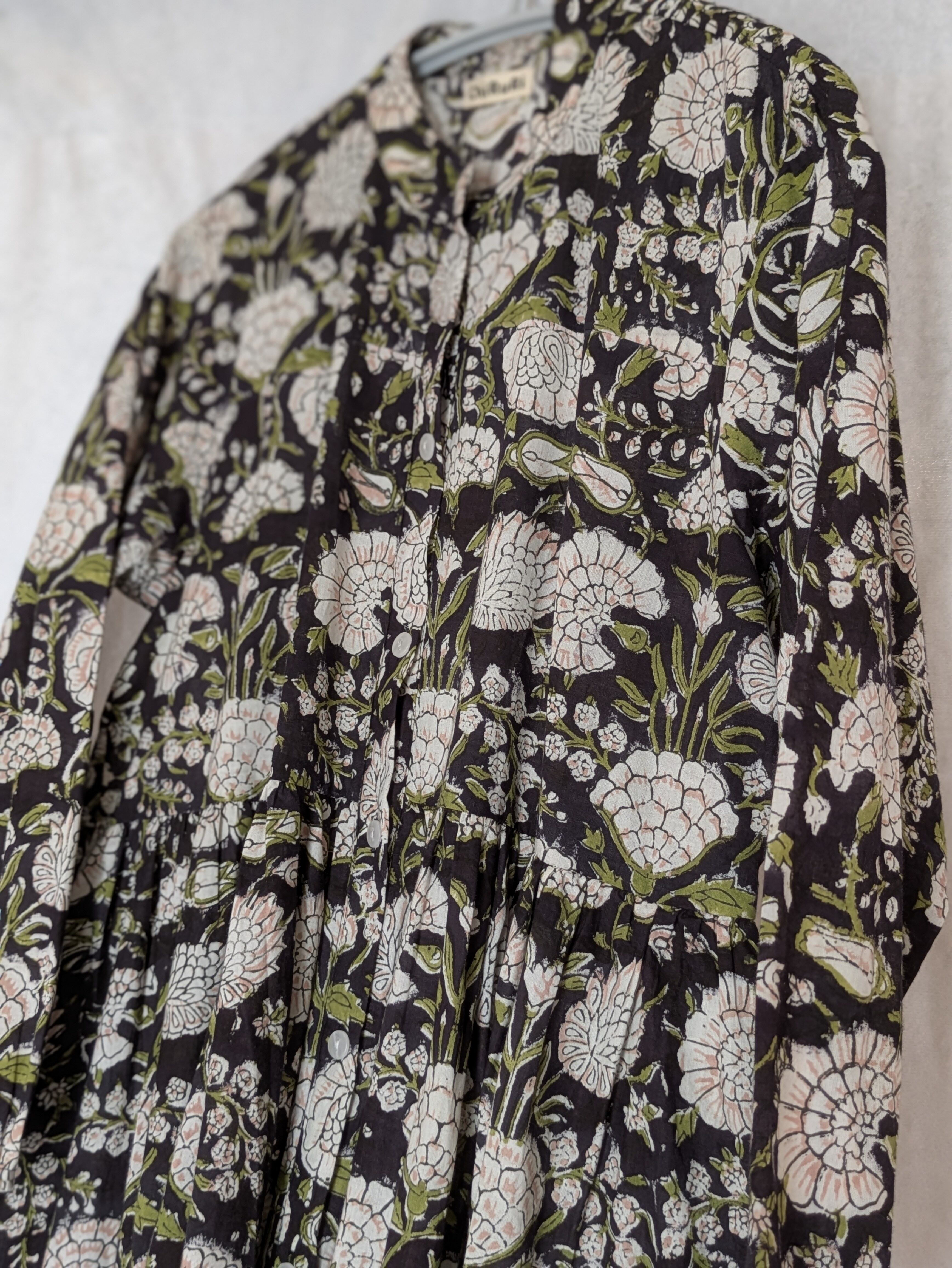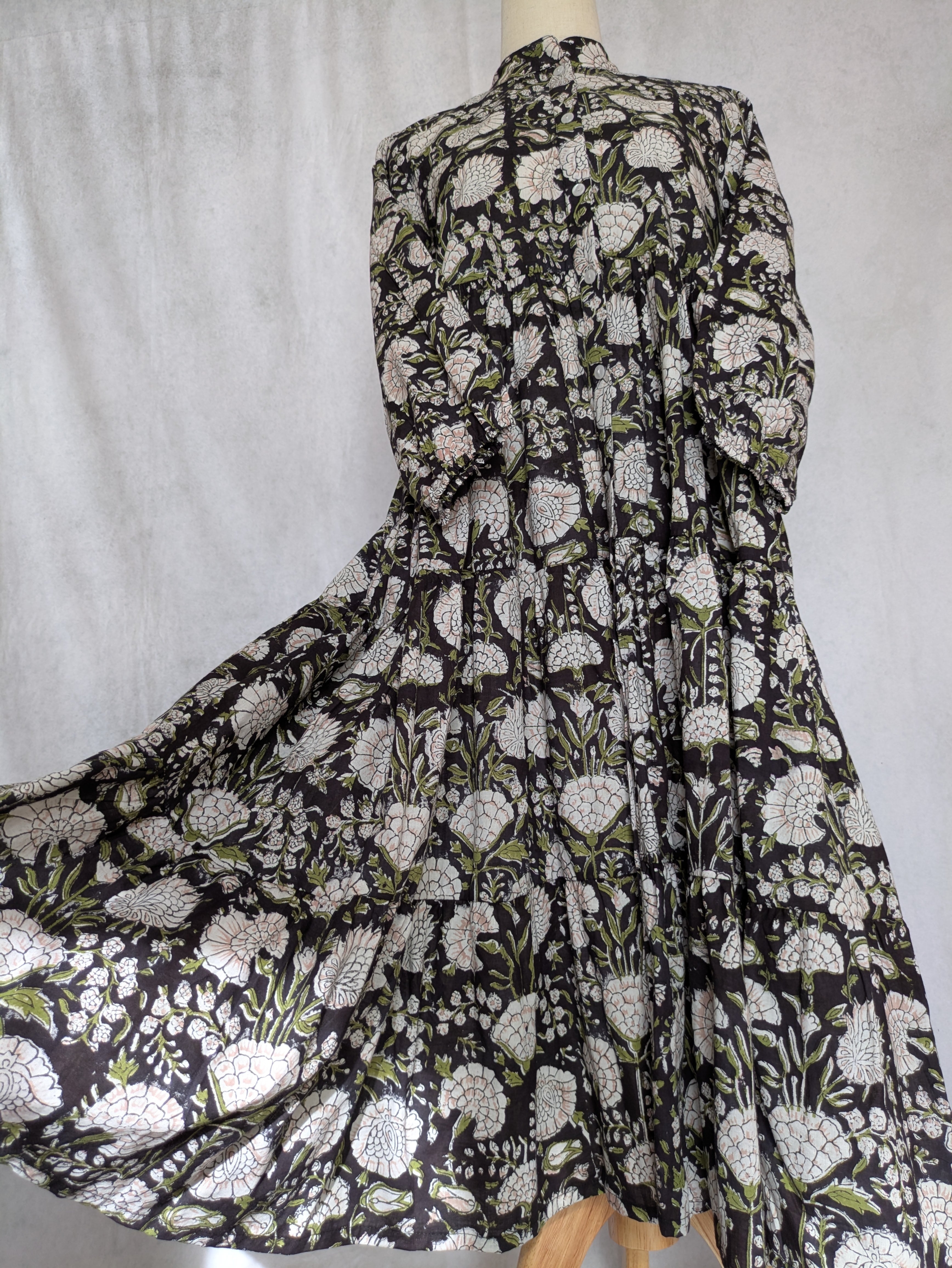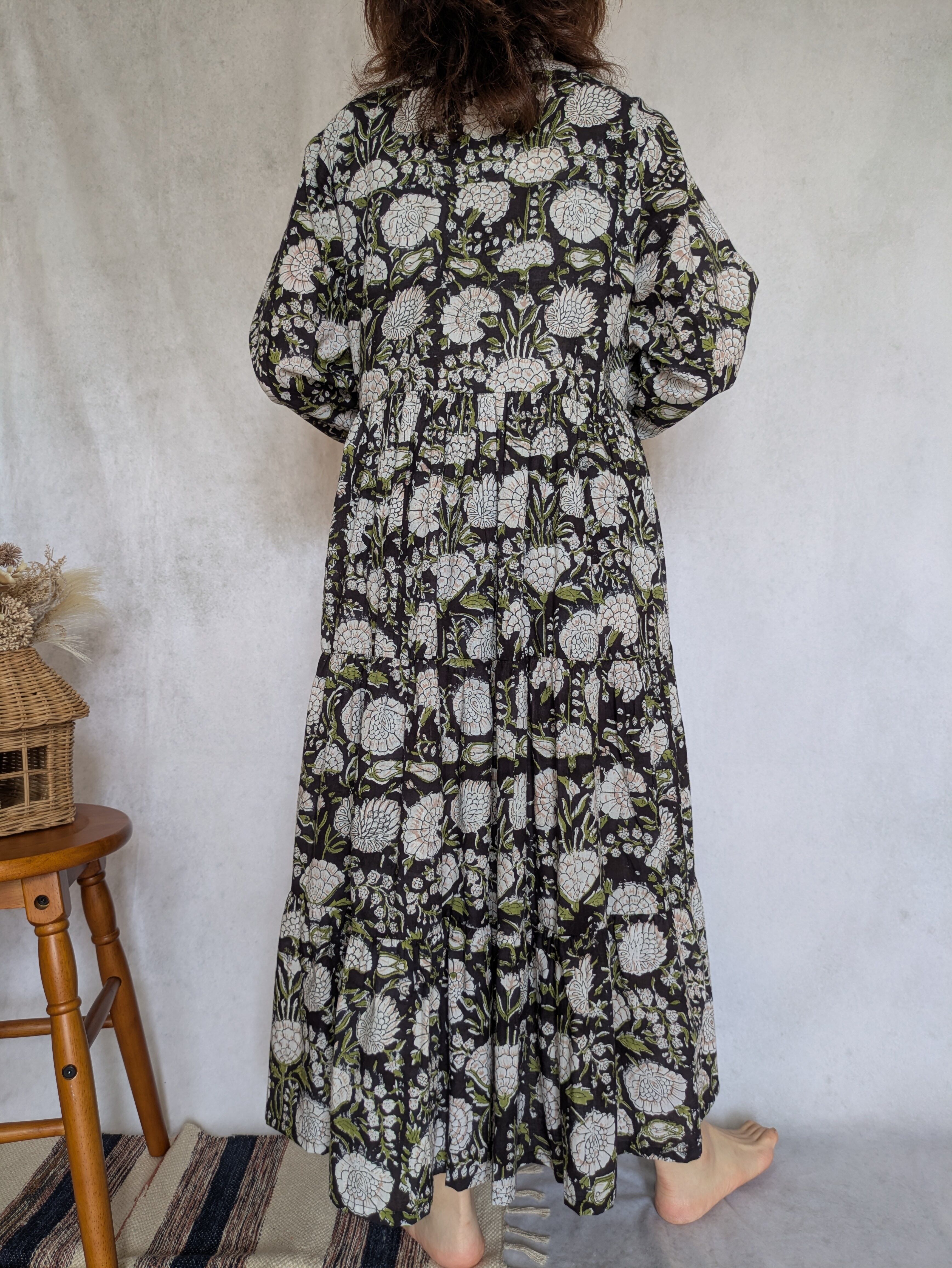 こちらは、インドの伝統工芸であるハンドブロックプリントで作られたワンピースです。