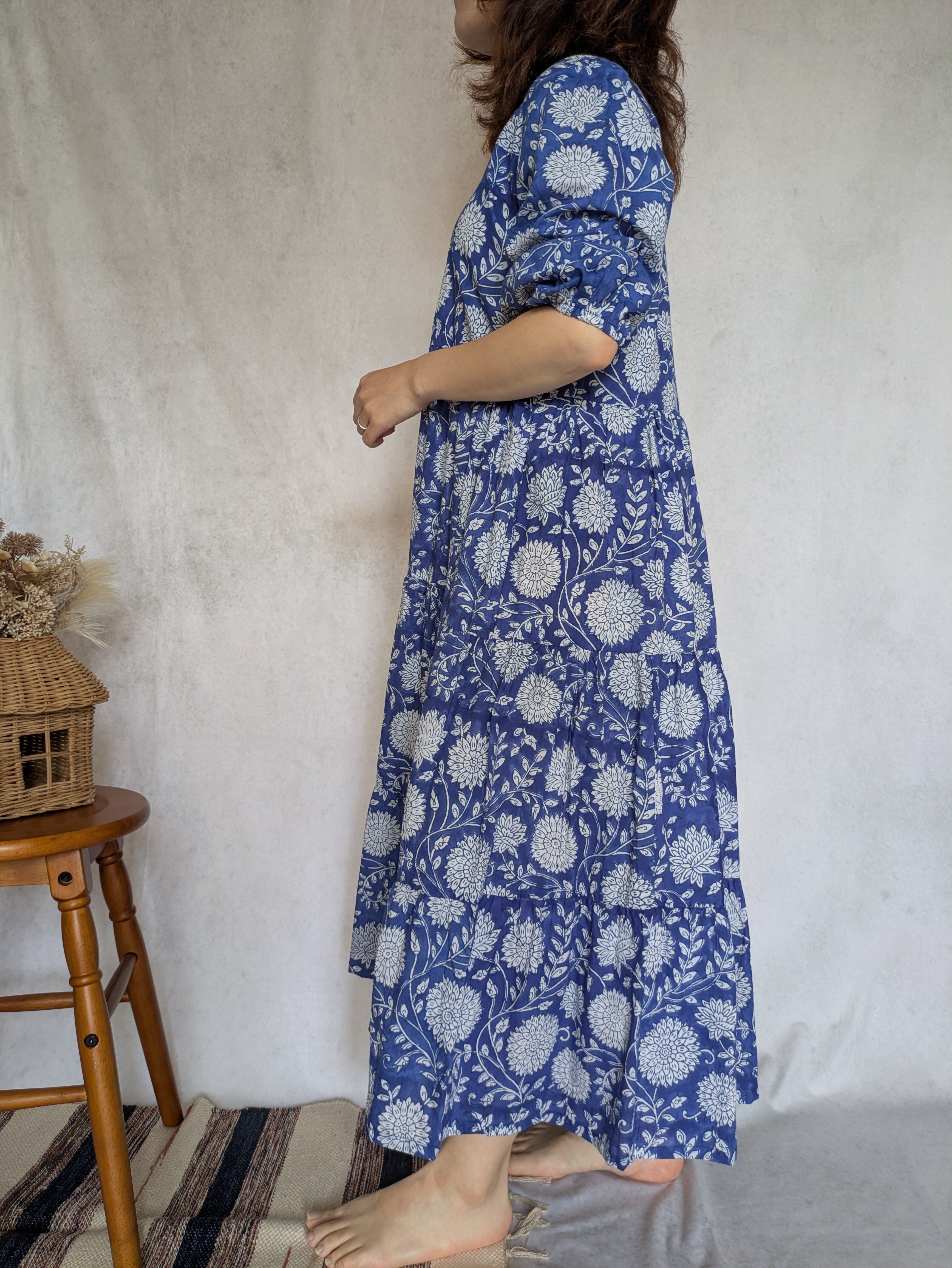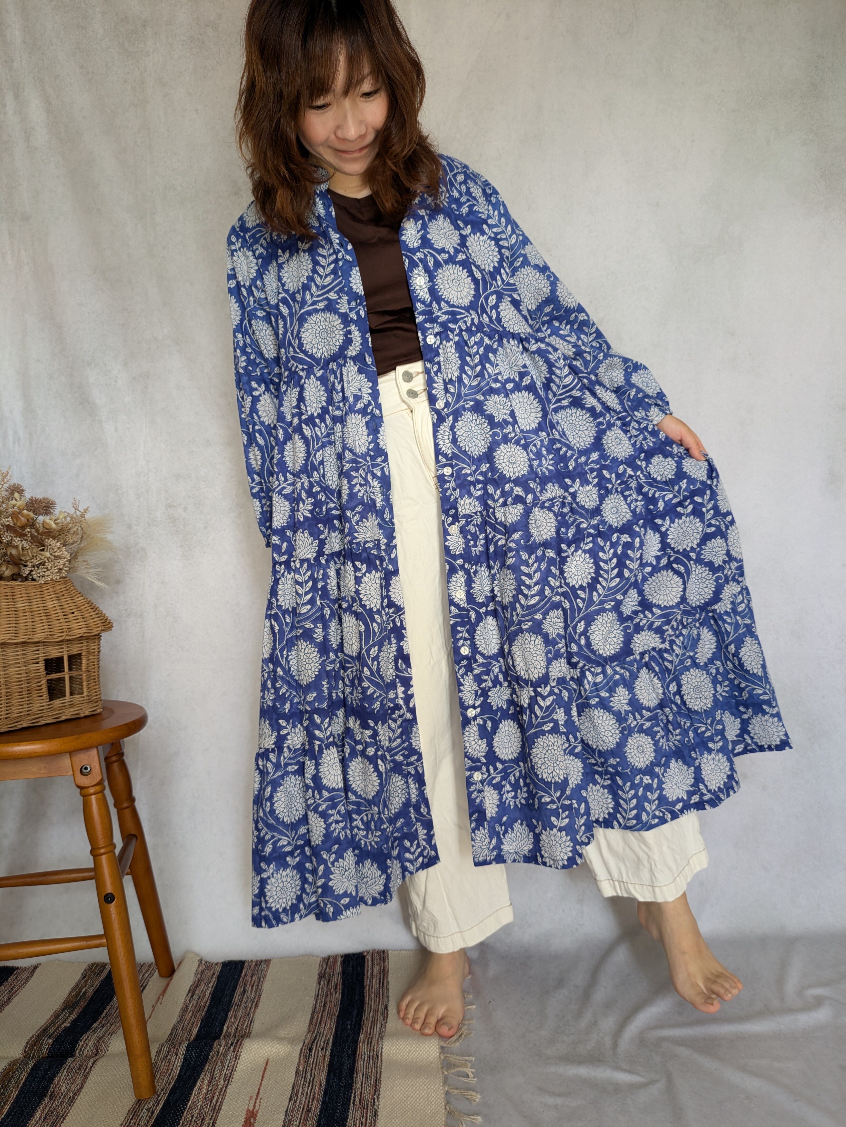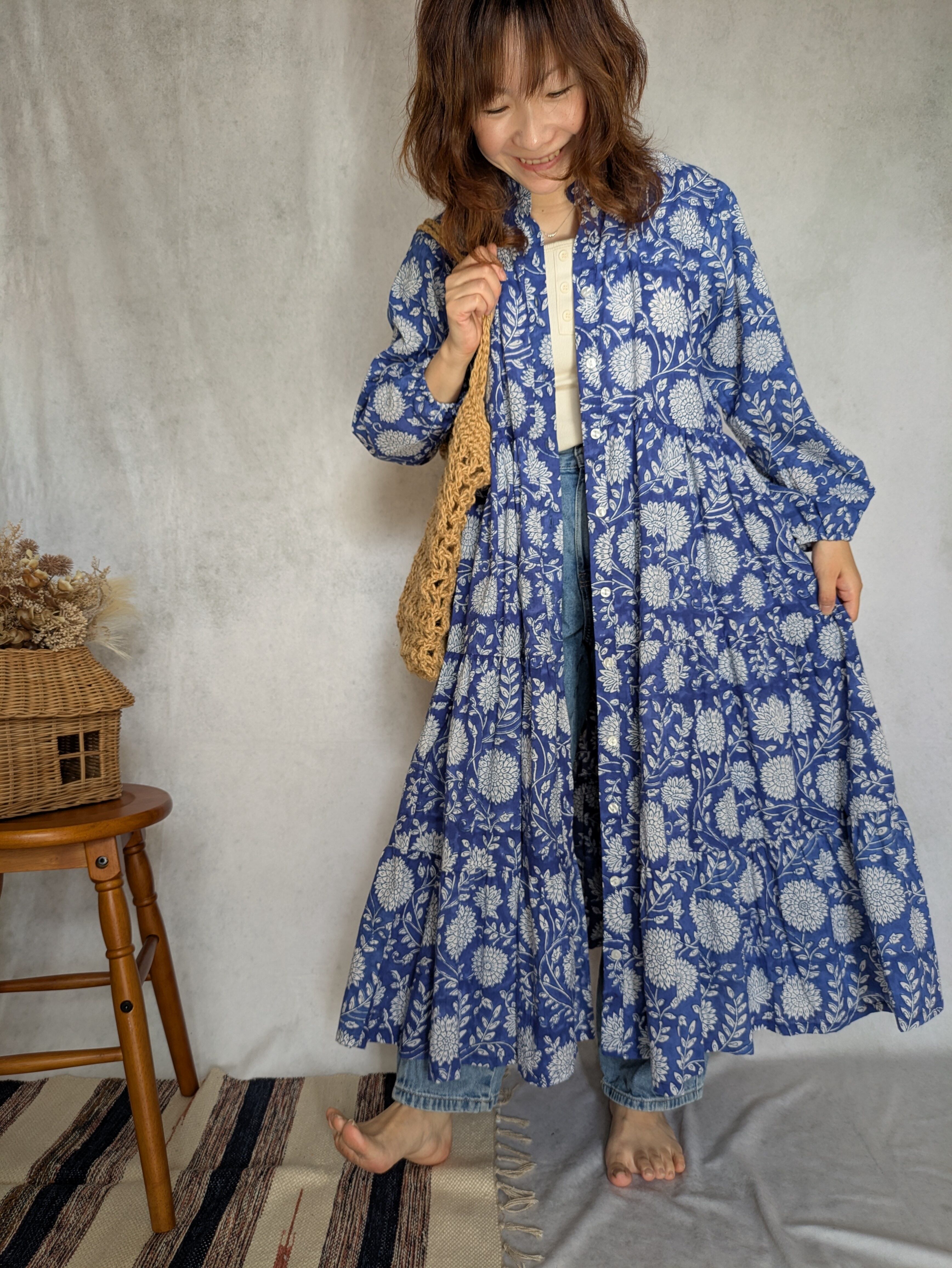 こちらは、インドの伝統工芸であるハンドブロックプリントで作られたワンピースです。