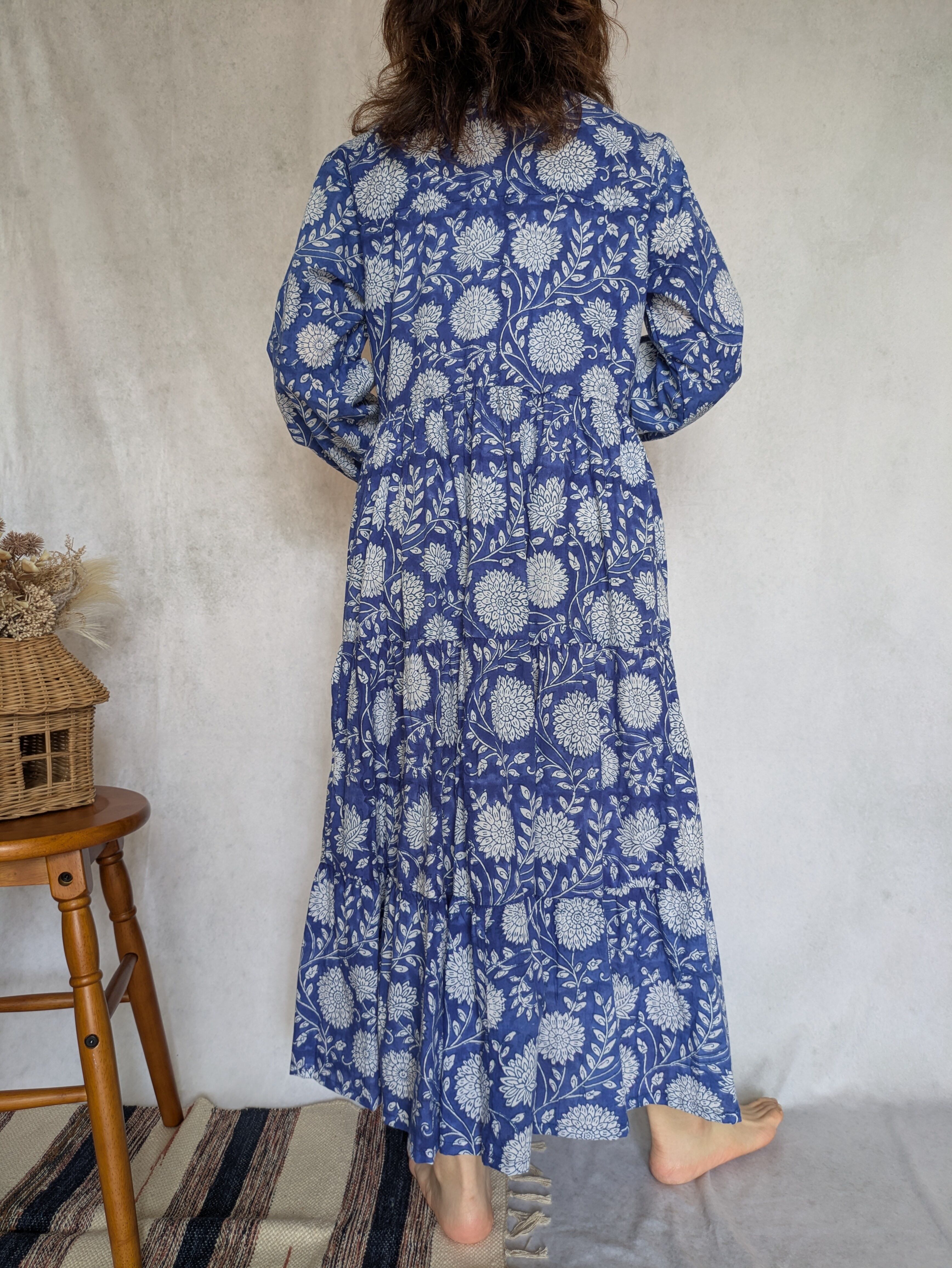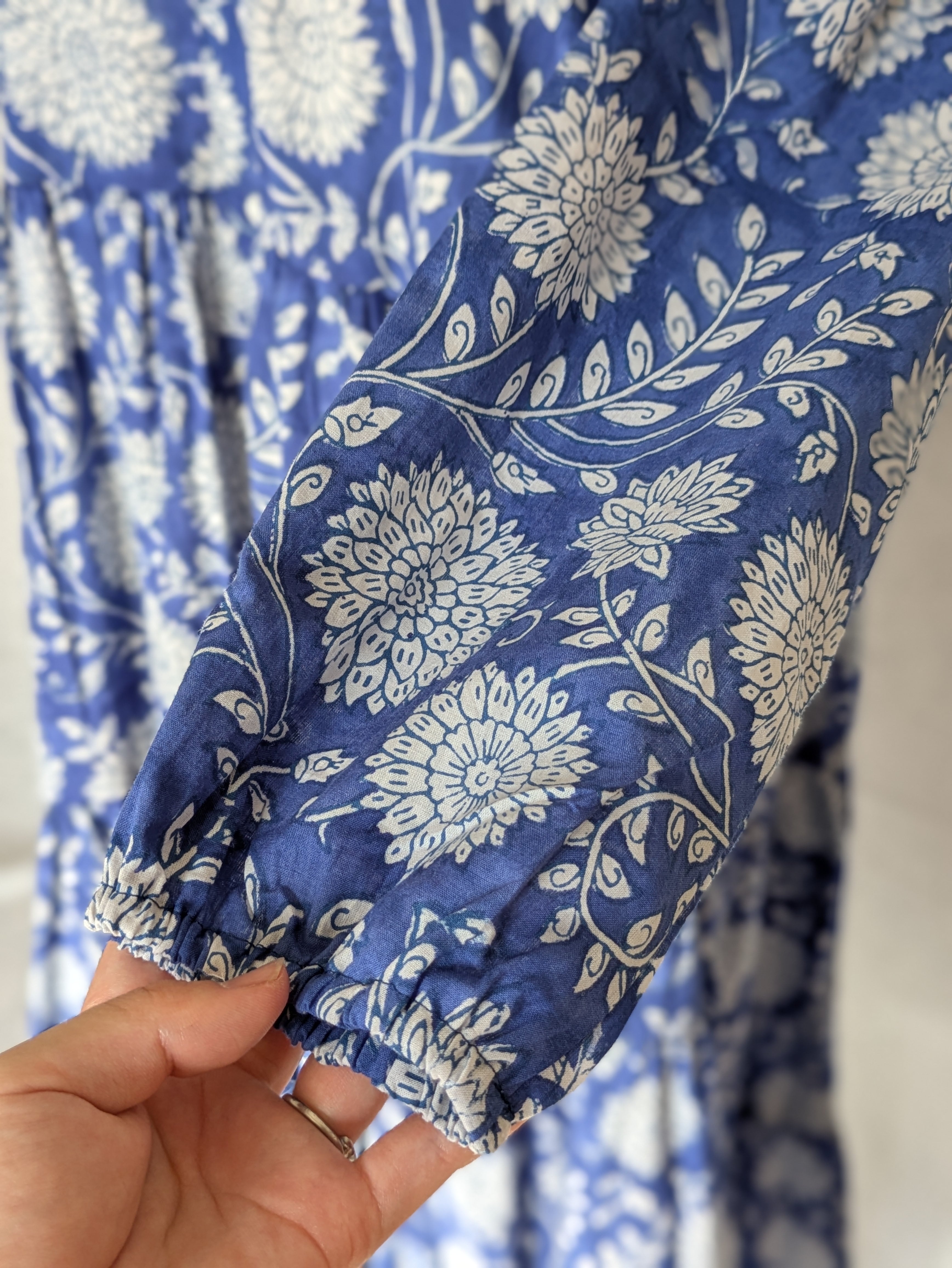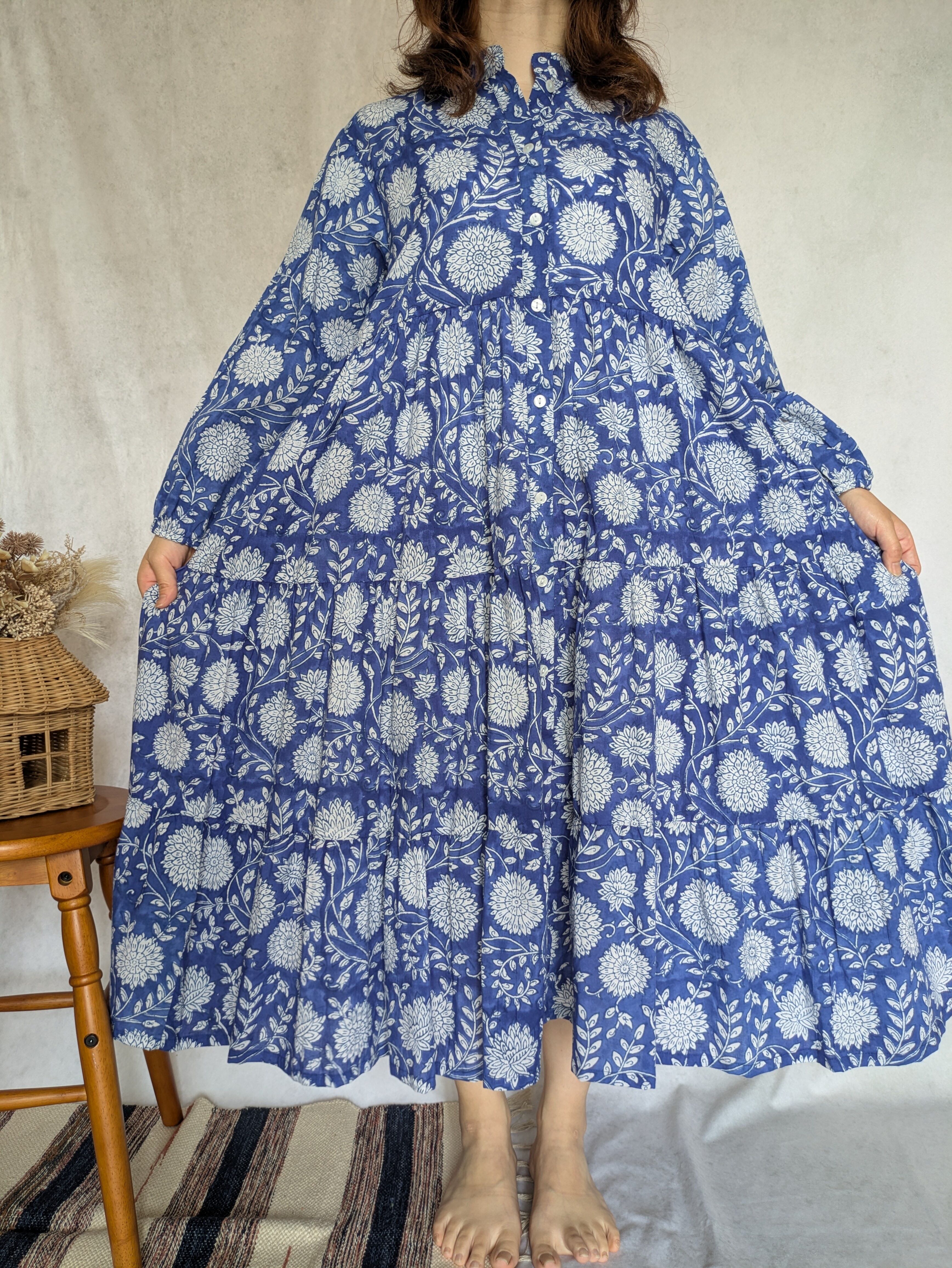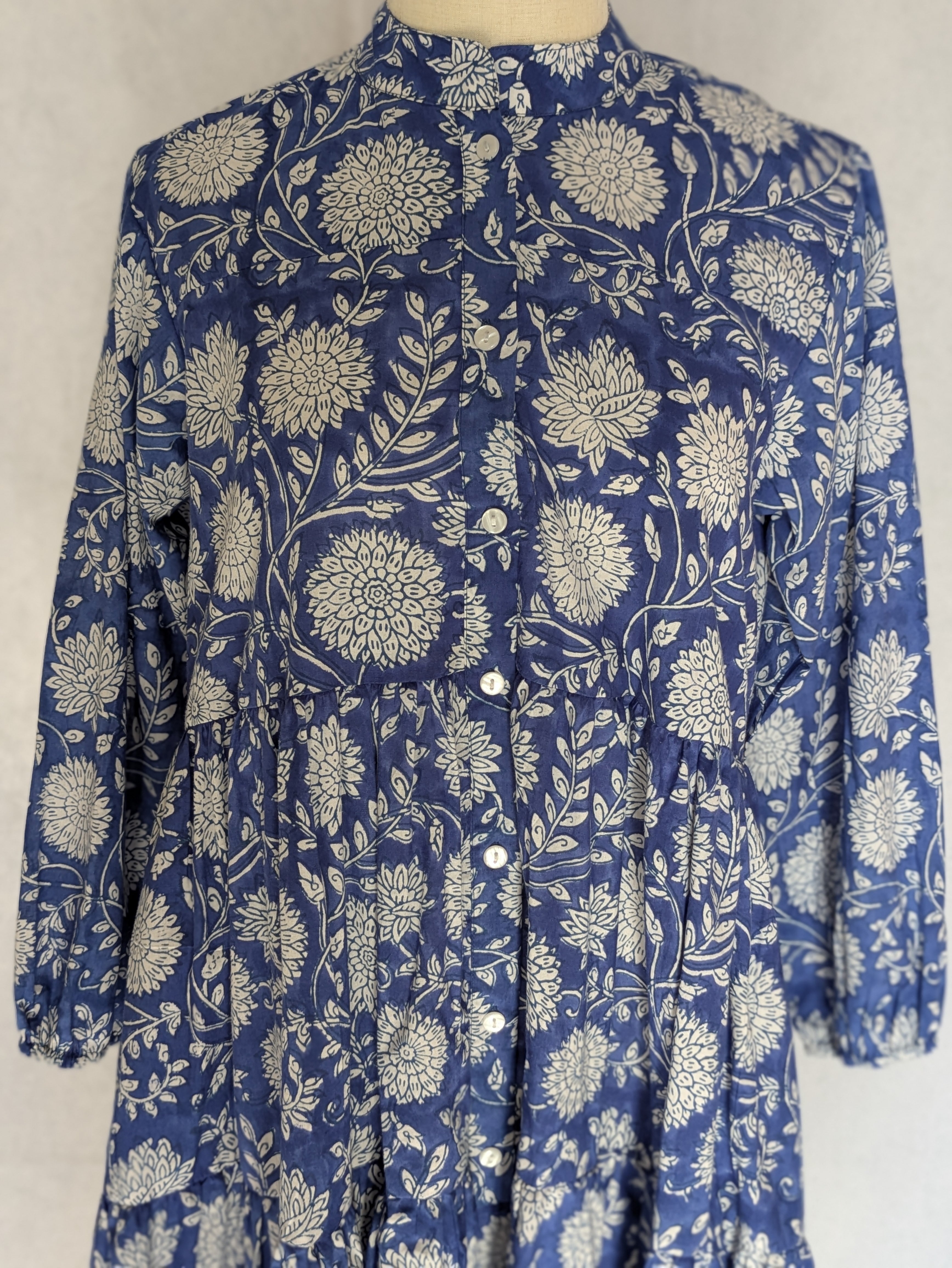 こちらは、インドの伝統工芸であるハンドブロックプリントで作られたワンピースです。