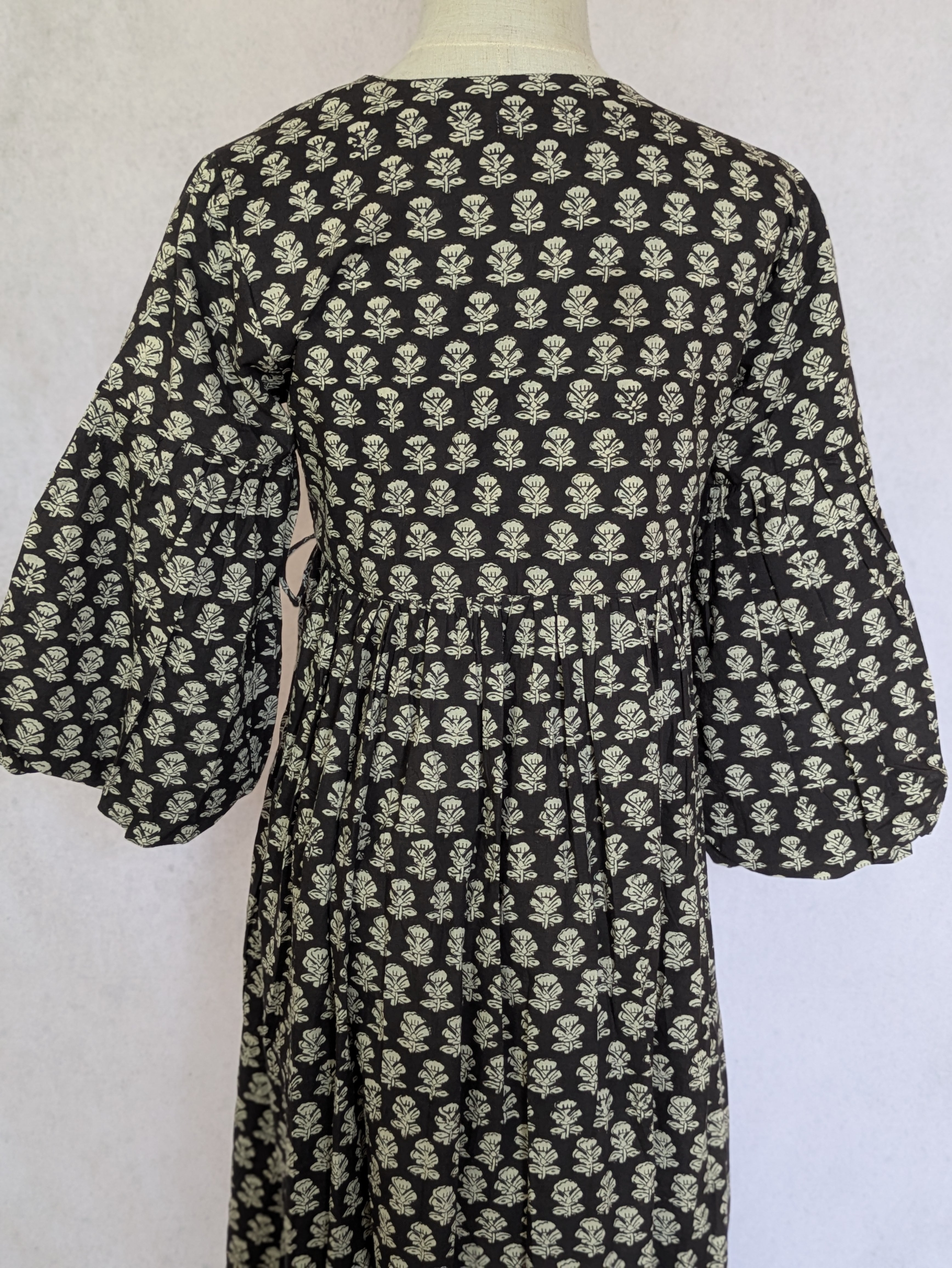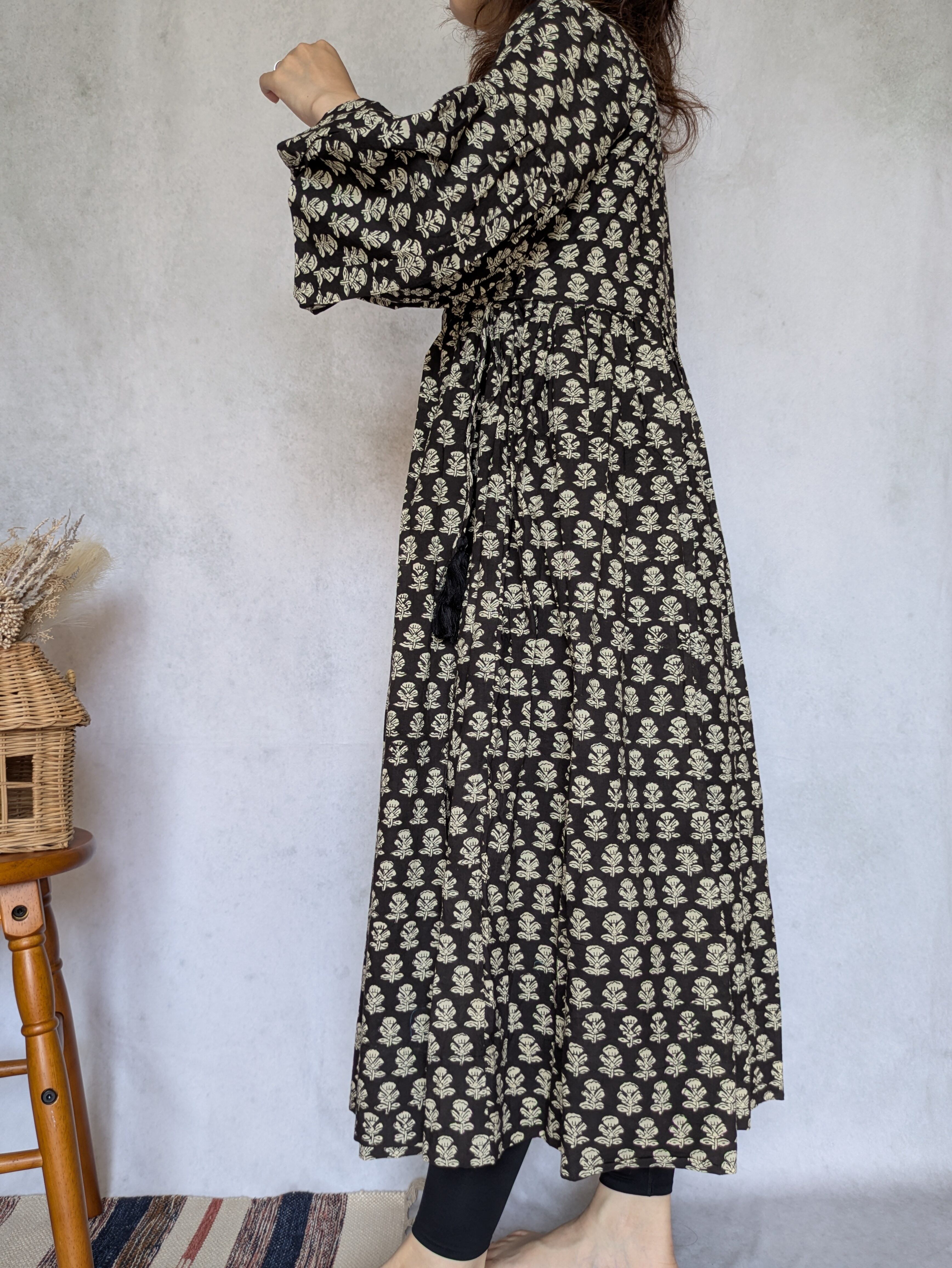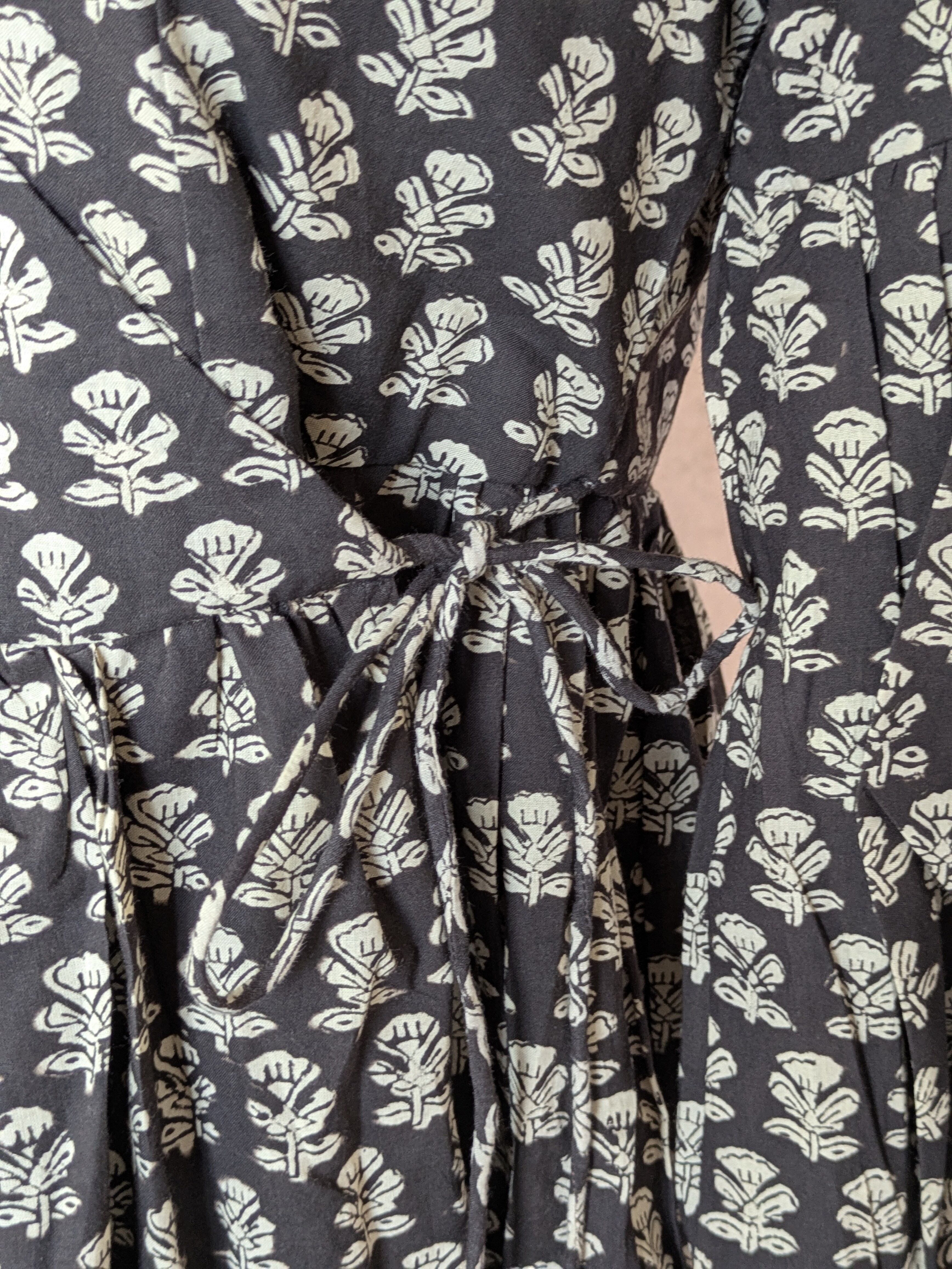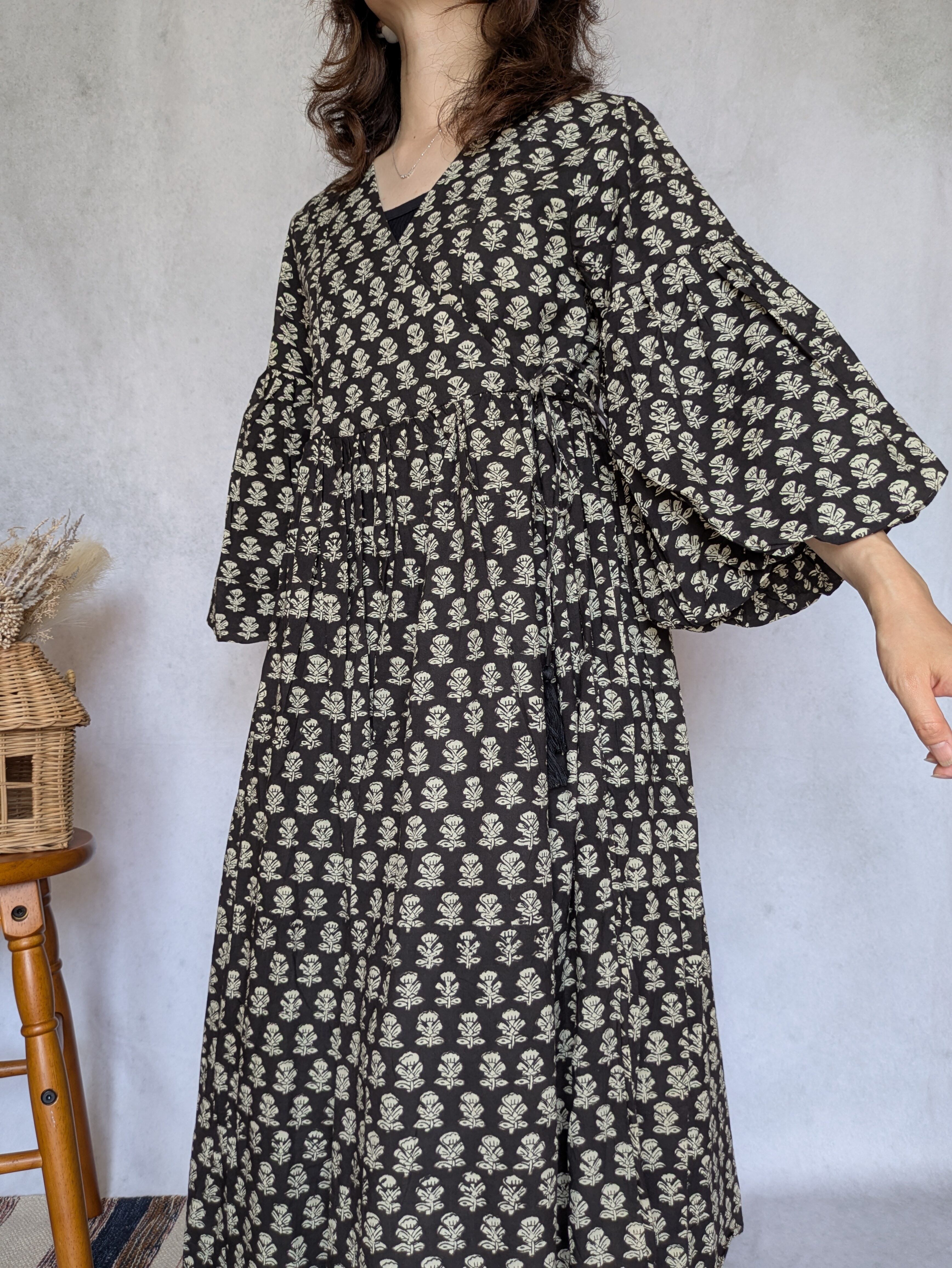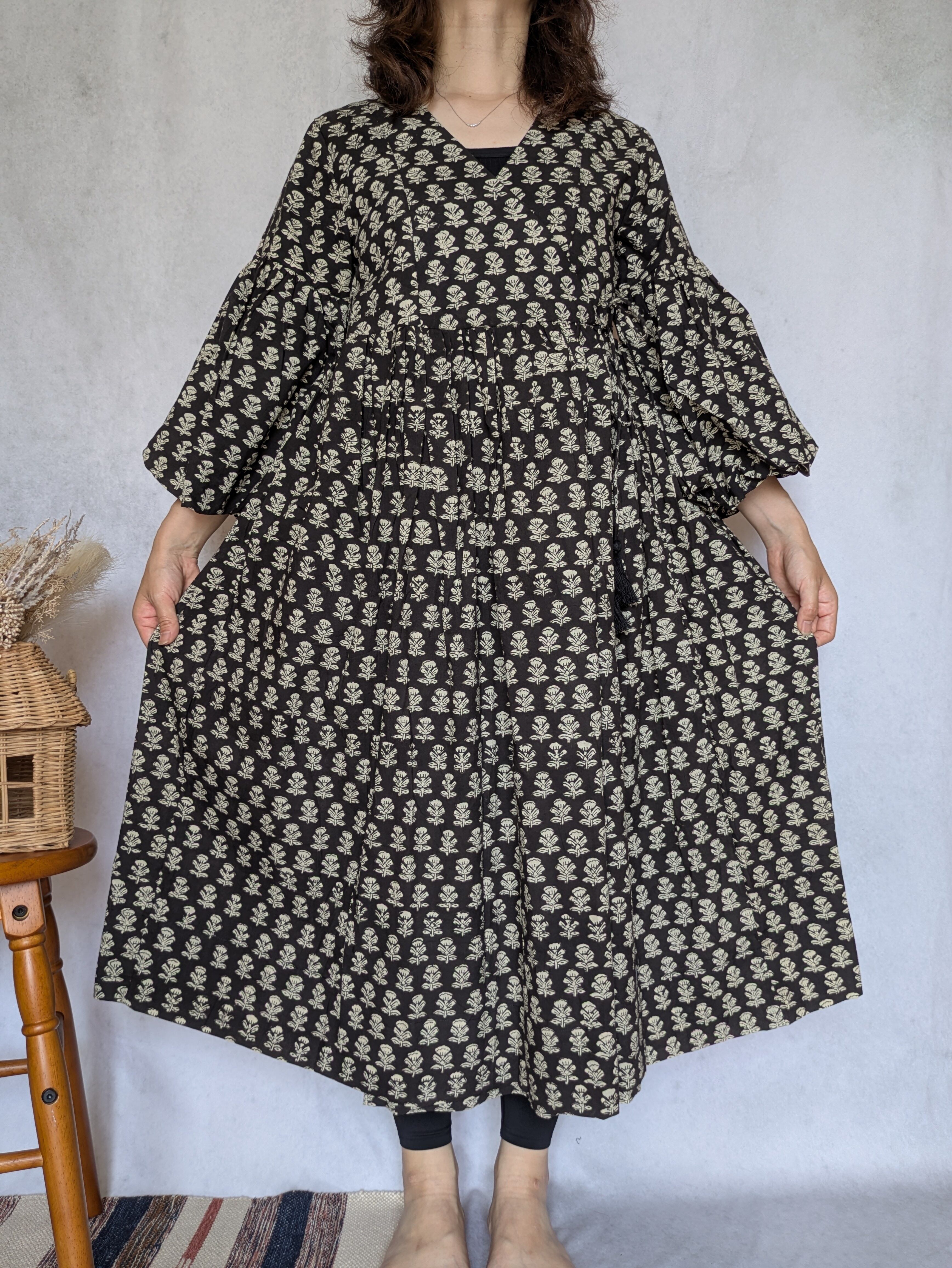 こちらは、インドの伝統工芸であるハンドブロックプリントで作られたワンピースです。