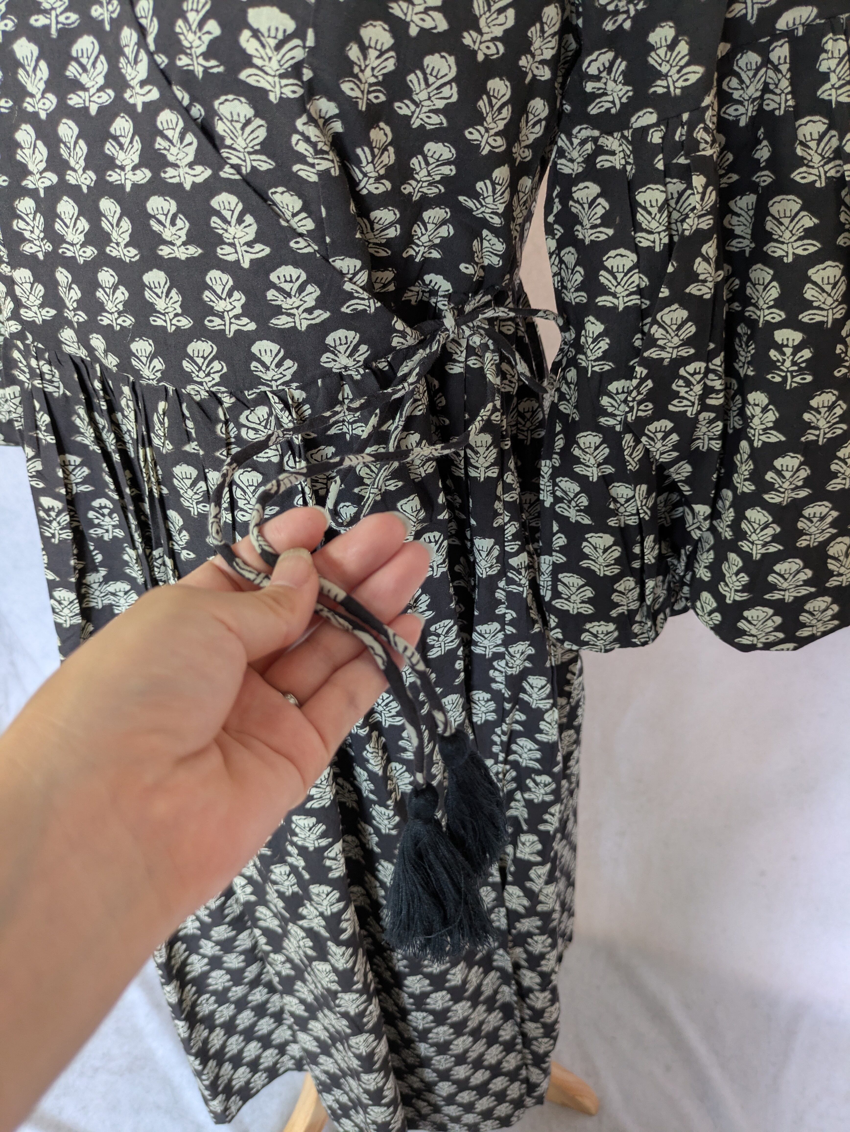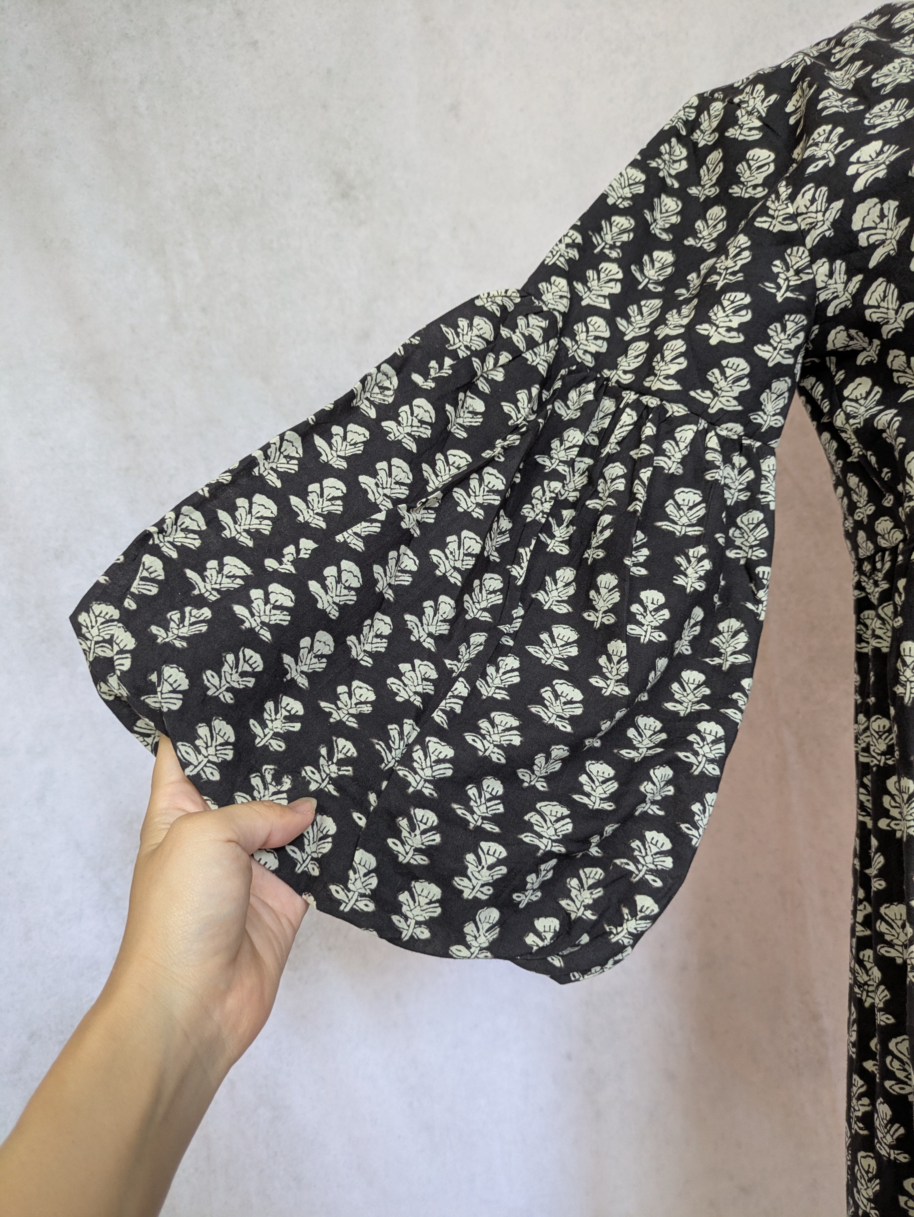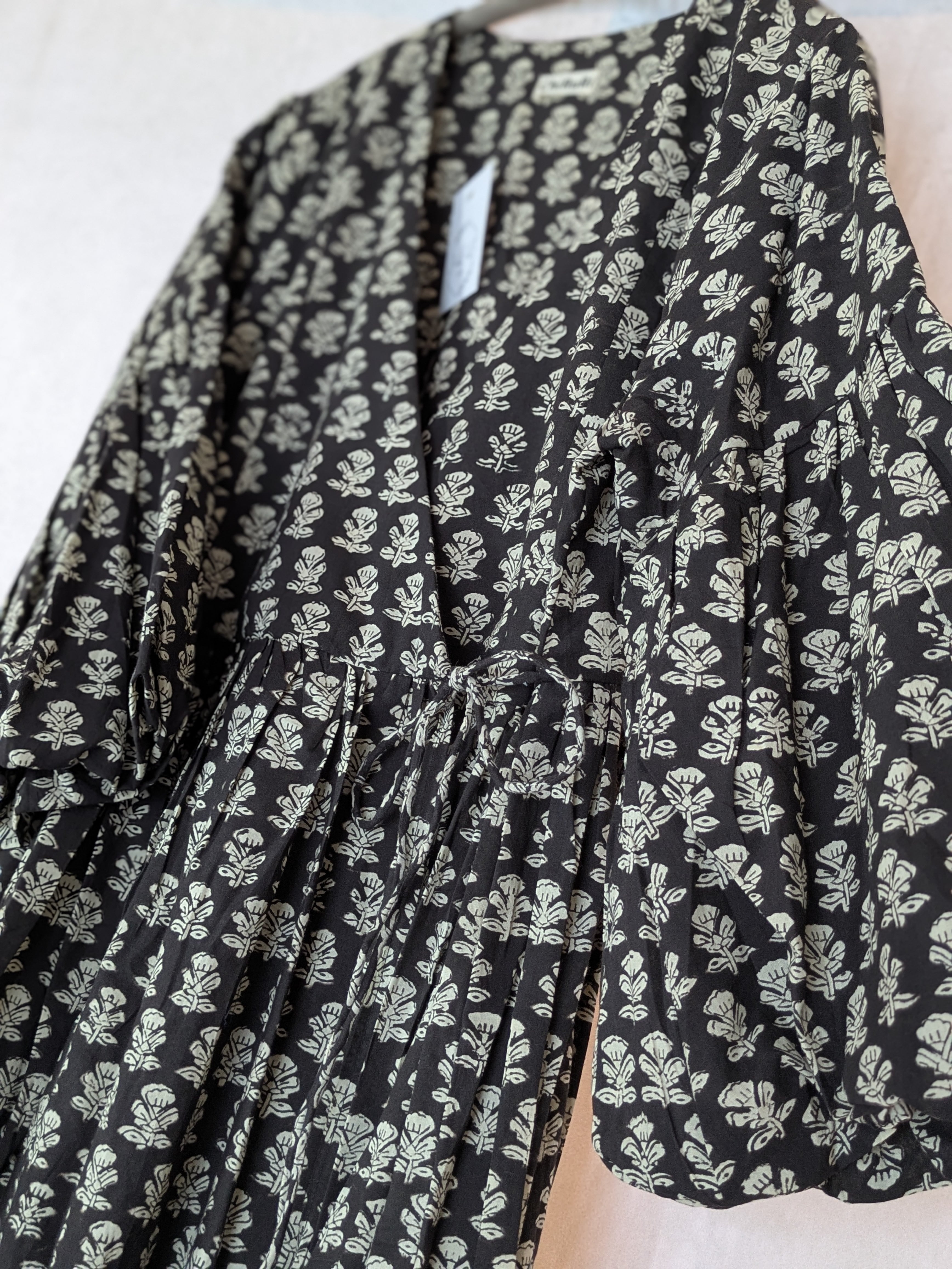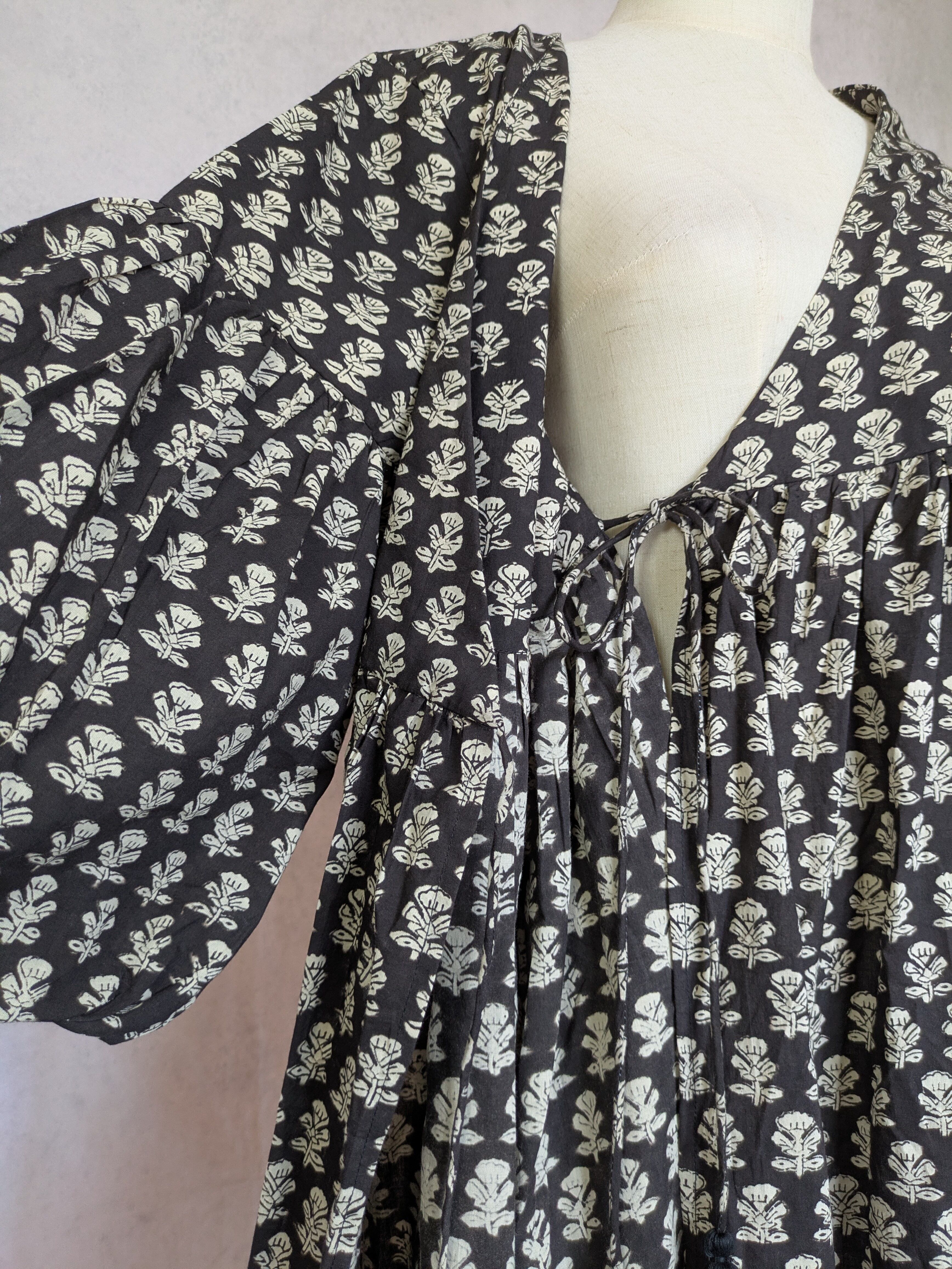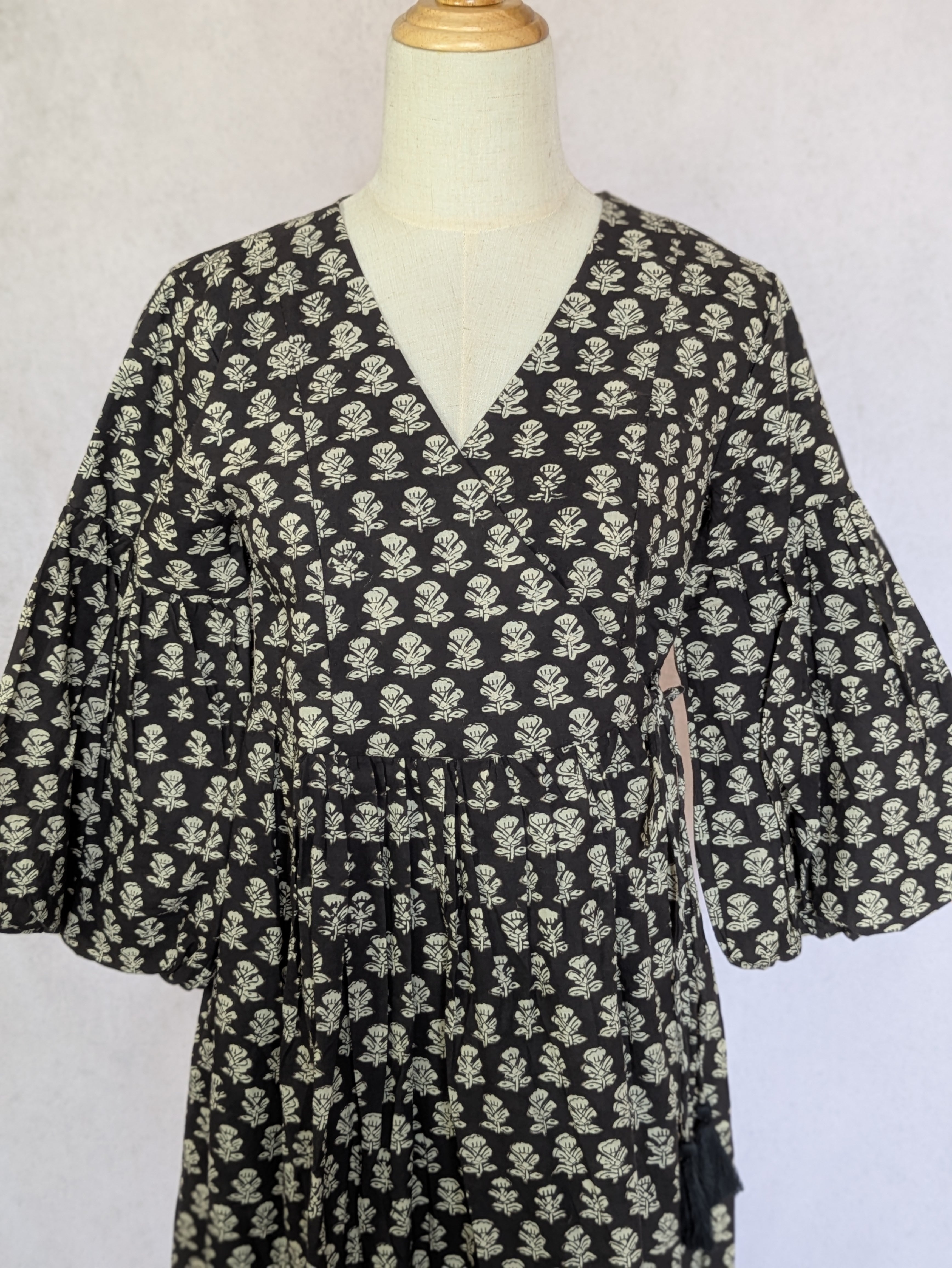 こちらは、インドの伝統工芸であるハンドブロックプリントで作られたワンピースです。