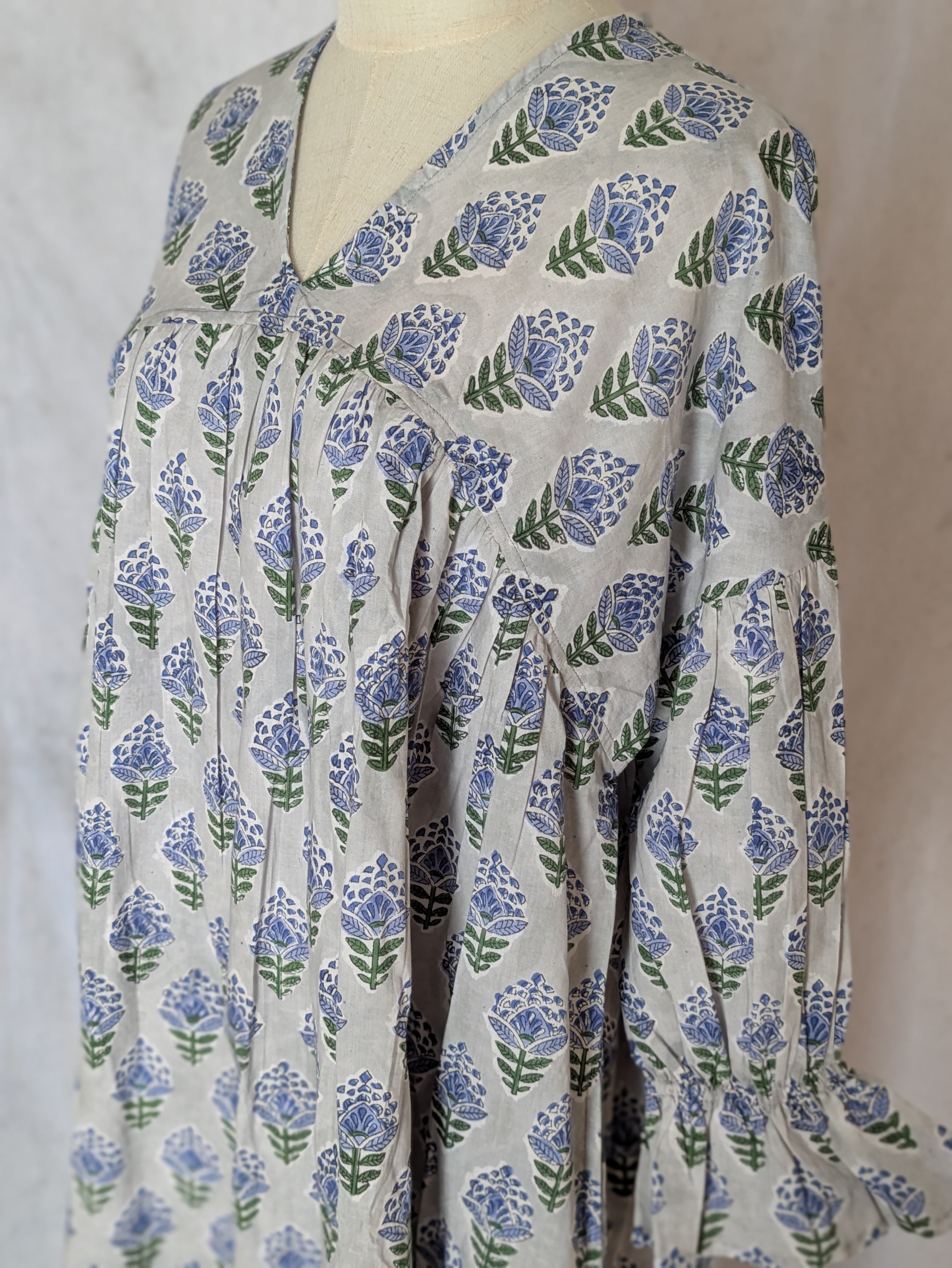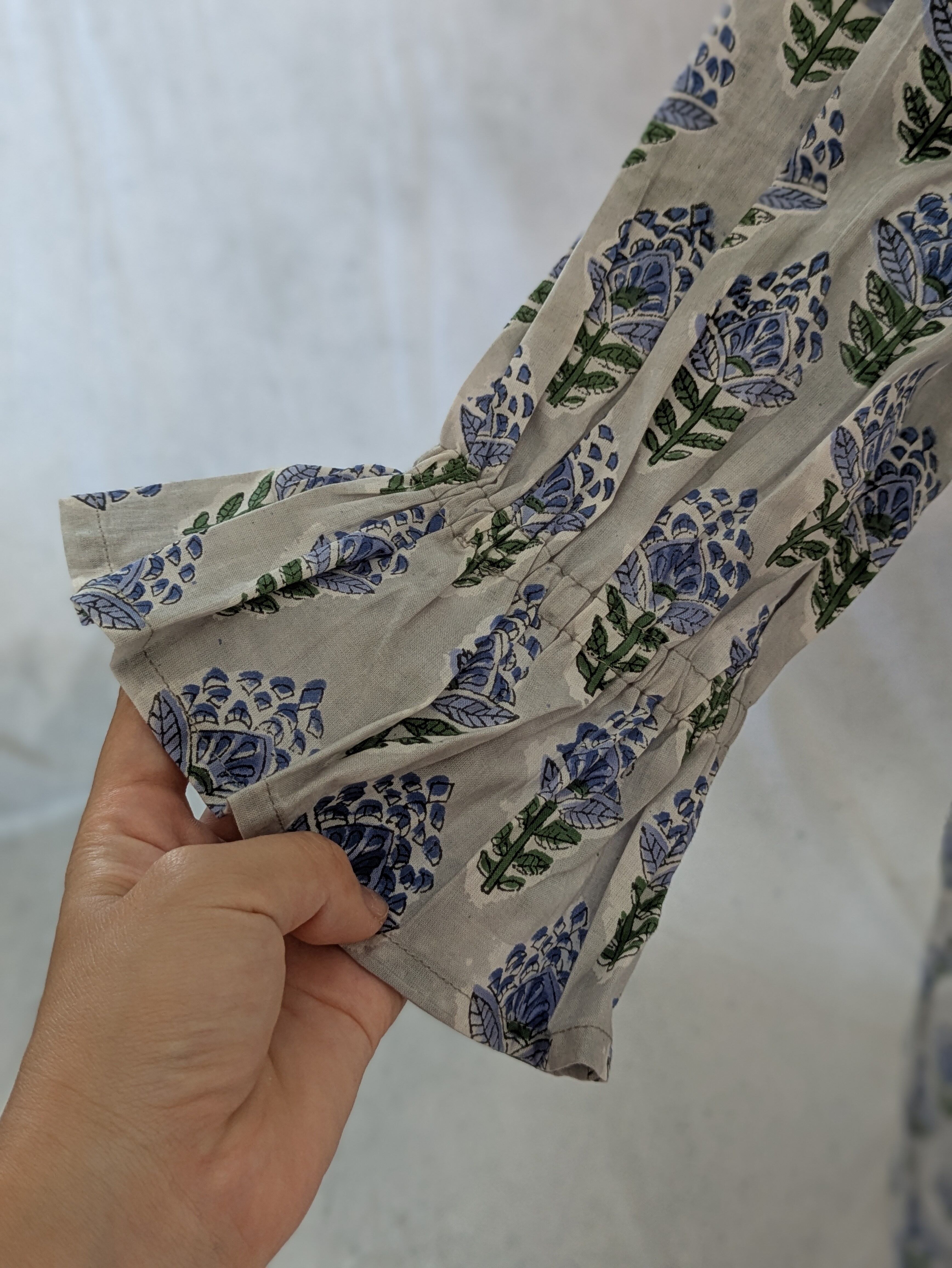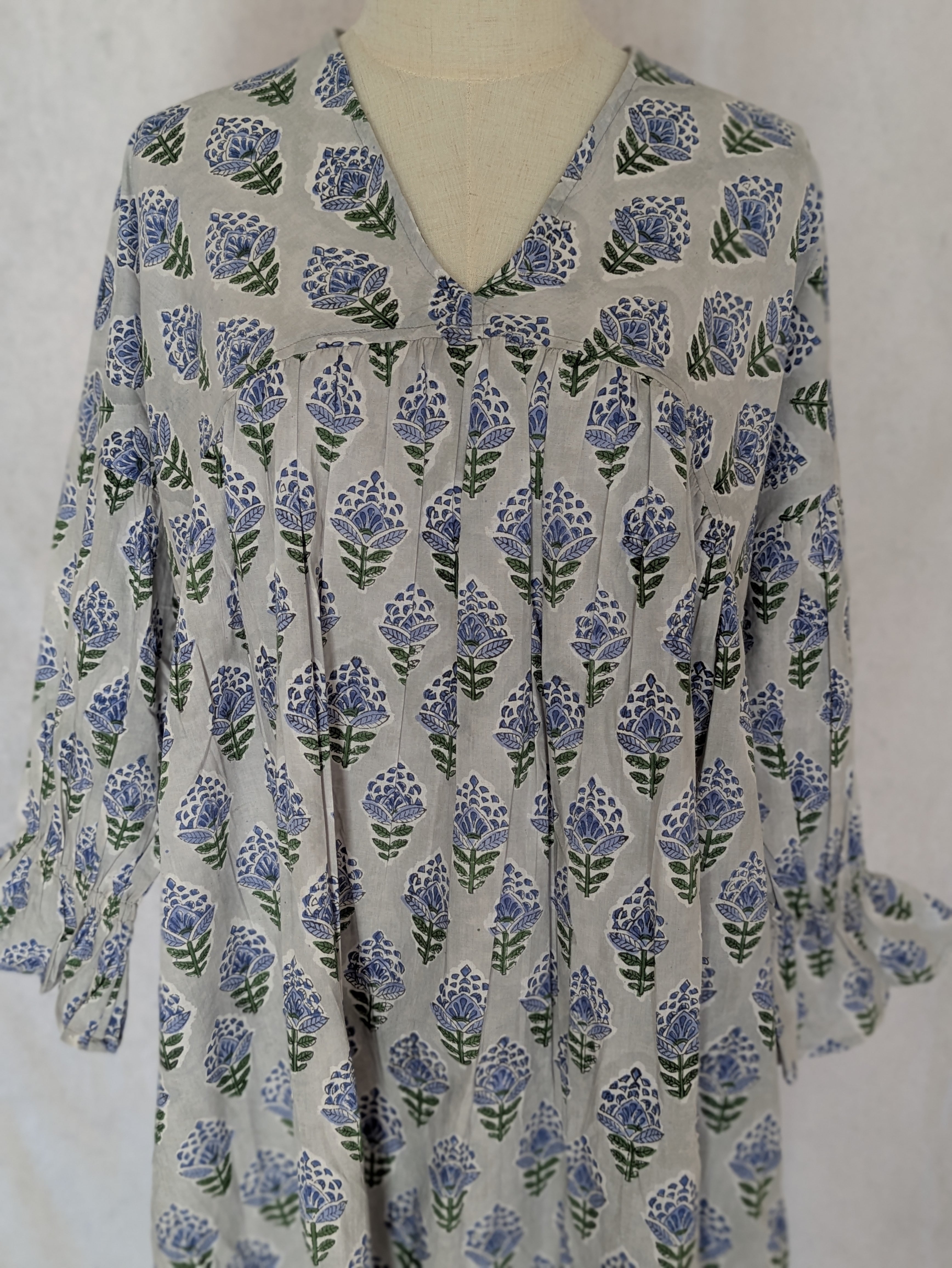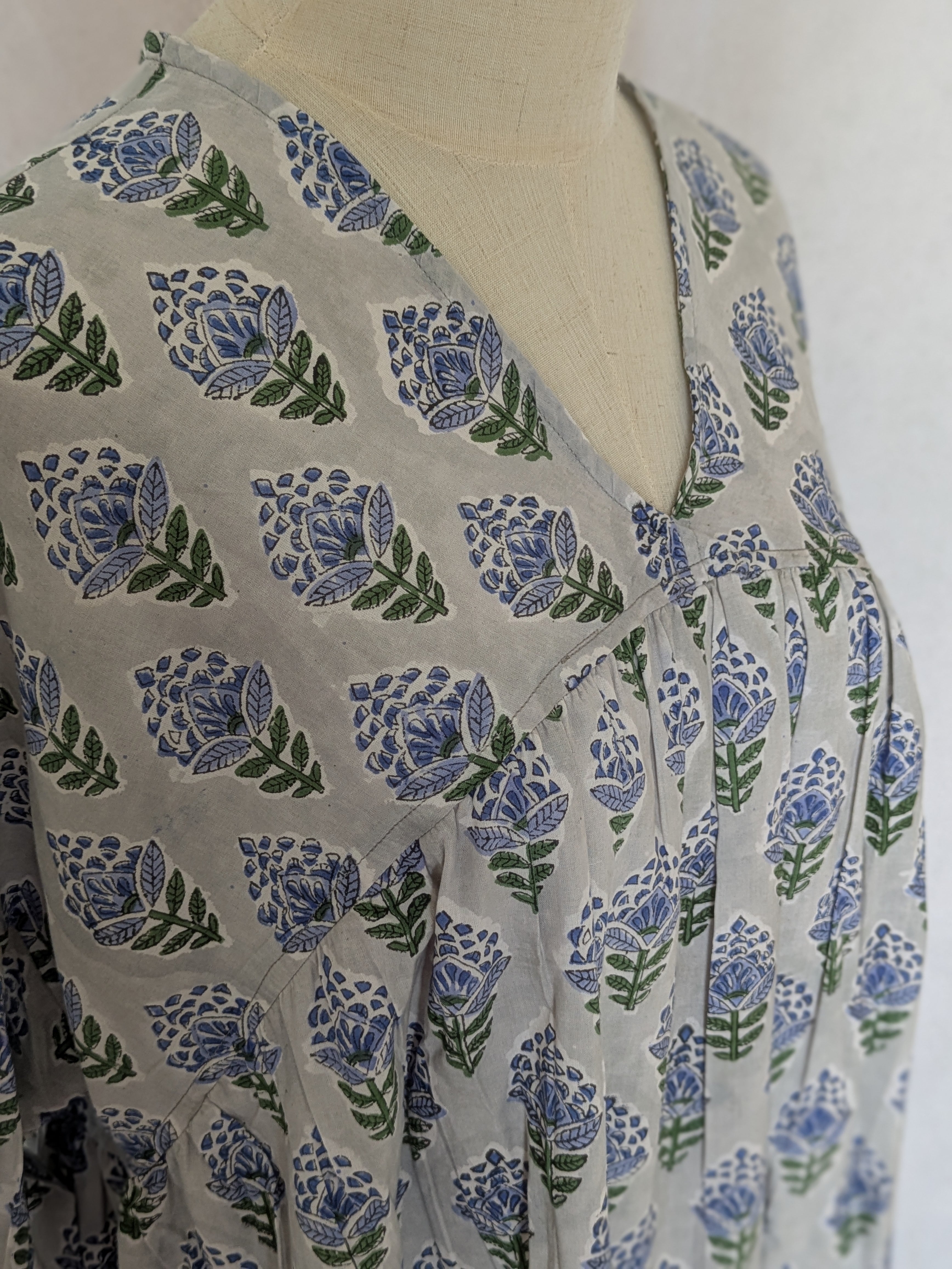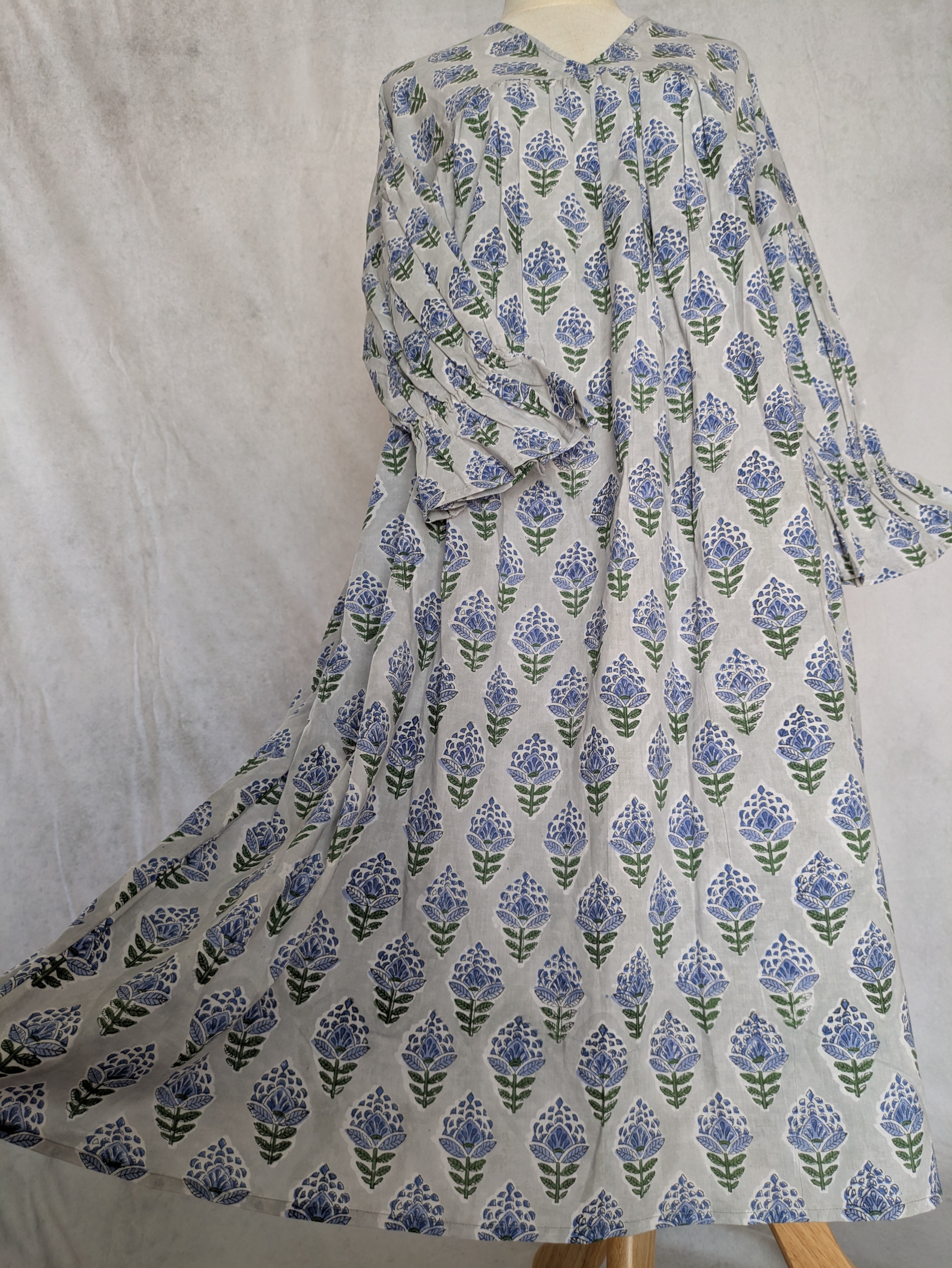 こちらは、インドの伝統工芸であるハンドブロックプリントで作られたワンピースです。