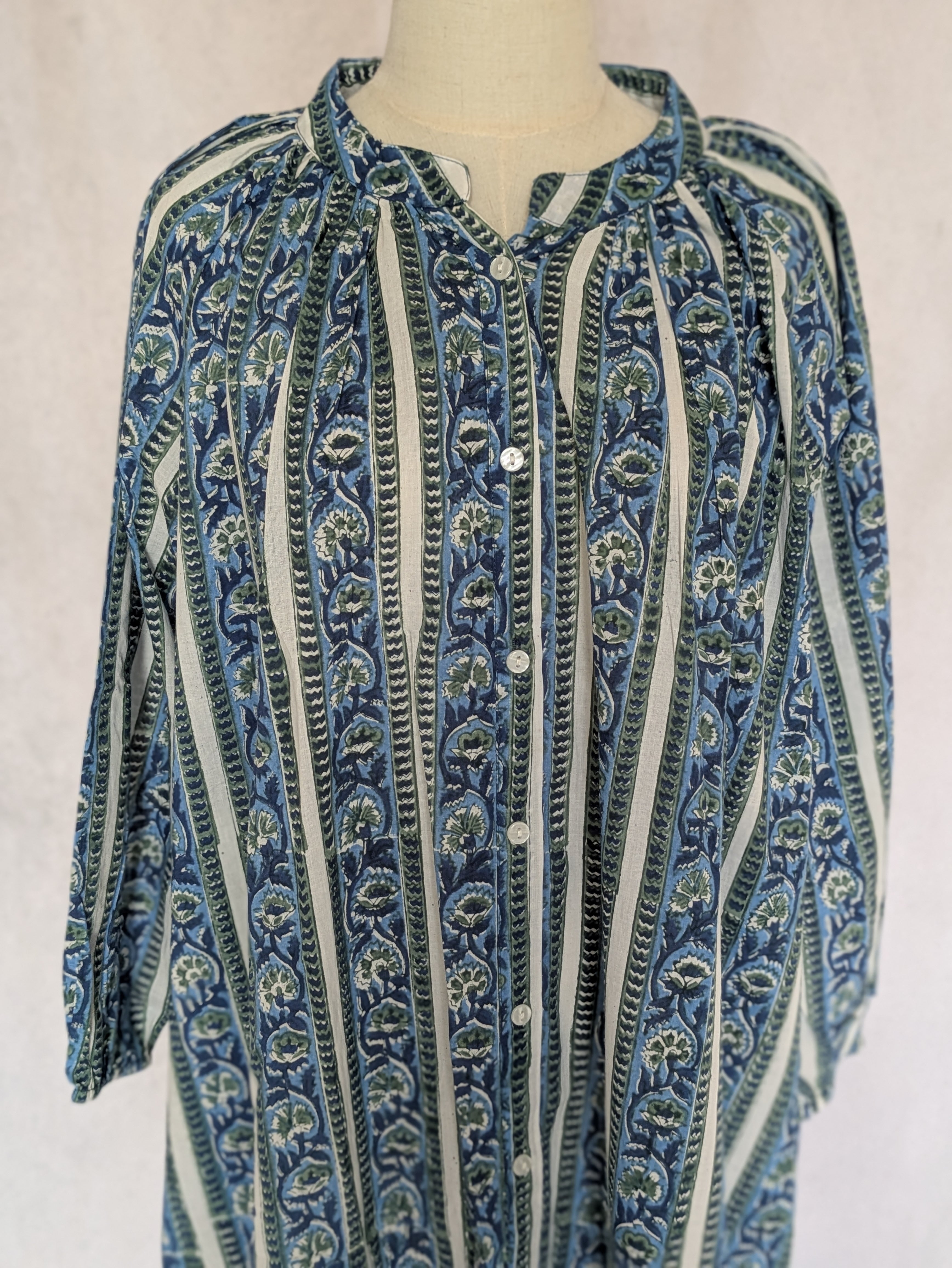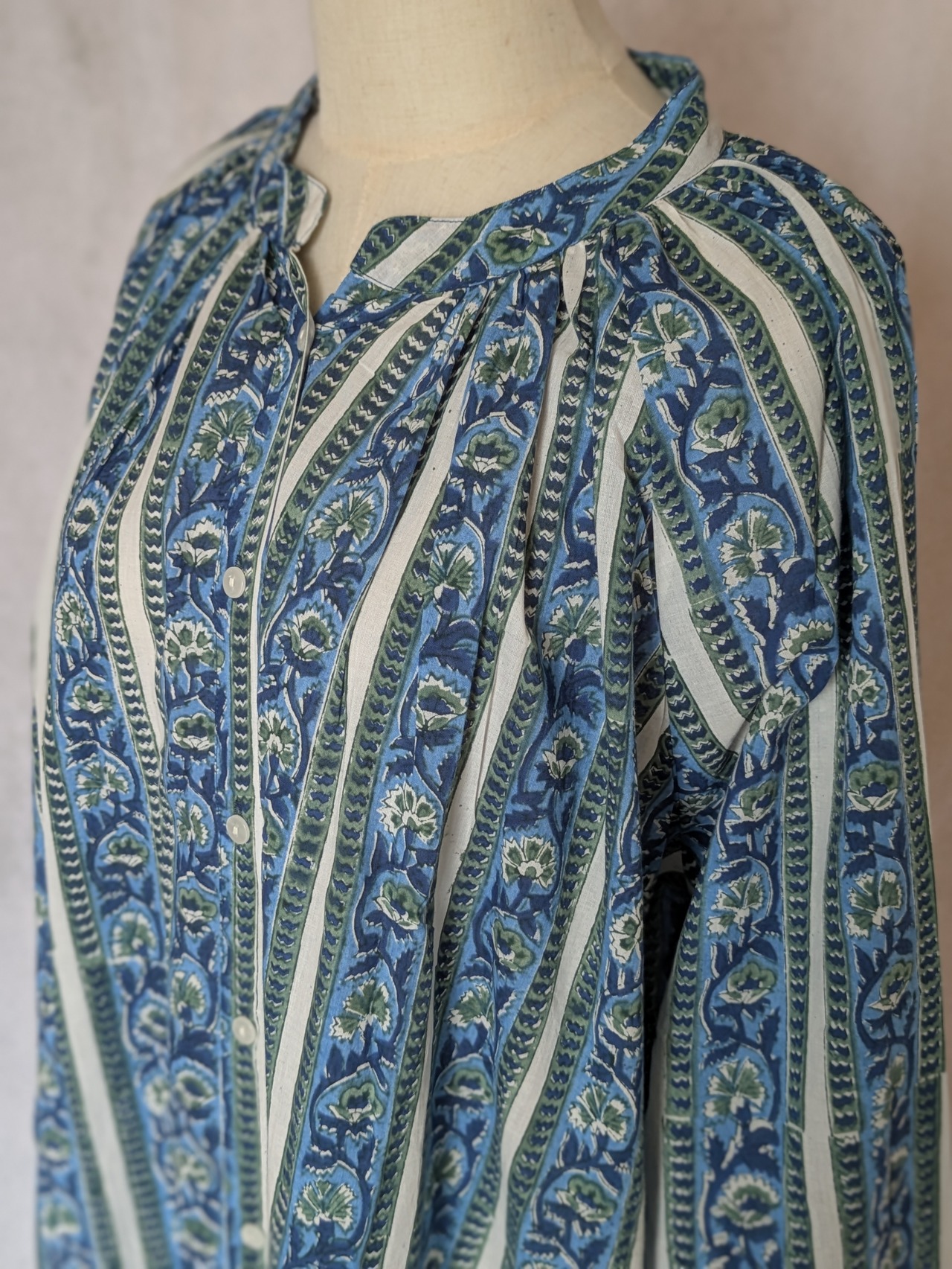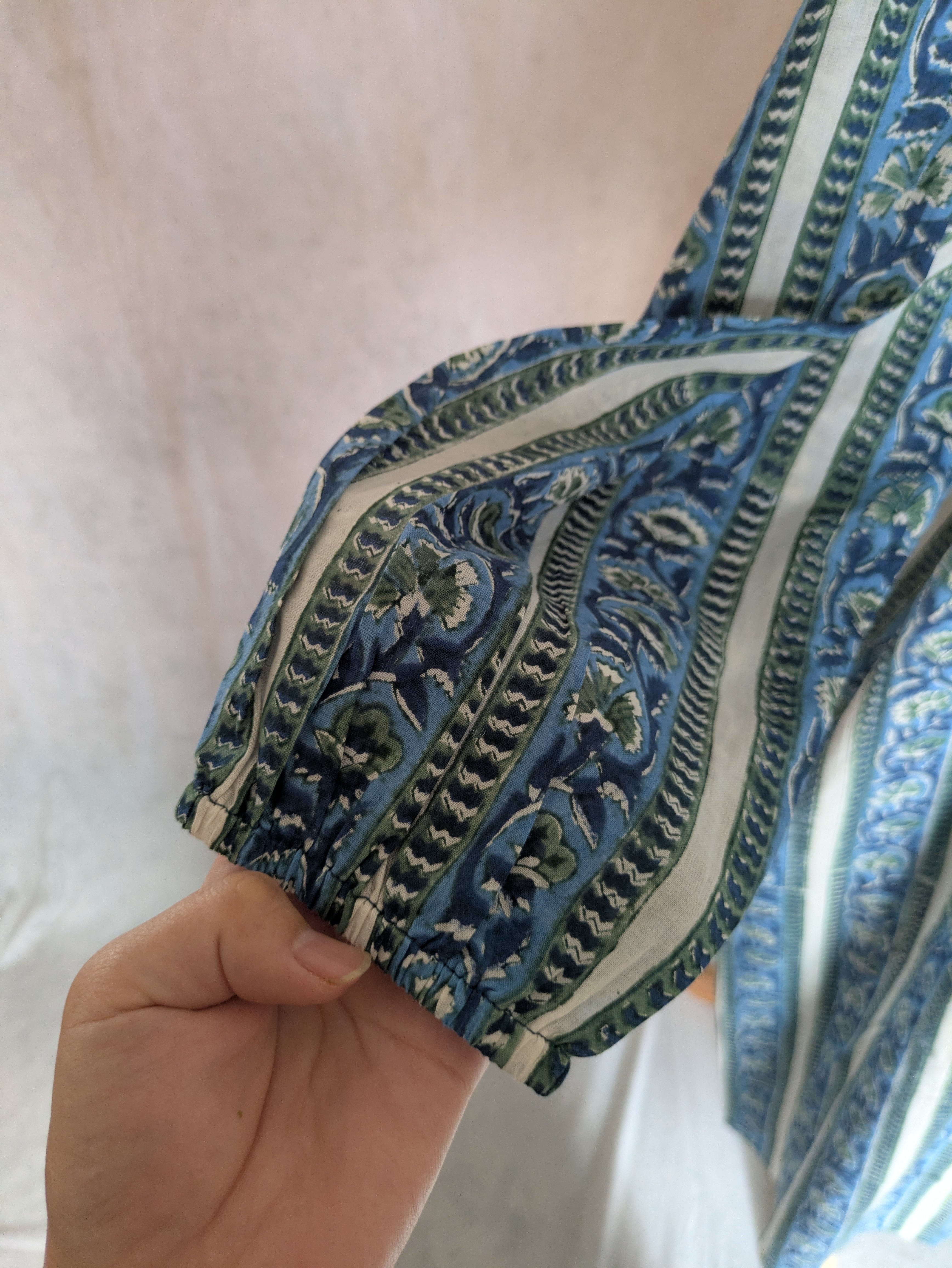 こちらは、インドの伝統工芸であるハンドブロックプリントで作られたワンピースです。