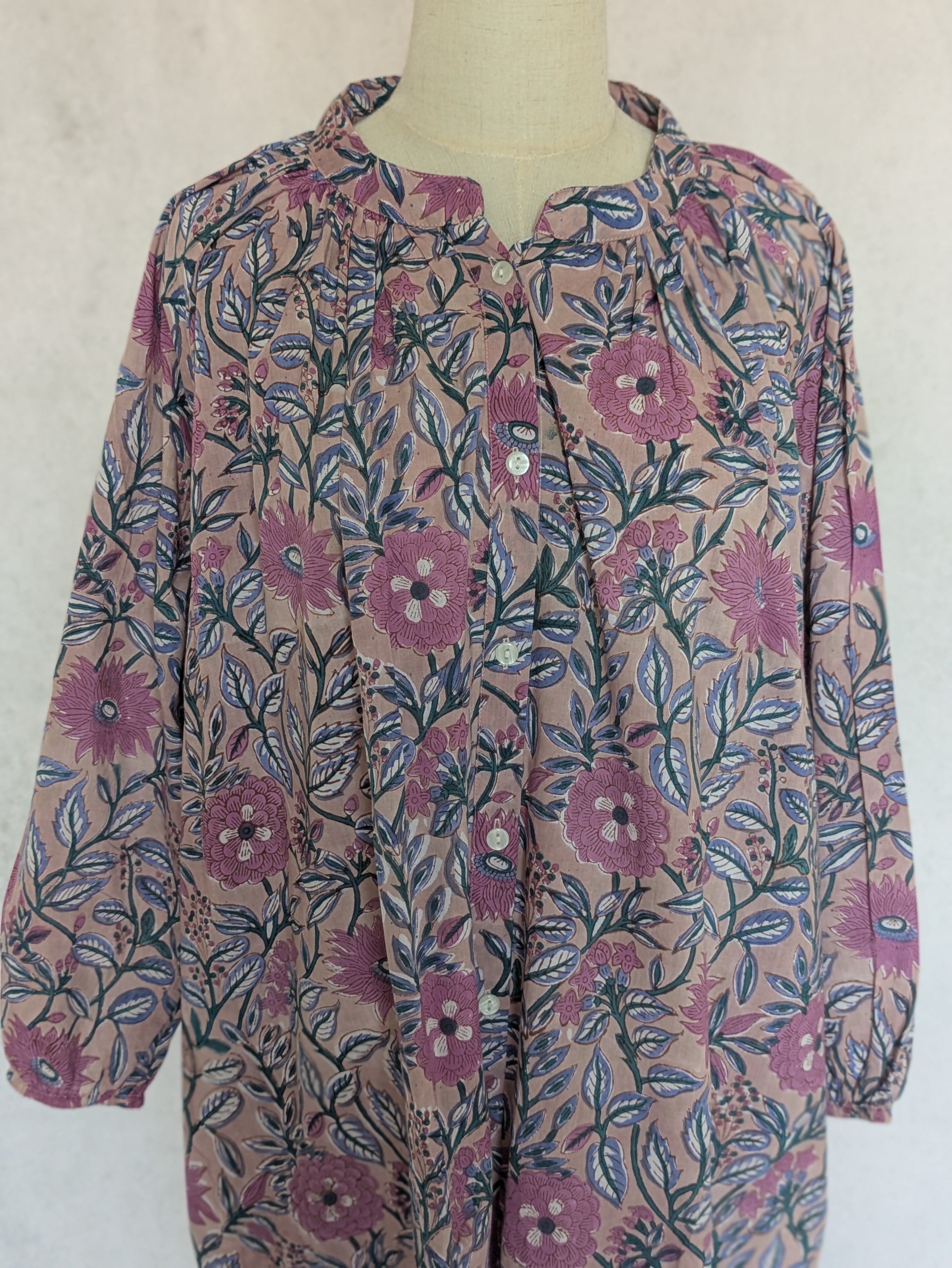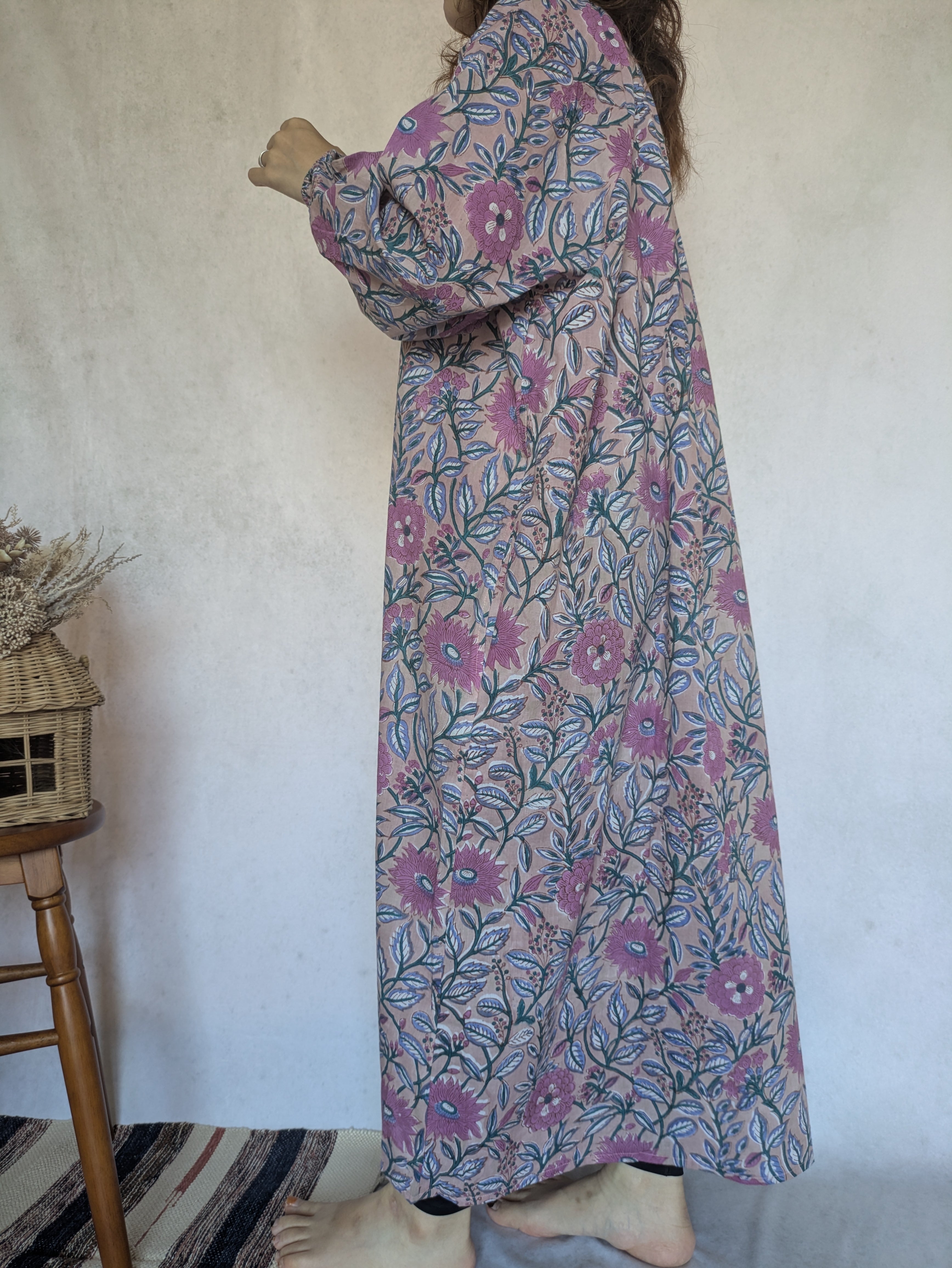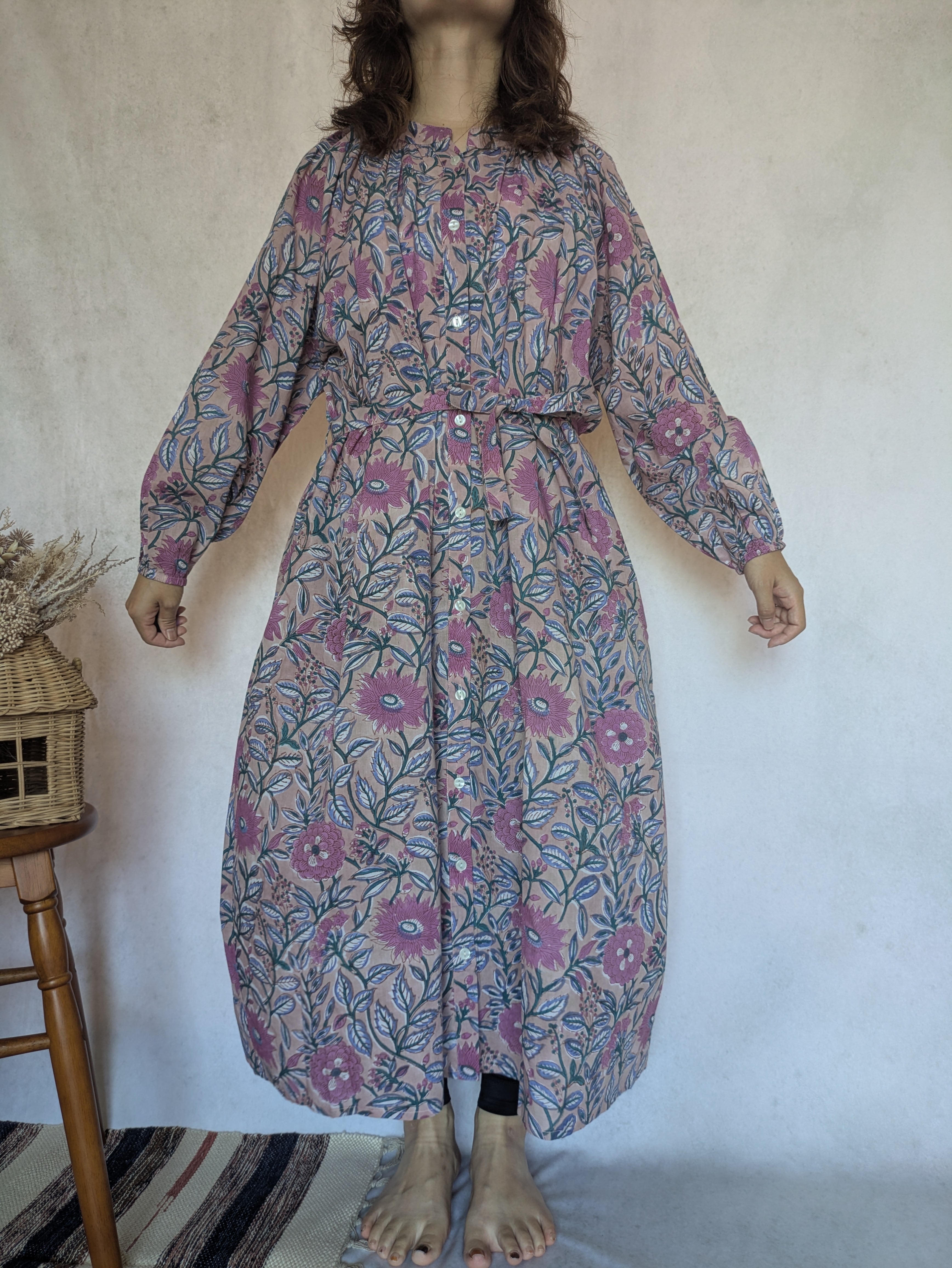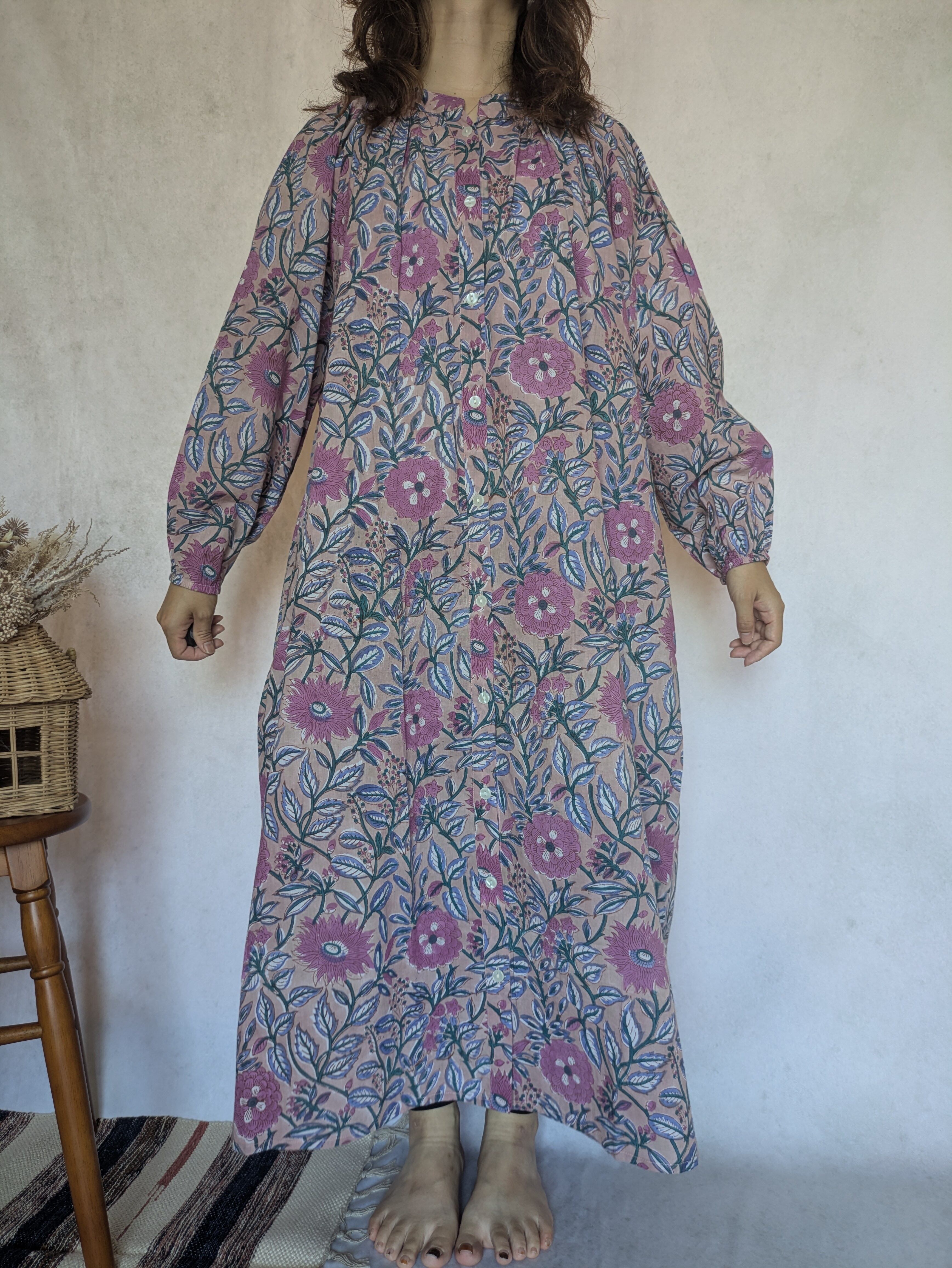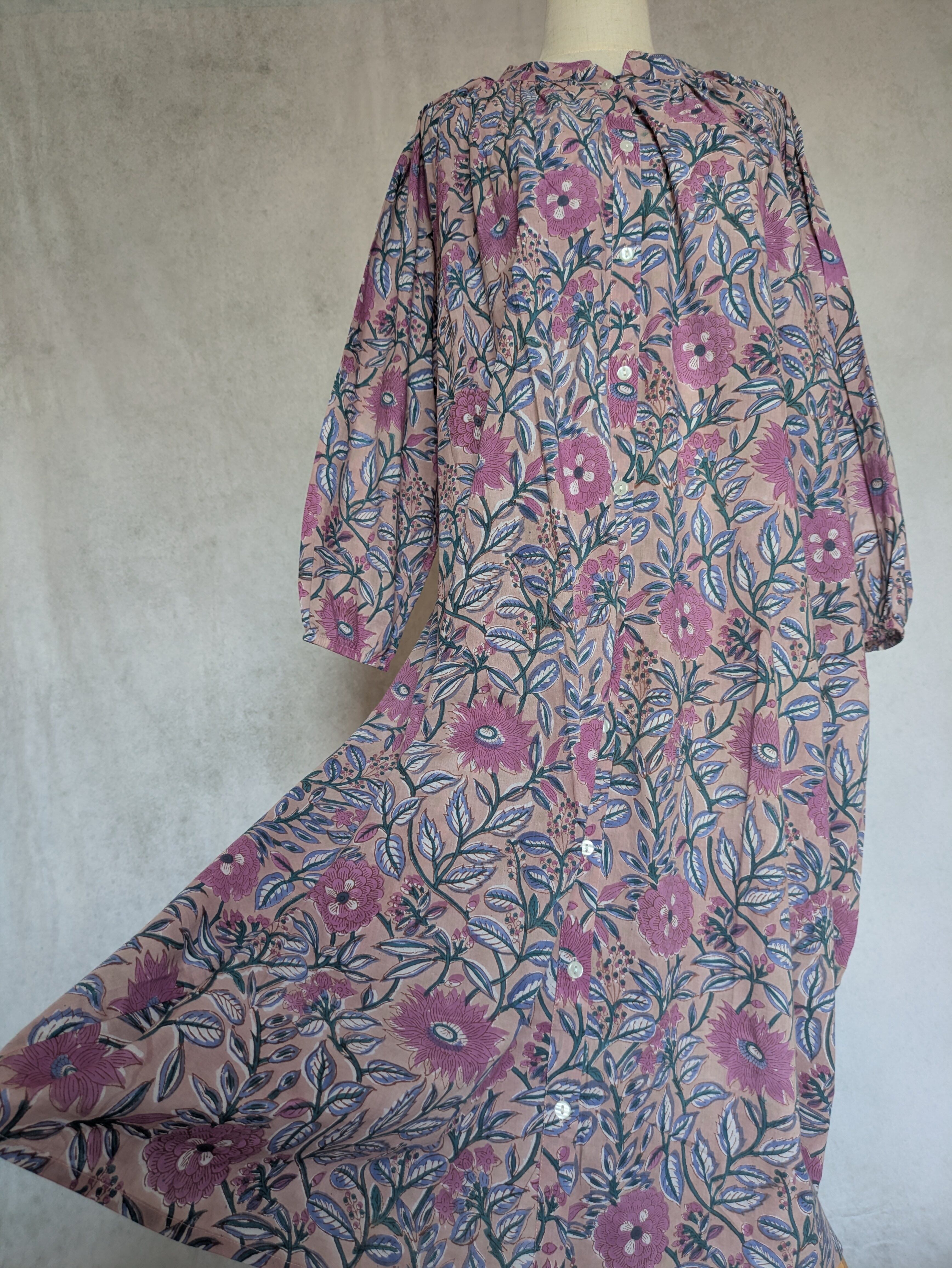 こちらは、インドの伝統工芸であるハンドブロックプリントで作られたワンピースです。