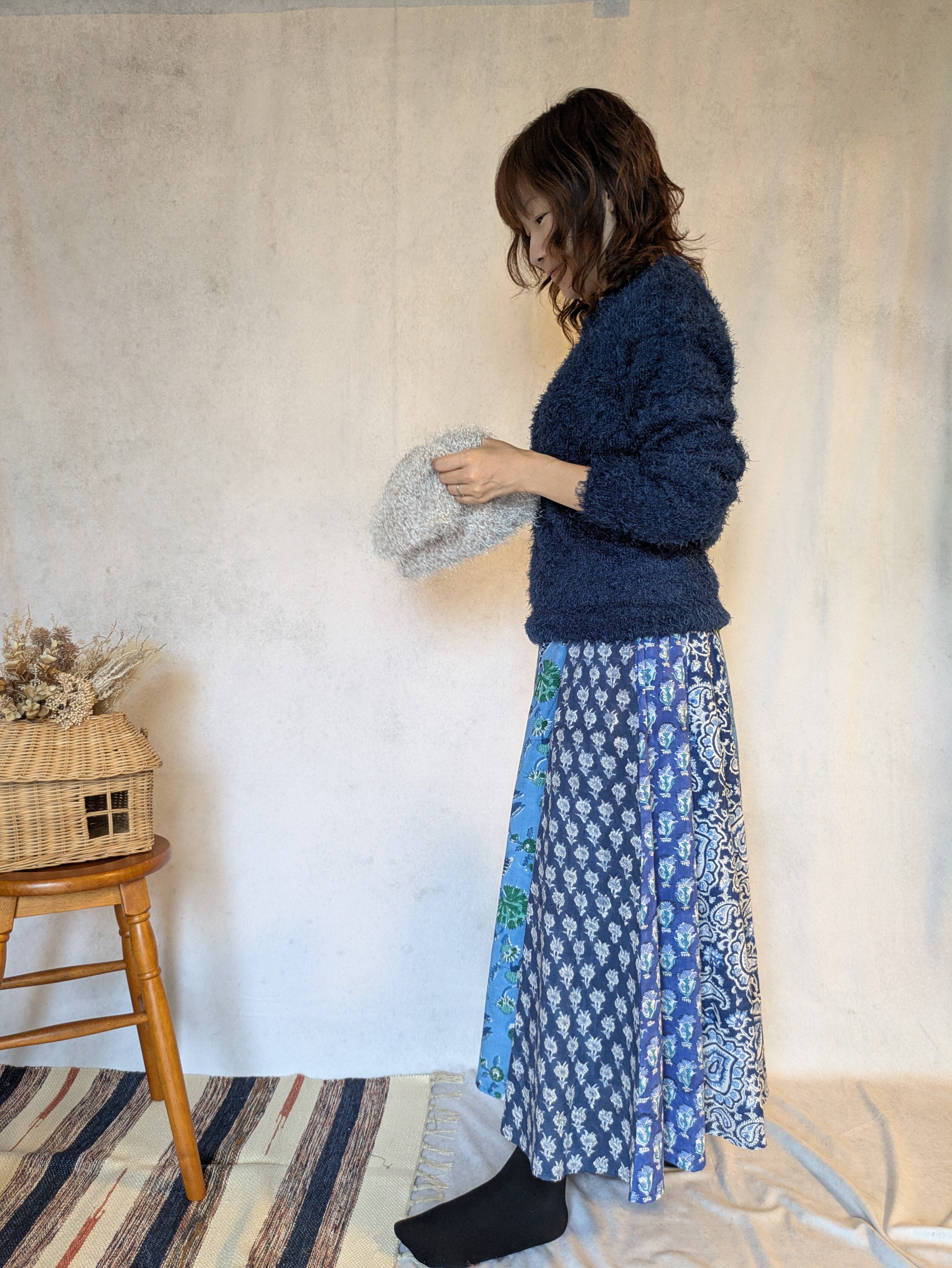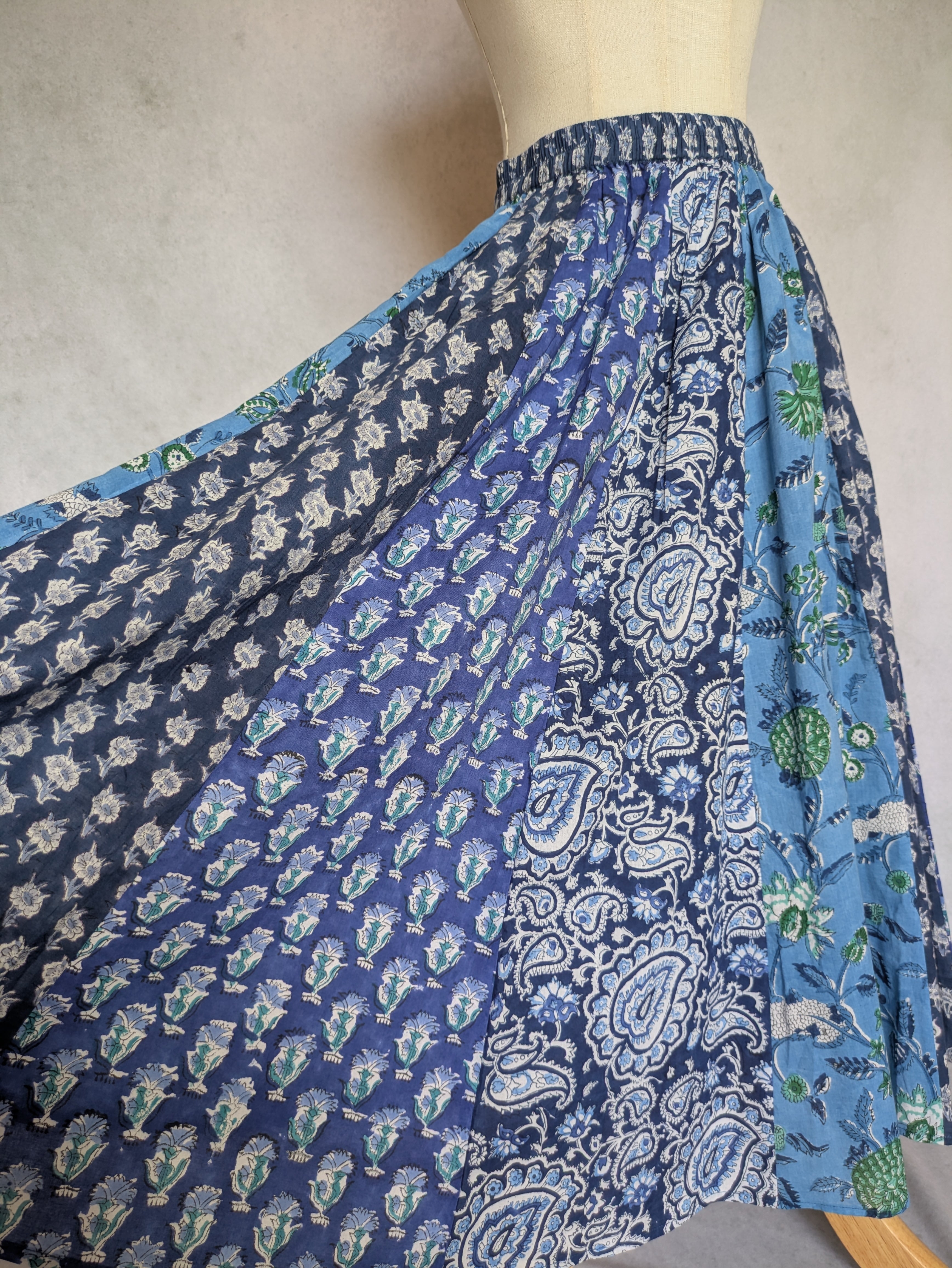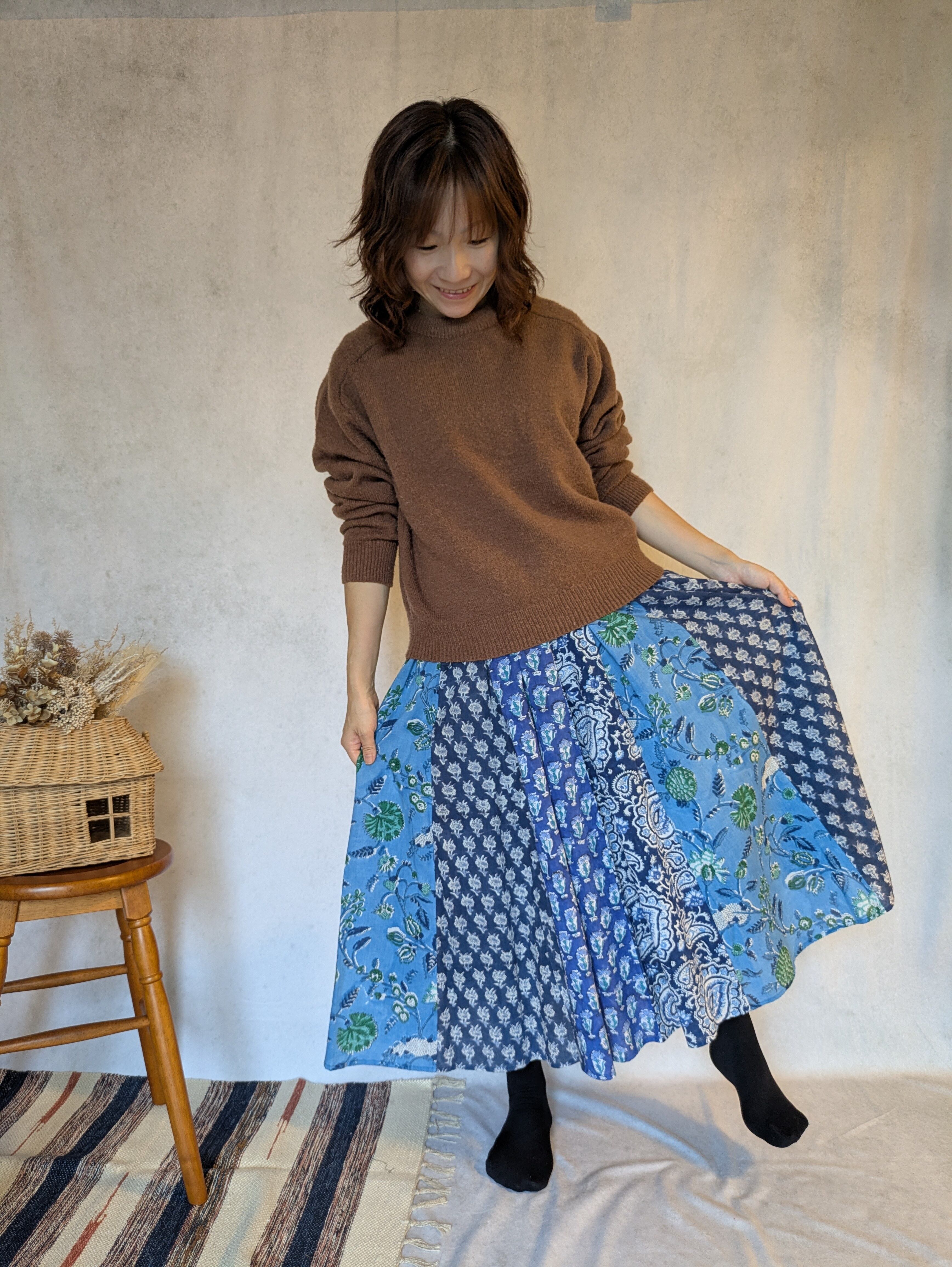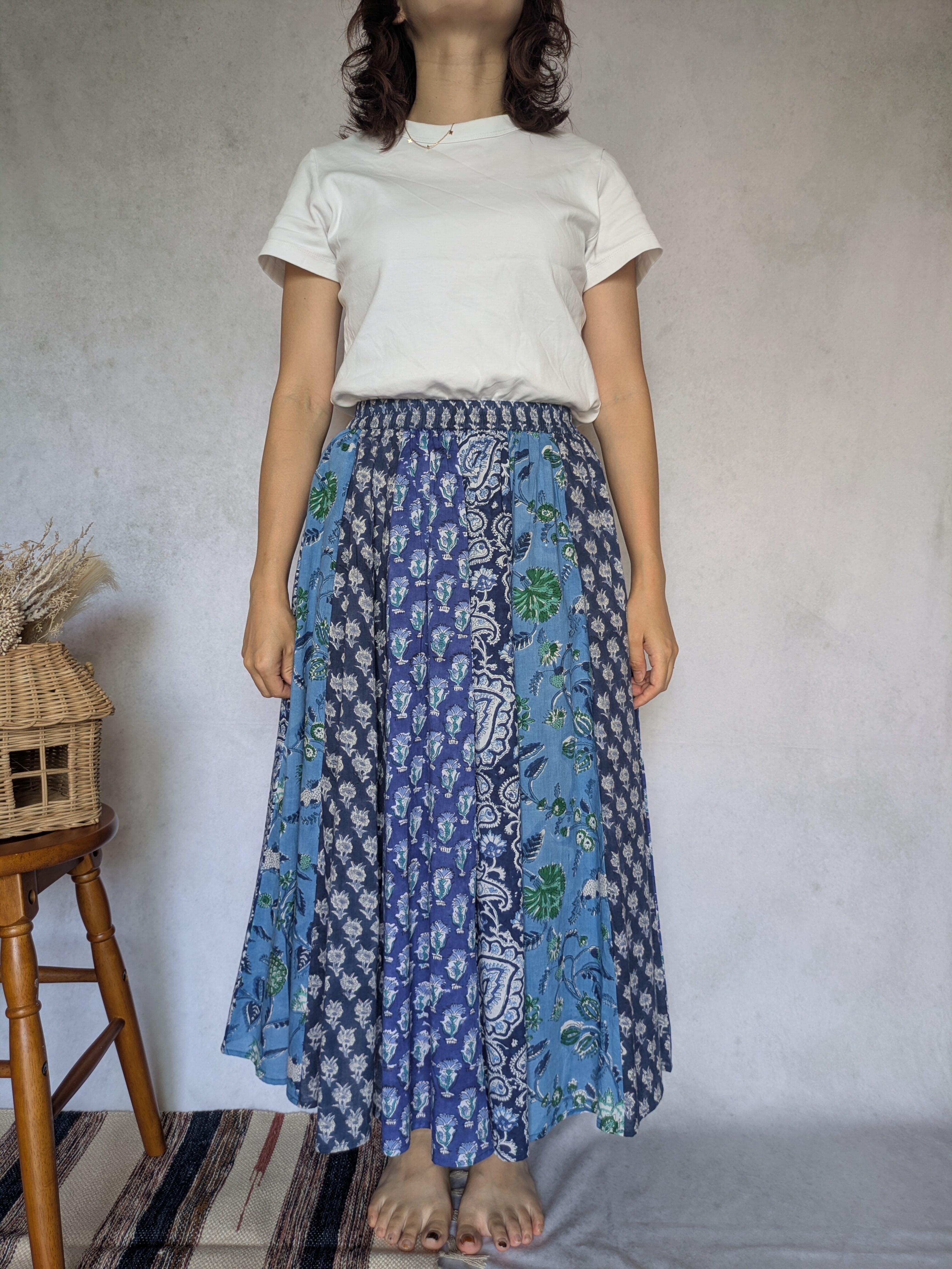 こちらは、インドの伝統工芸であるハンドブロックプリントで作られたスカートです。
