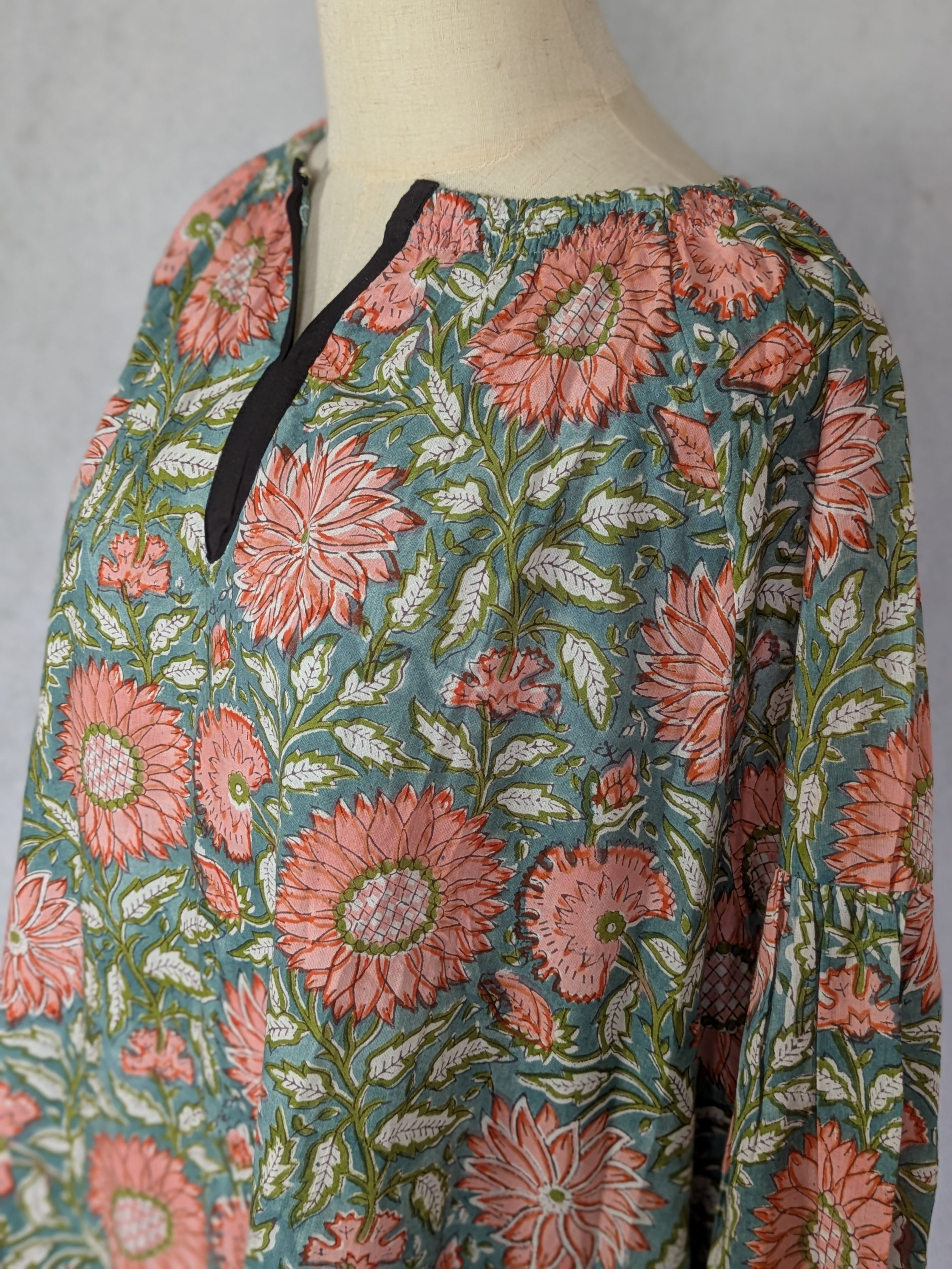 こちらは、インドの伝統工芸であるハンドブロックプリントで作られたスカートです。