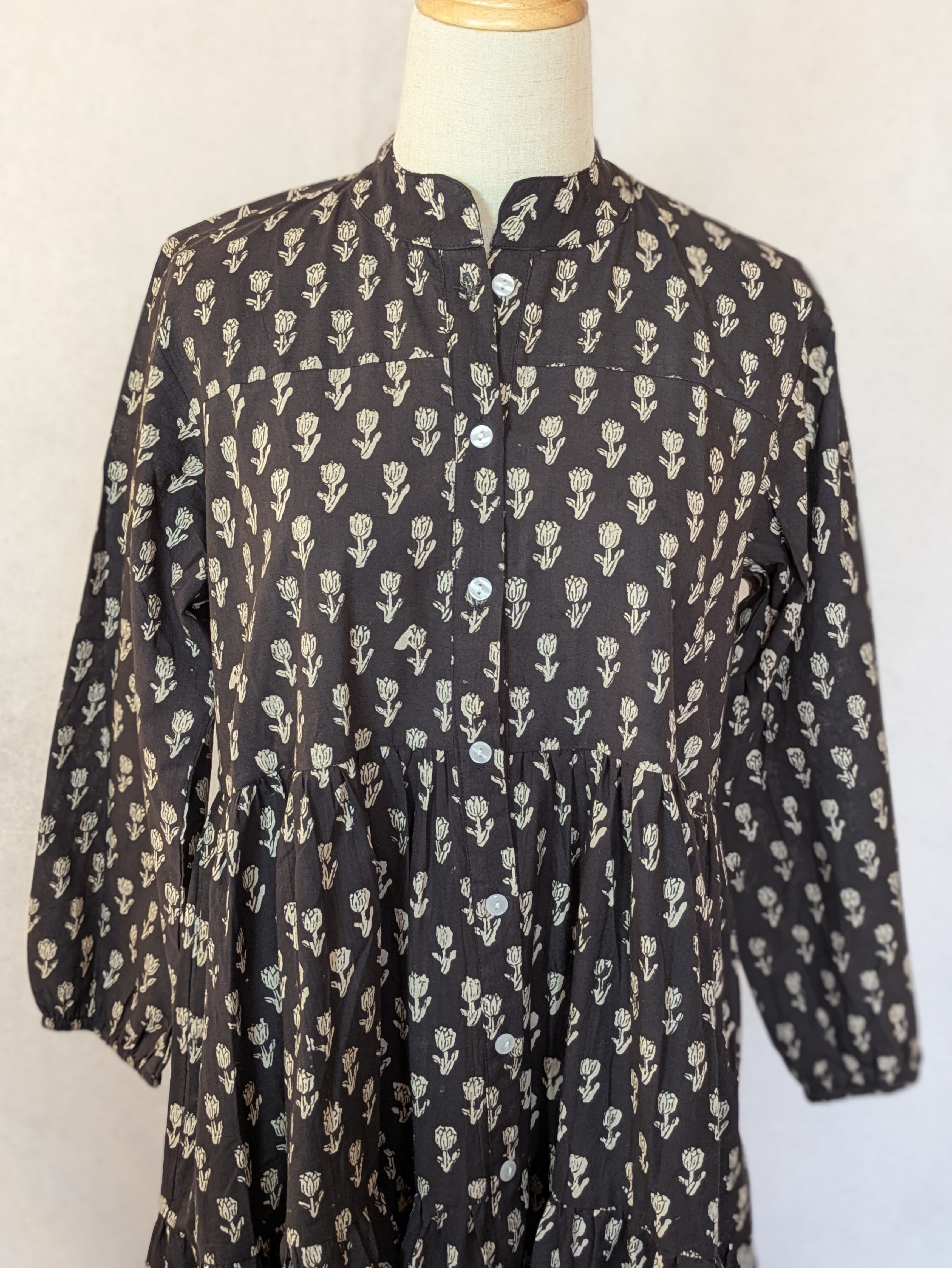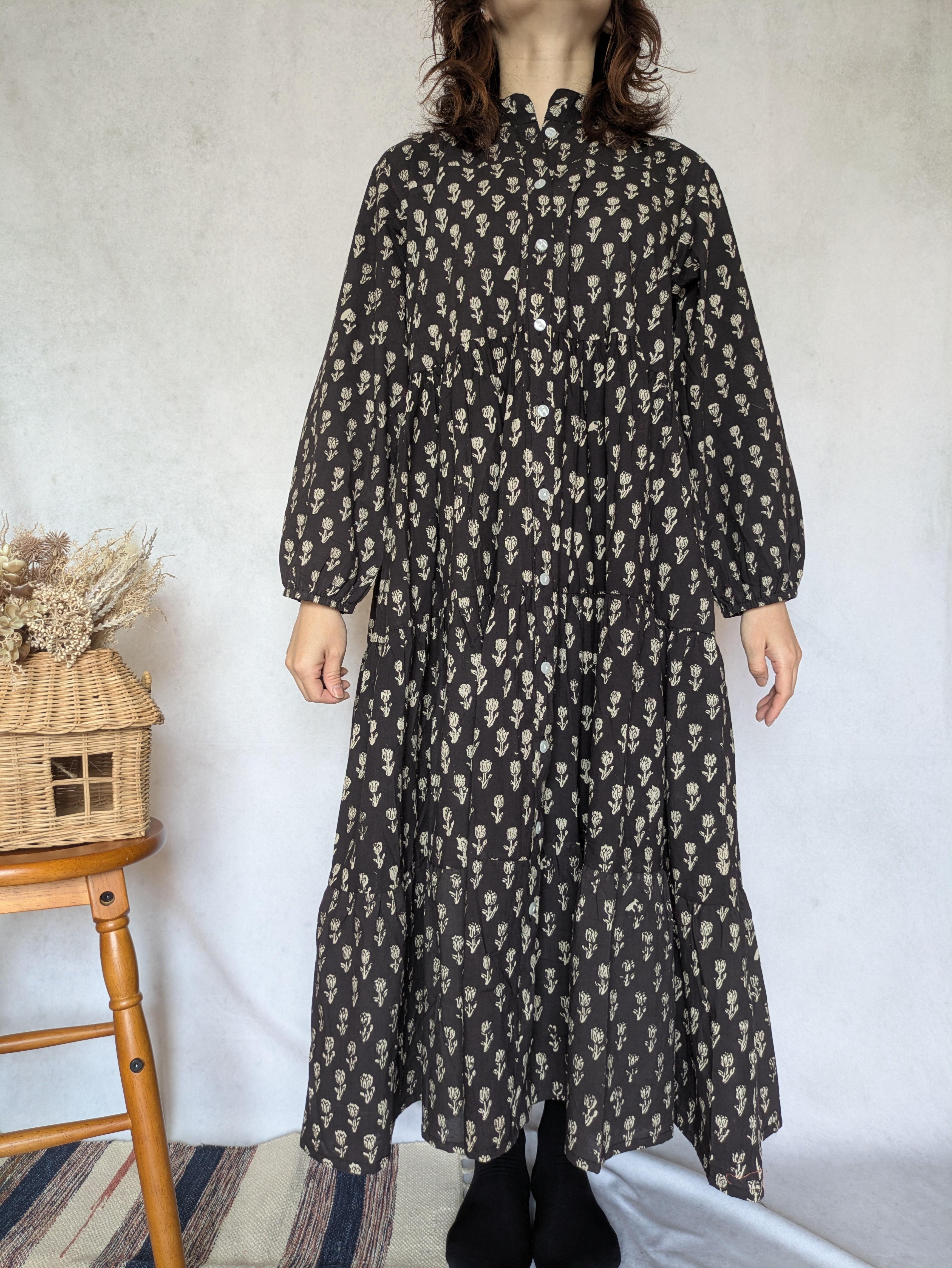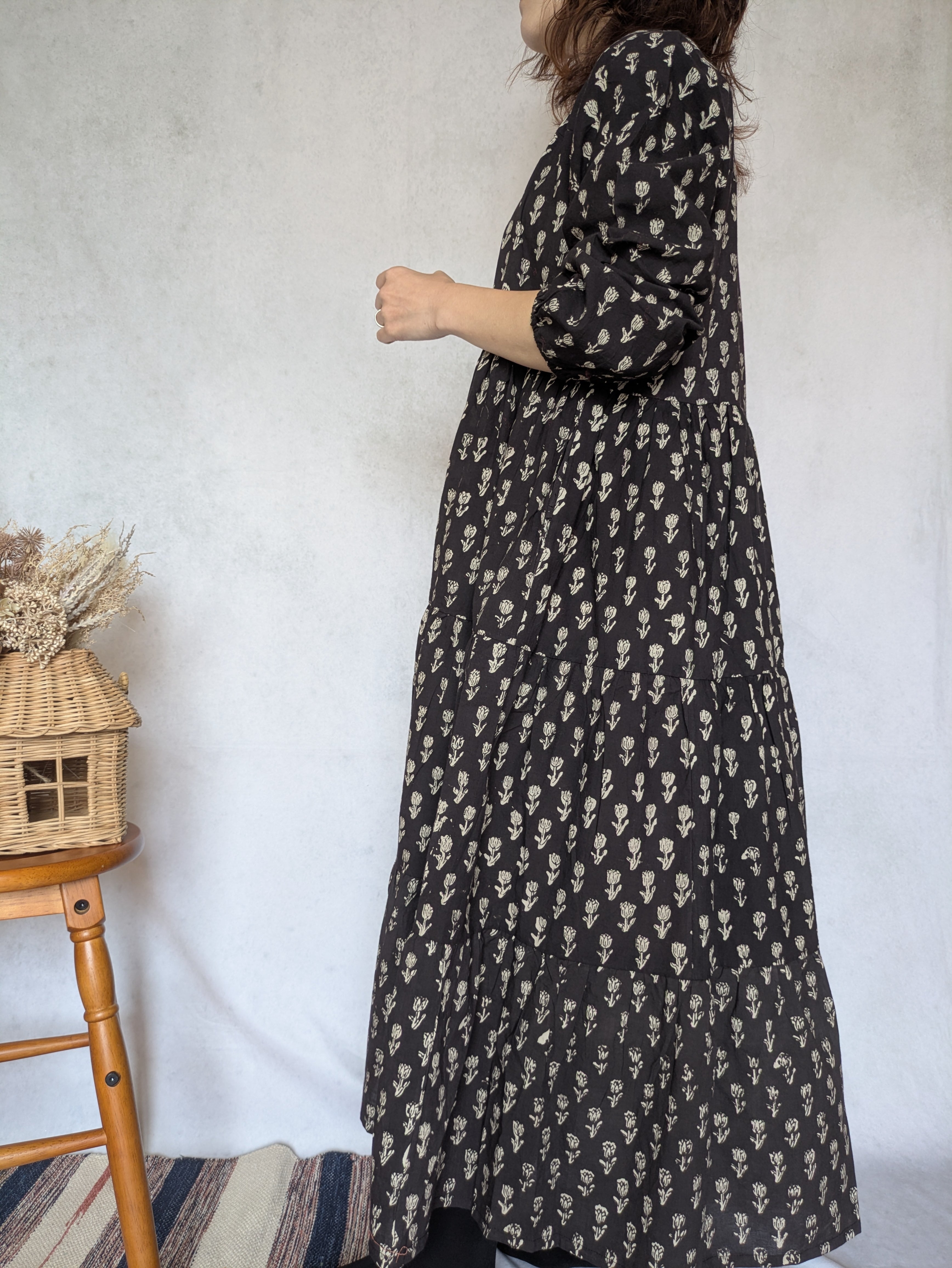こちらは、インドの伝統工芸であるハンドブロックプリントで作られたワンピースです。