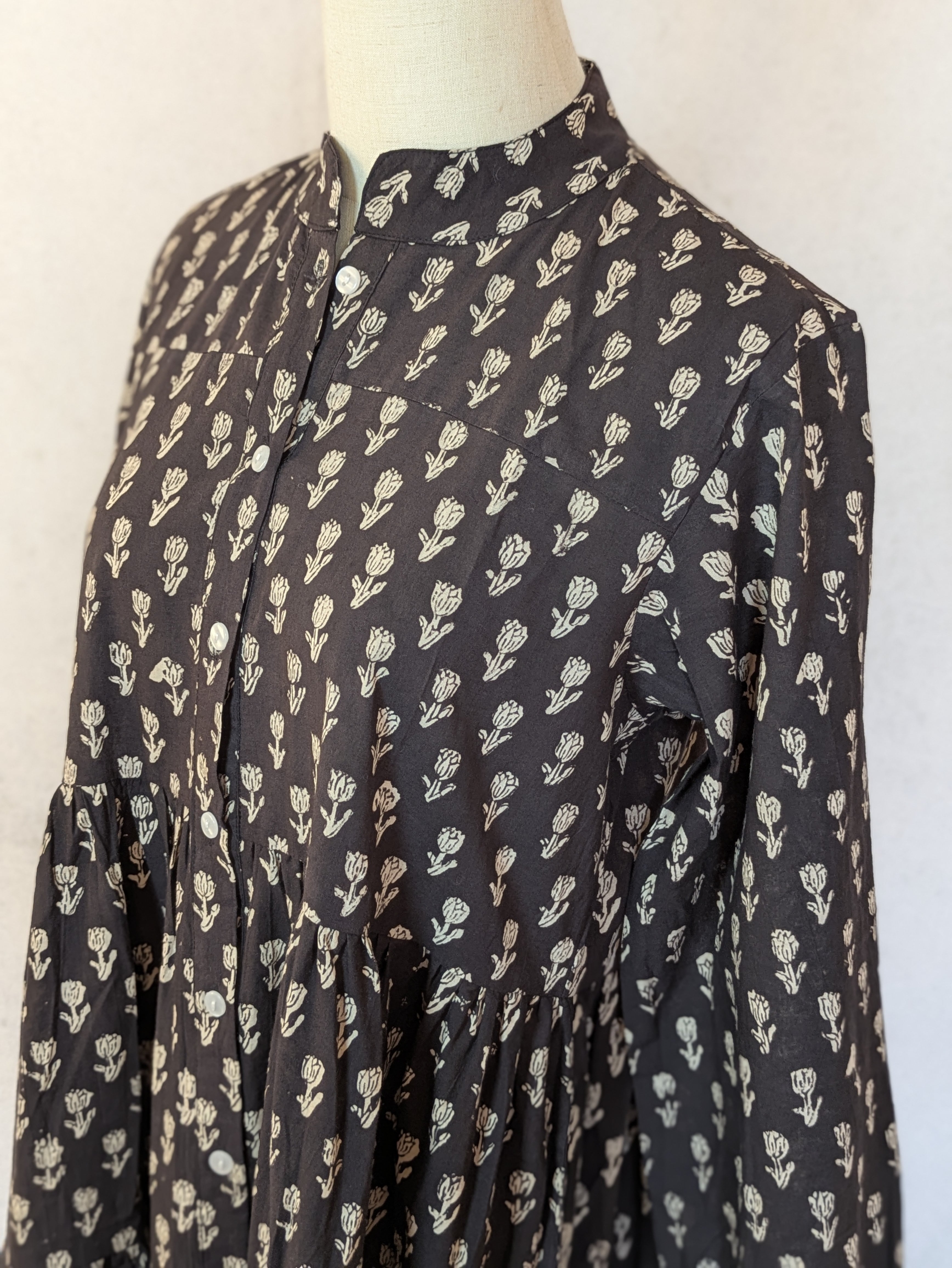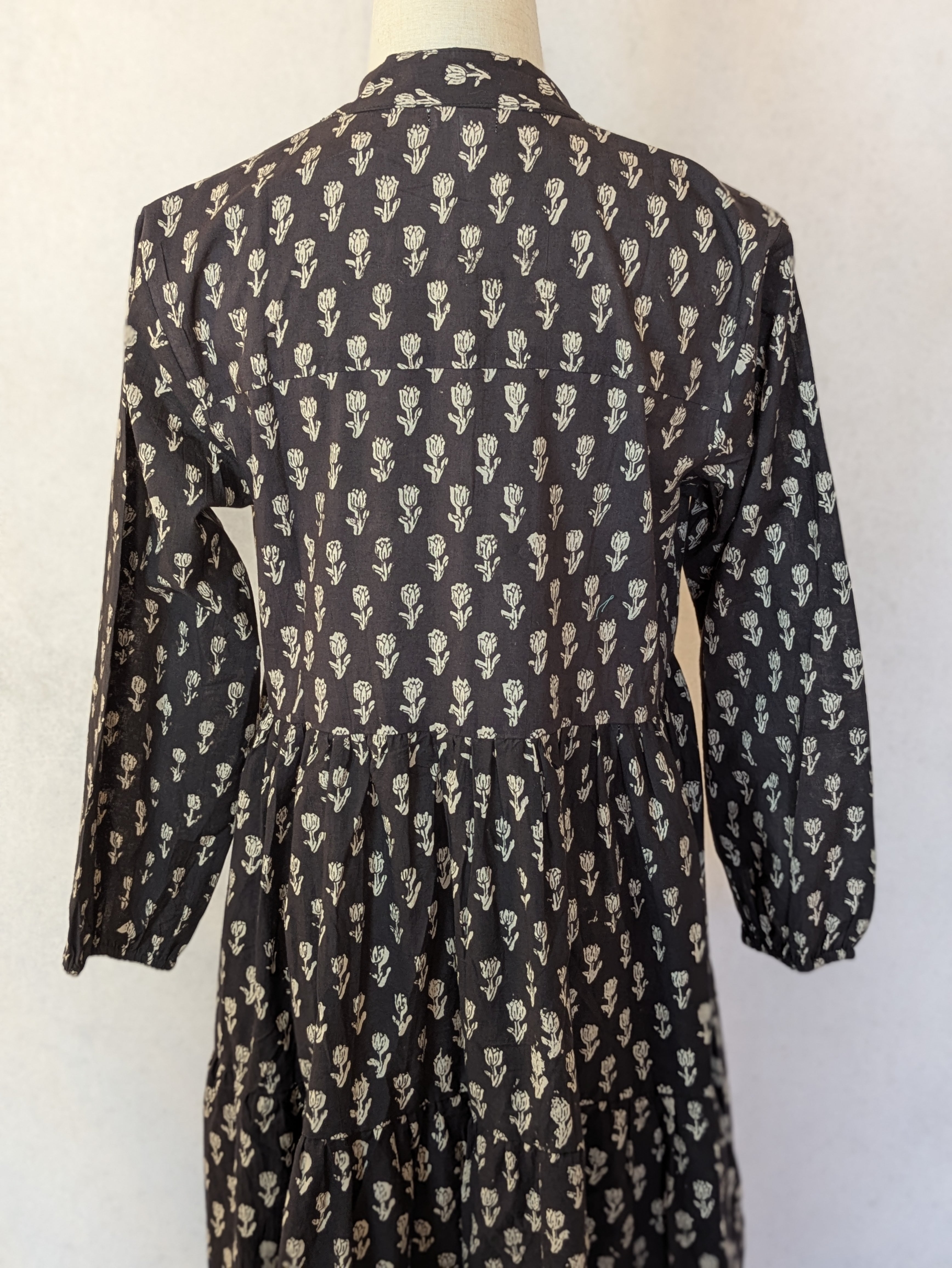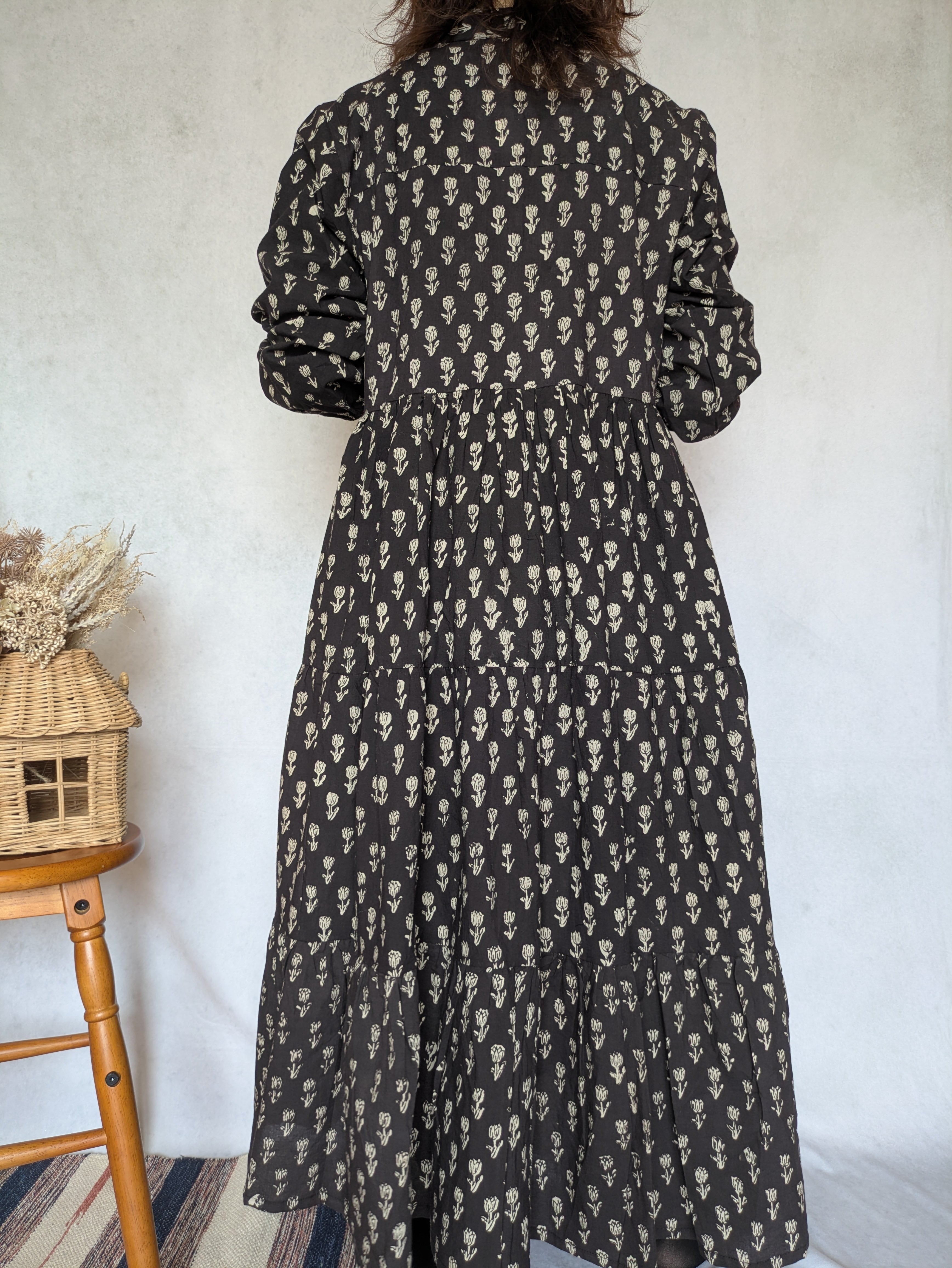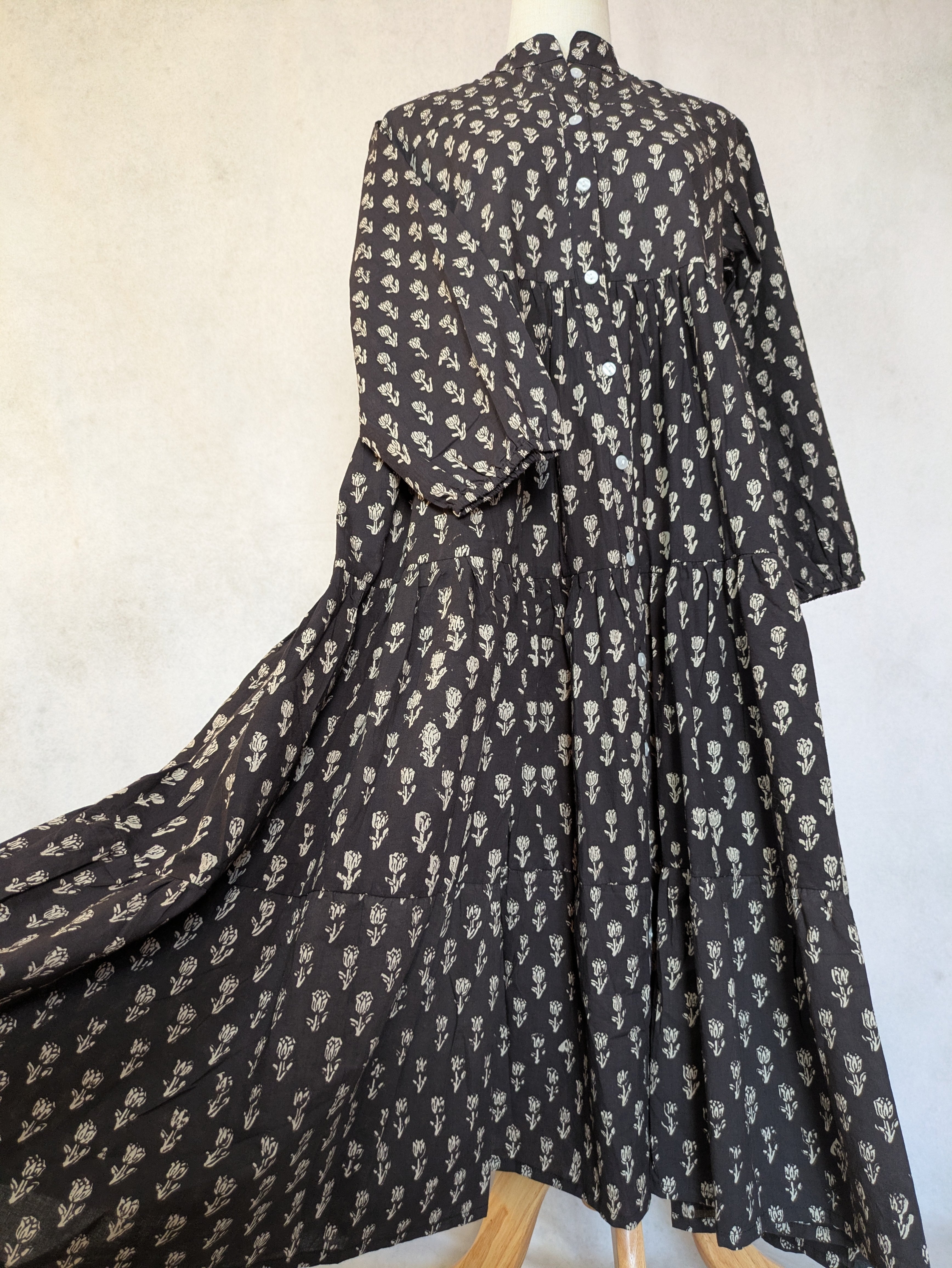 こちらは、インドの伝統工芸であるハンドブロックプリントで作られたワンピースです。