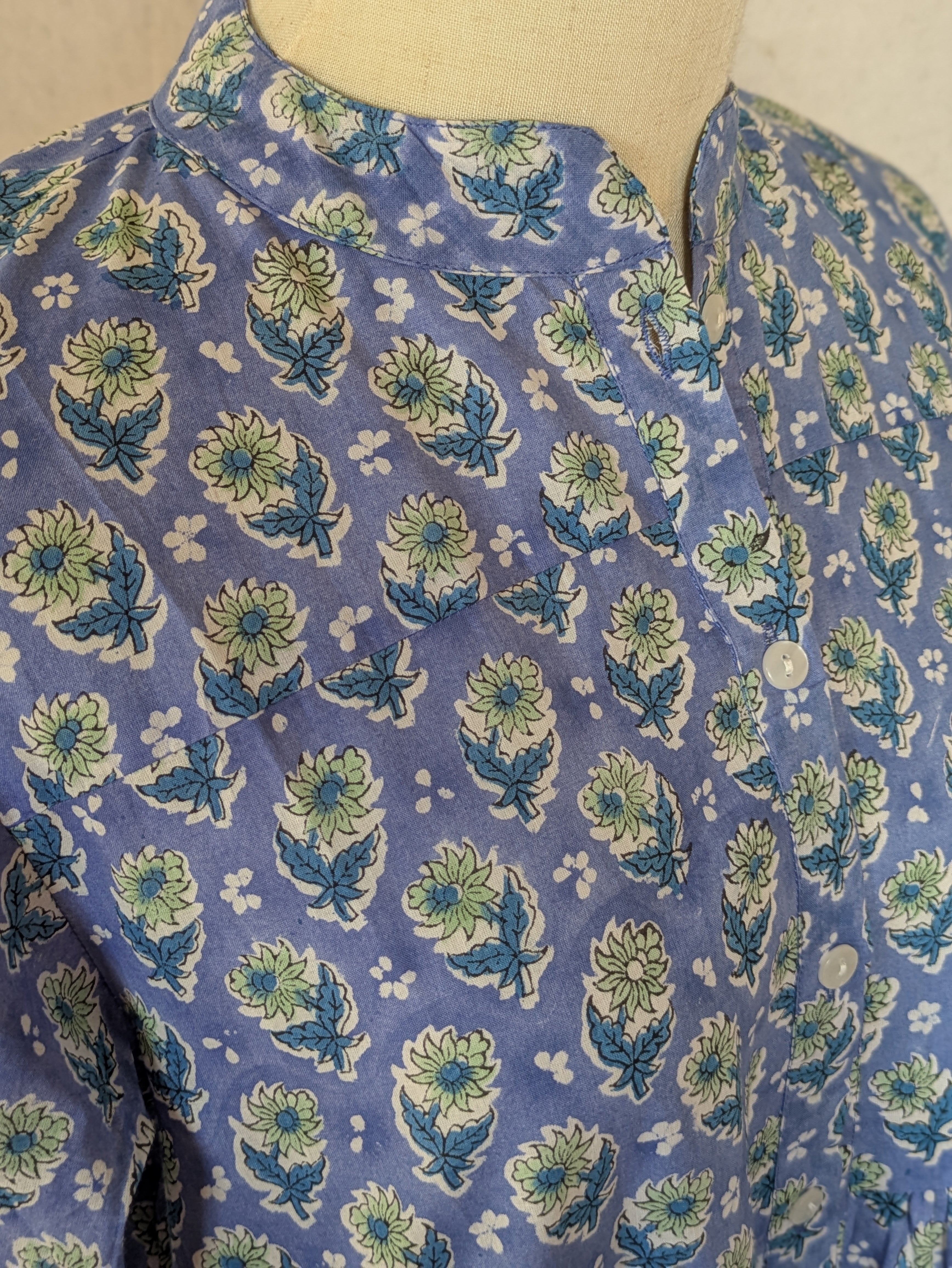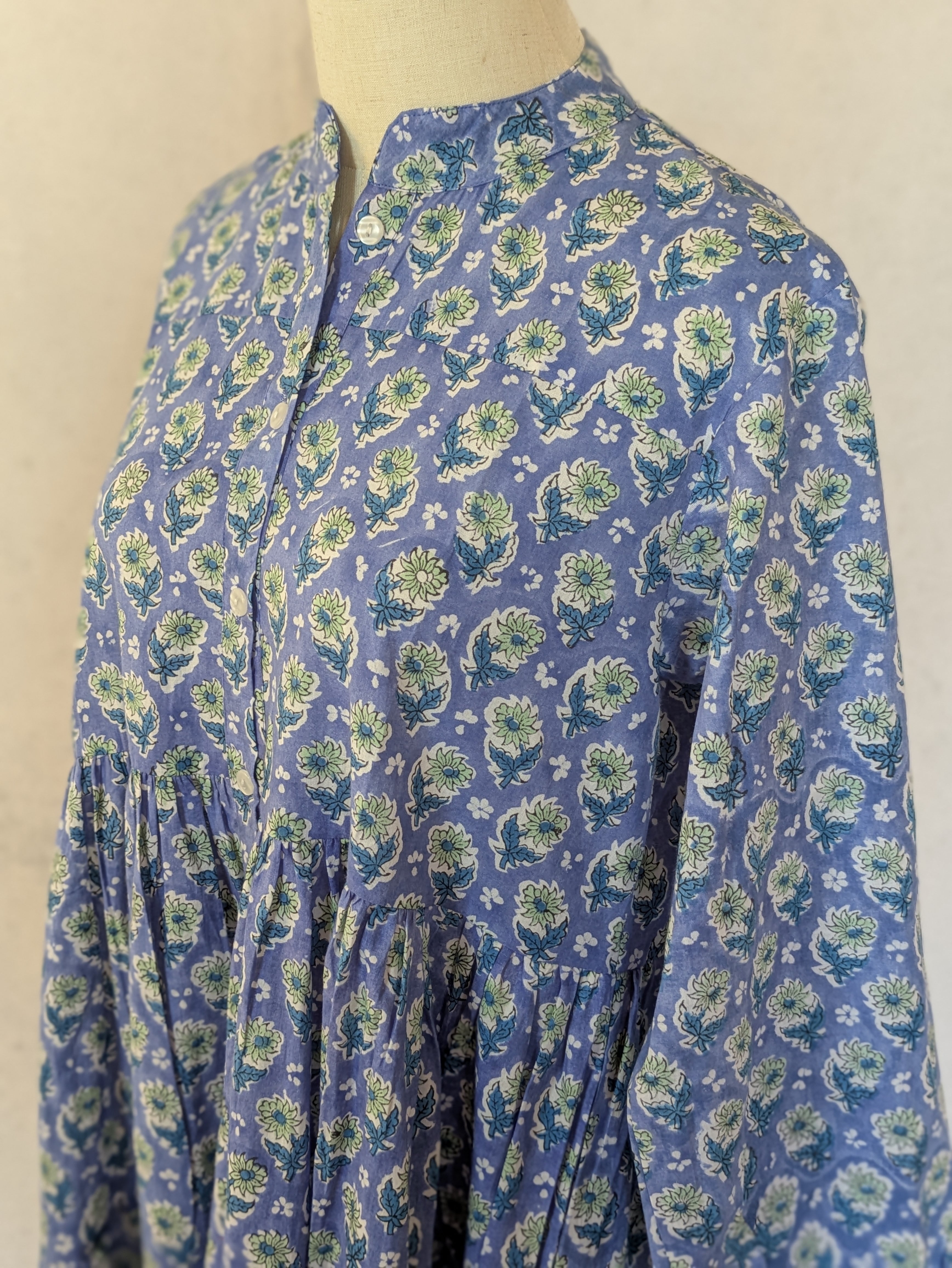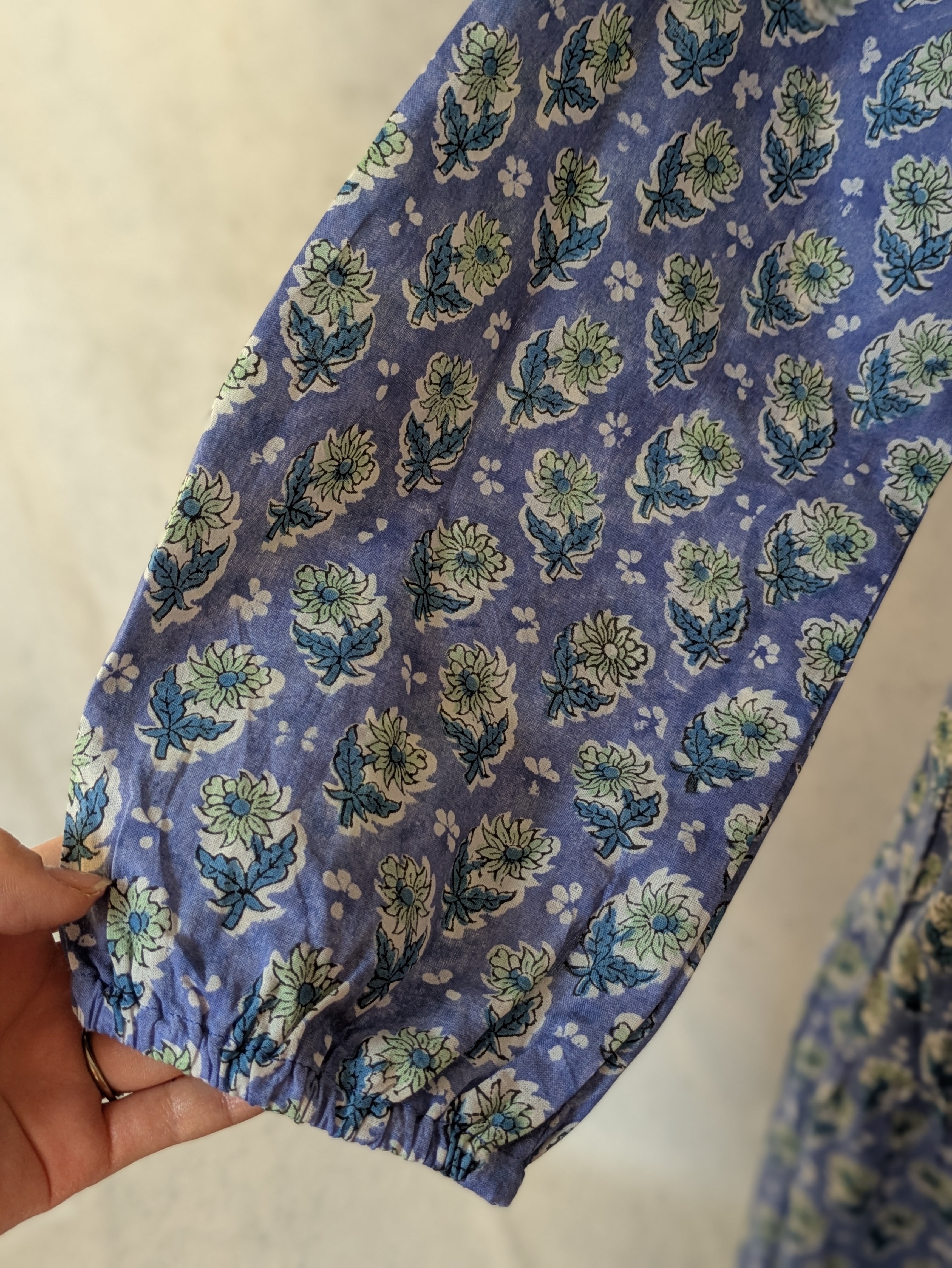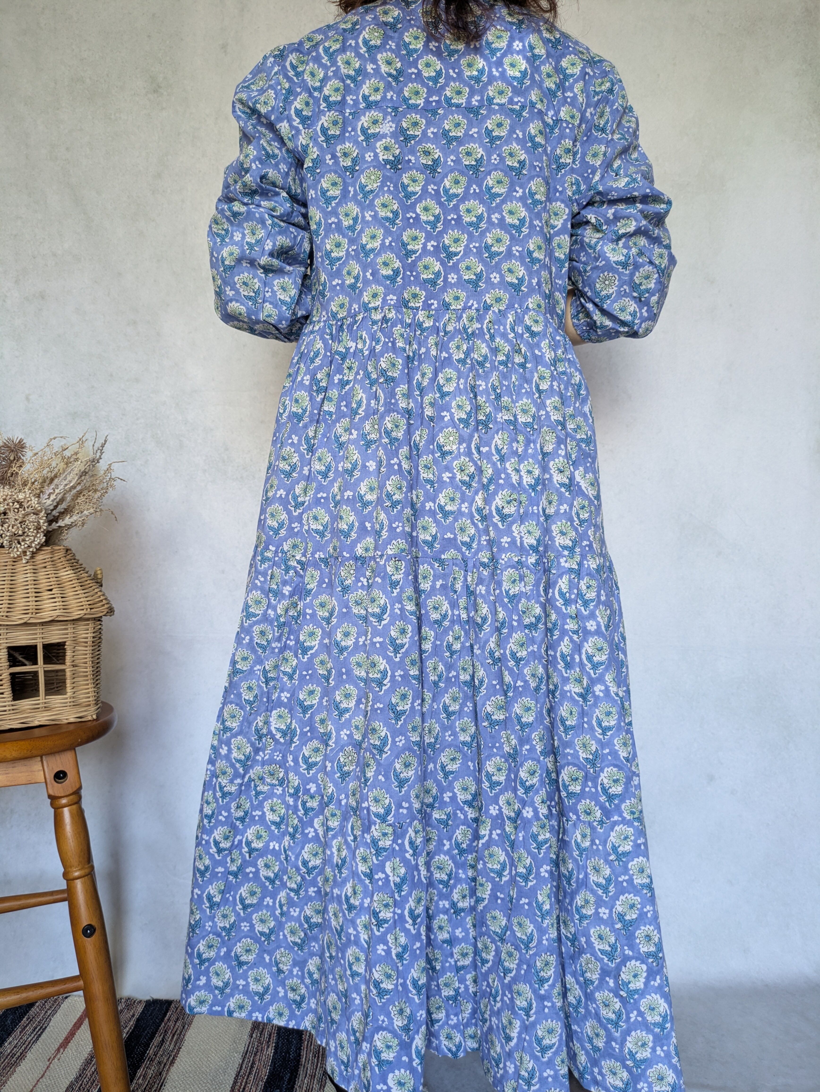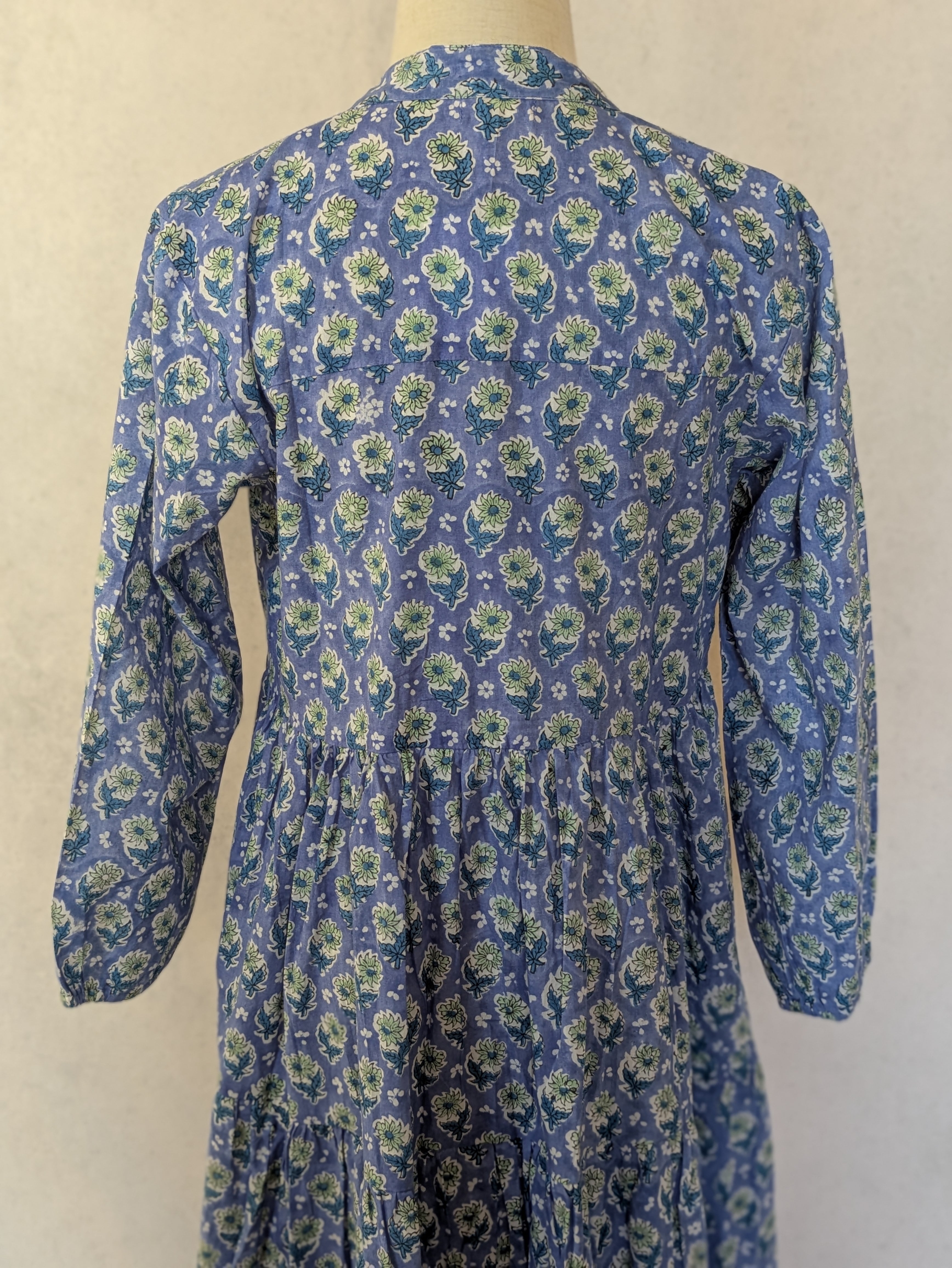 こちらは、インドの伝統工芸であるハンドブロックプリントで作られたワンピースです。