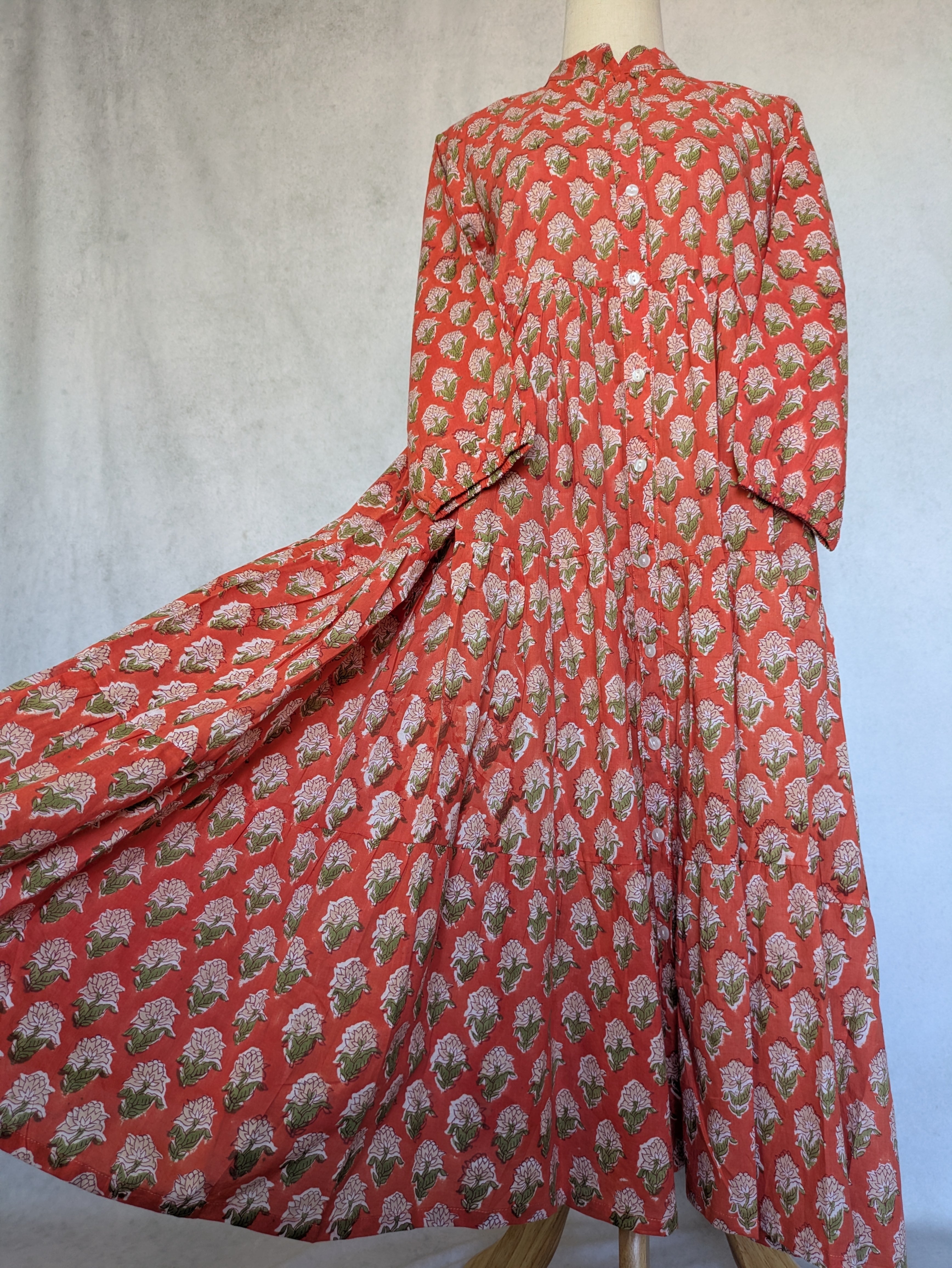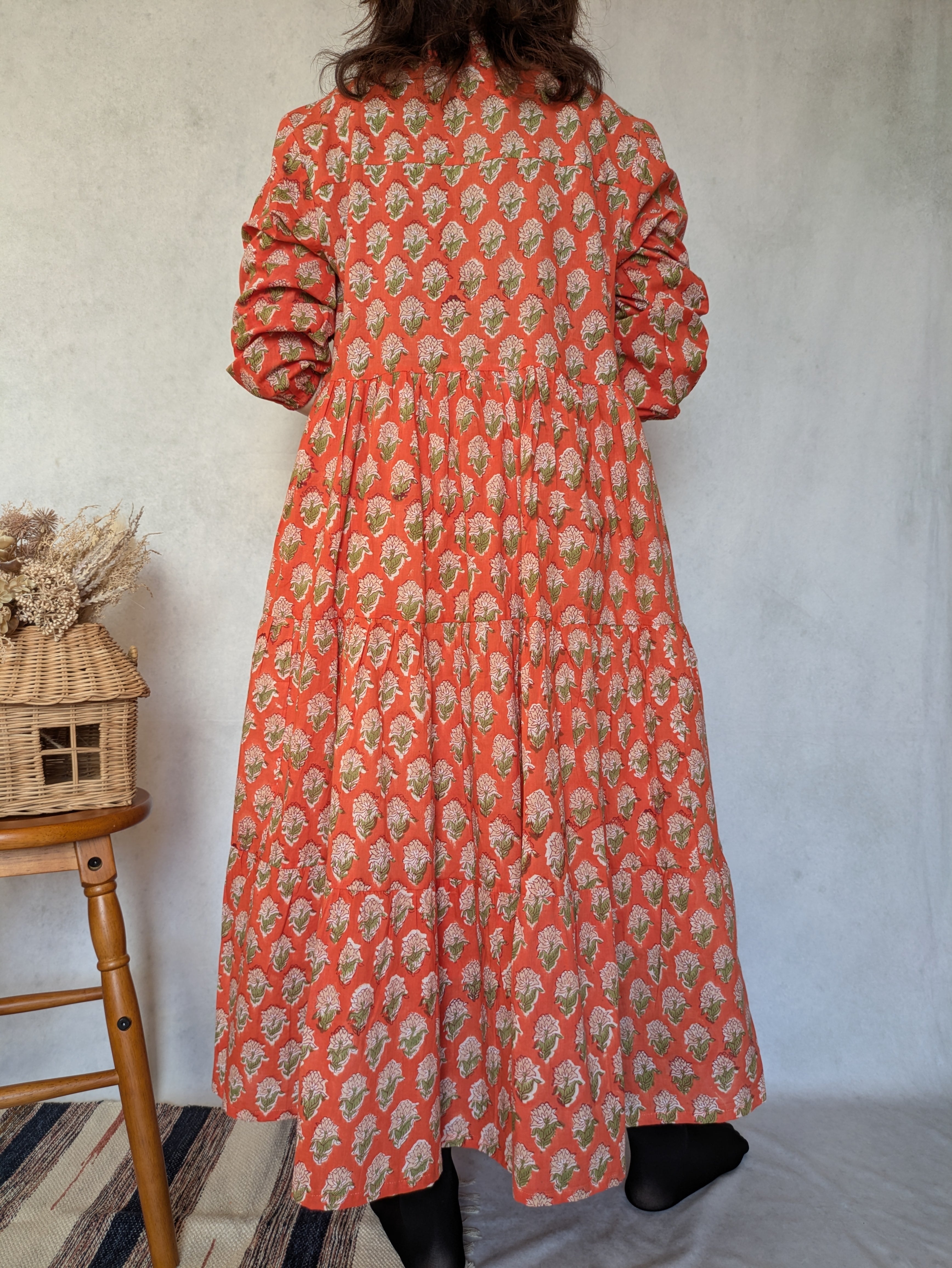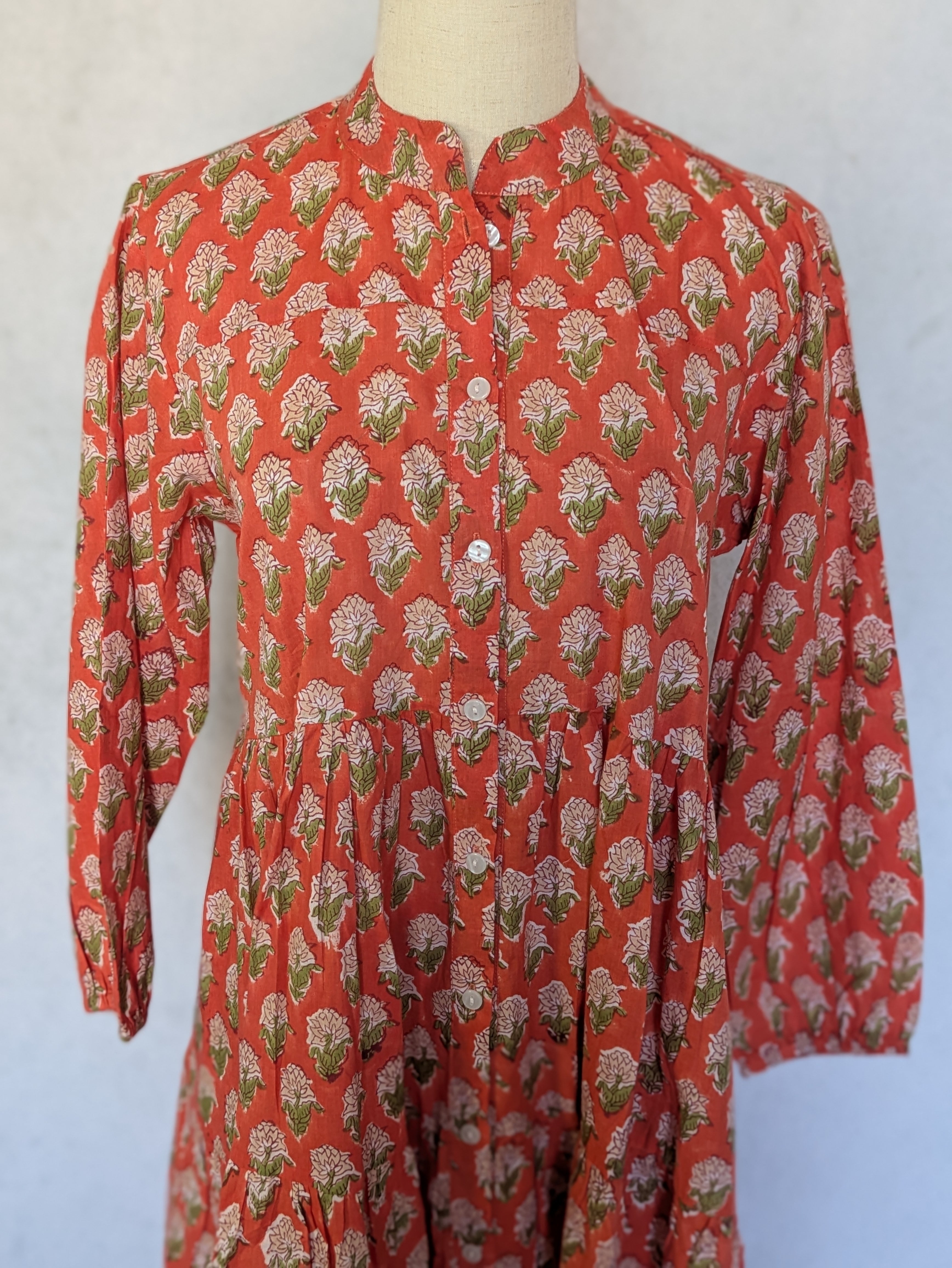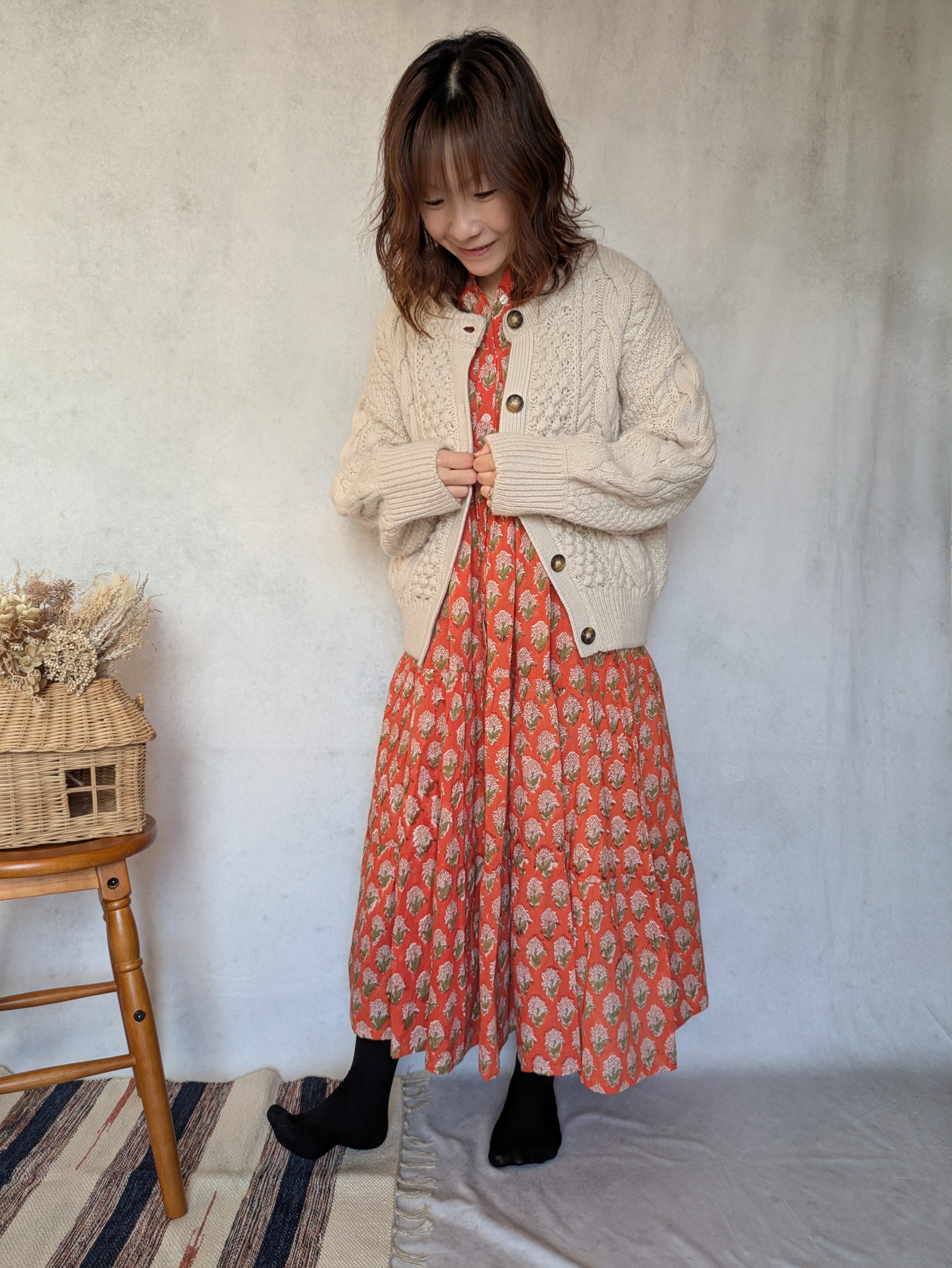 こちらは、インドの伝統工芸であるハンドブロックプリントで作られたワンピースです。
