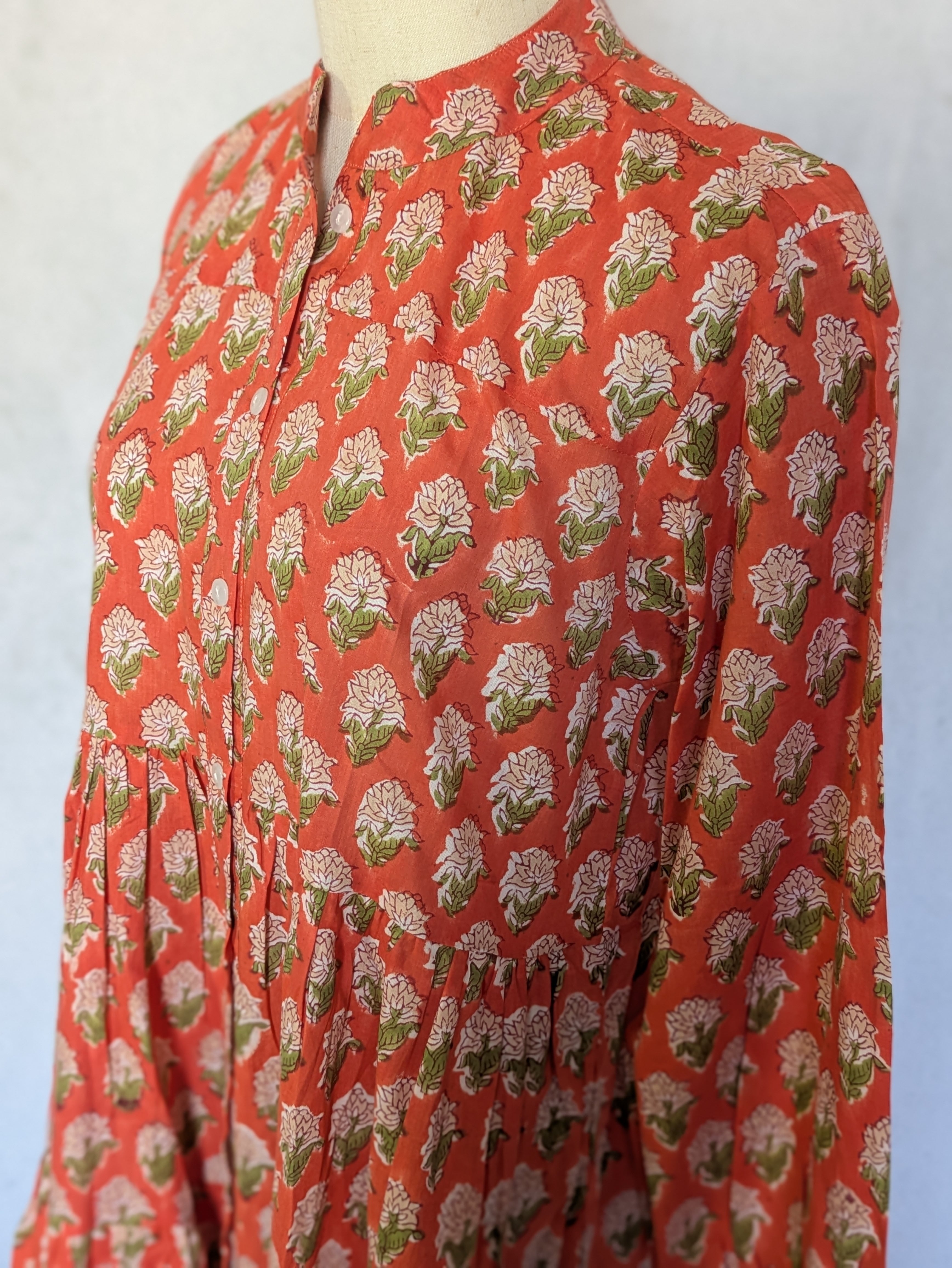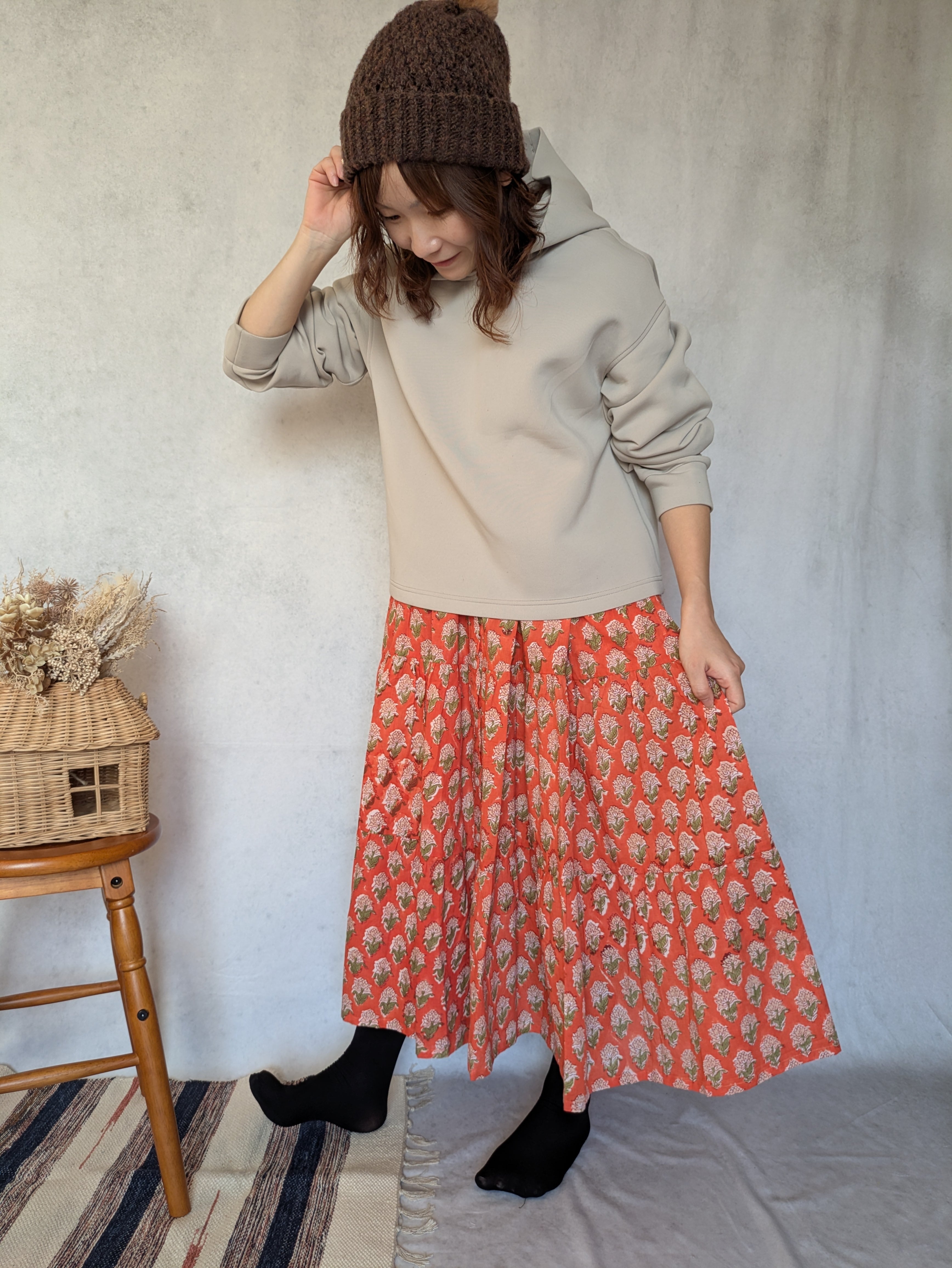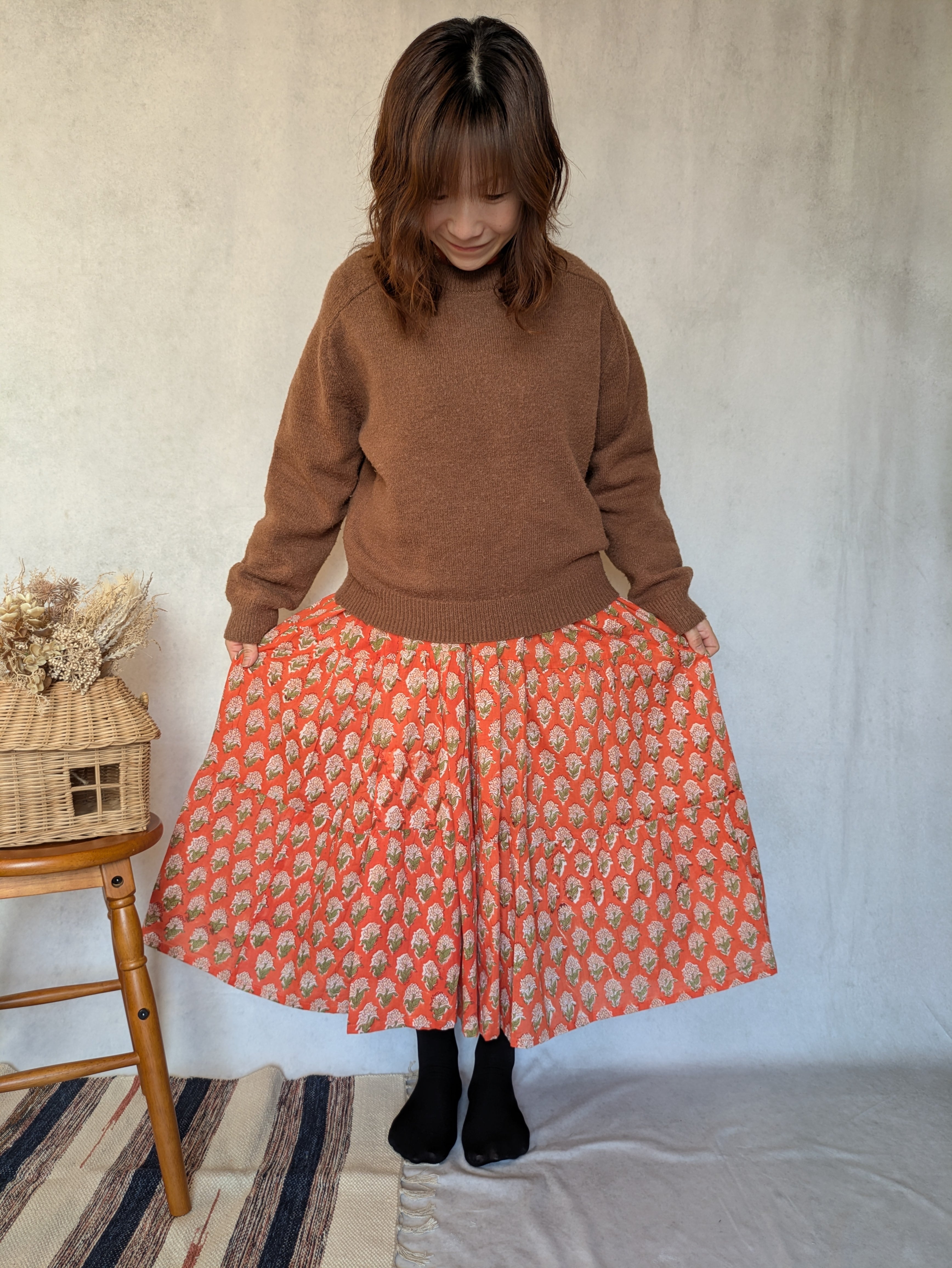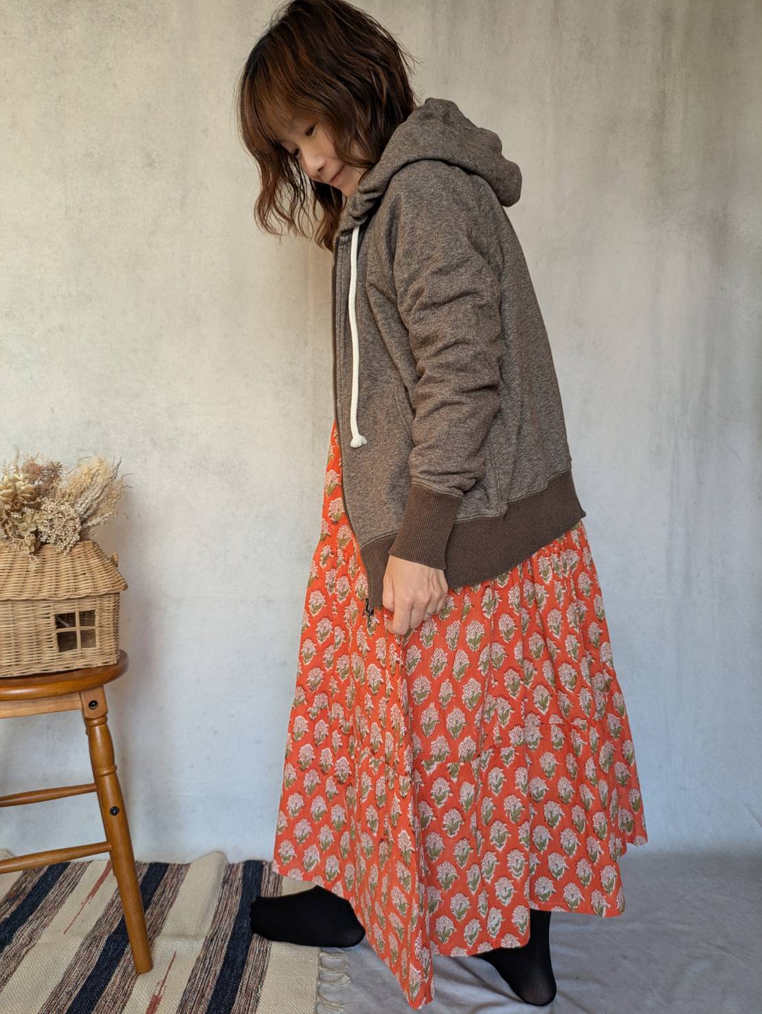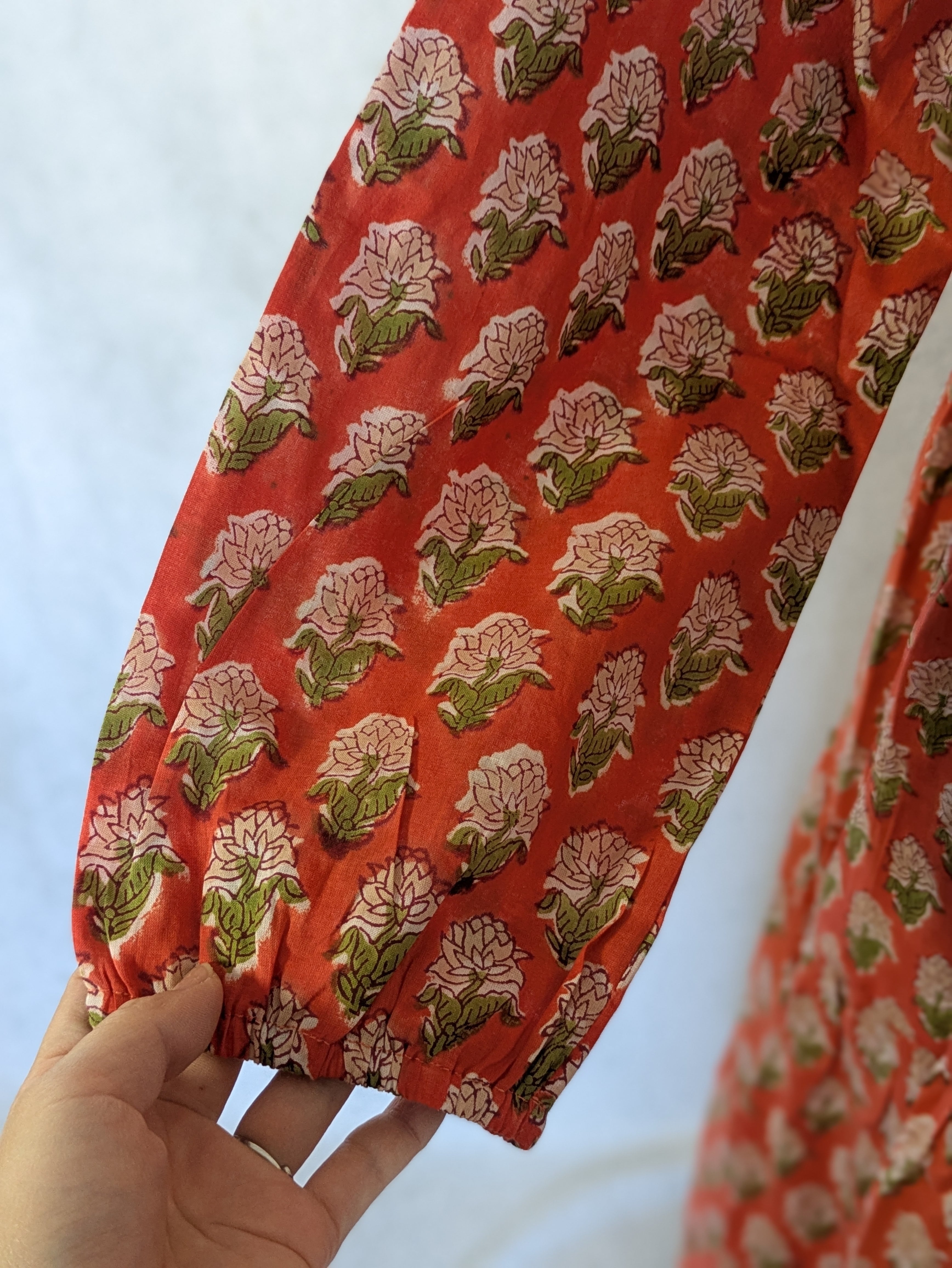 こちらは、インドの伝統工芸であるハンドブロックプリントで作られたワンピースです。