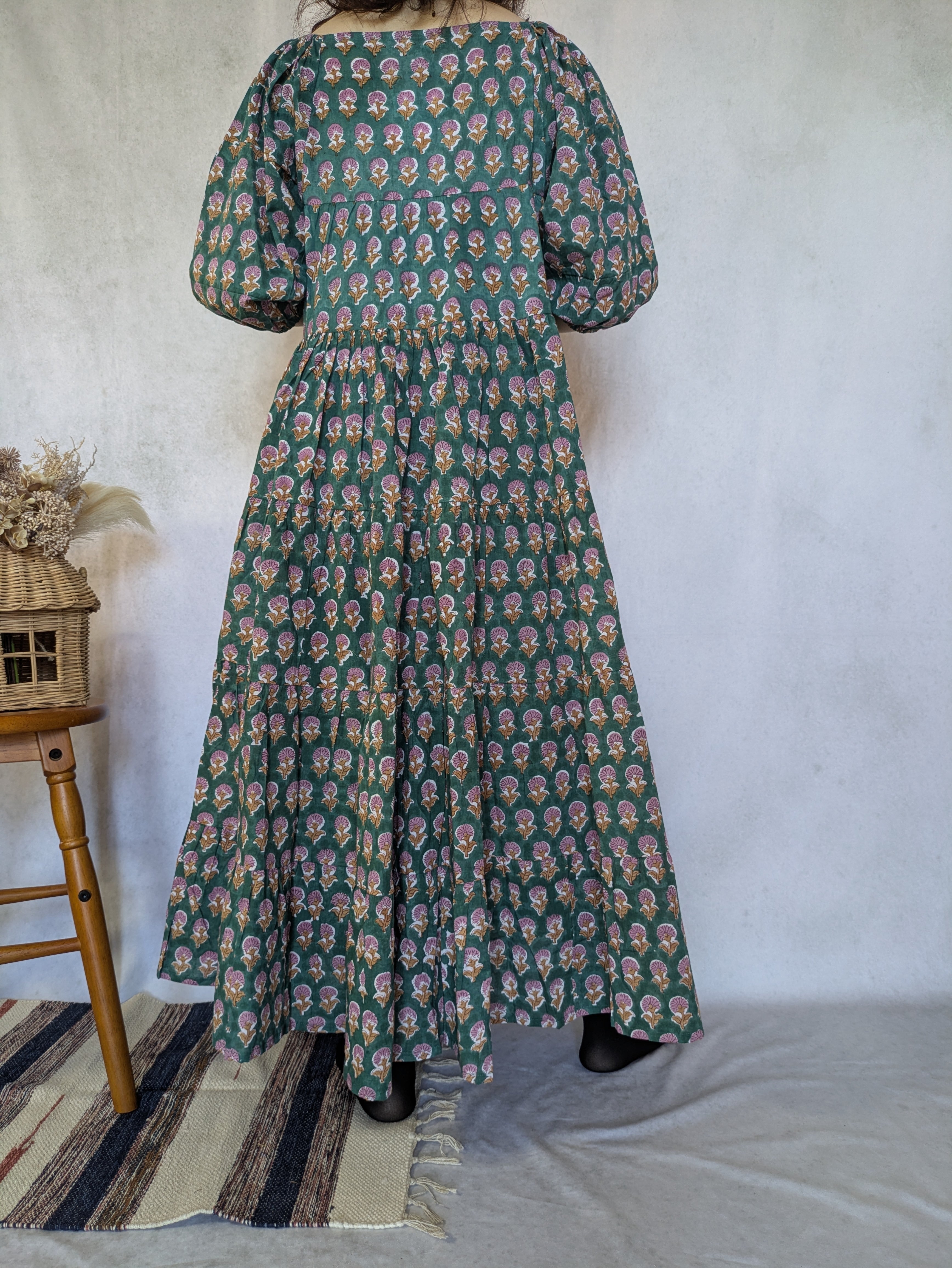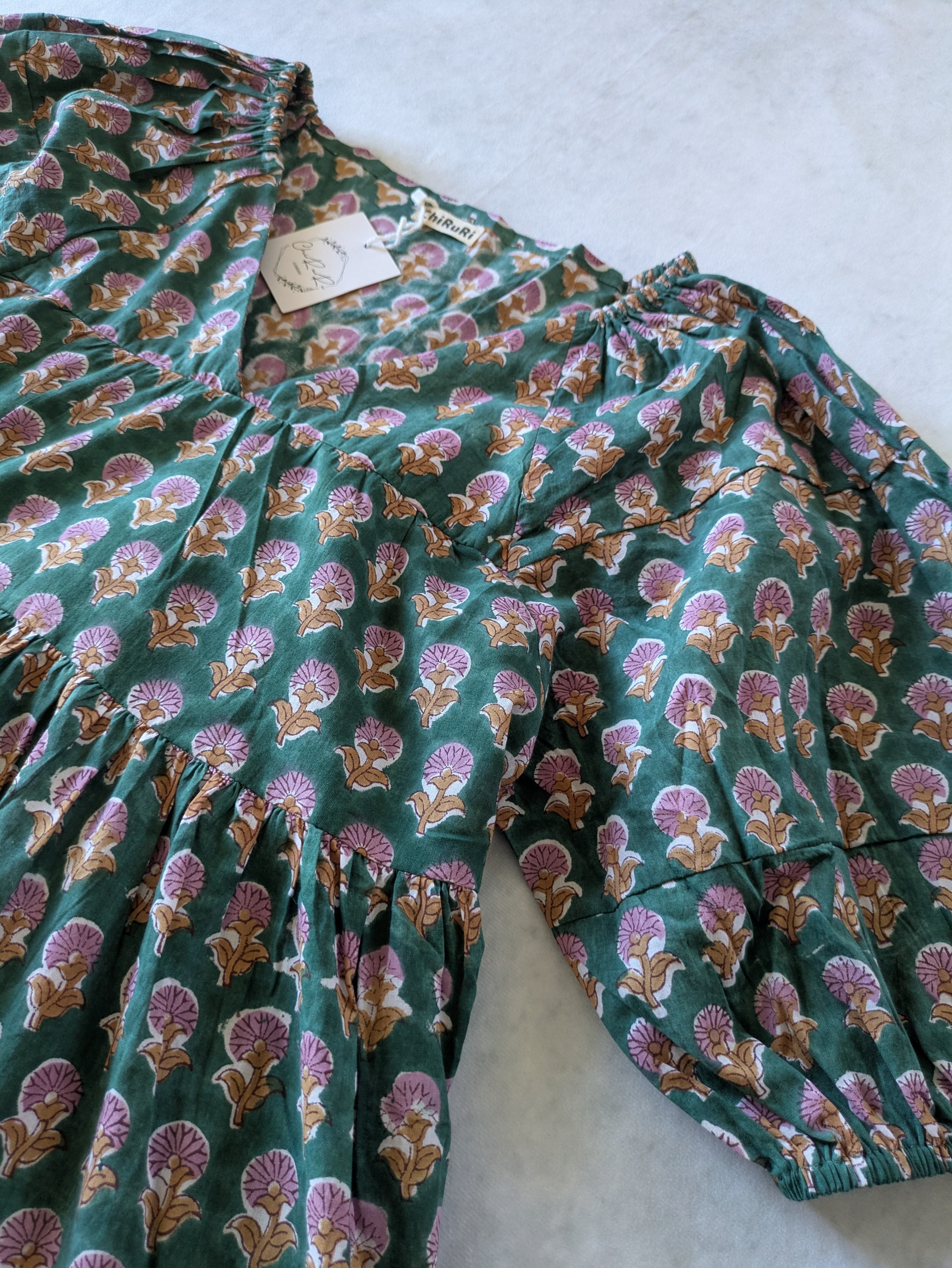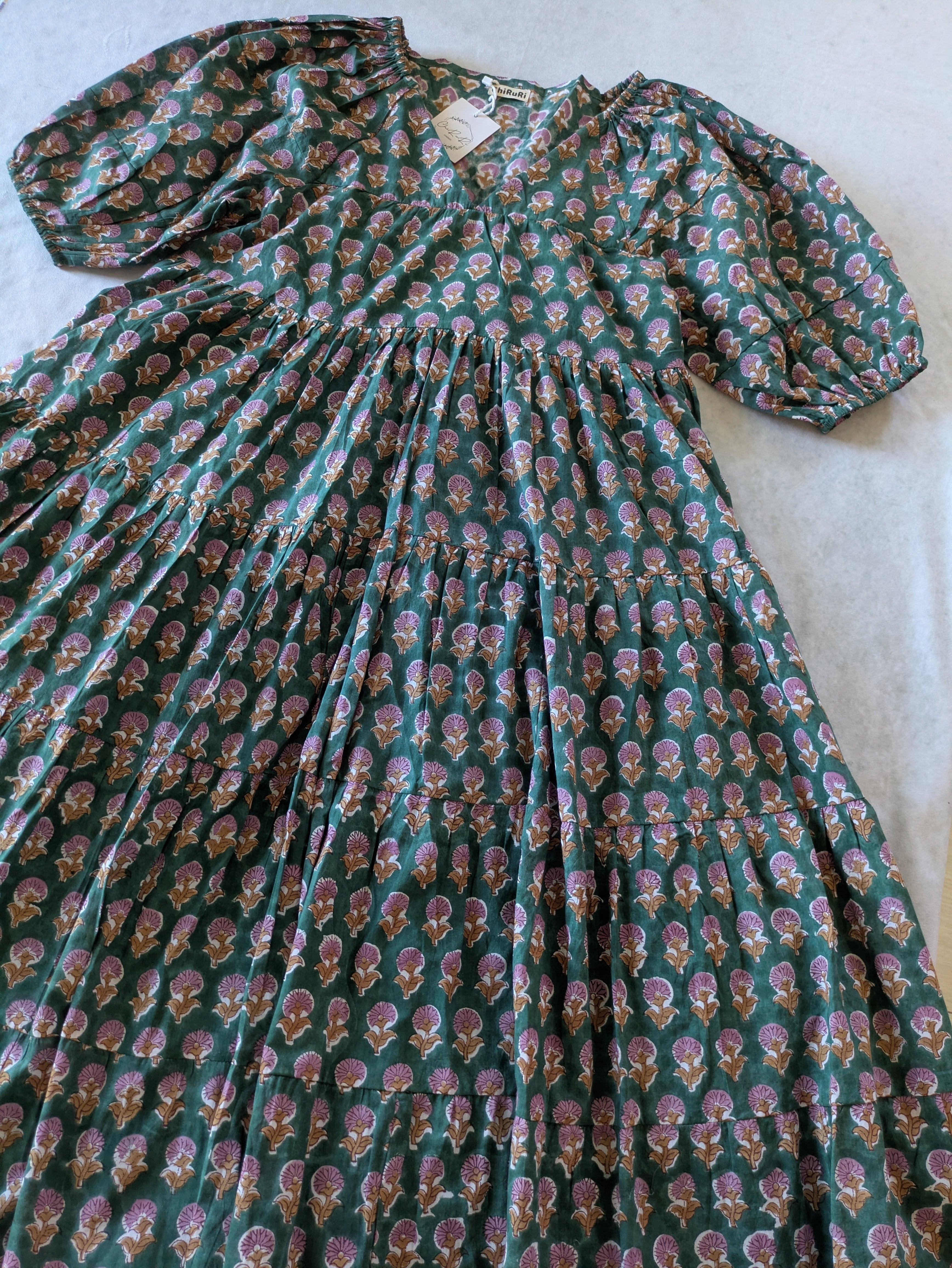 こちらは、インドの伝統工芸であるハンドブロックプリントで作られたワンピースです。