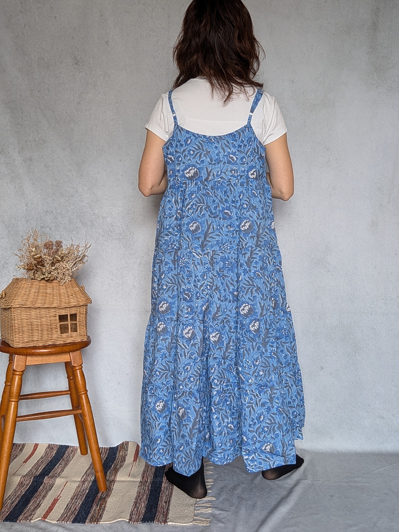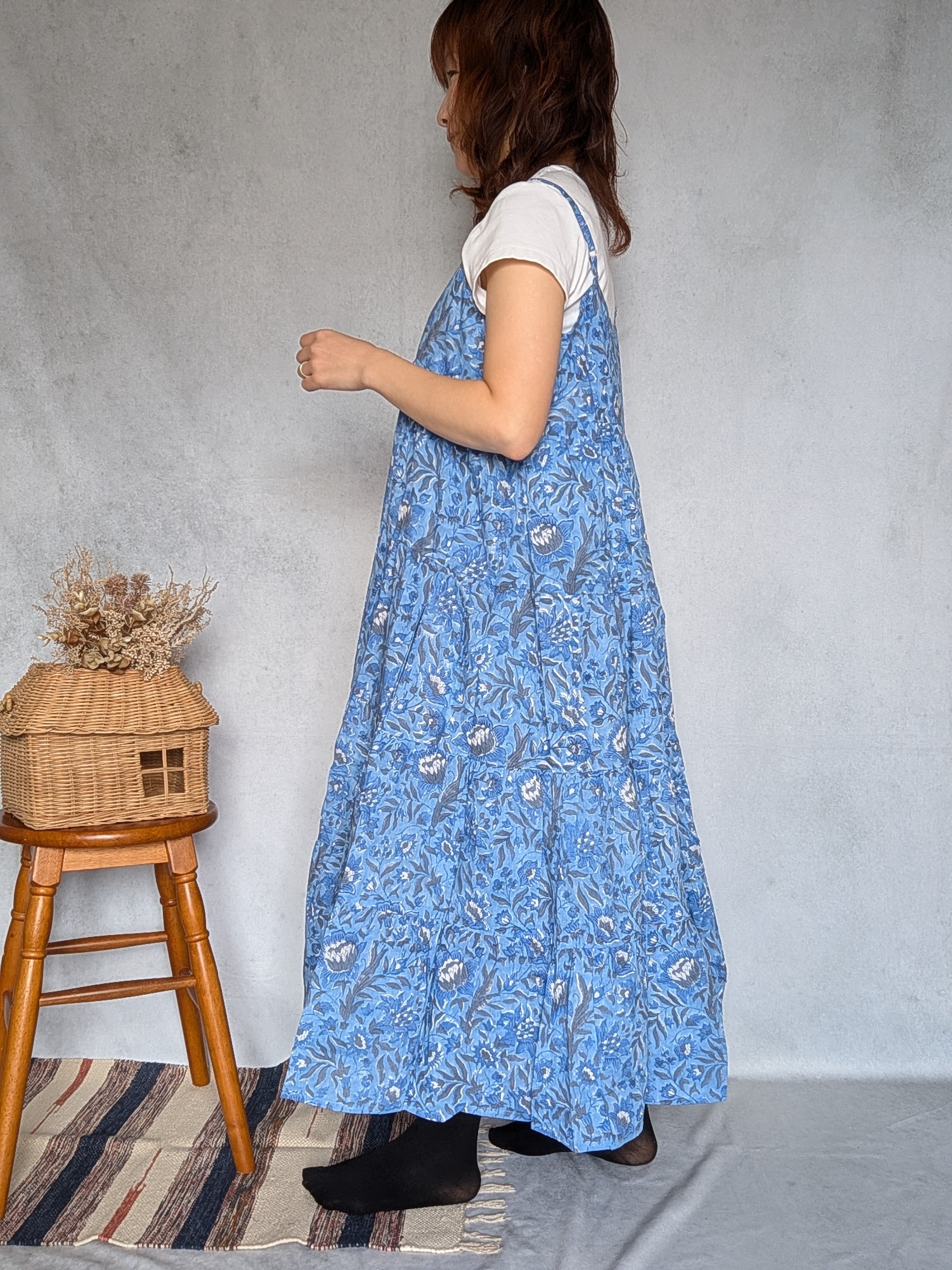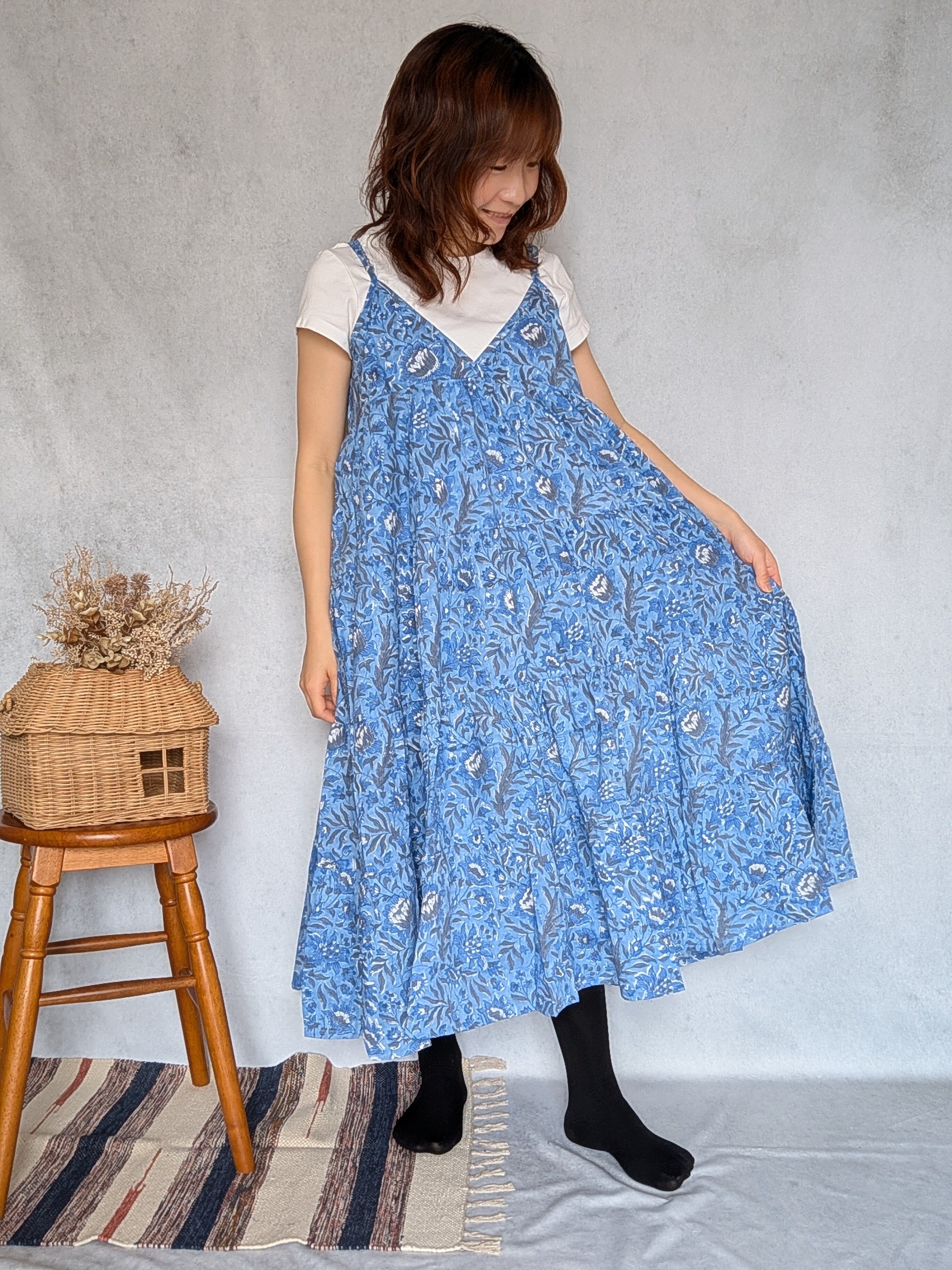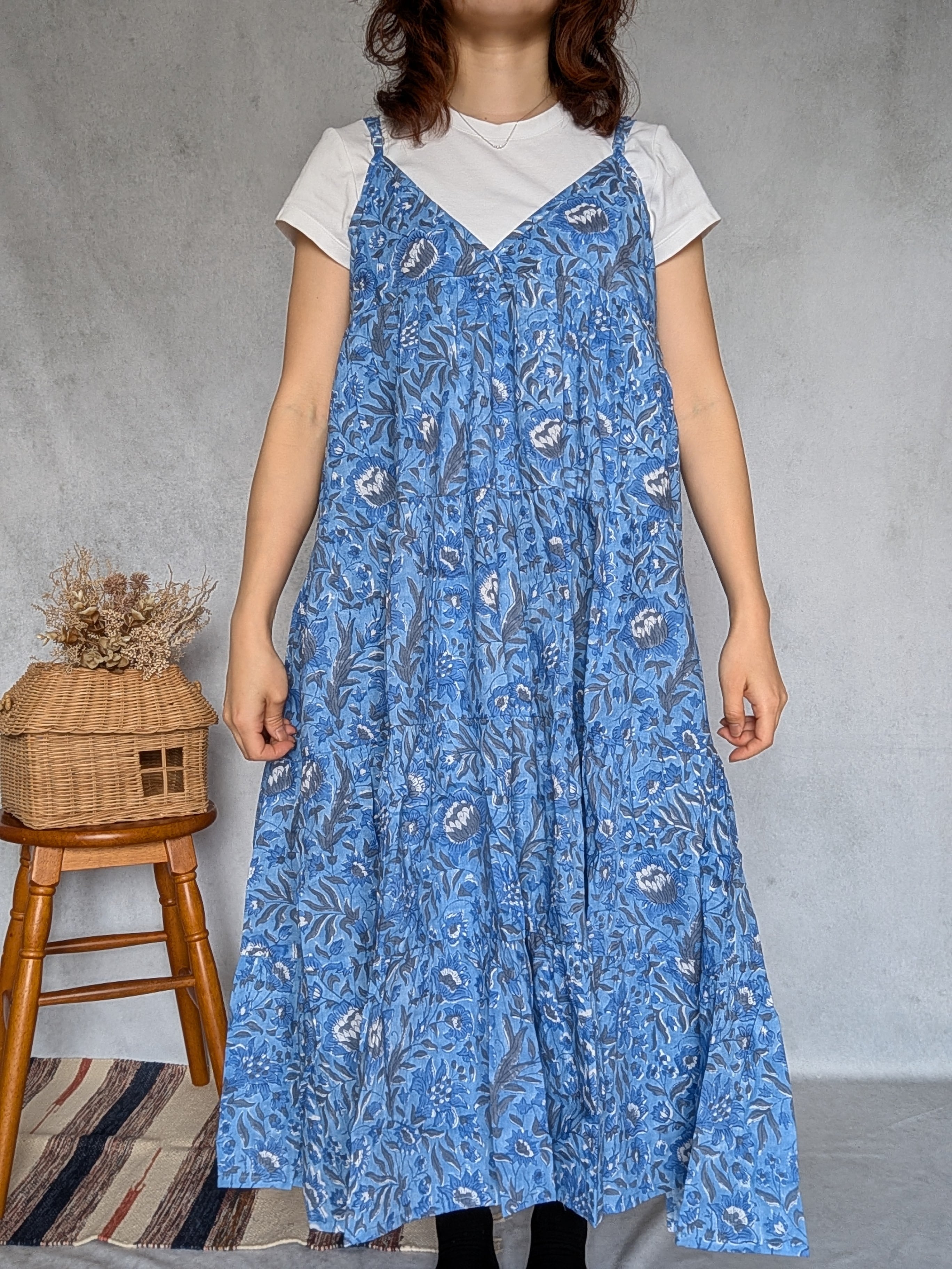 こちらは、インドの伝統工芸であるハンドブロックプリントで作られたワンピースです。