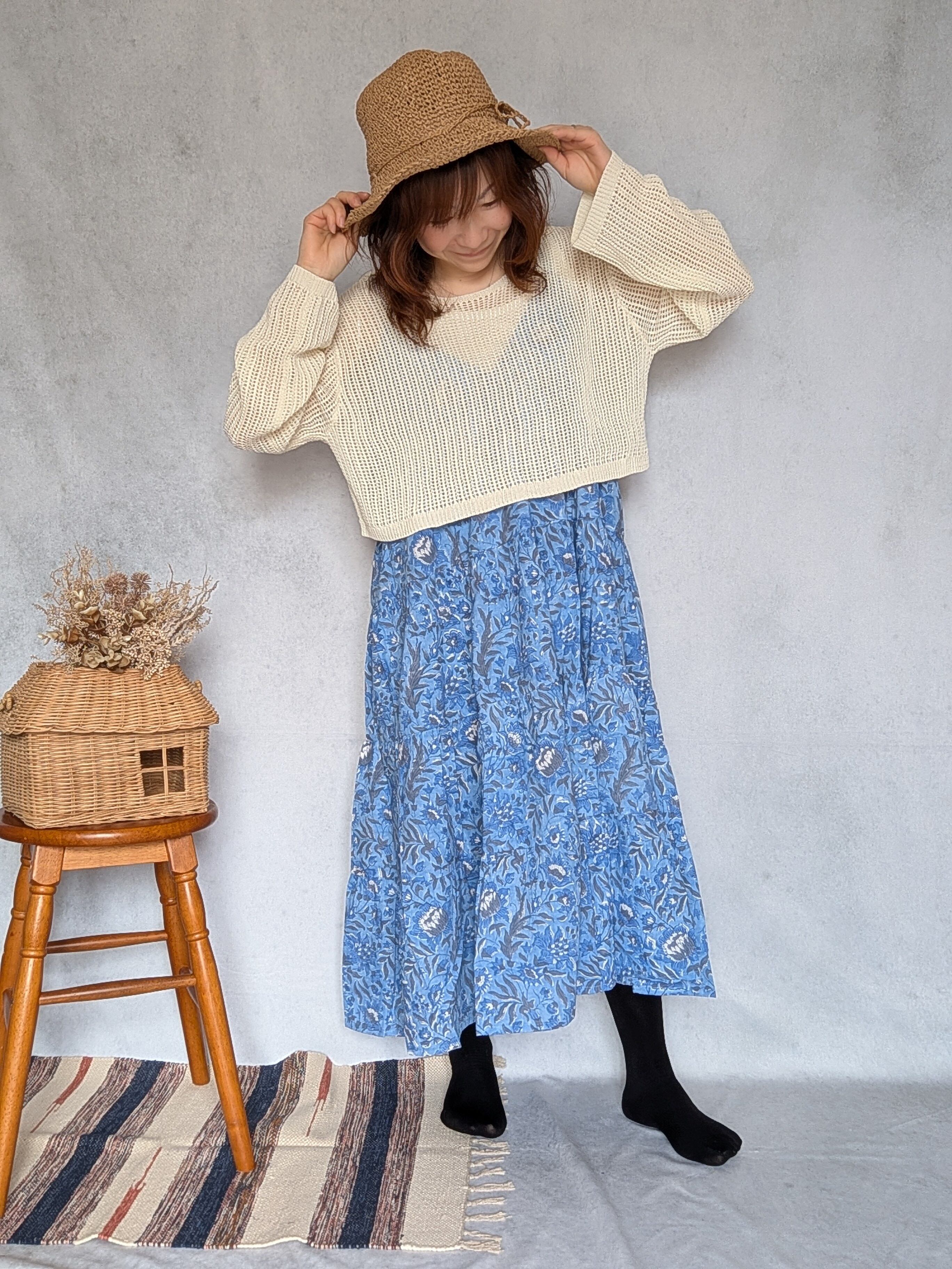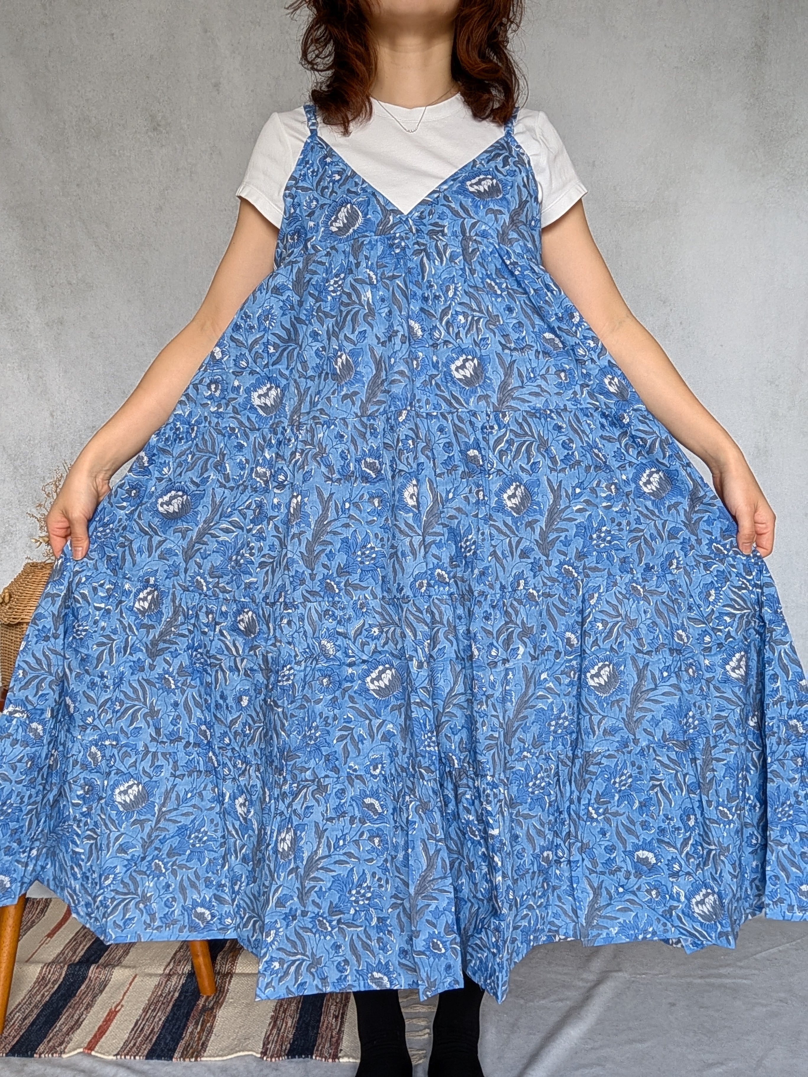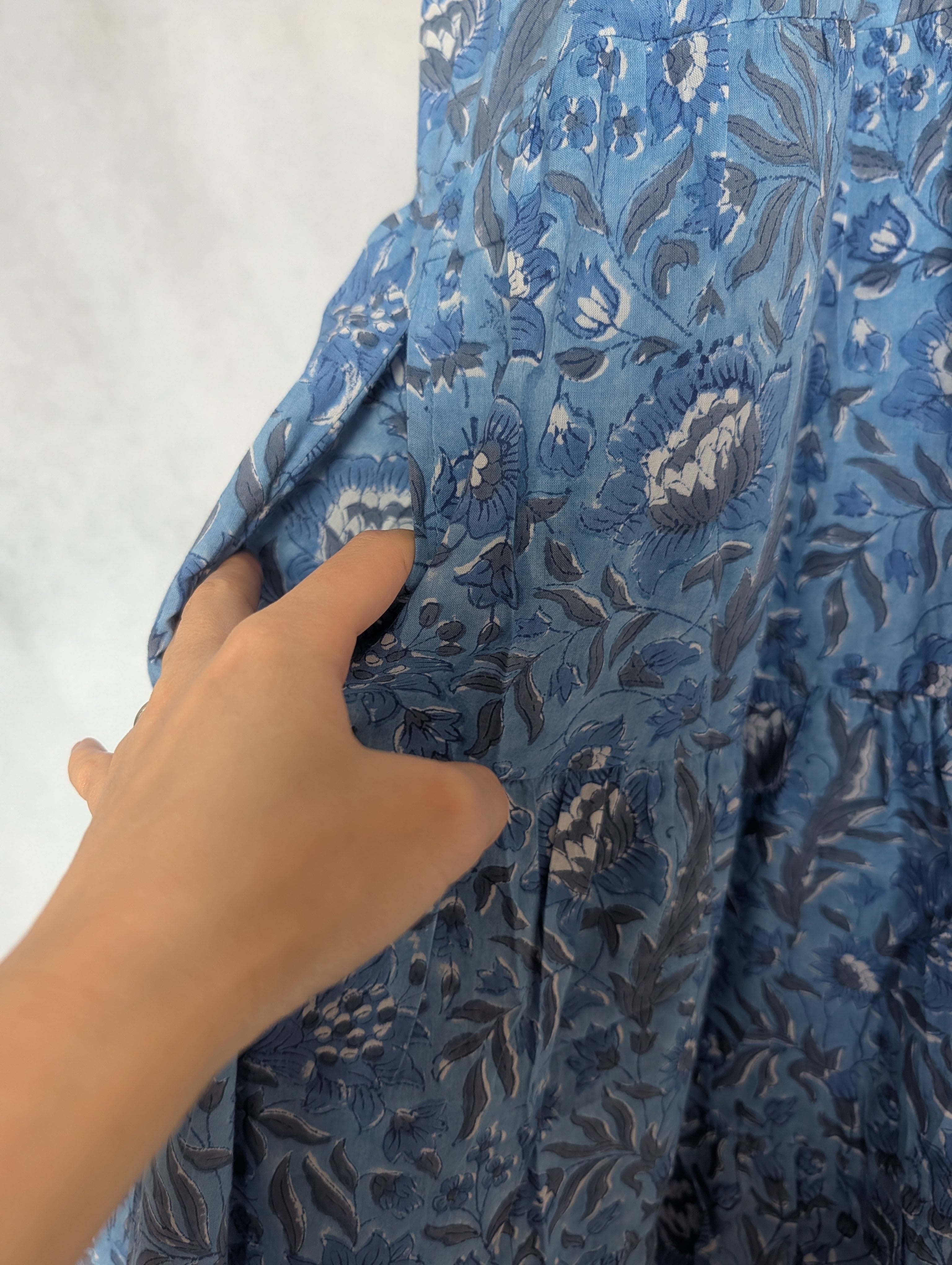 こちらは、インドの伝統工芸であるハンドブロックプリントで作られたワンピースです。