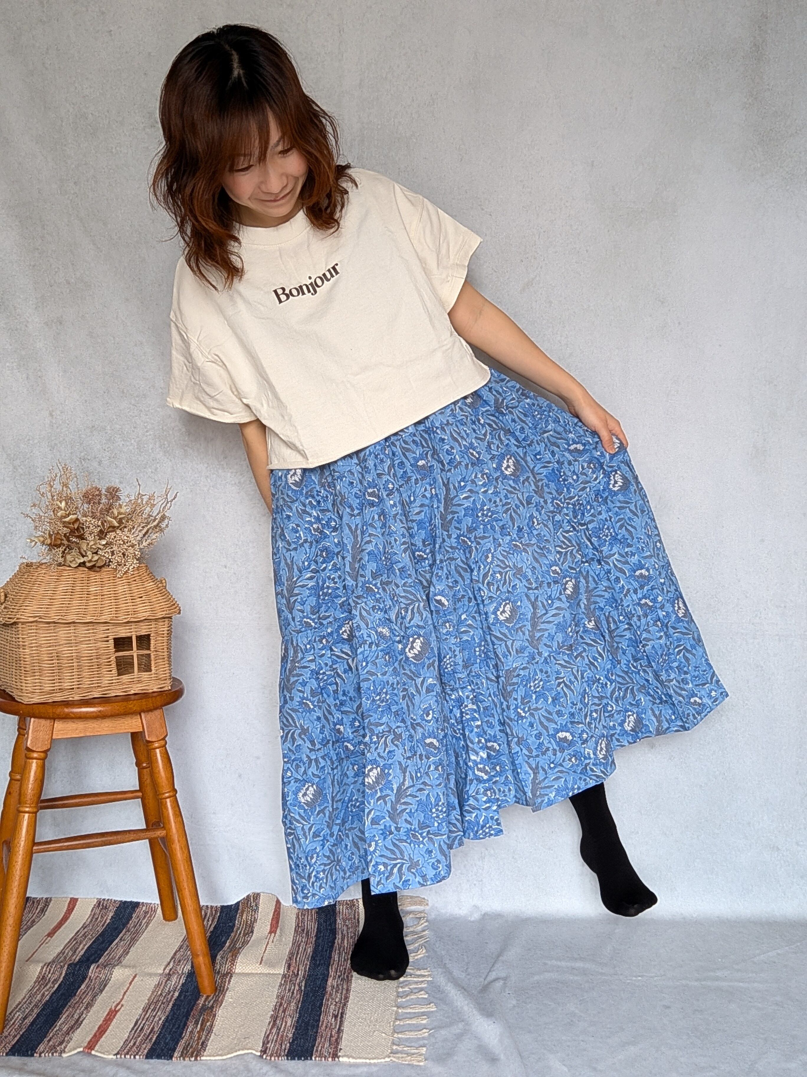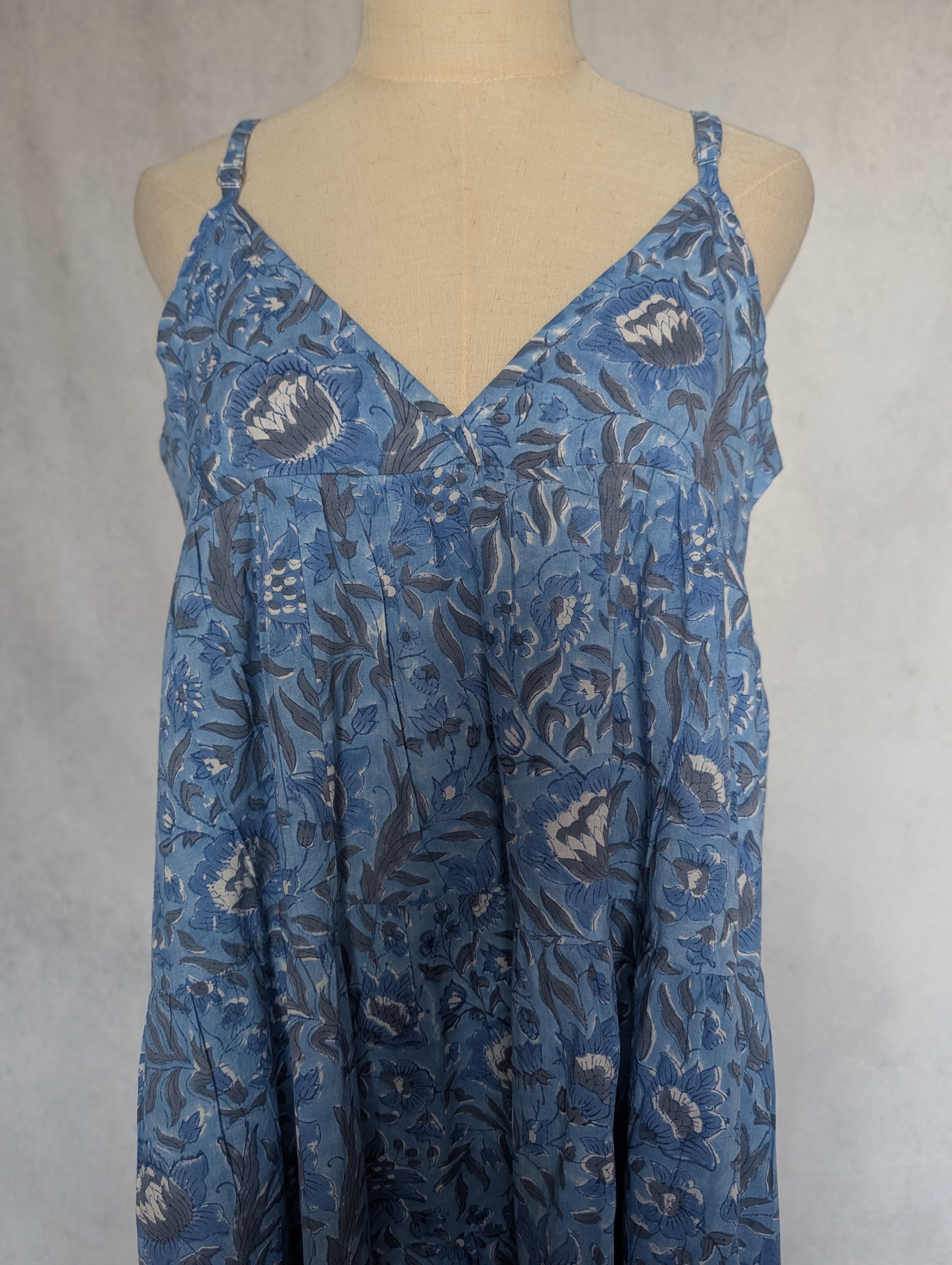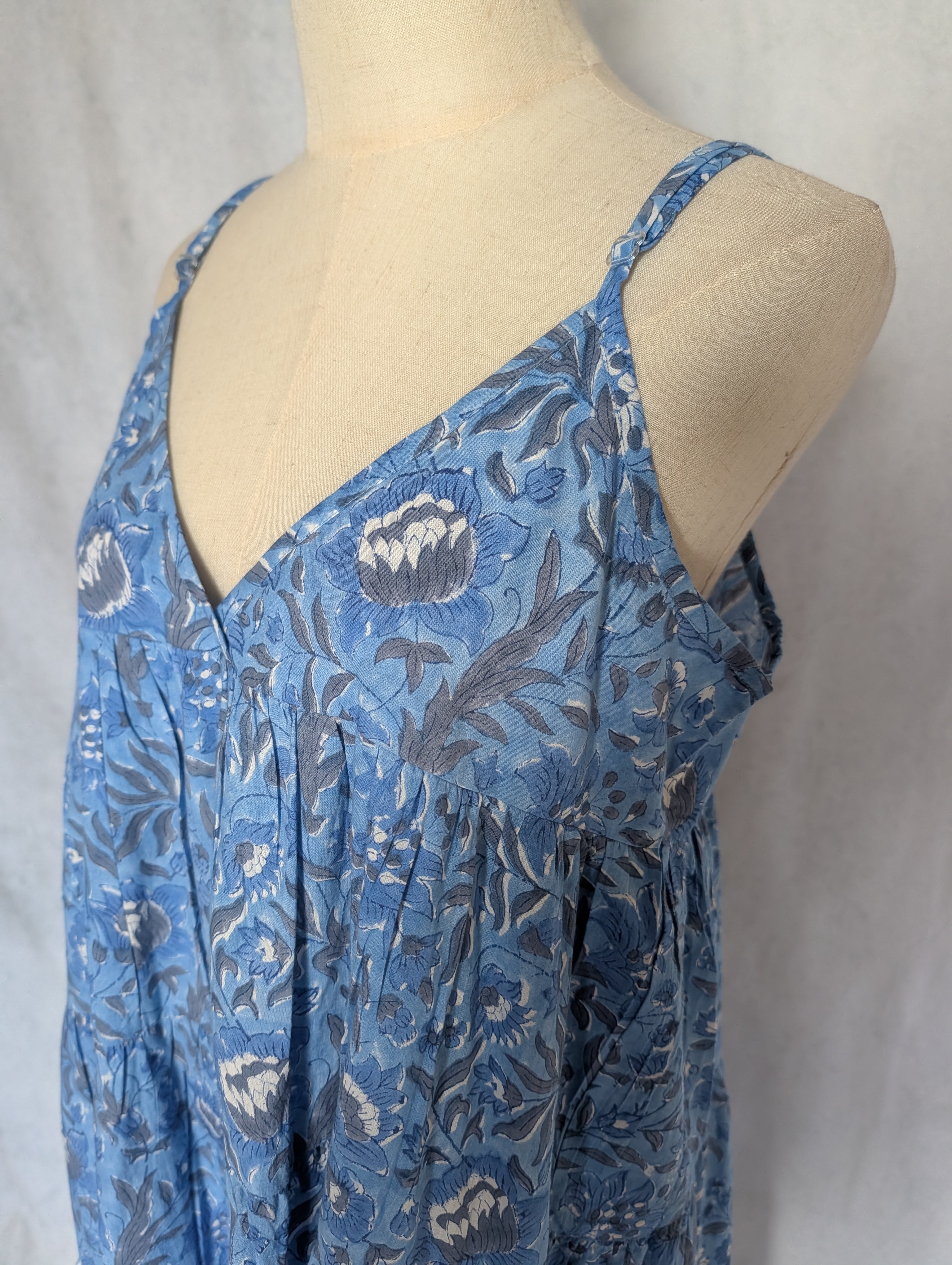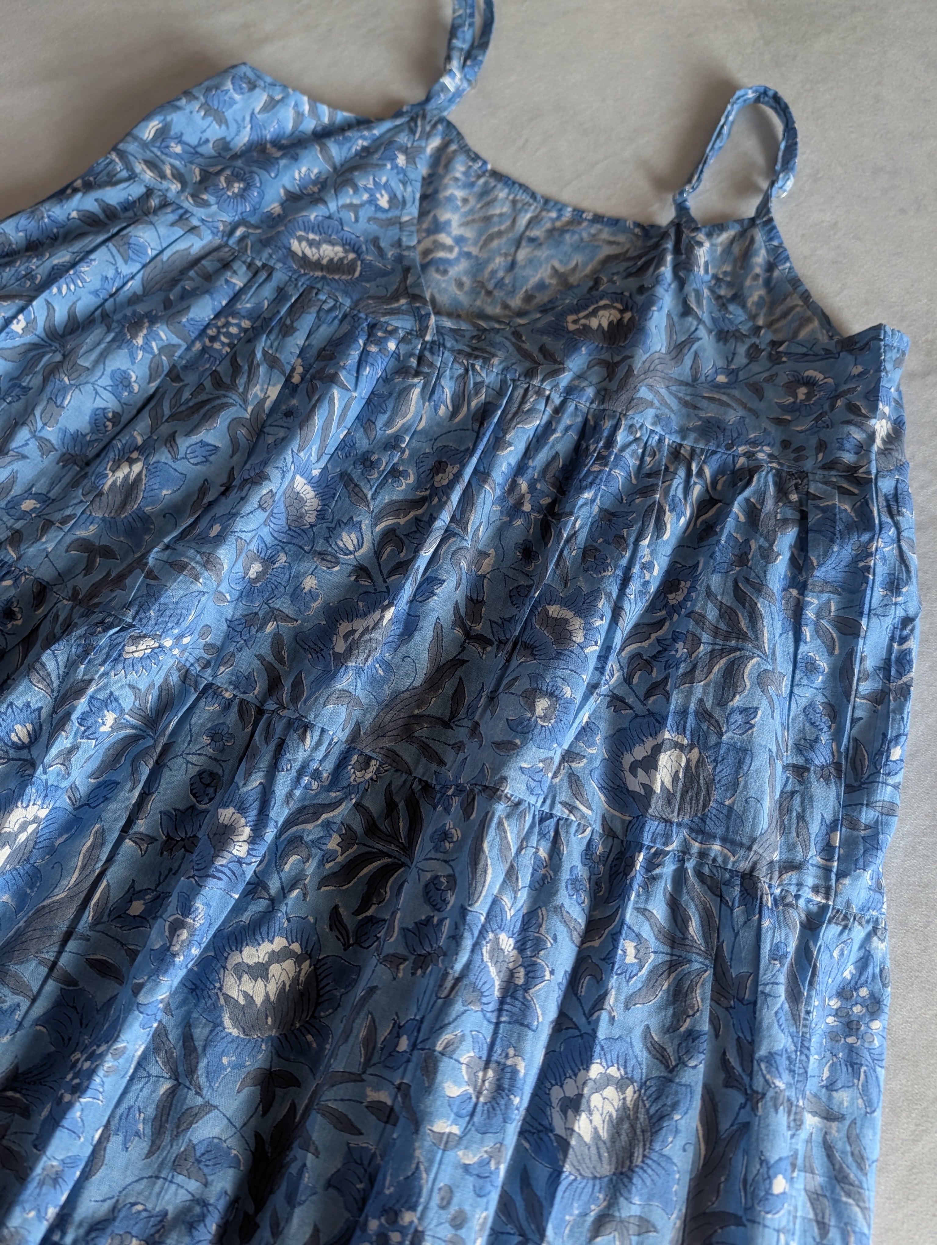 こちらは、インドの伝統工芸であるハンドブロックプリントで作られたワンピースです。