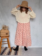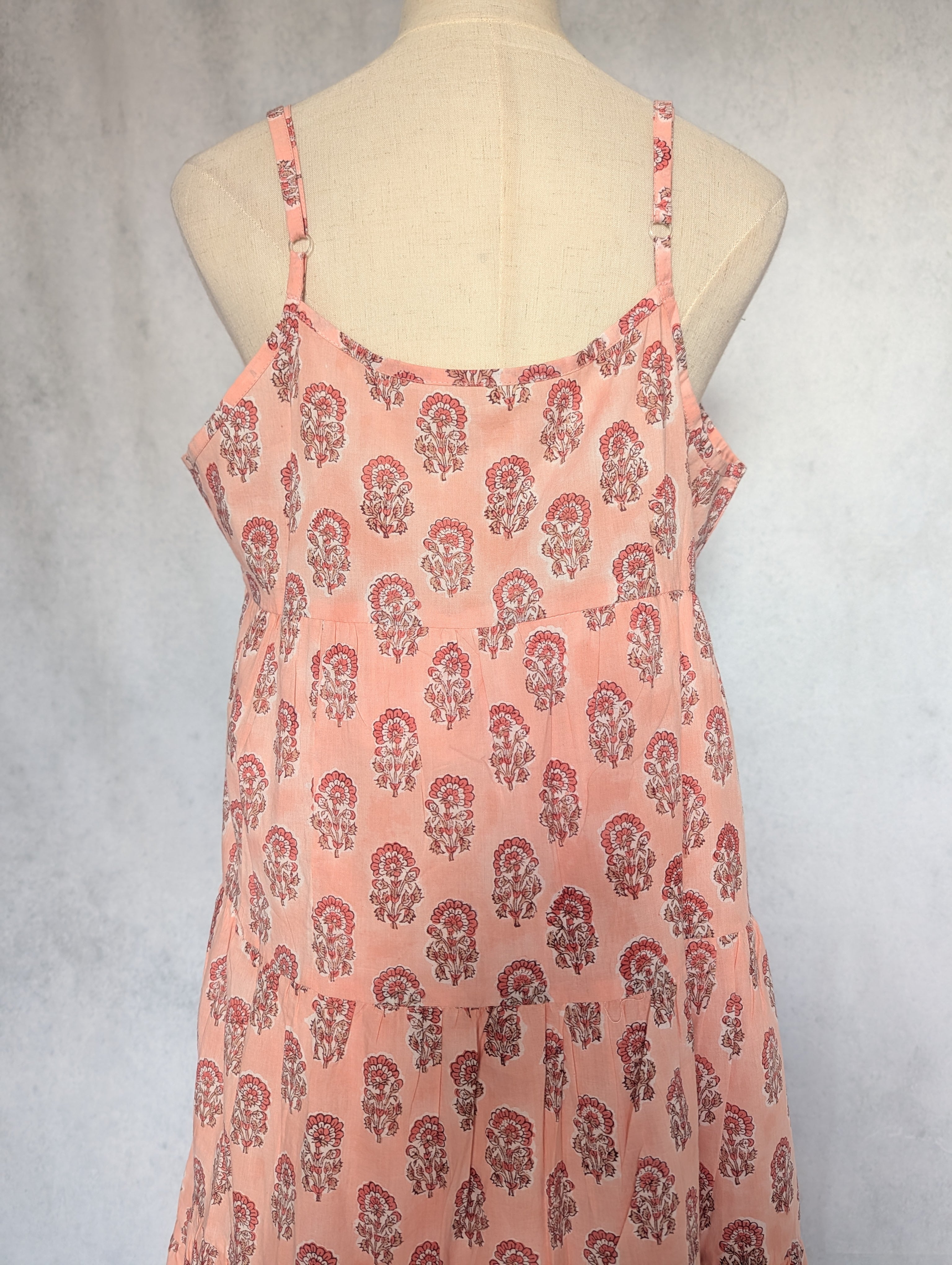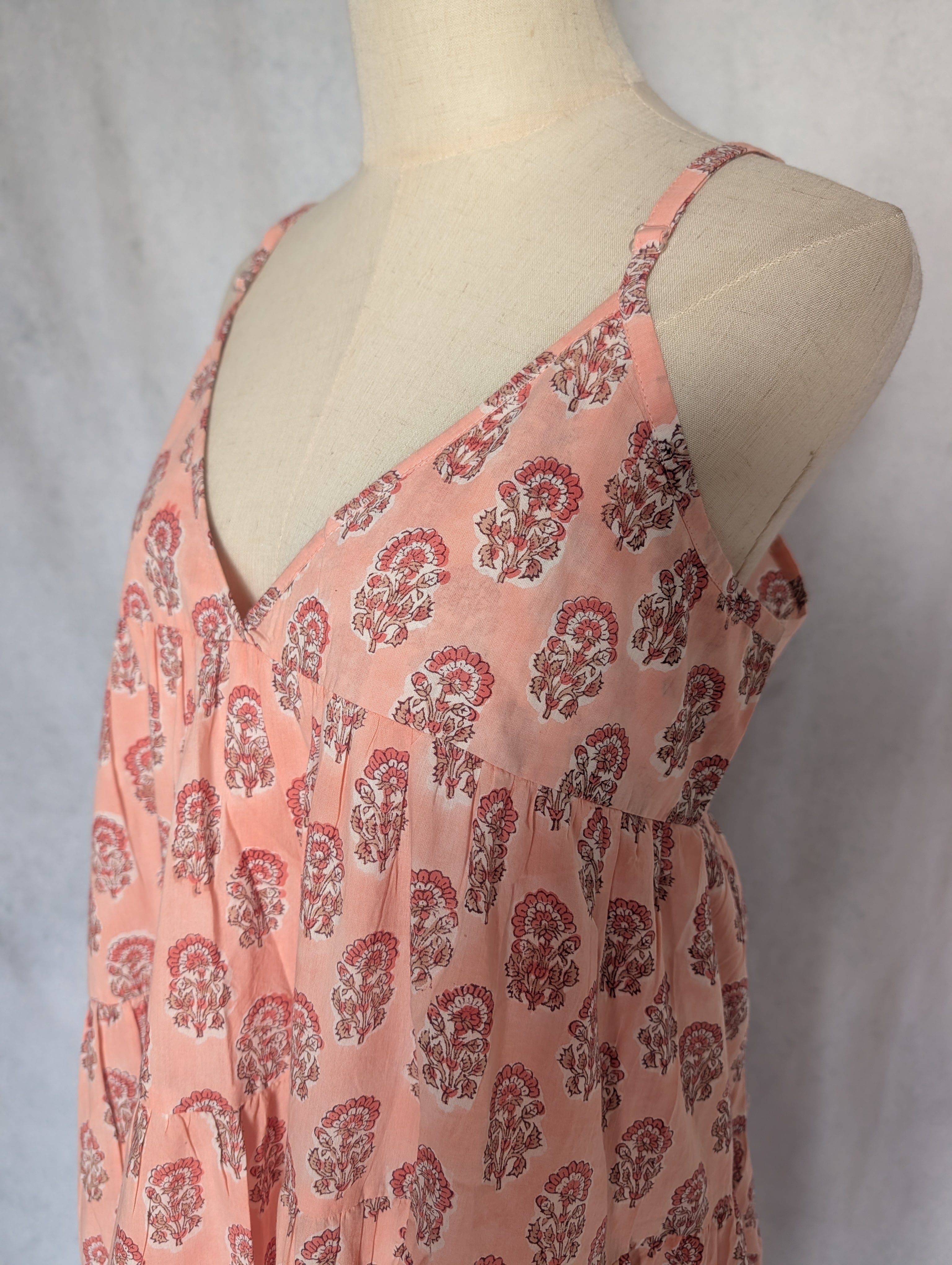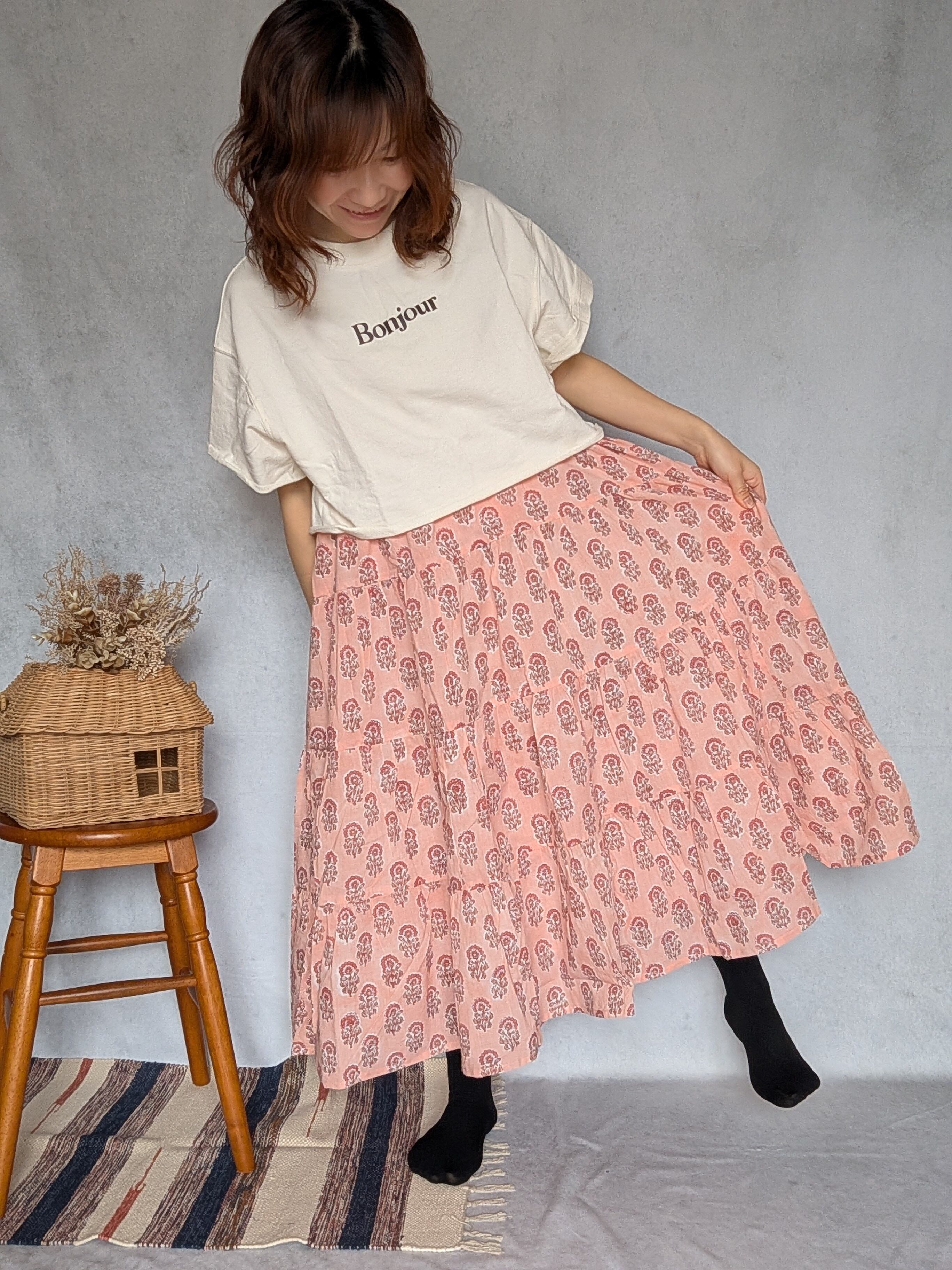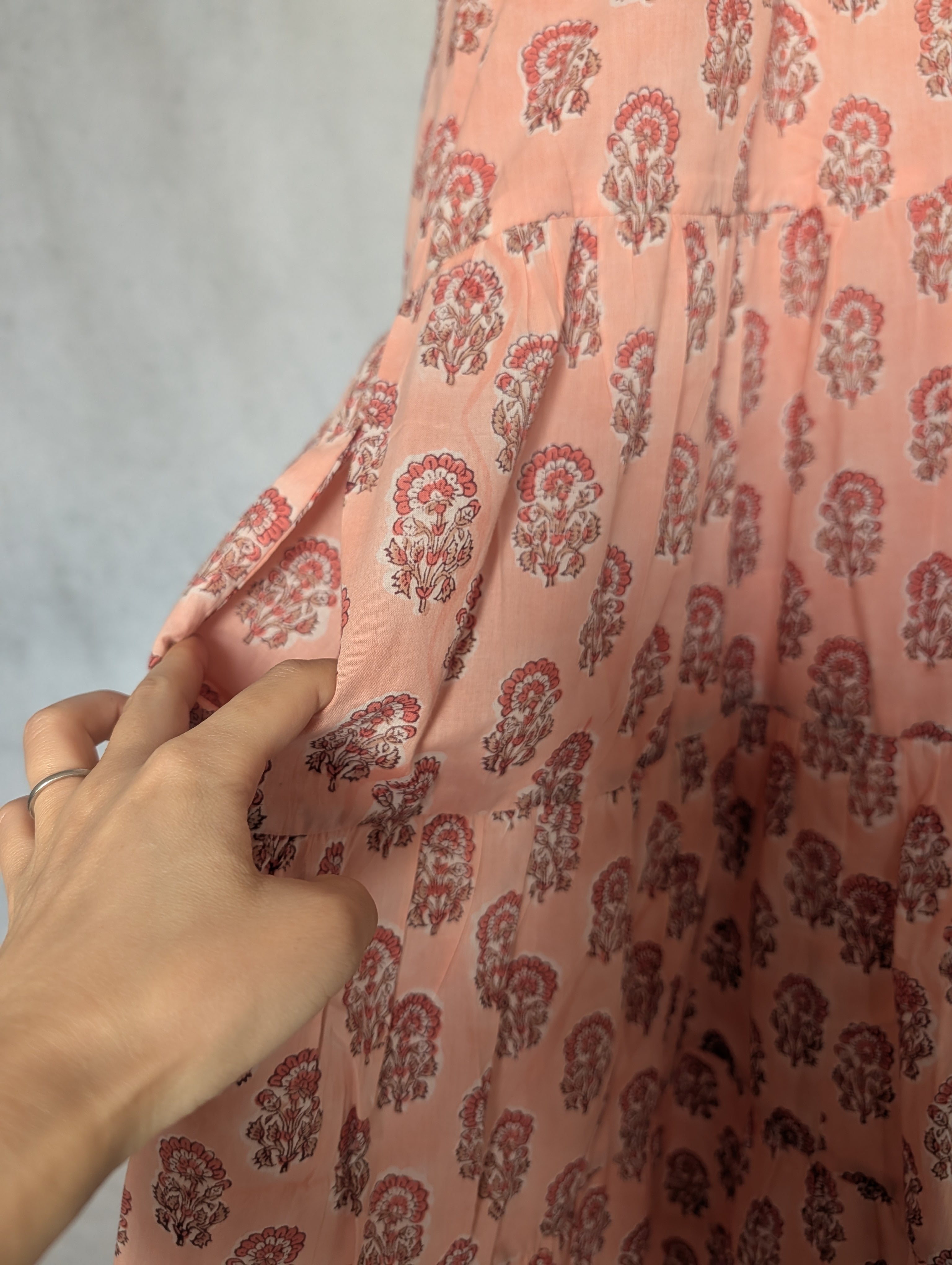 こちらは、インドの伝統工芸であるハンドブロックプリントで作られたワンピースです。