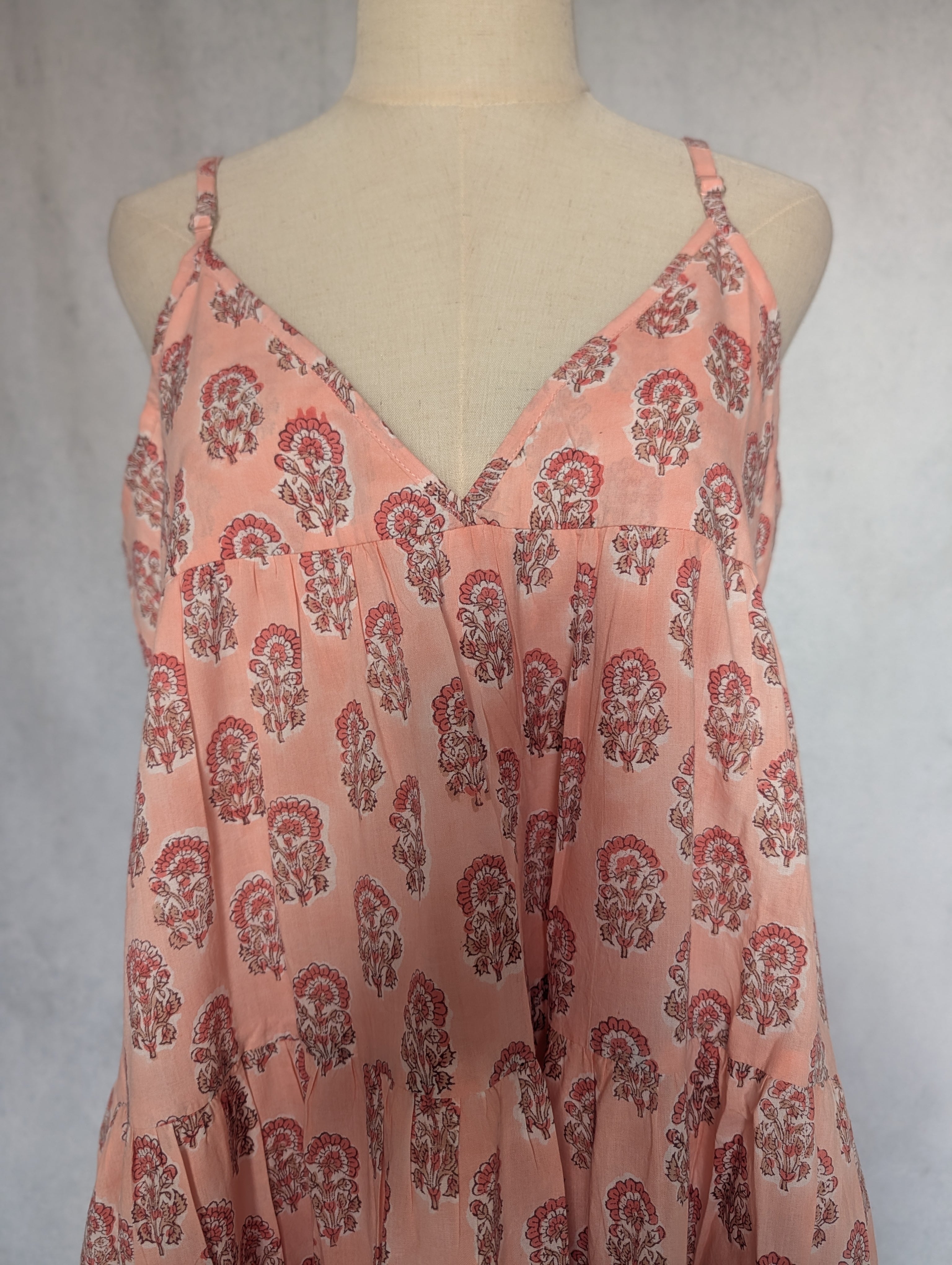 【低身長向け】ティアードキャミワンピース ブロックプリント