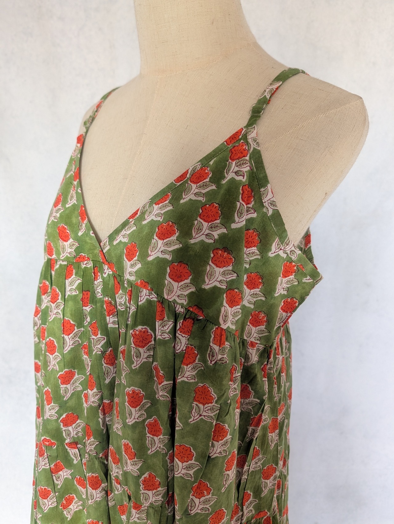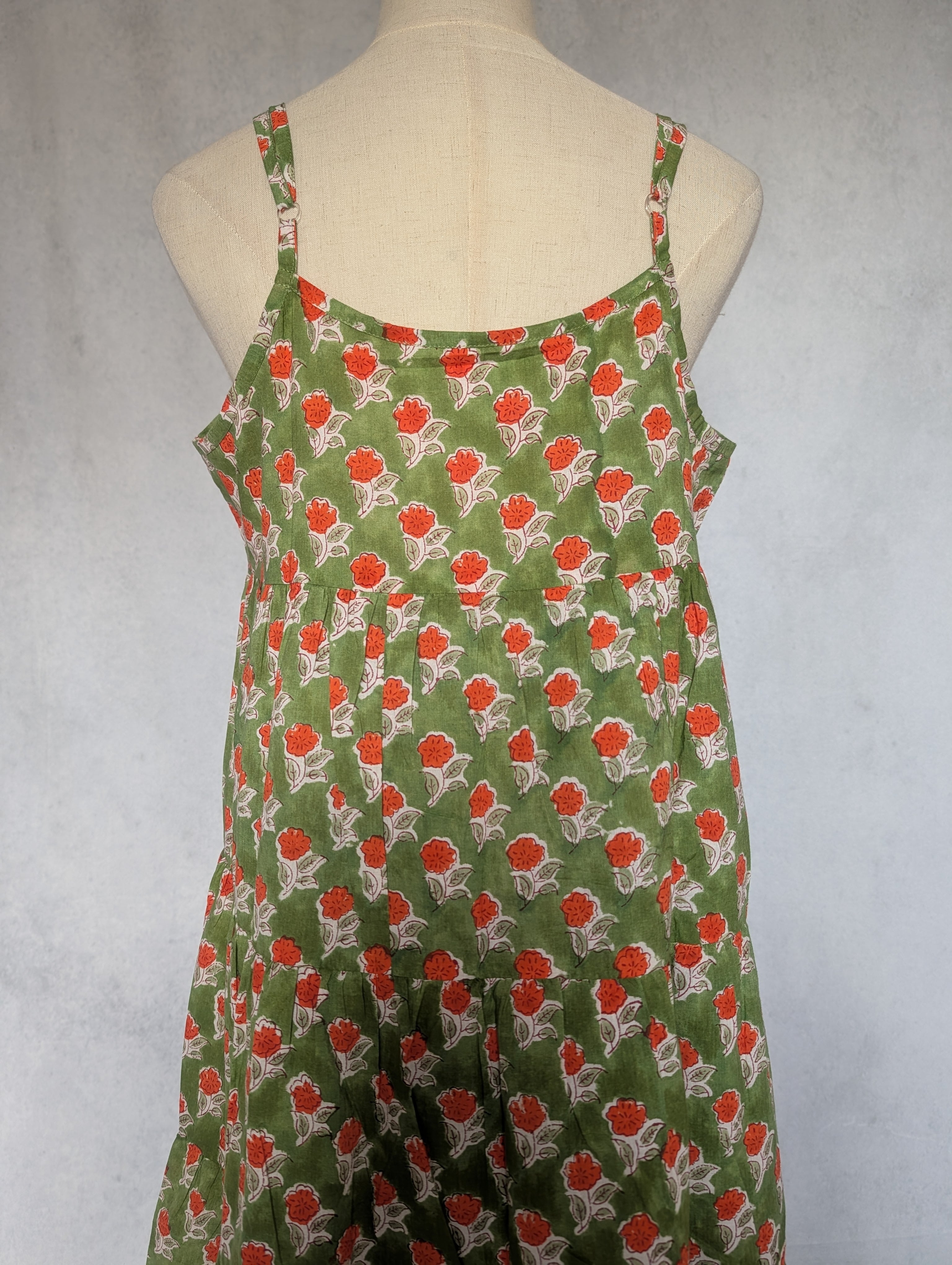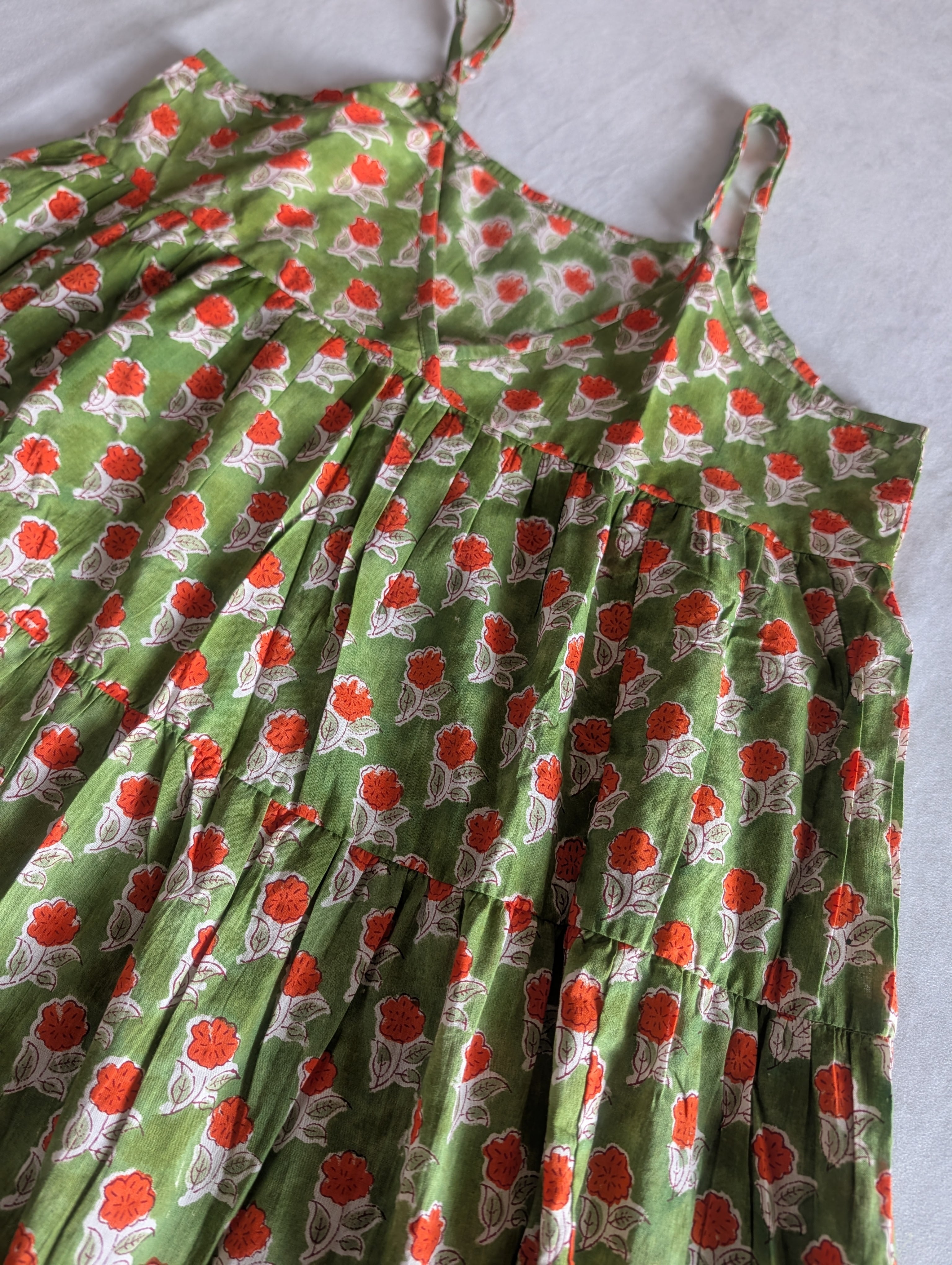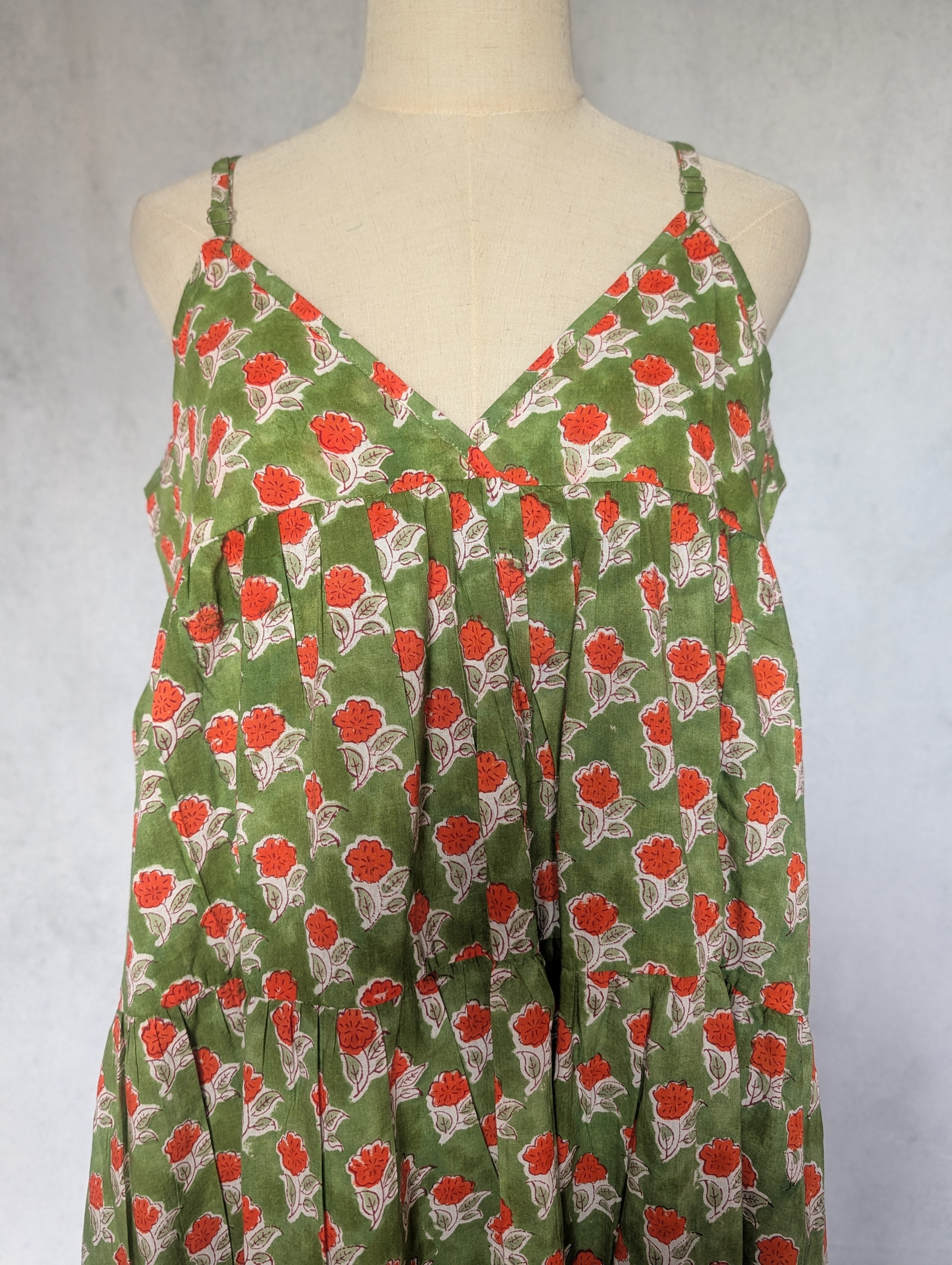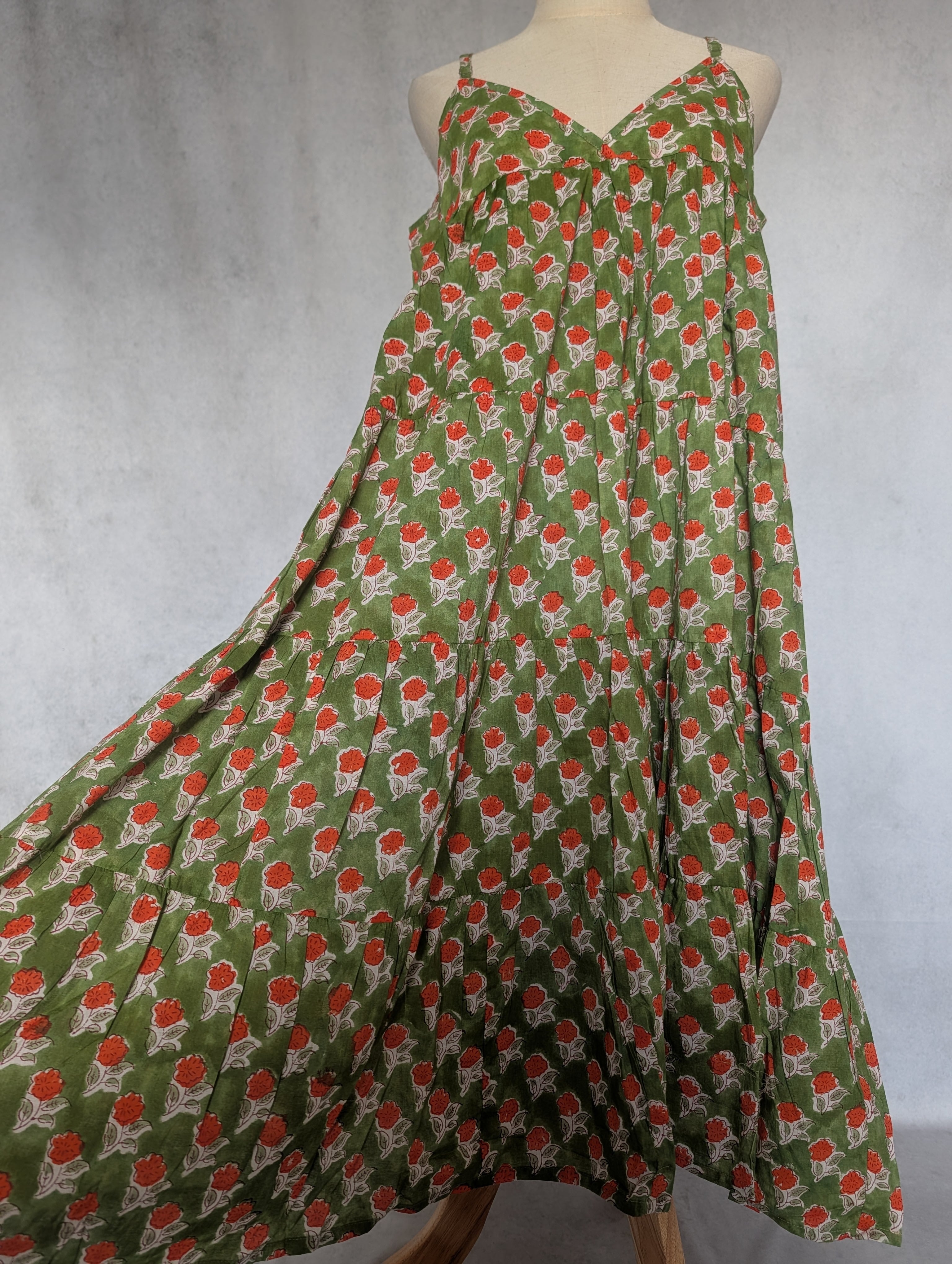 こちらは、インドの伝統工芸であるハンドブロックプリントで作られたワンピースです。