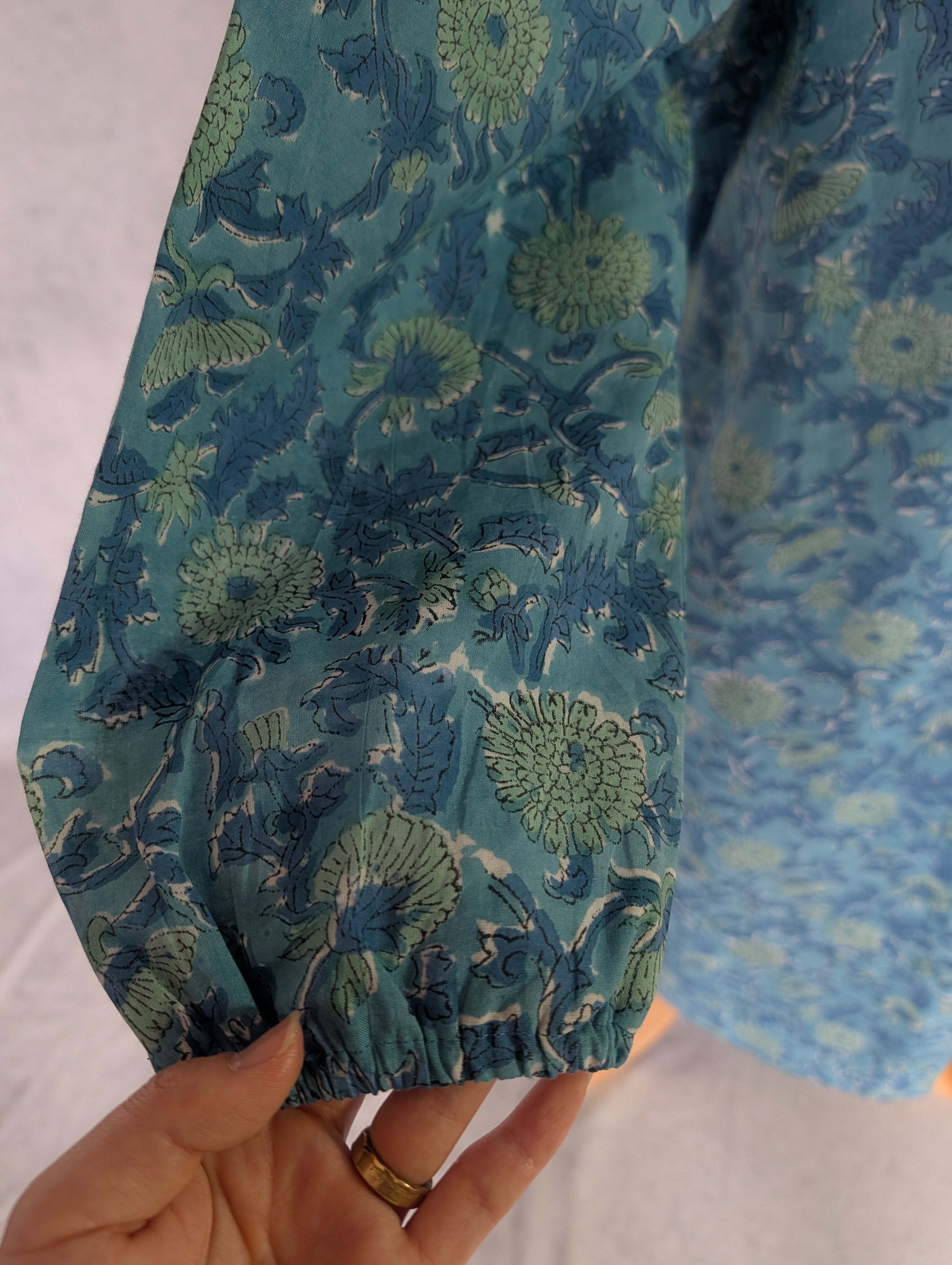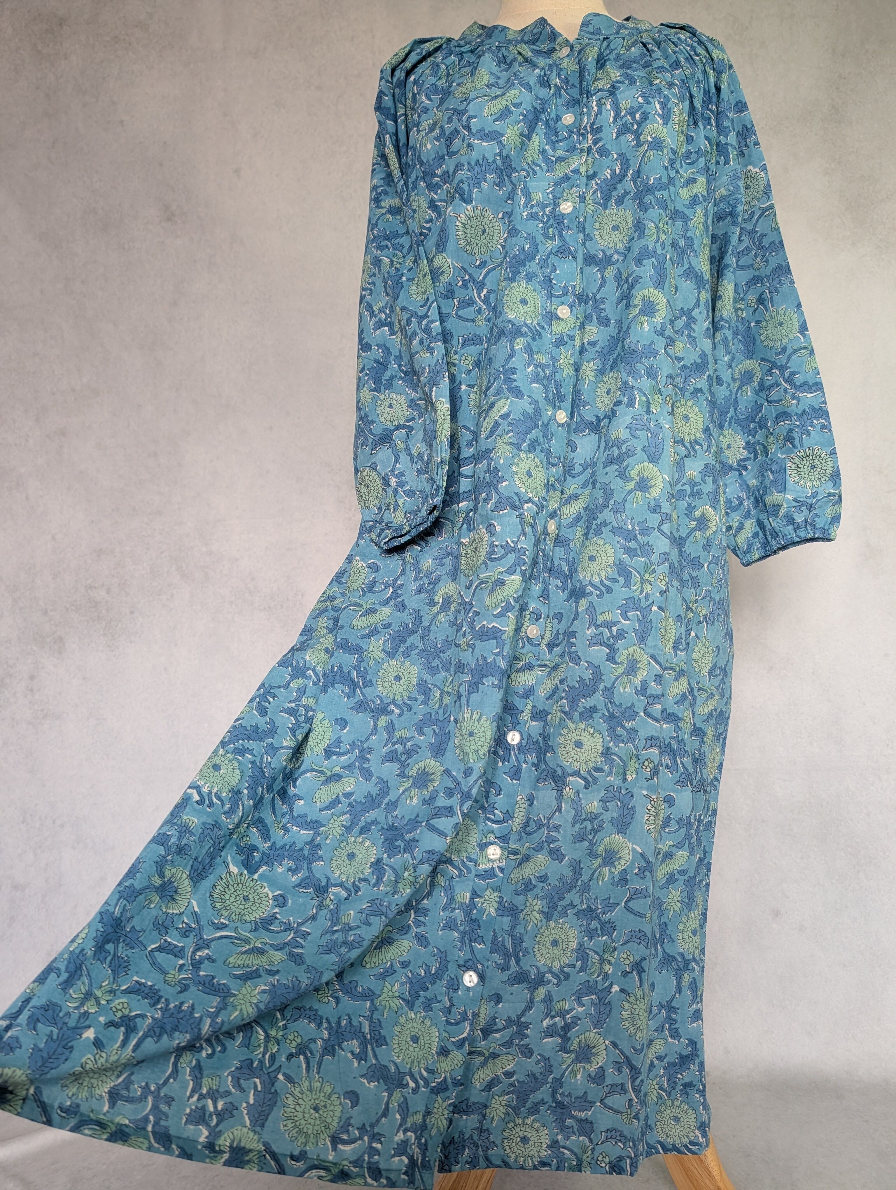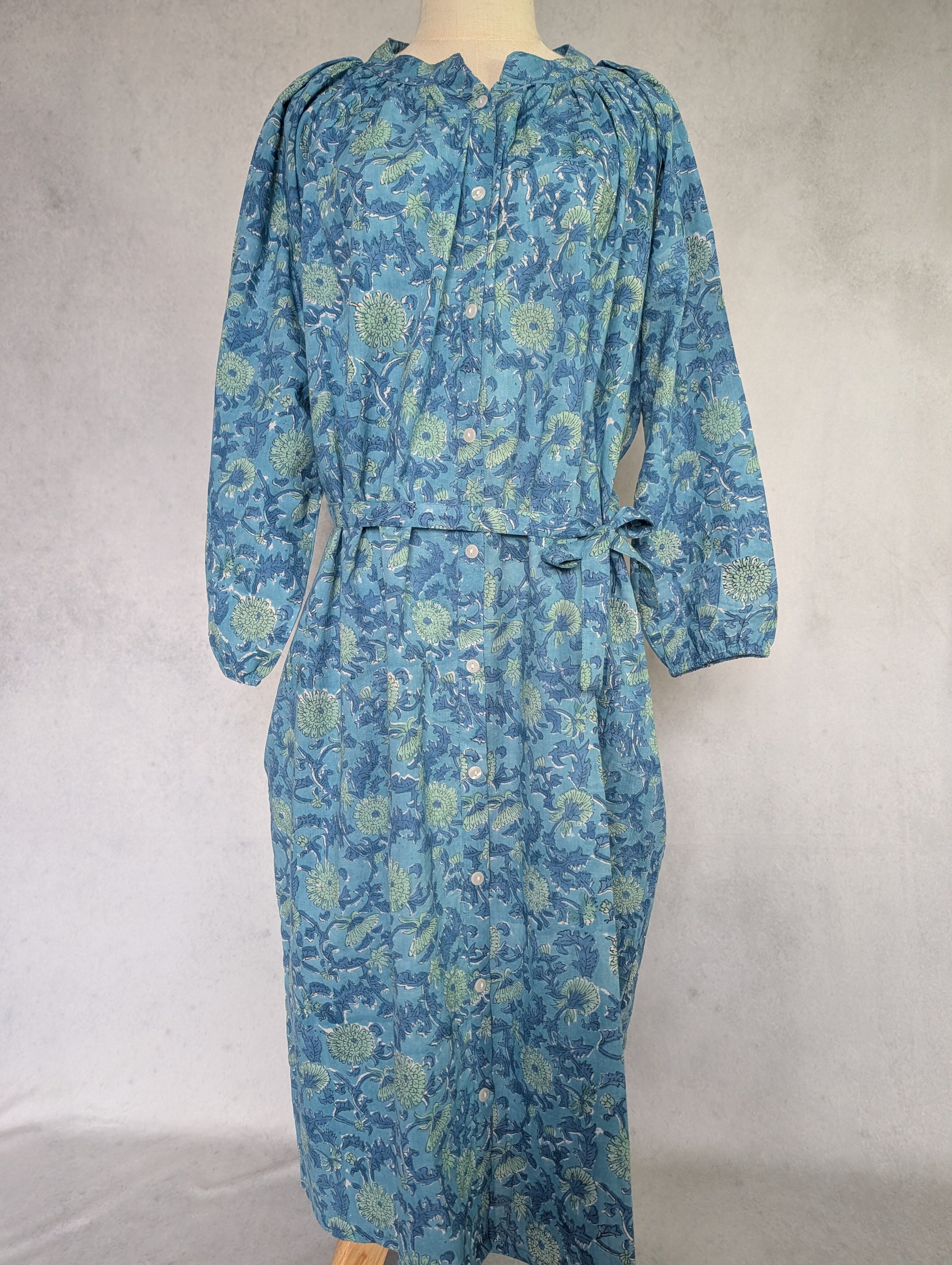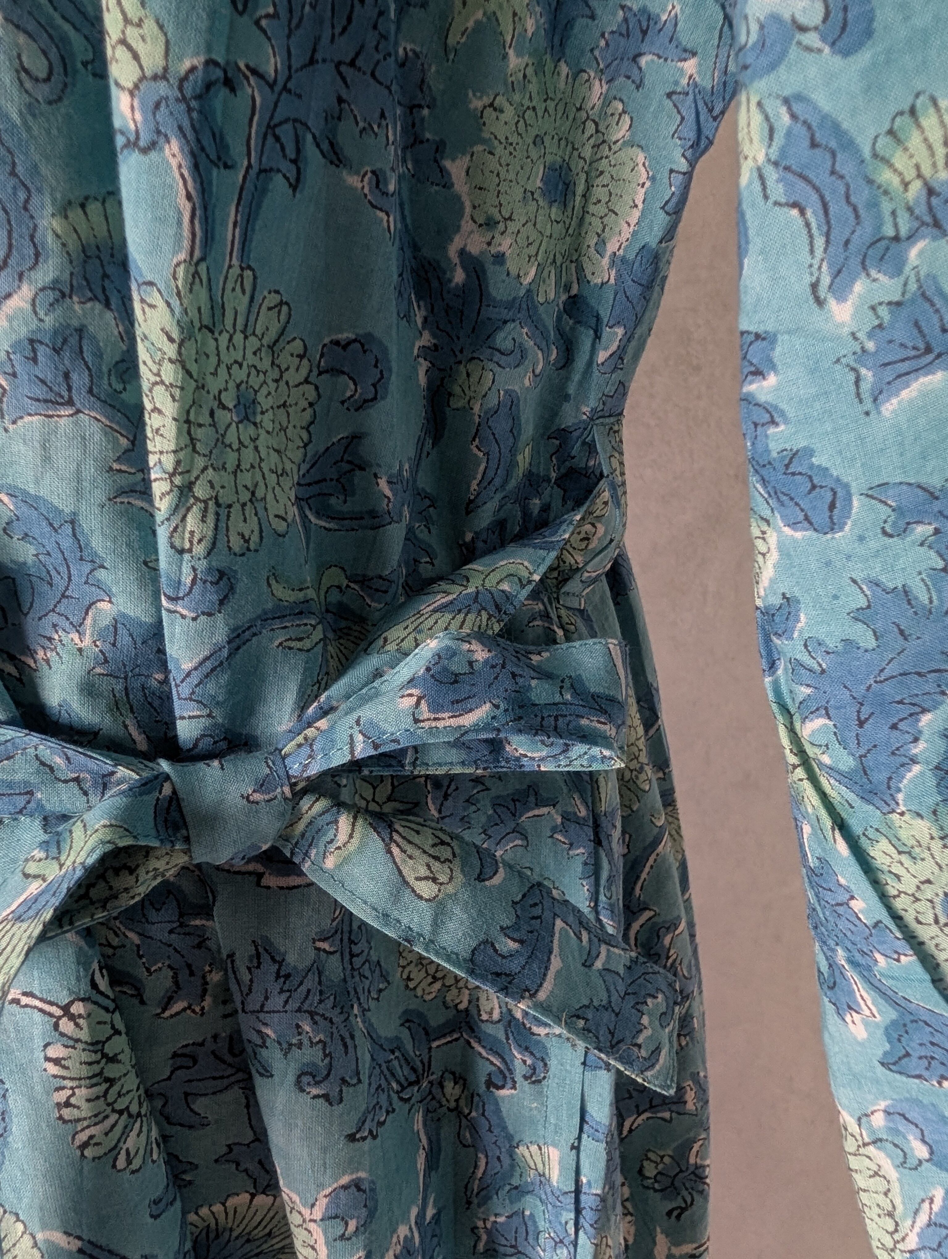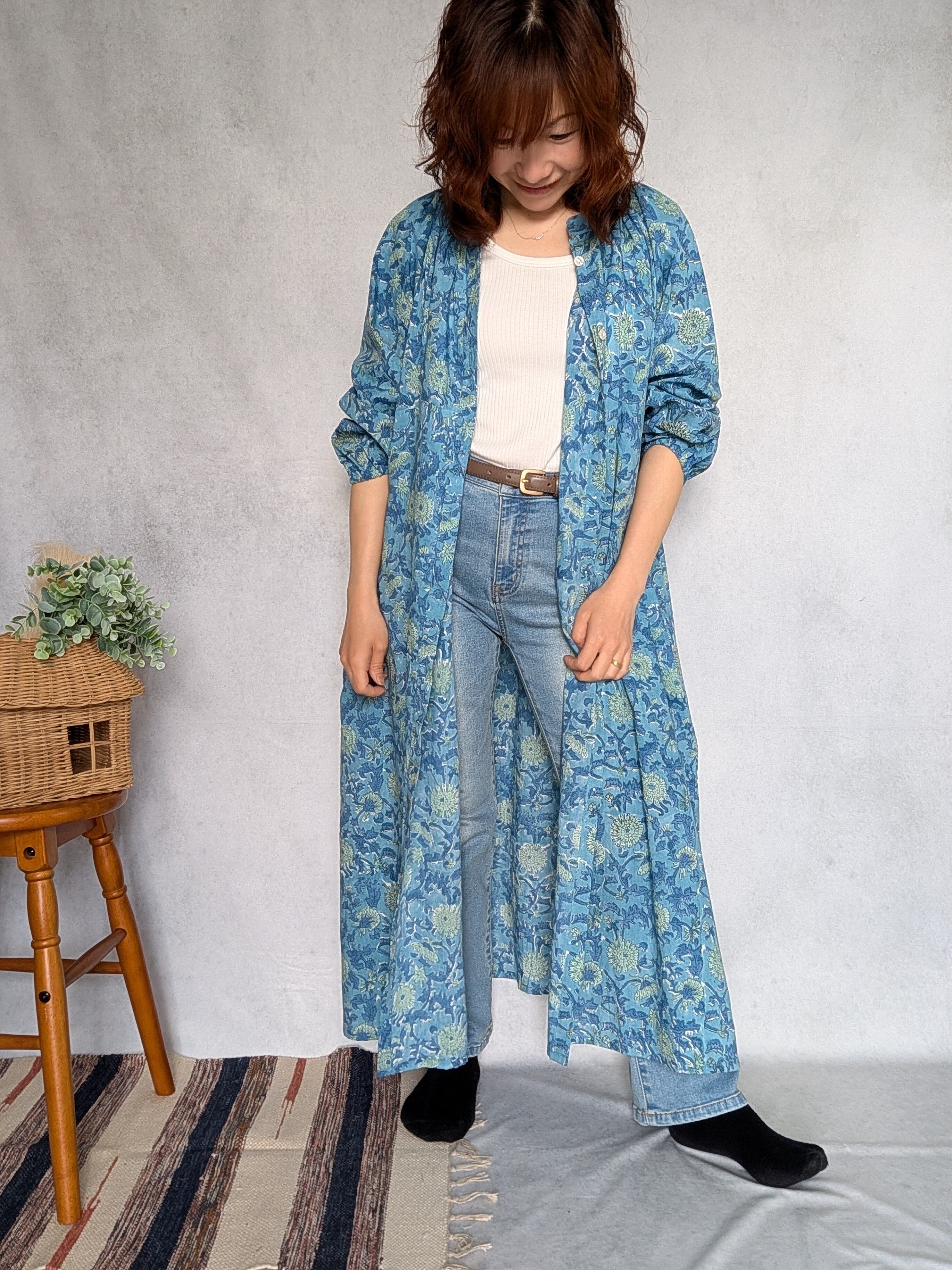 こちらは、インドの伝統工芸であるハンドブロックプリントで作られたワンピースです。