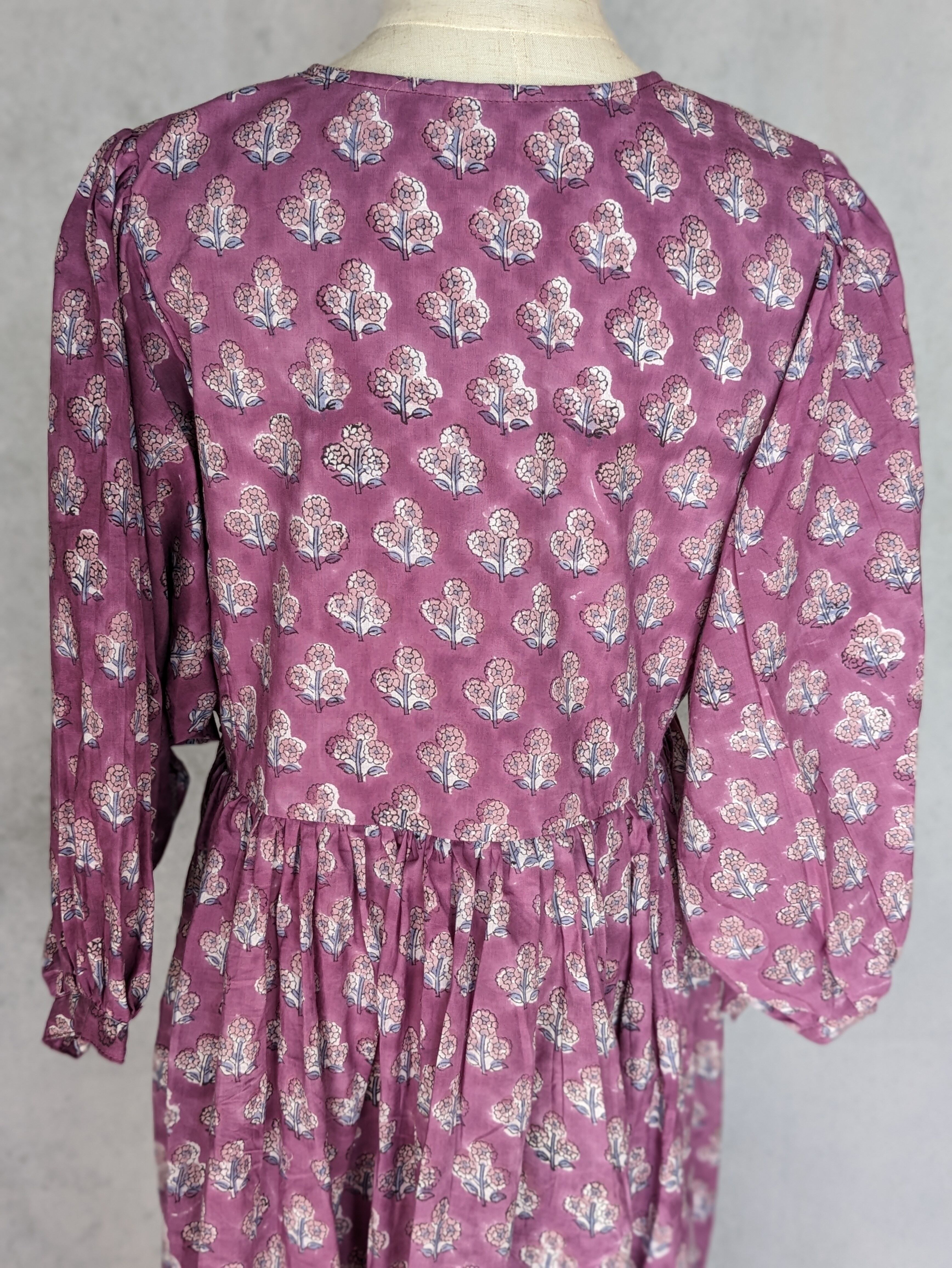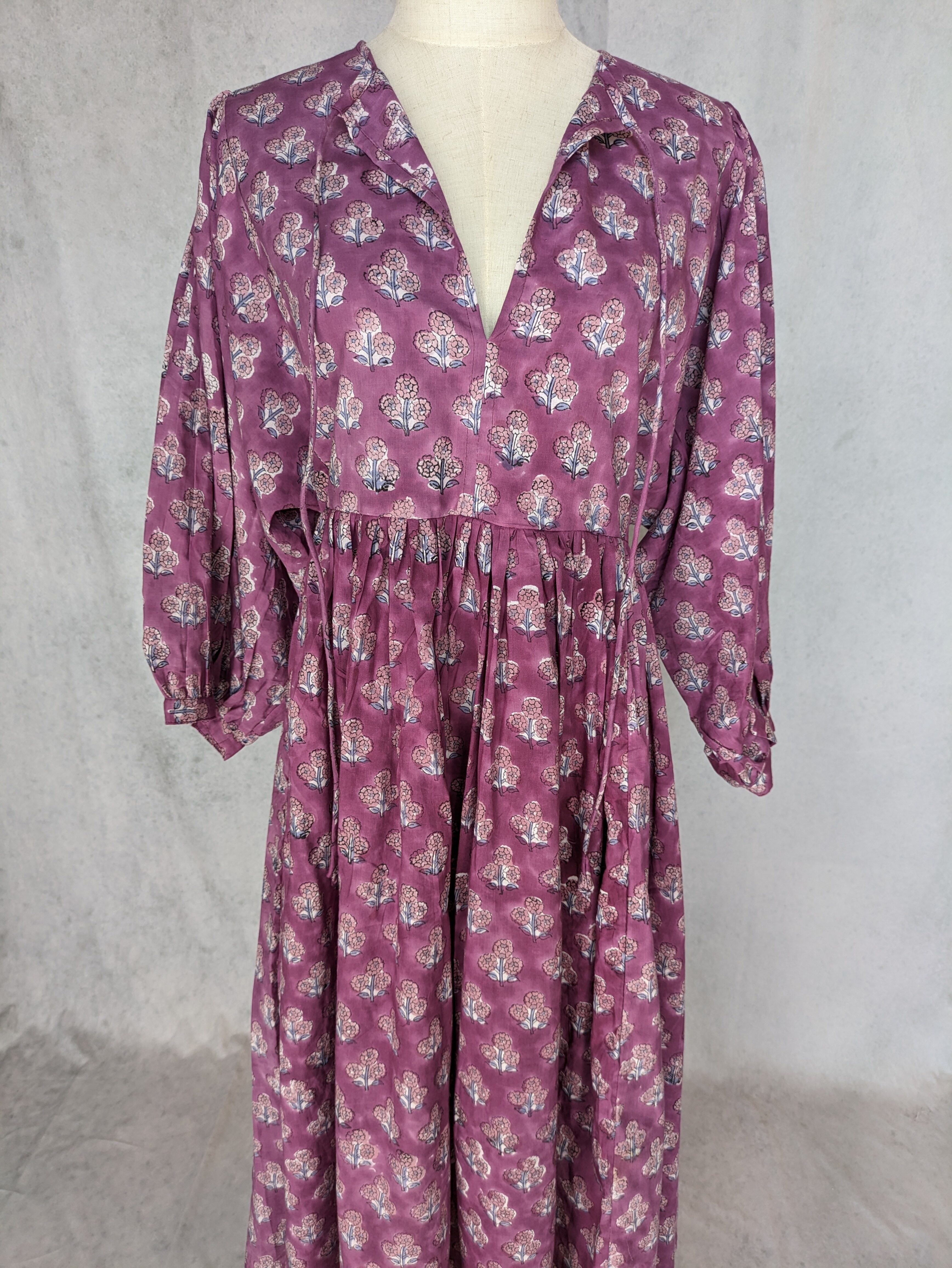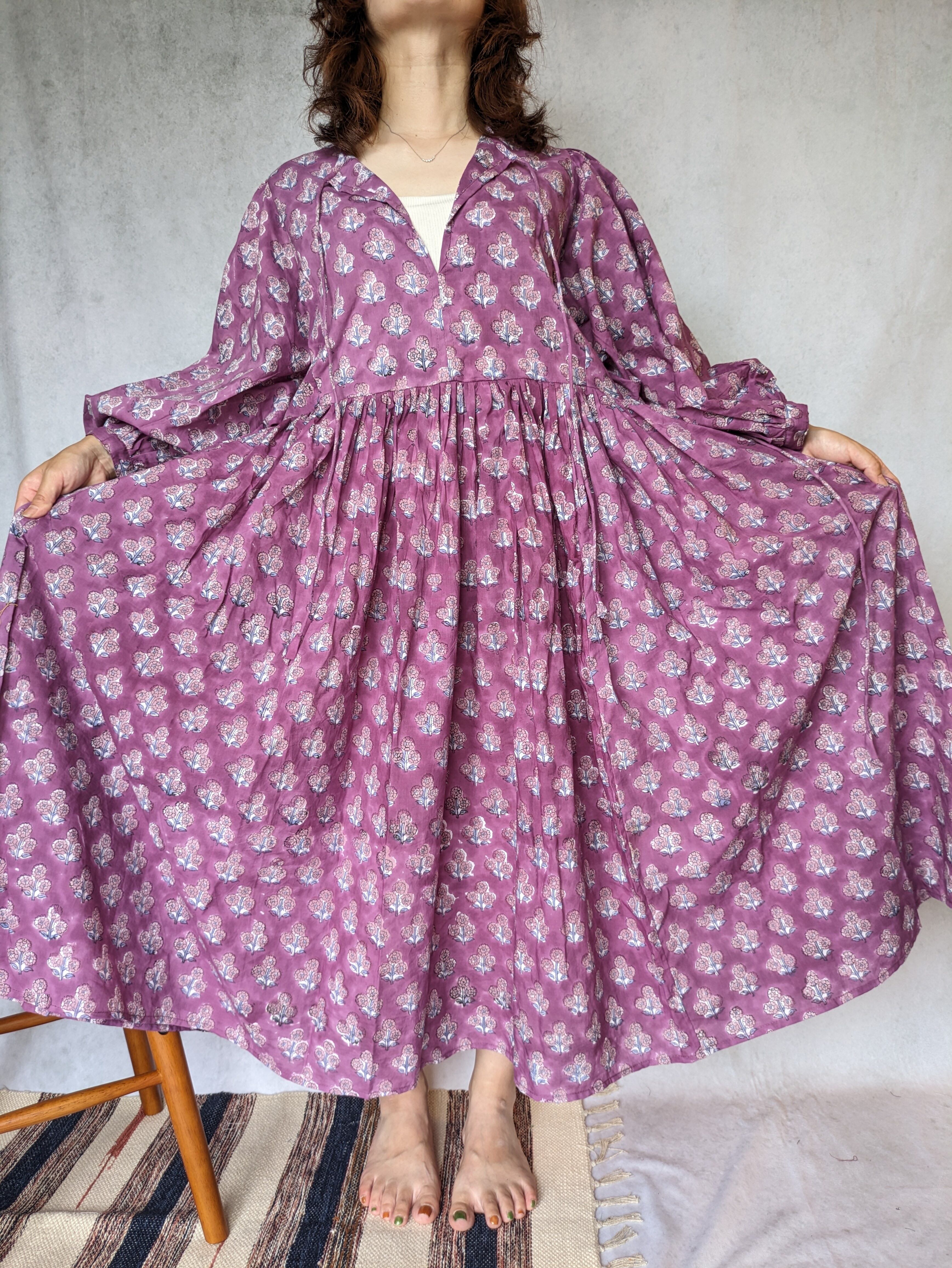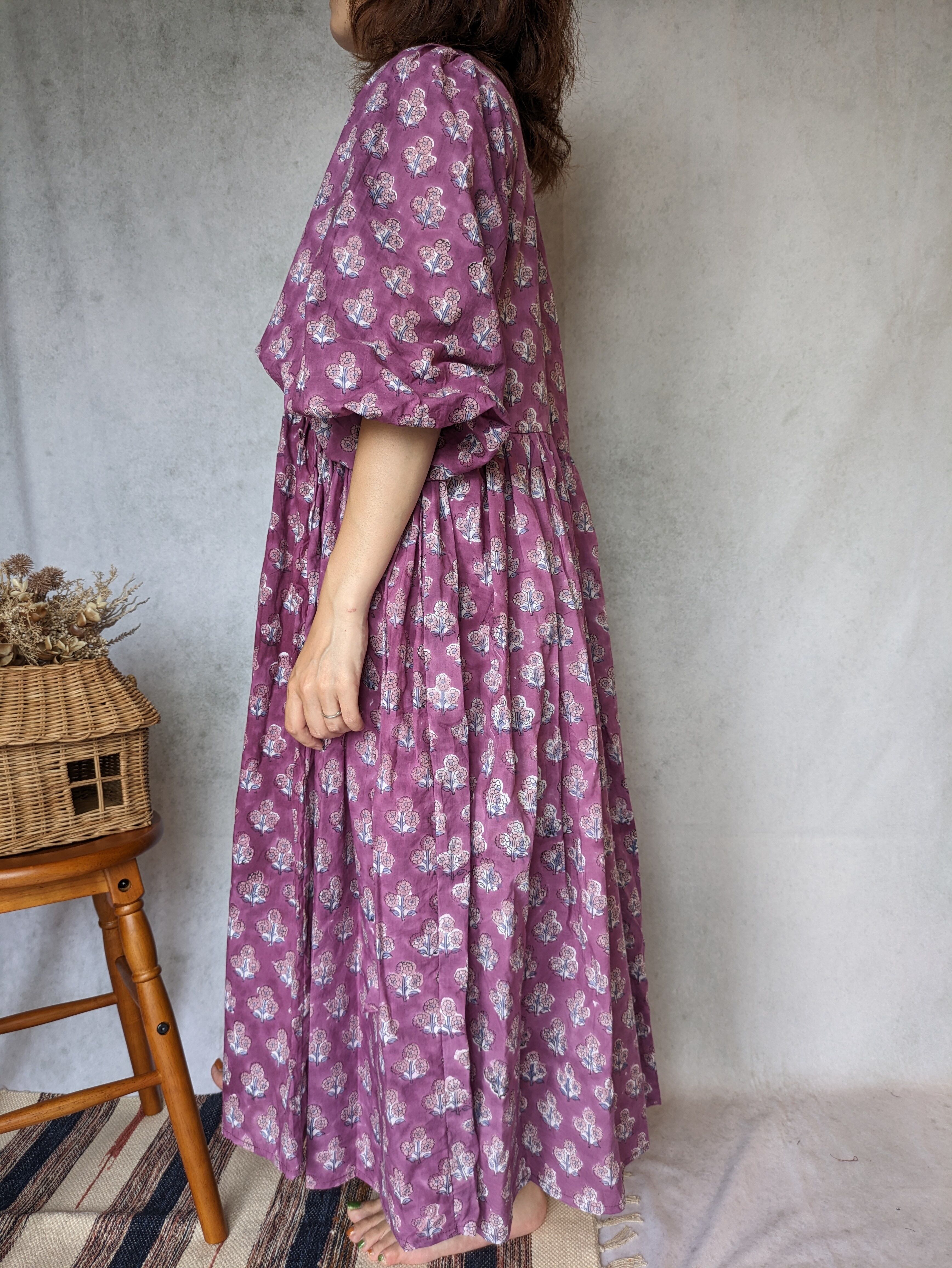 こちらは、インドの伝統工芸であるハンドブロックプリントで作られたワンピースです。