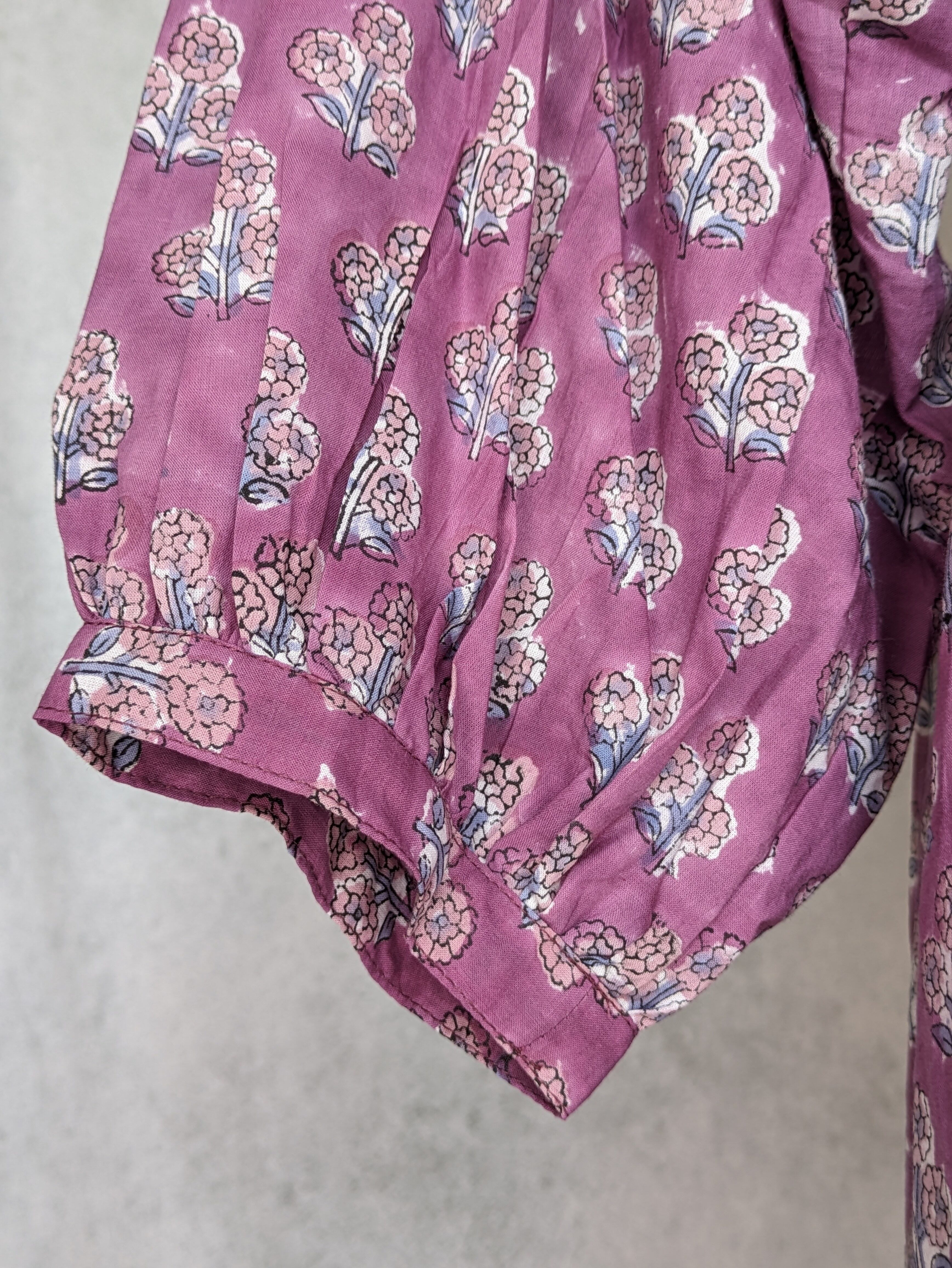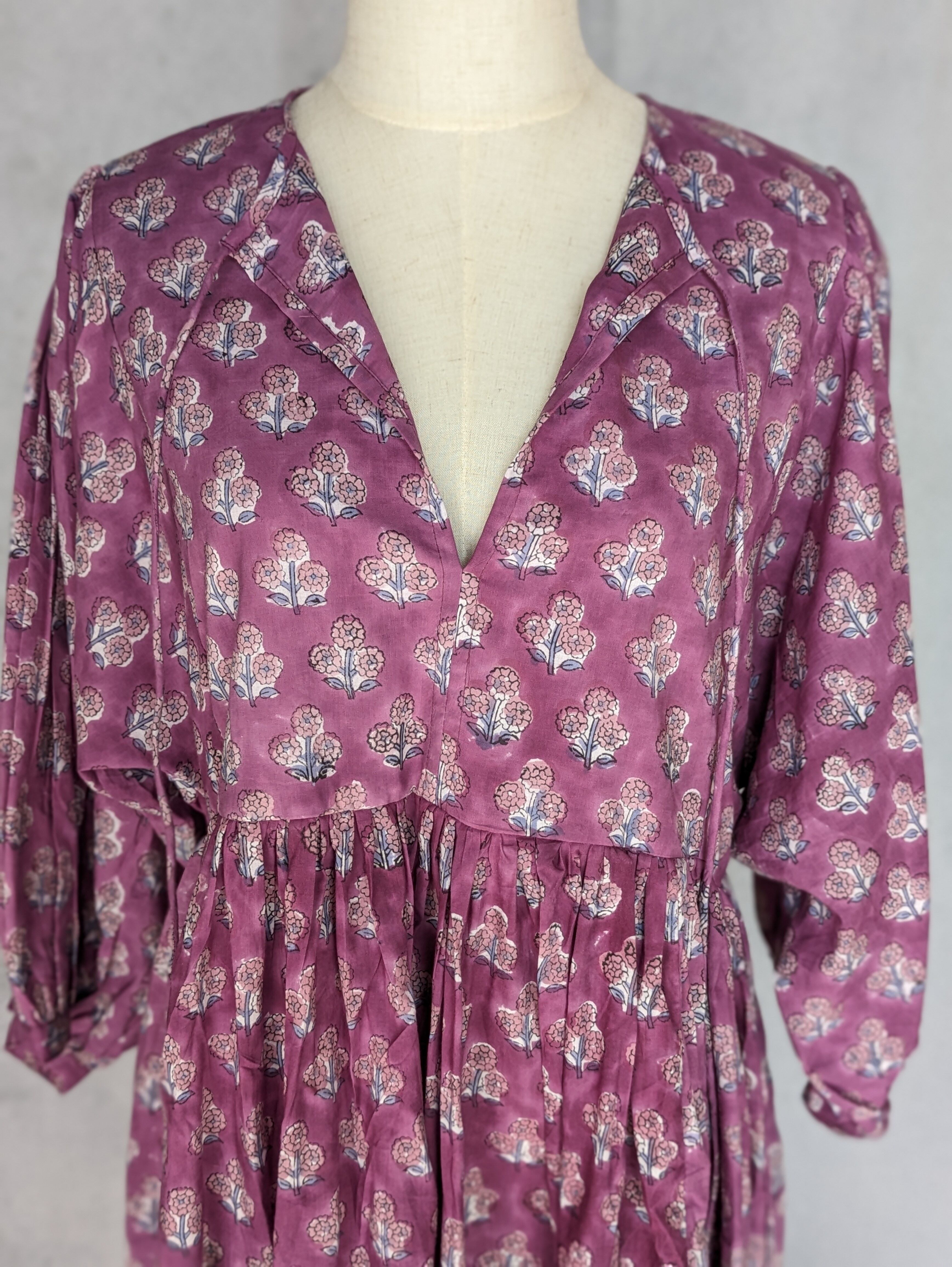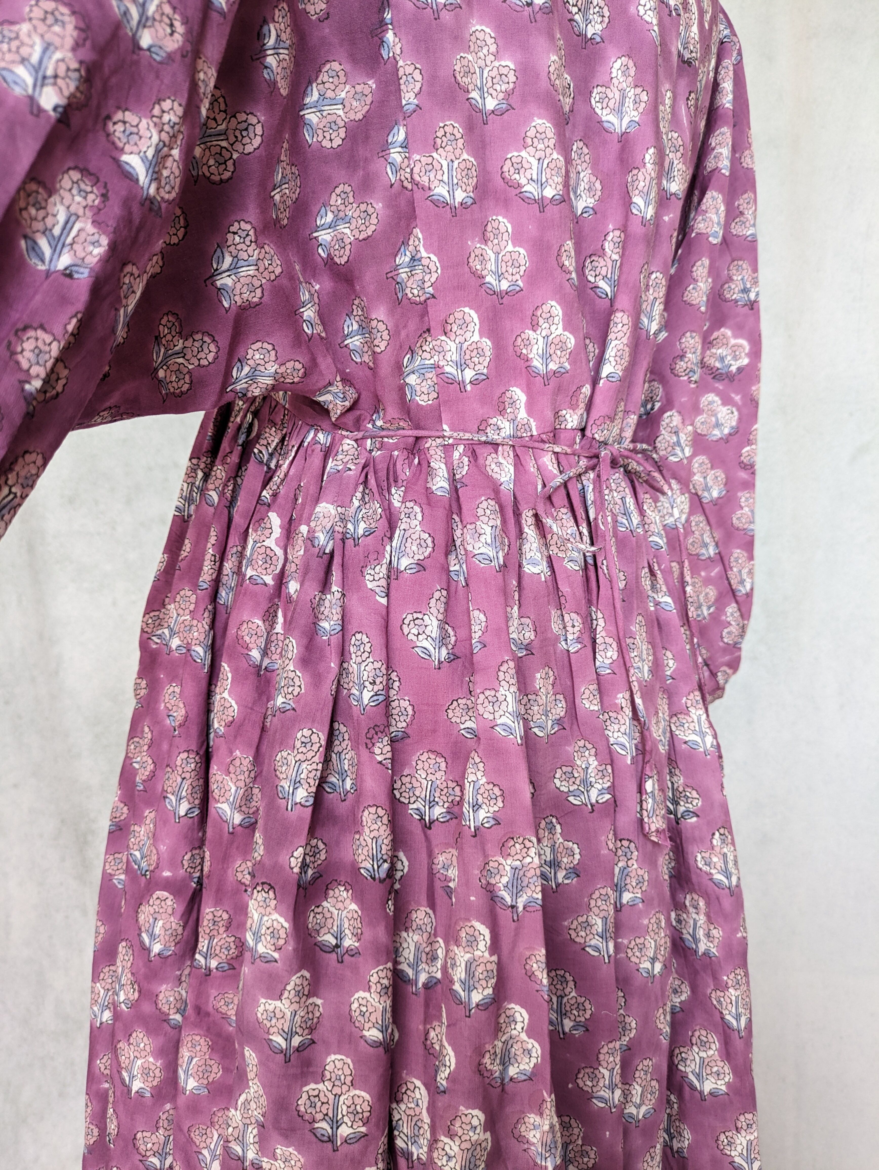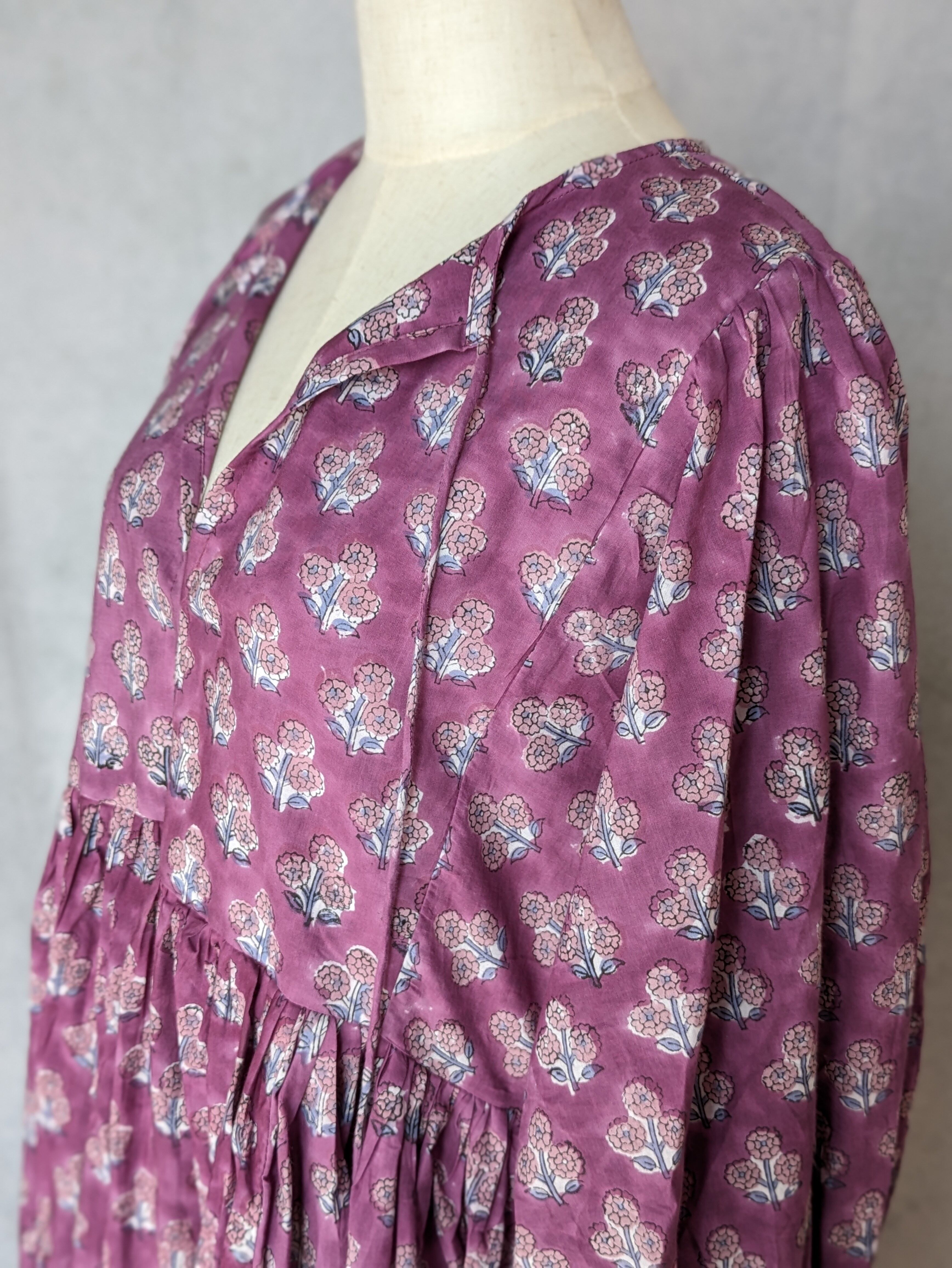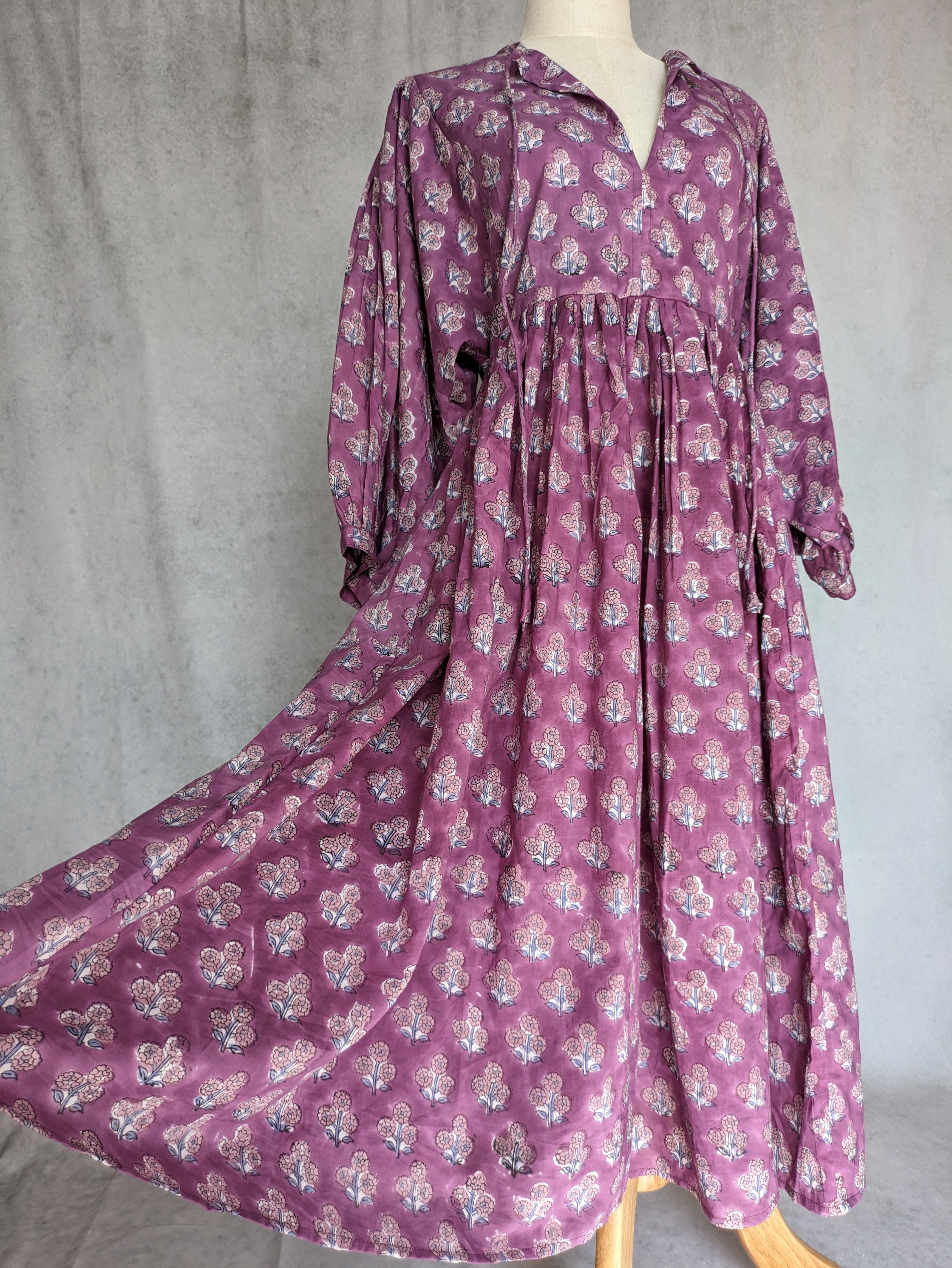 こちらは、インドの伝統工芸であるハンドブロックプリントで作られたワンピースです。