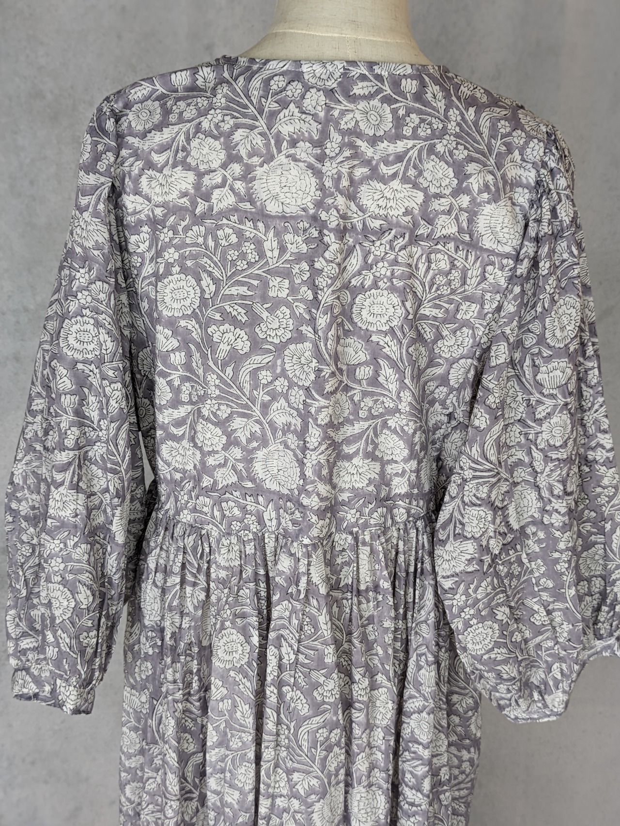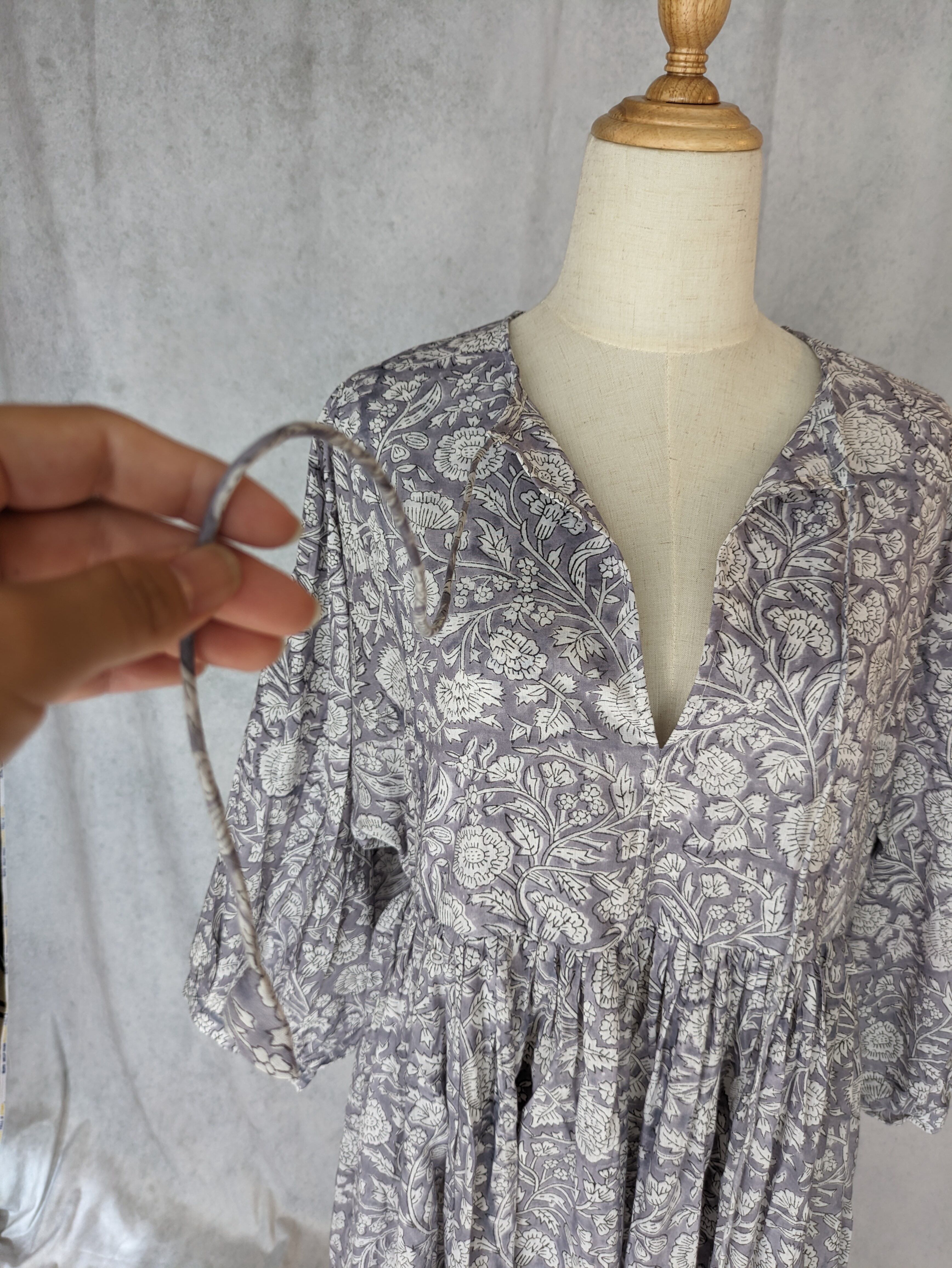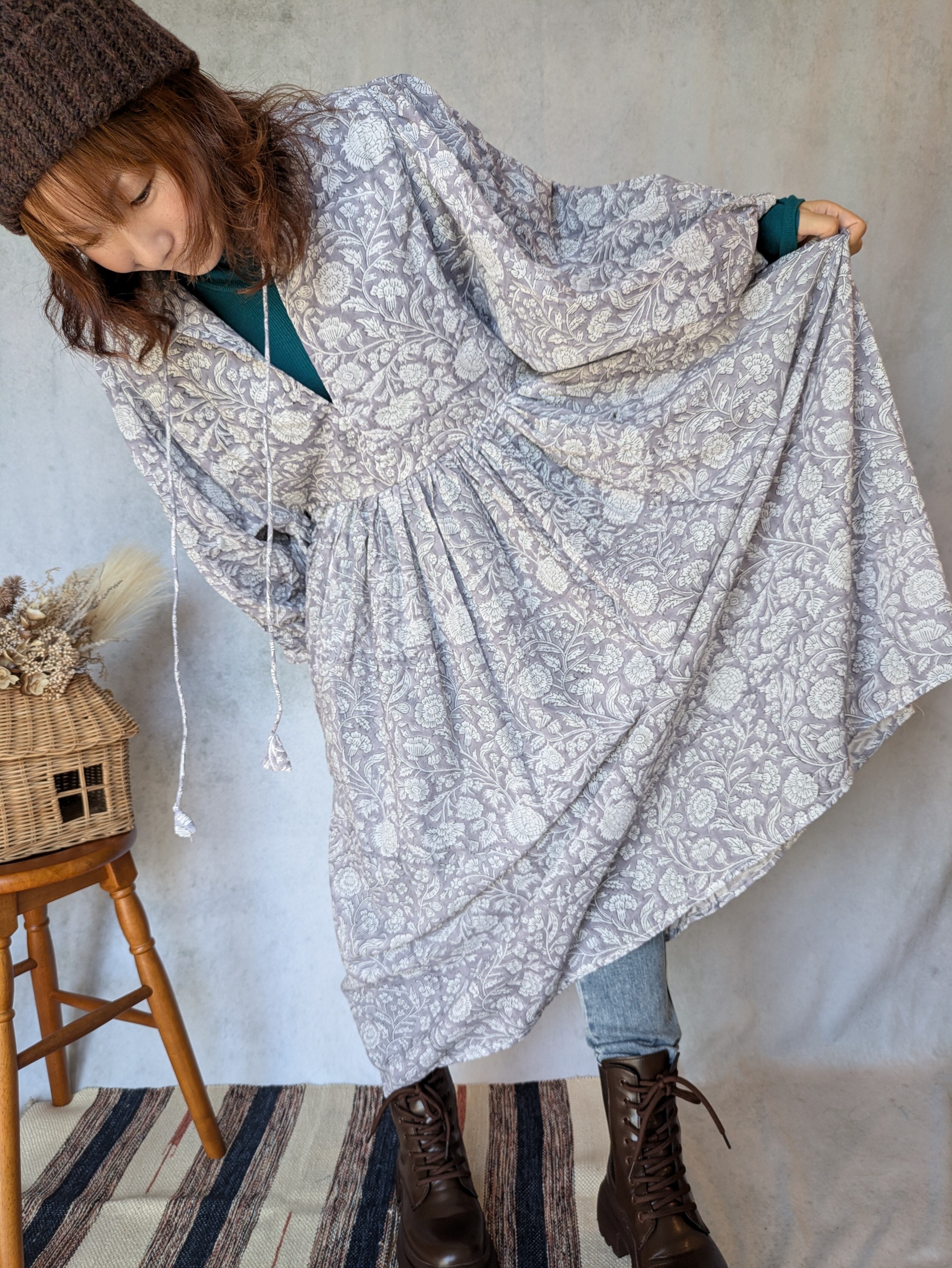 こちらは、インドの伝統工芸であるハンドブロックプリントで作られたワンピースです。