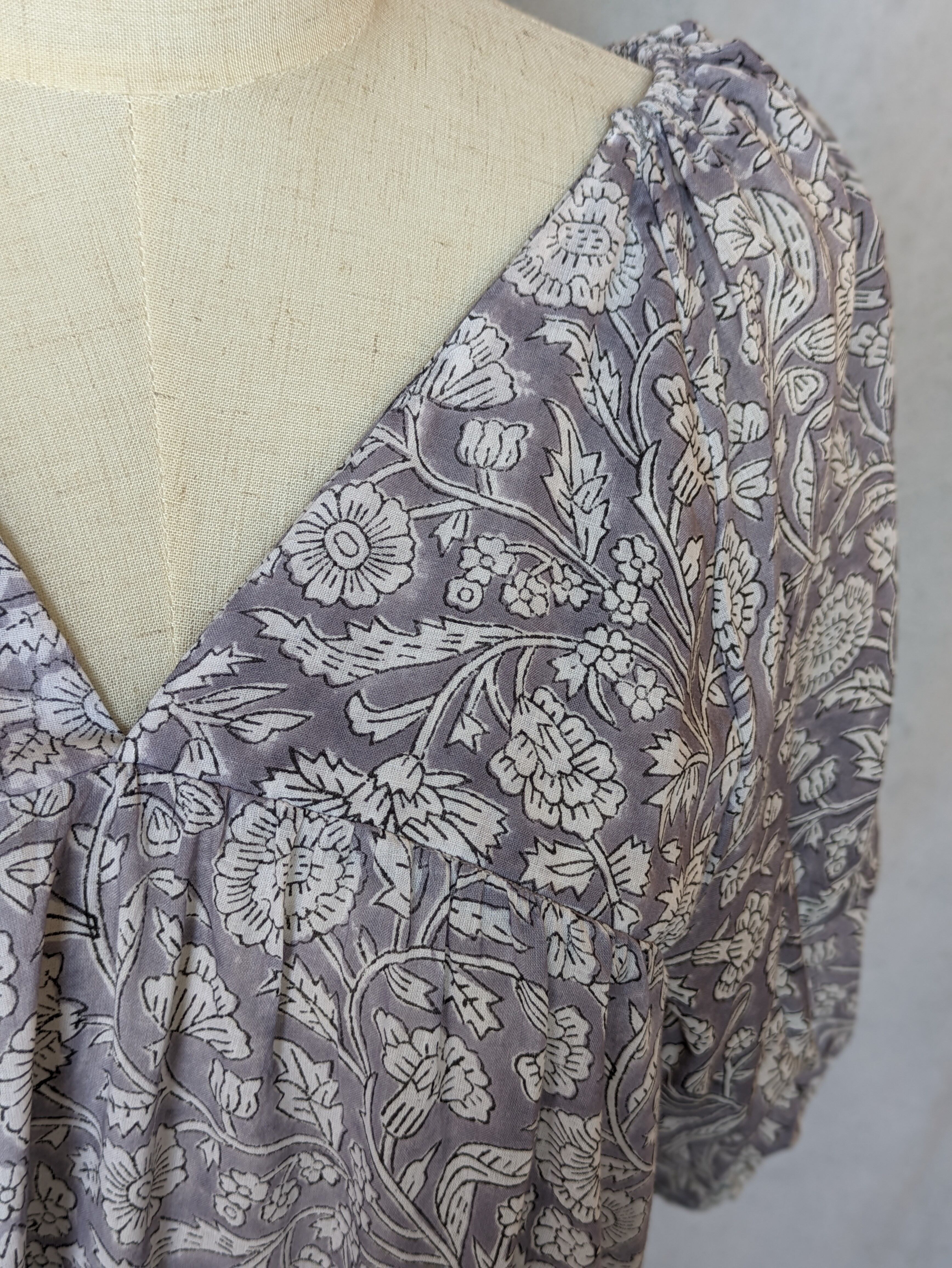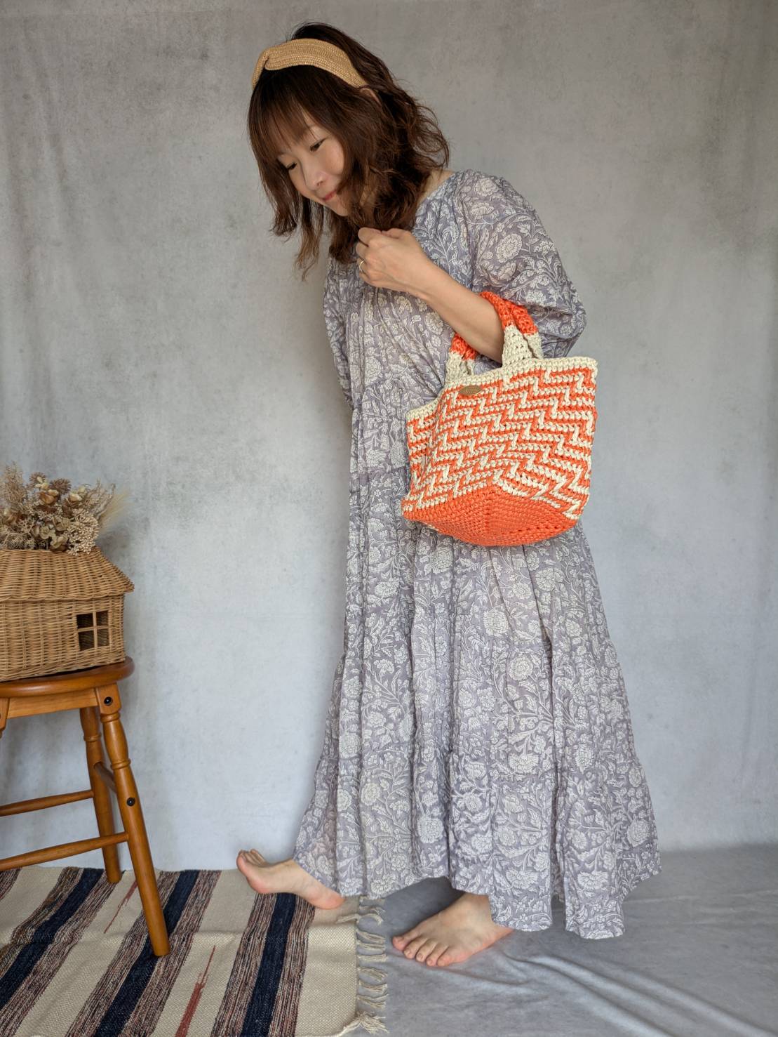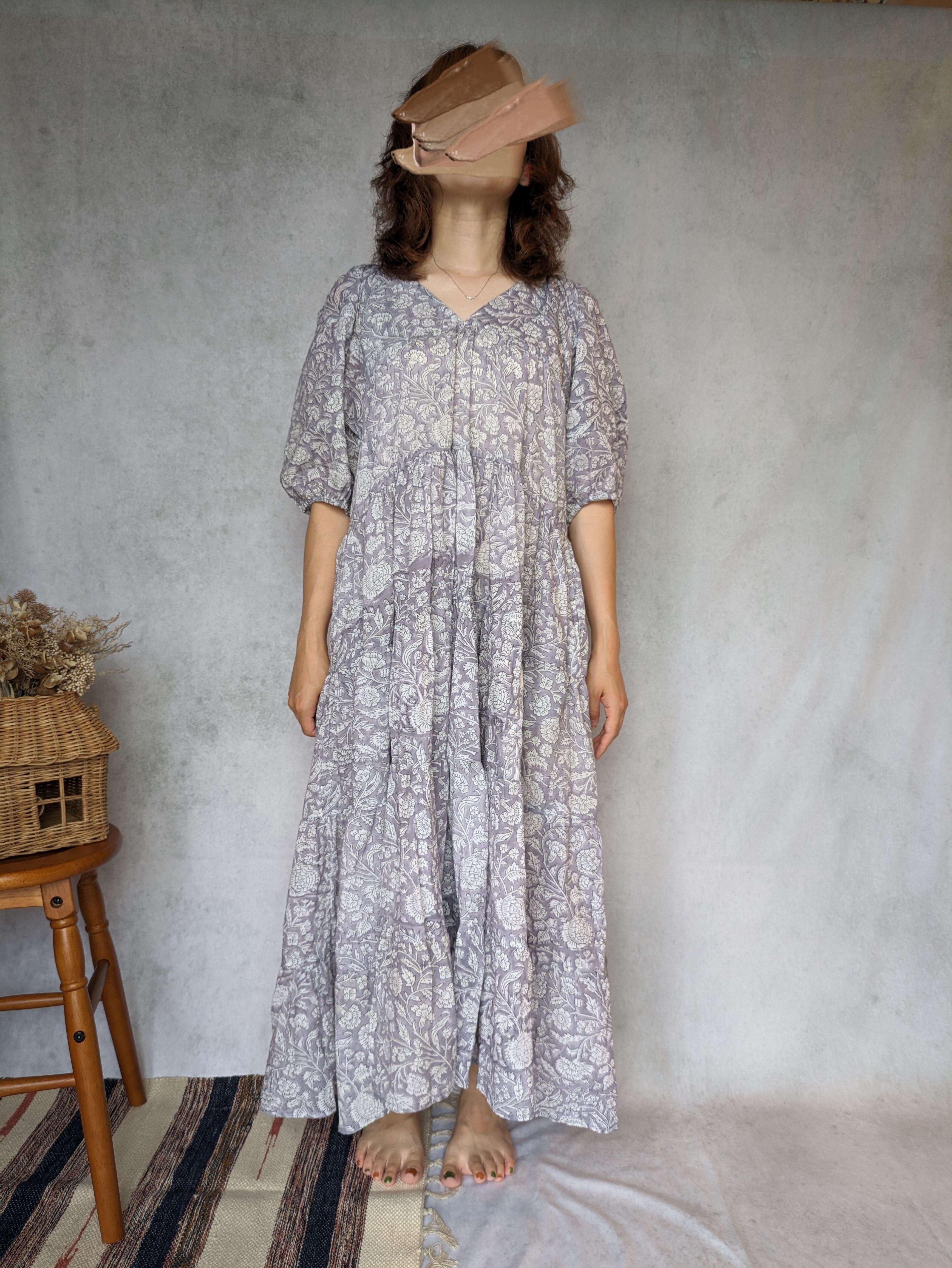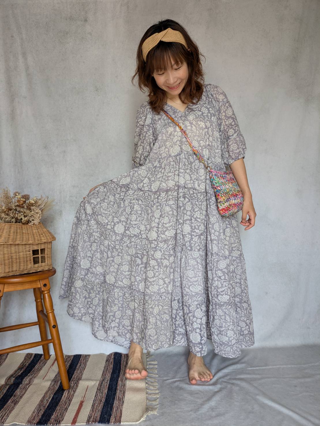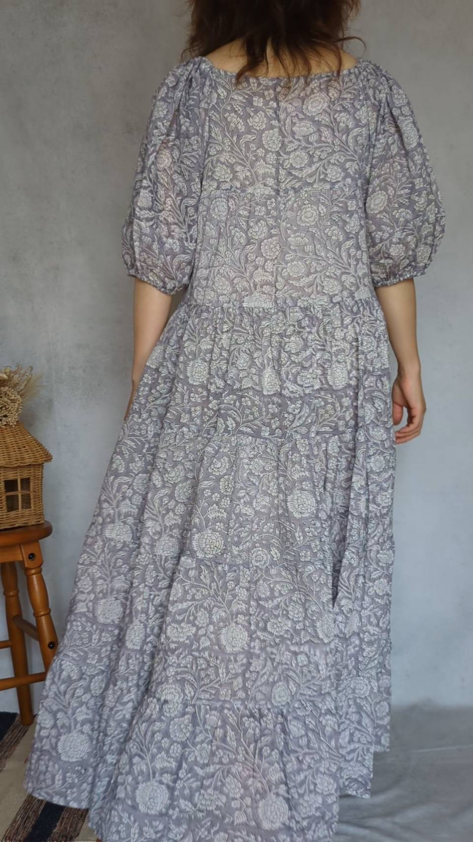 こちらは、インドの伝統工芸であるハンドブロックプリントで作られたワンピースです。