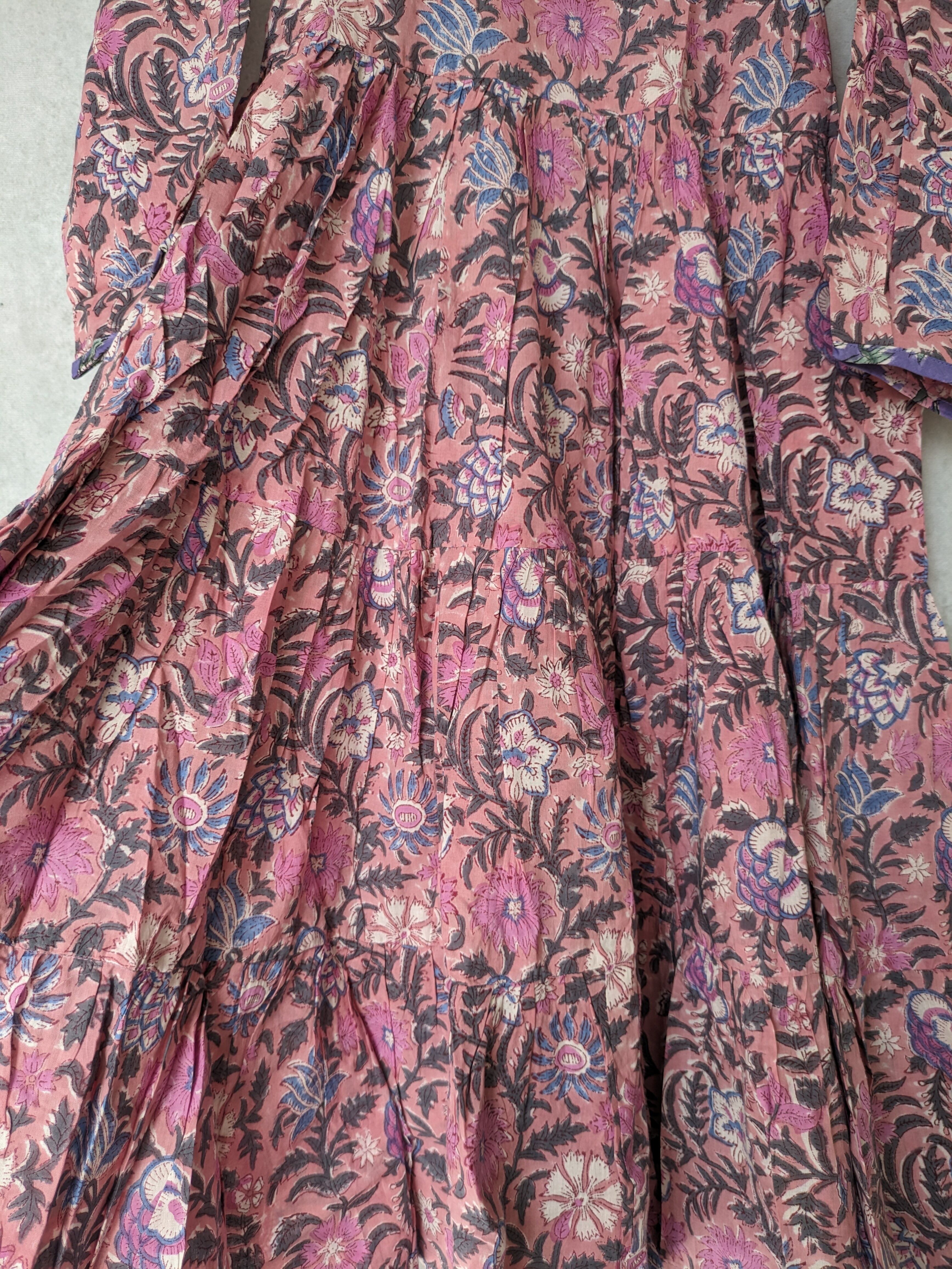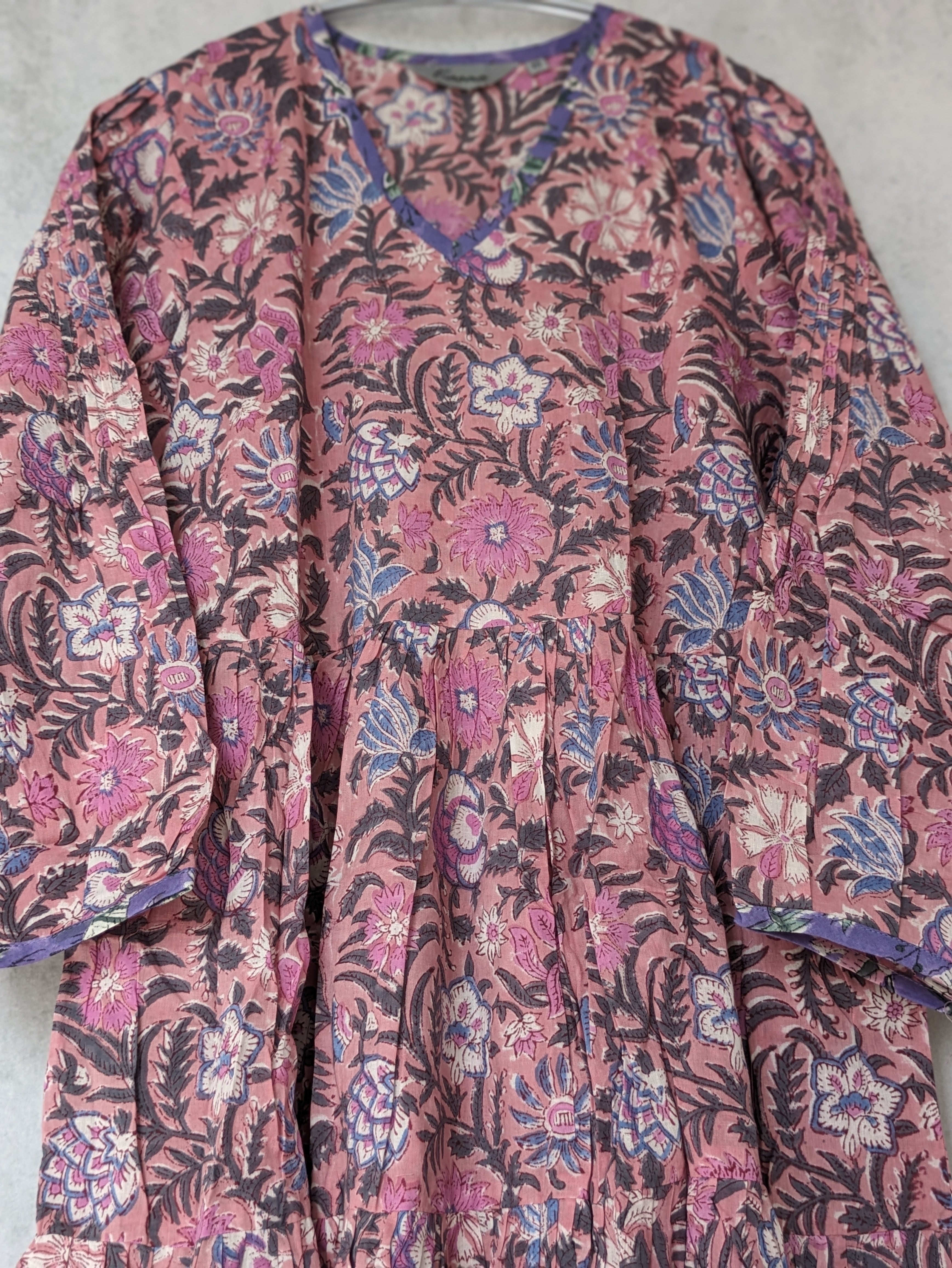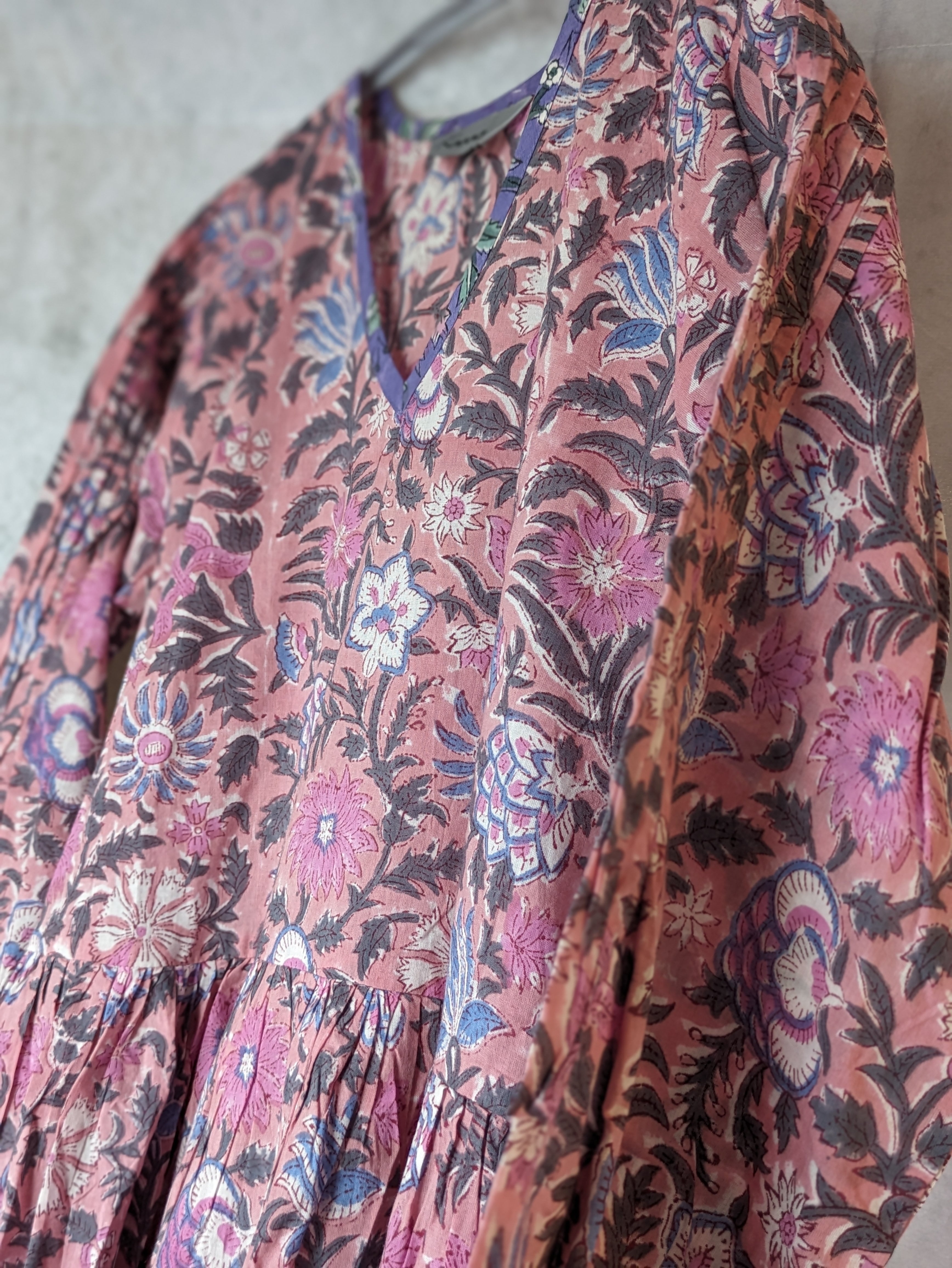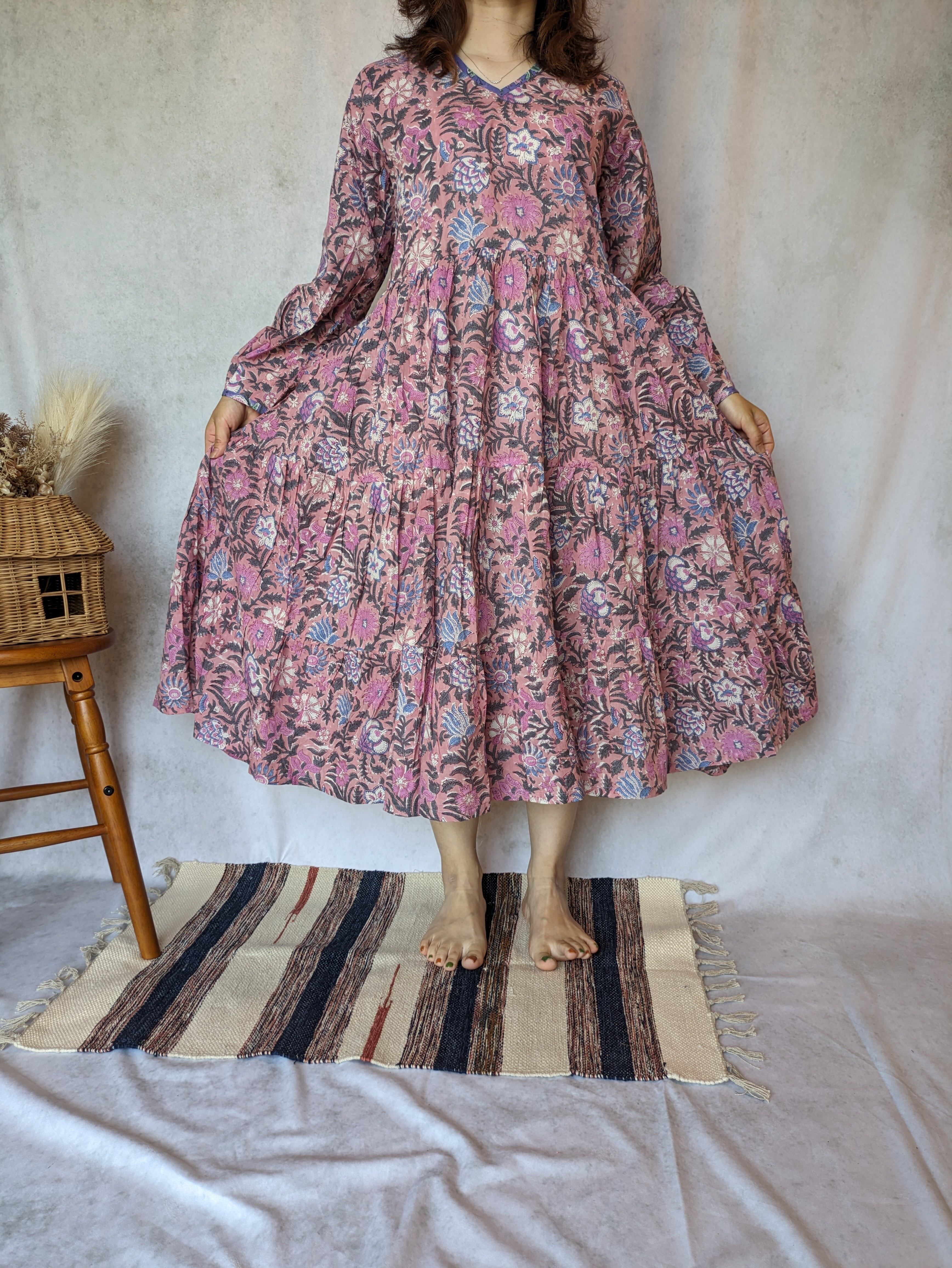 こちらは、インドの伝統工芸であるハンドブロックプリントで作られたワンピースです。