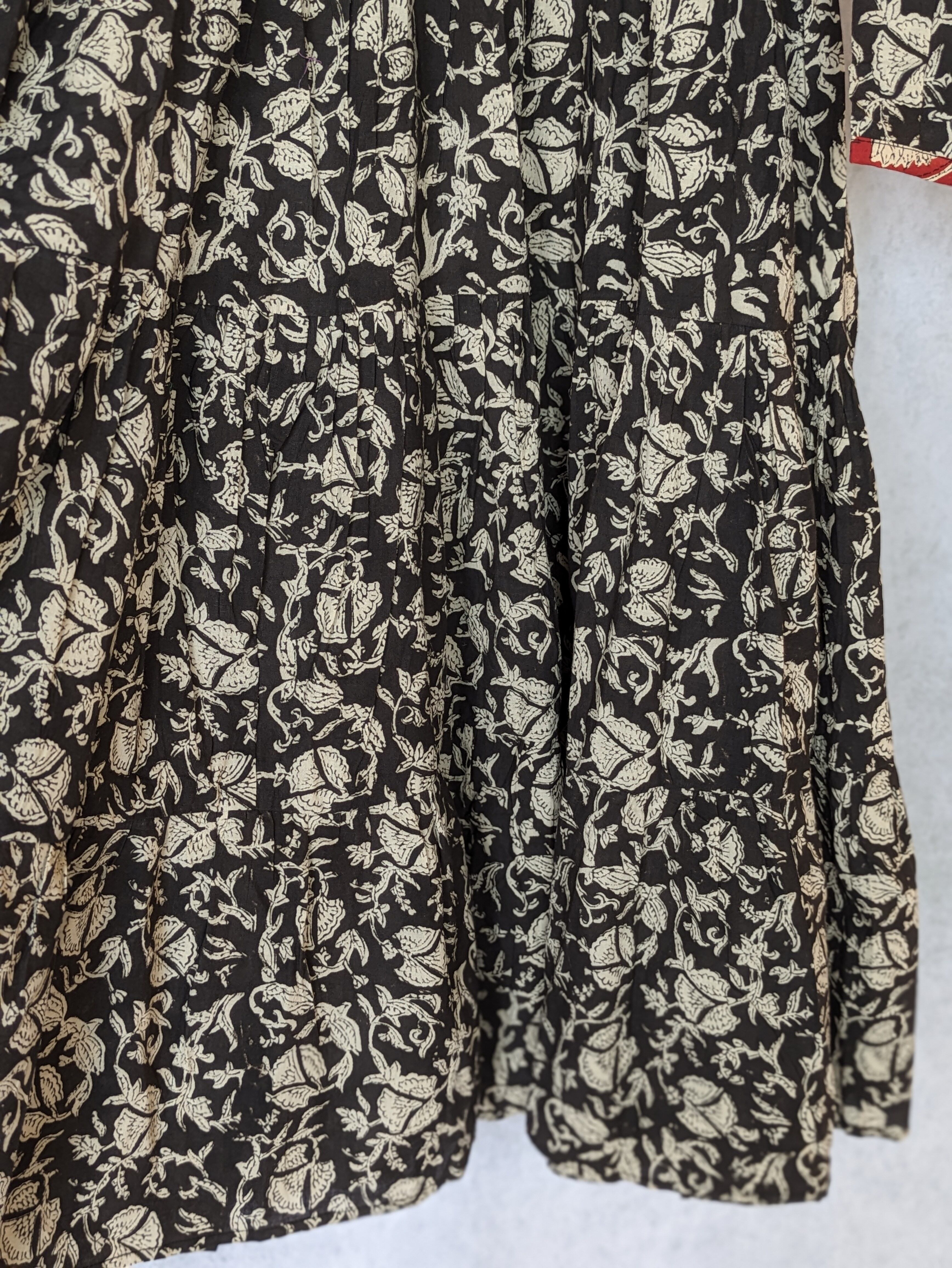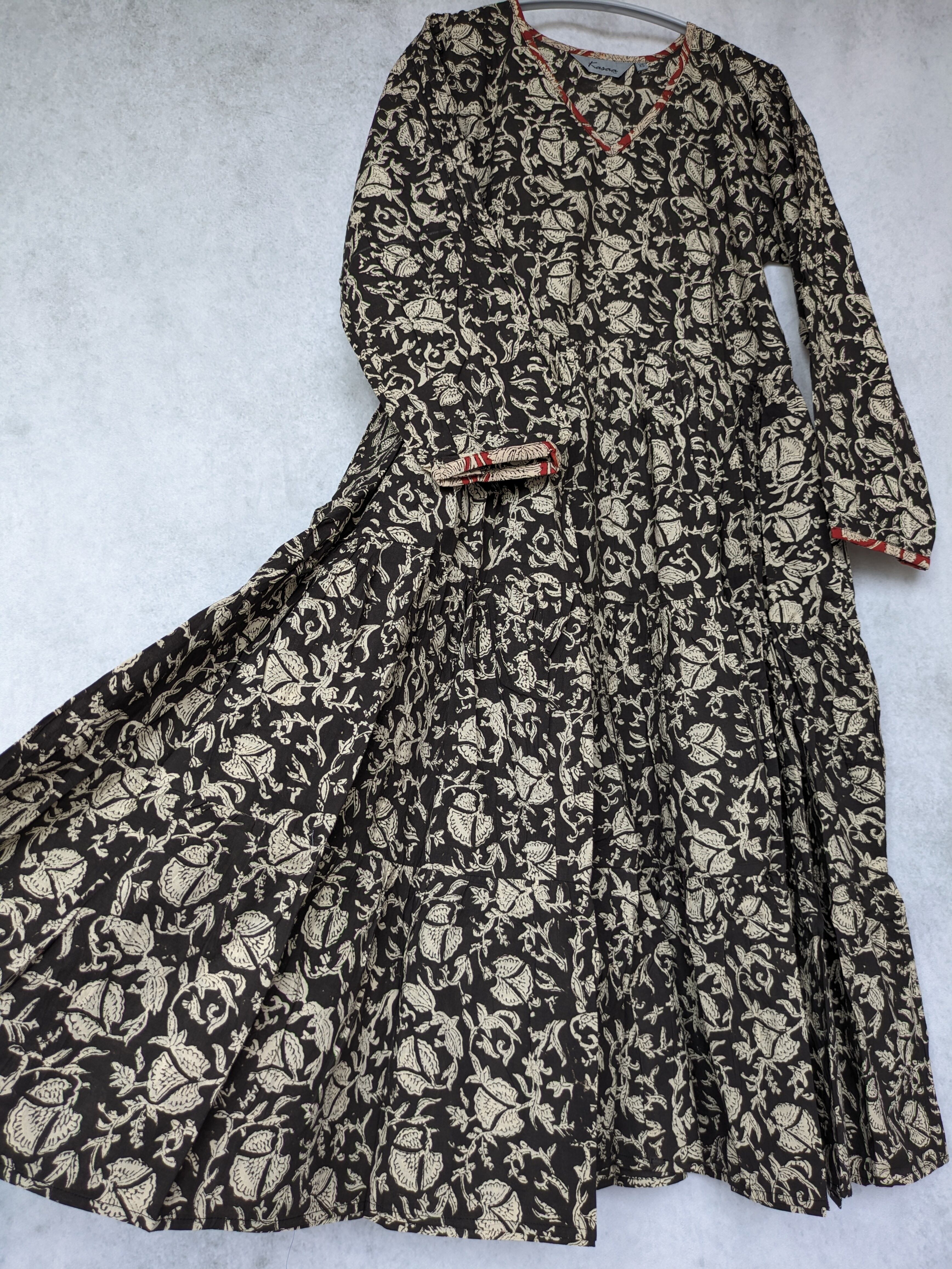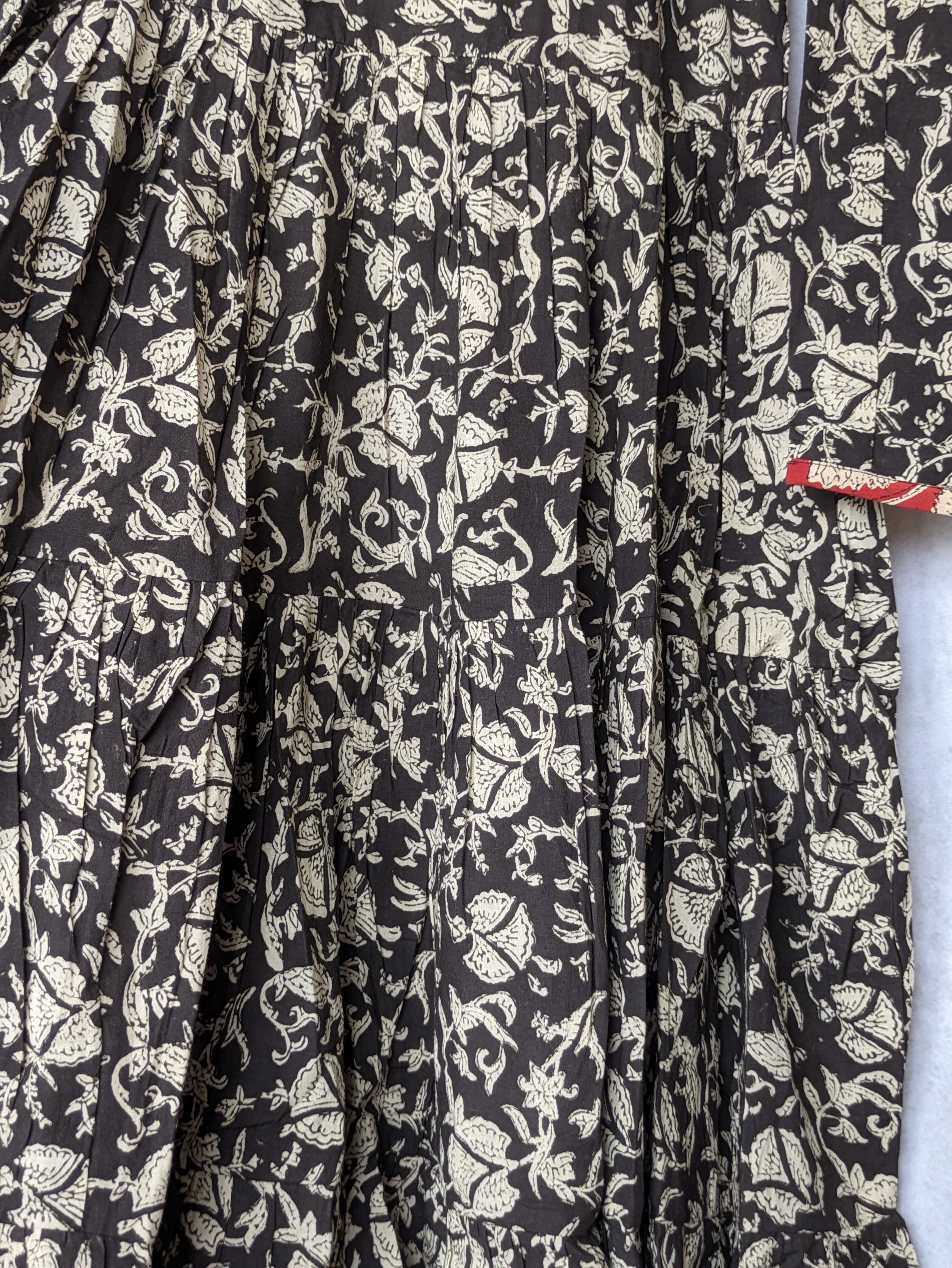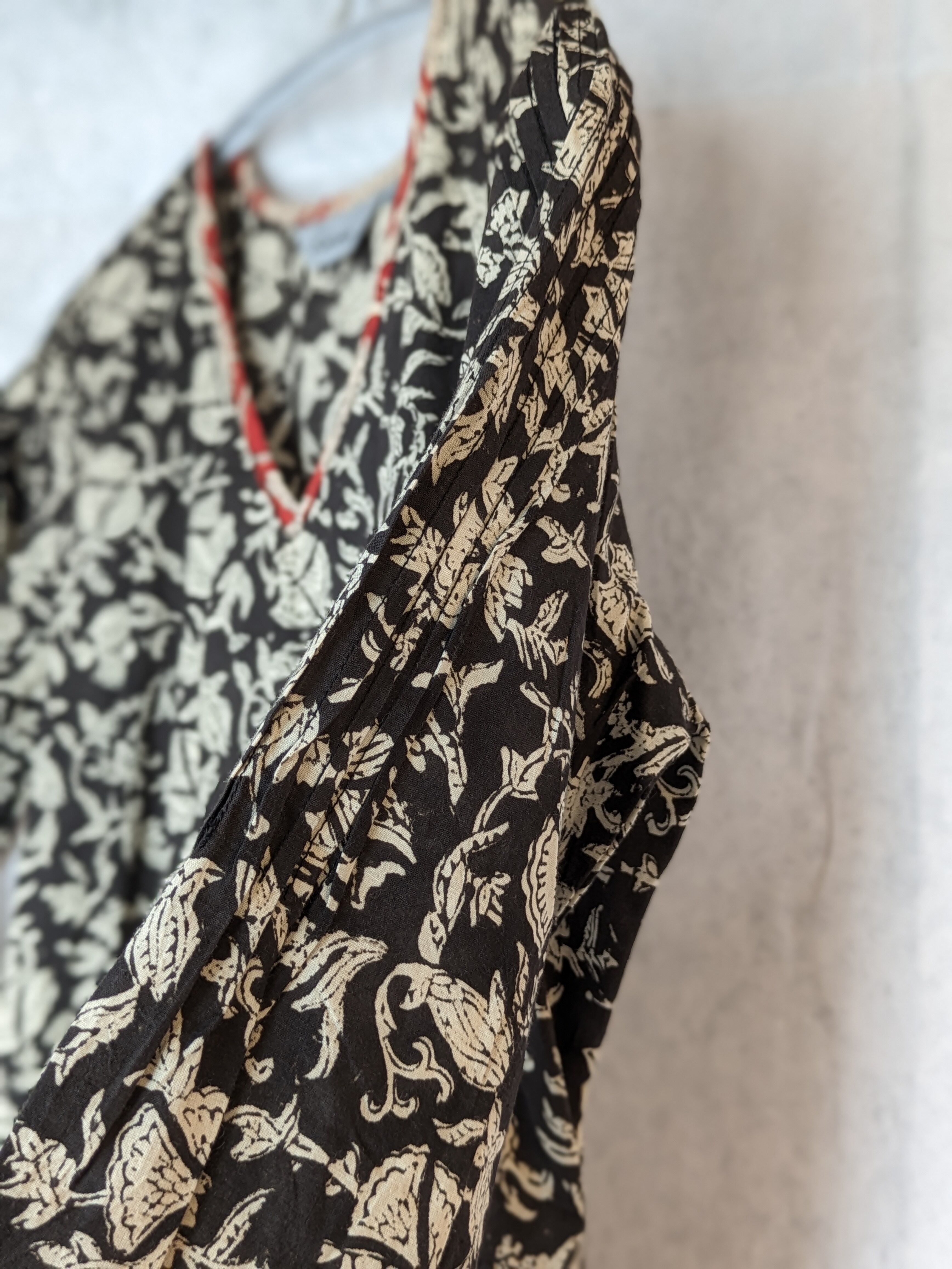 こちらは、インドの伝統工芸であるハンドブロックプリントで作られたワンピースです。