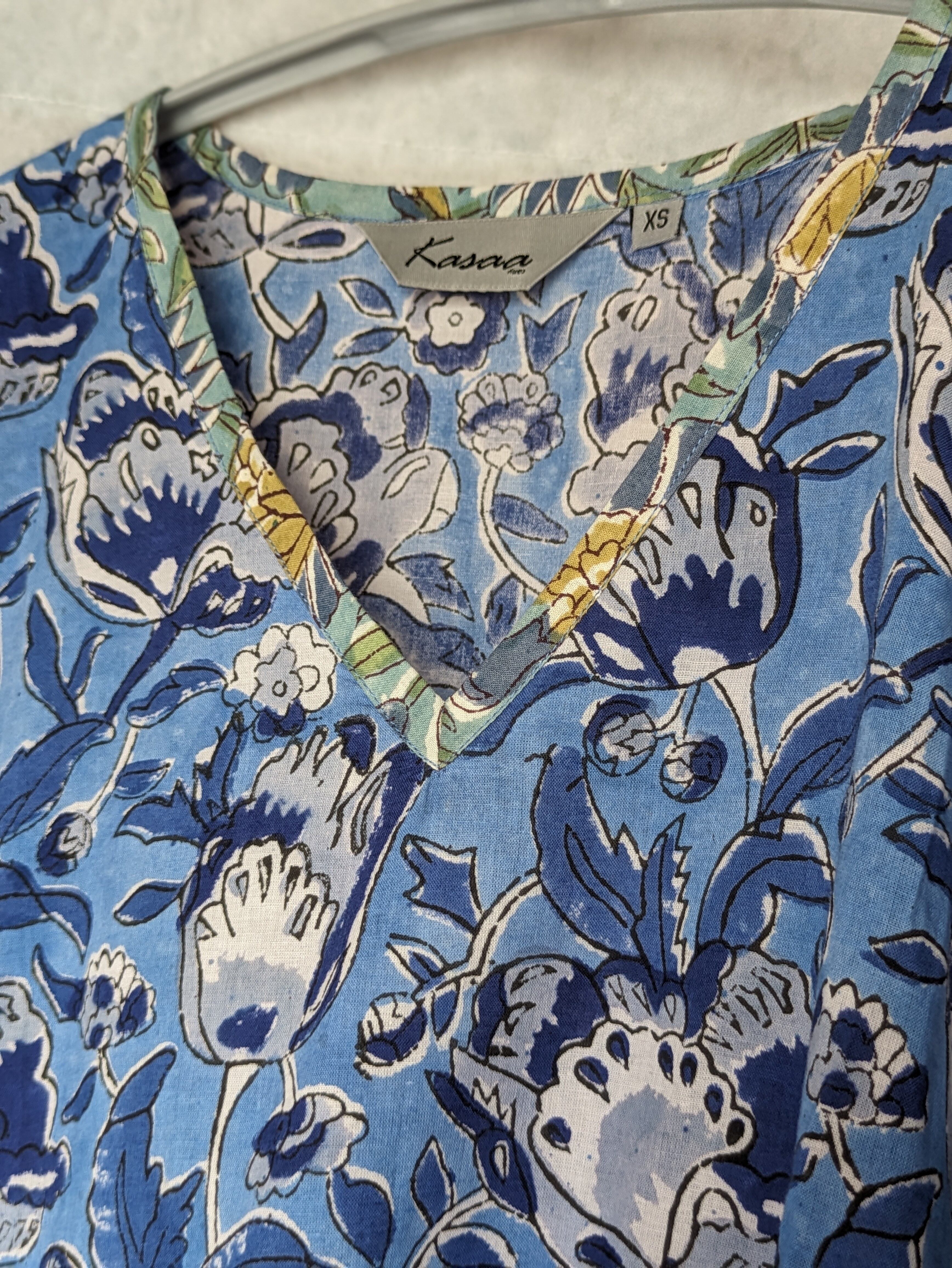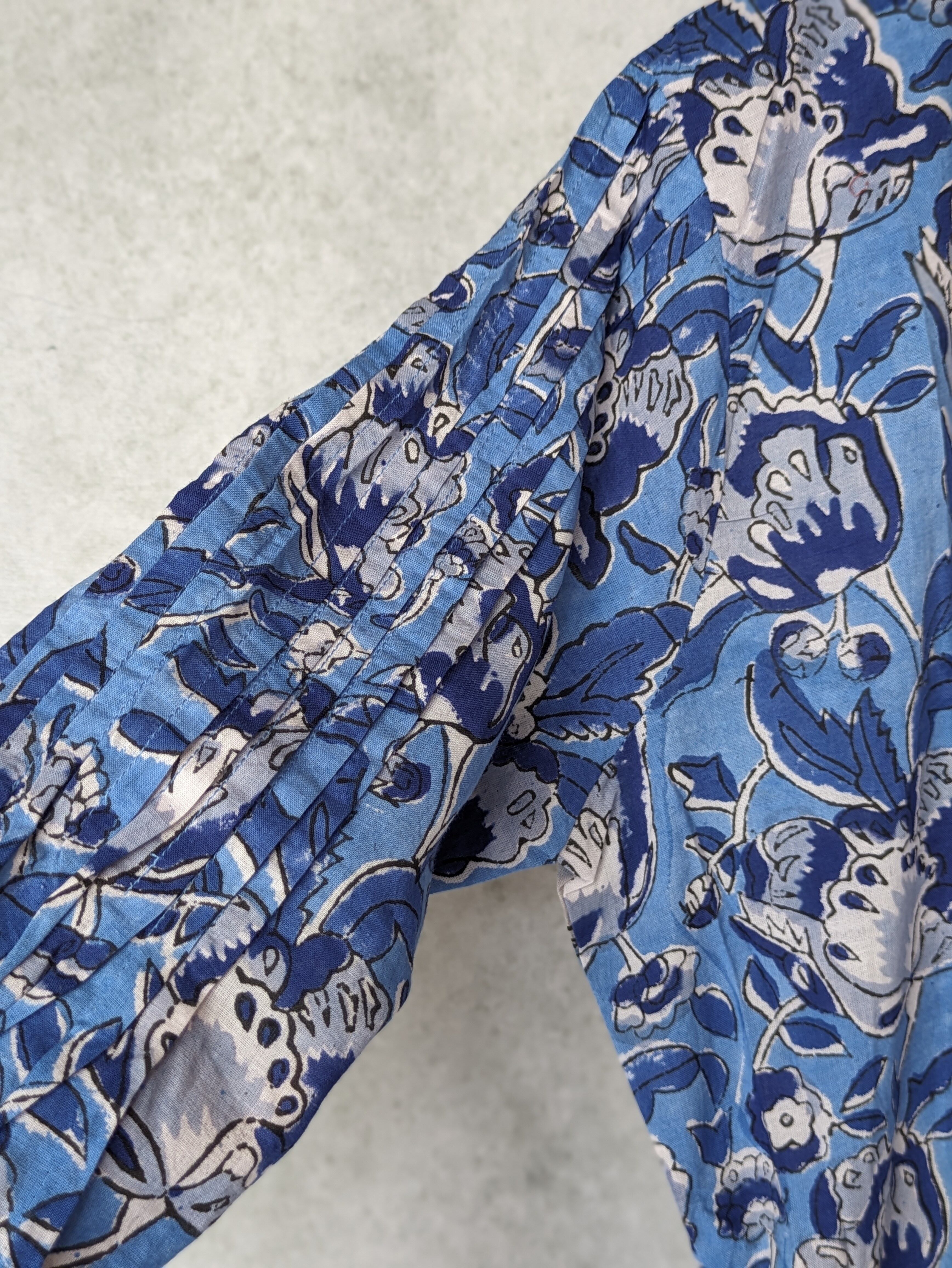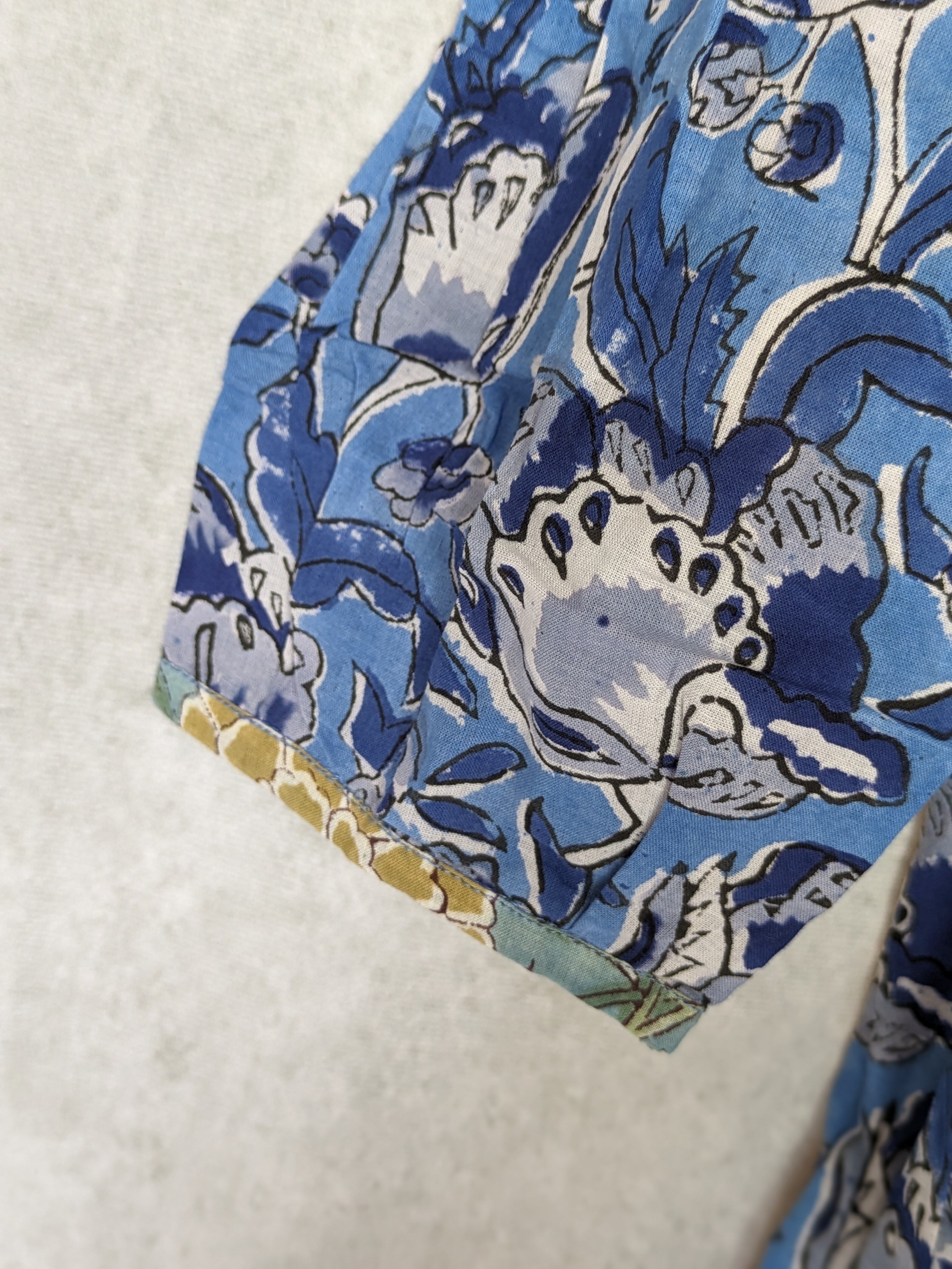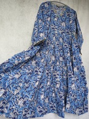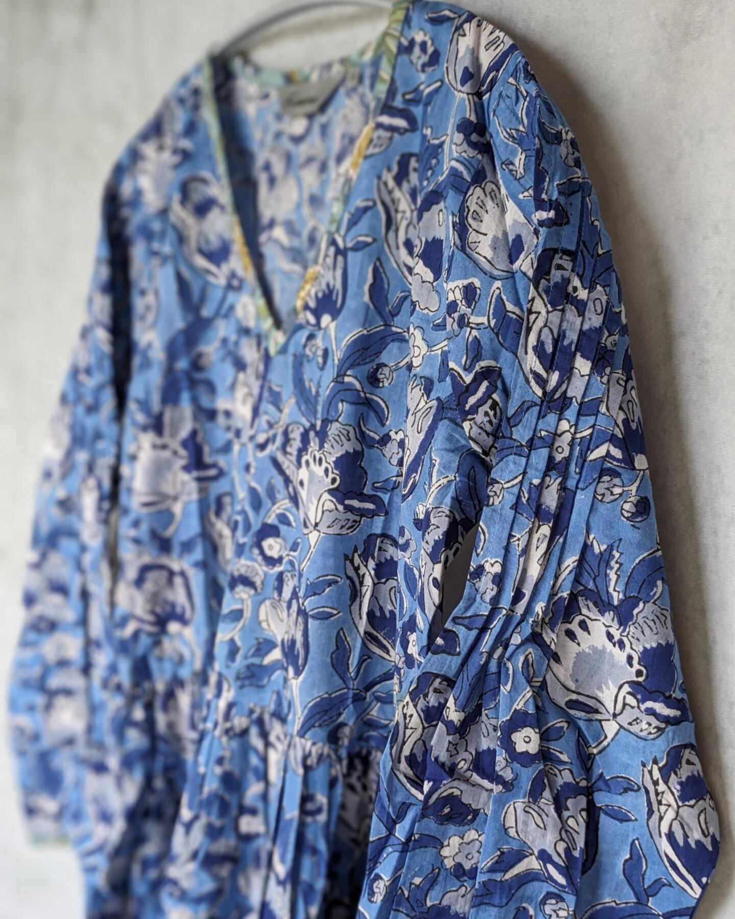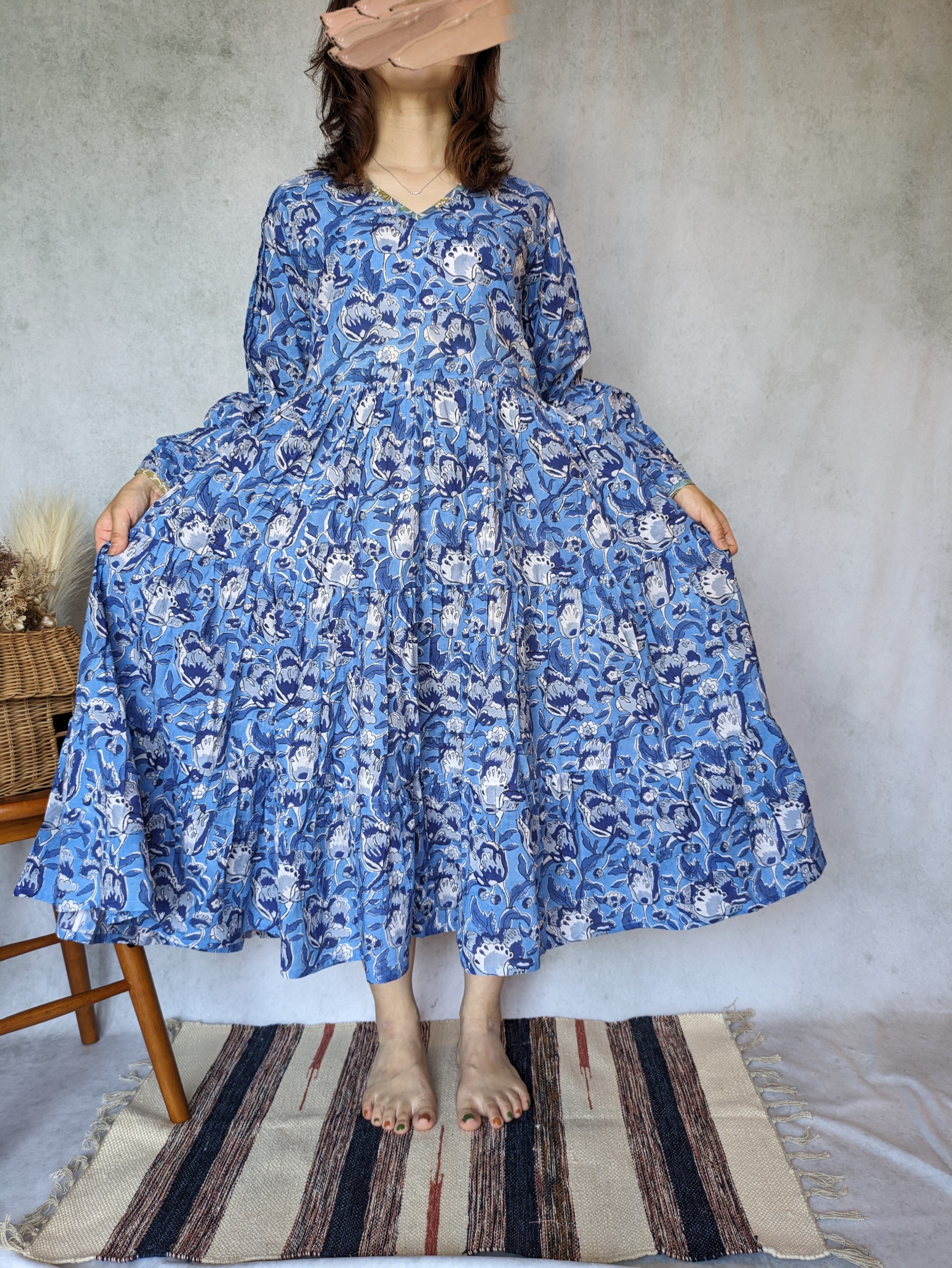 こちらは、インドの伝統工芸であるハンドブロックプリントで作られたワンピースです。