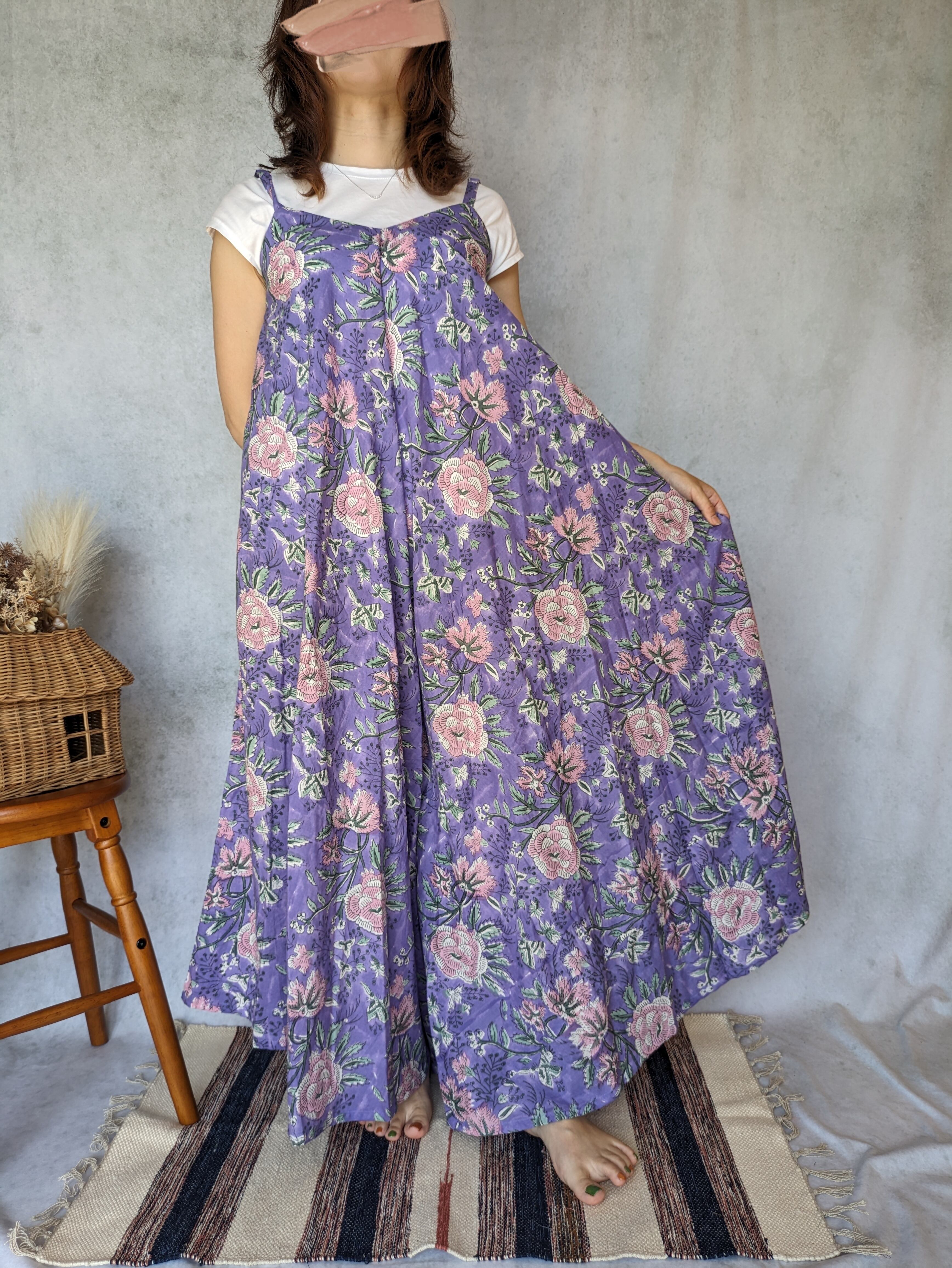 こちらは、インドの伝統工芸であるハンドブロックプリントで作られたワンピースです。