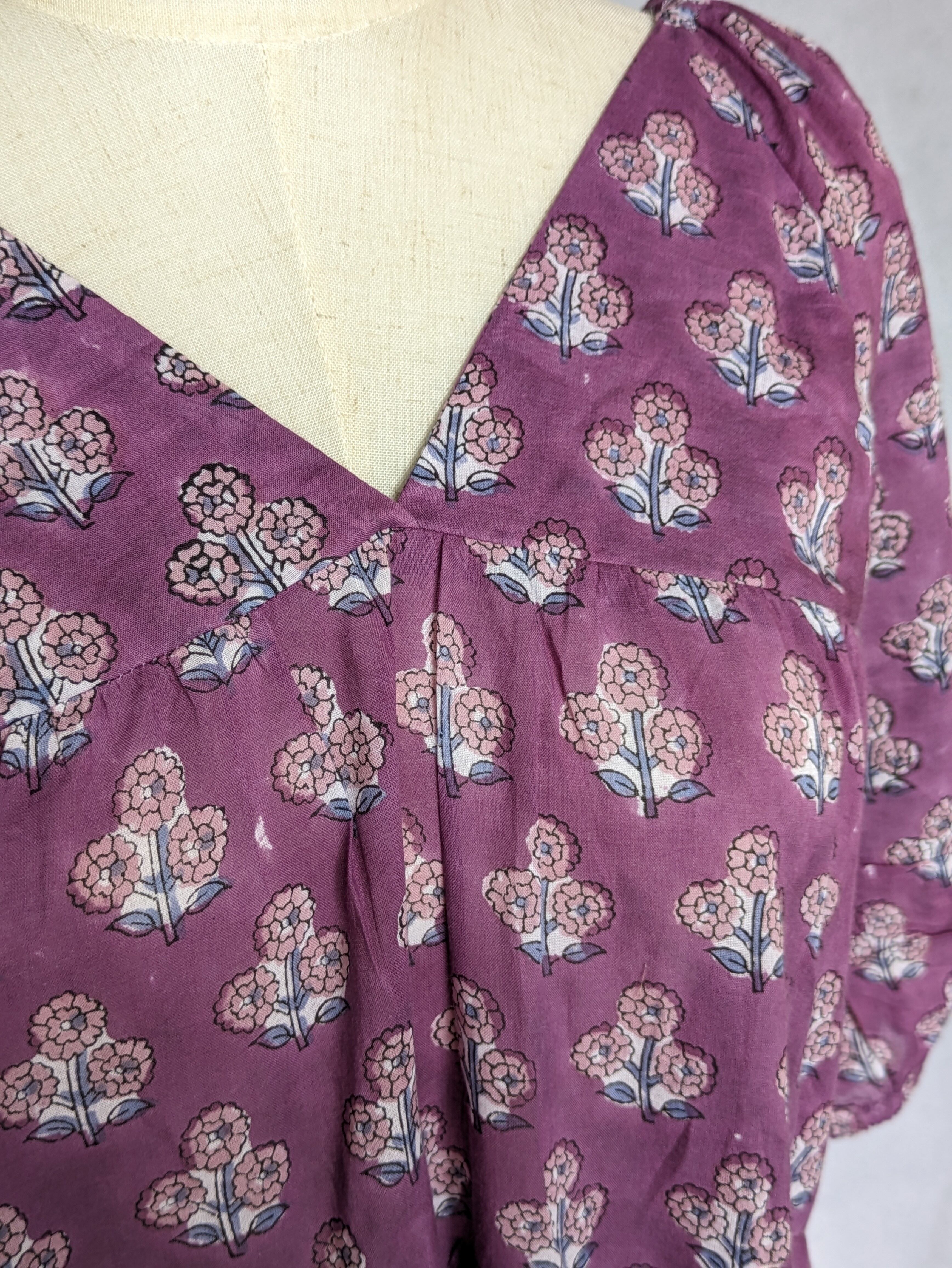 こちらは、インドの伝統工芸であるハンドブロックプリントで作られたワンピースです。