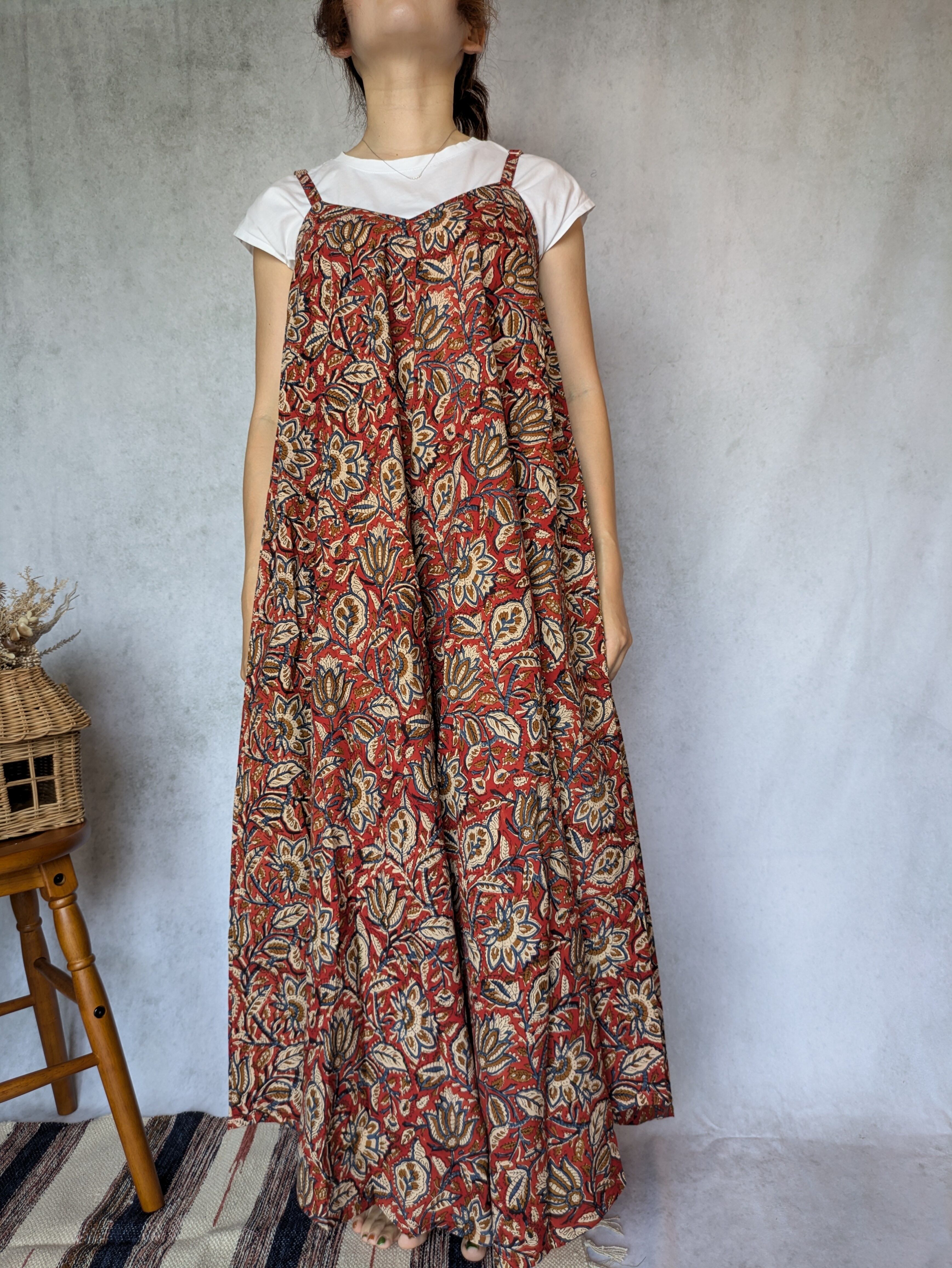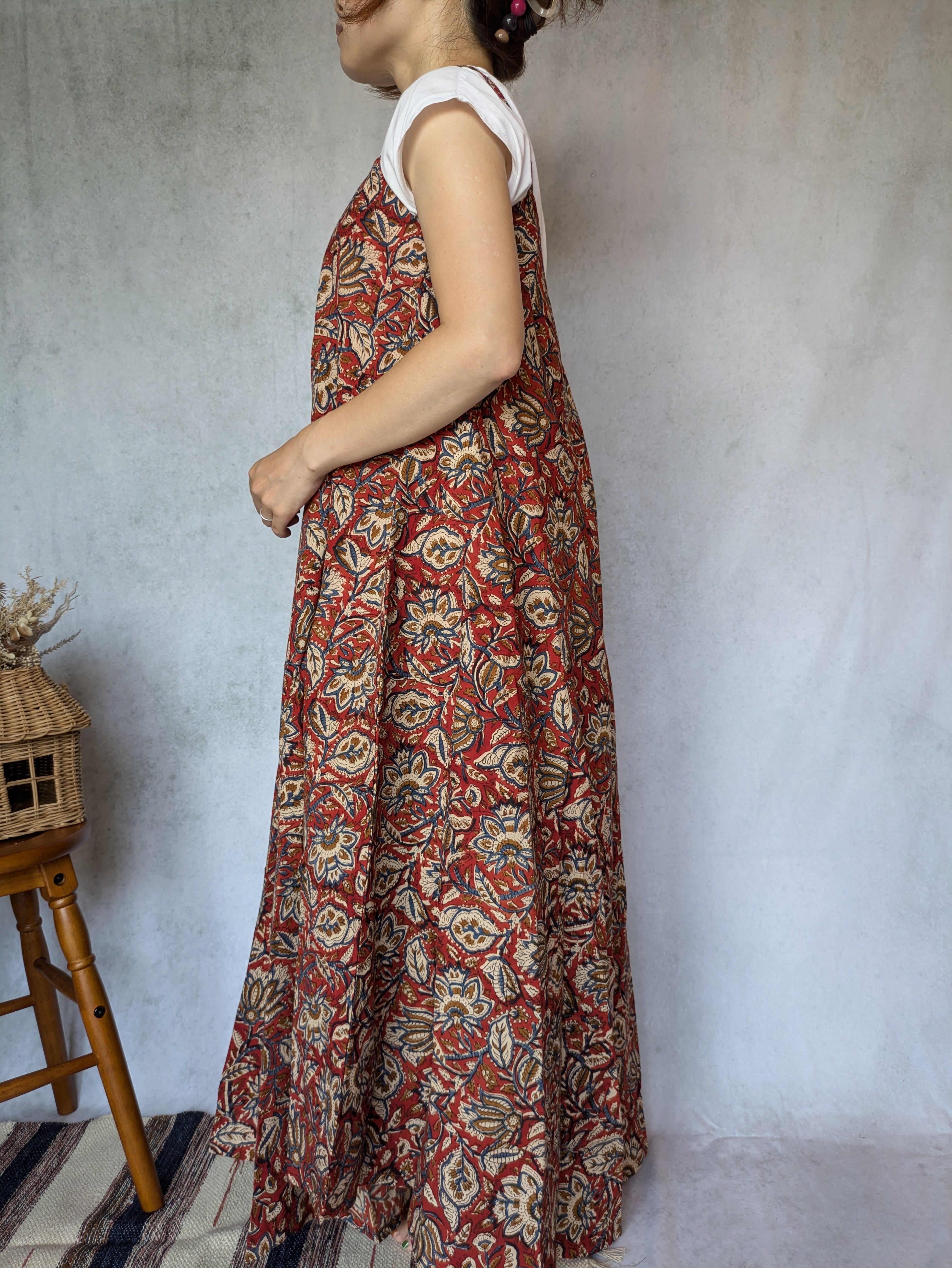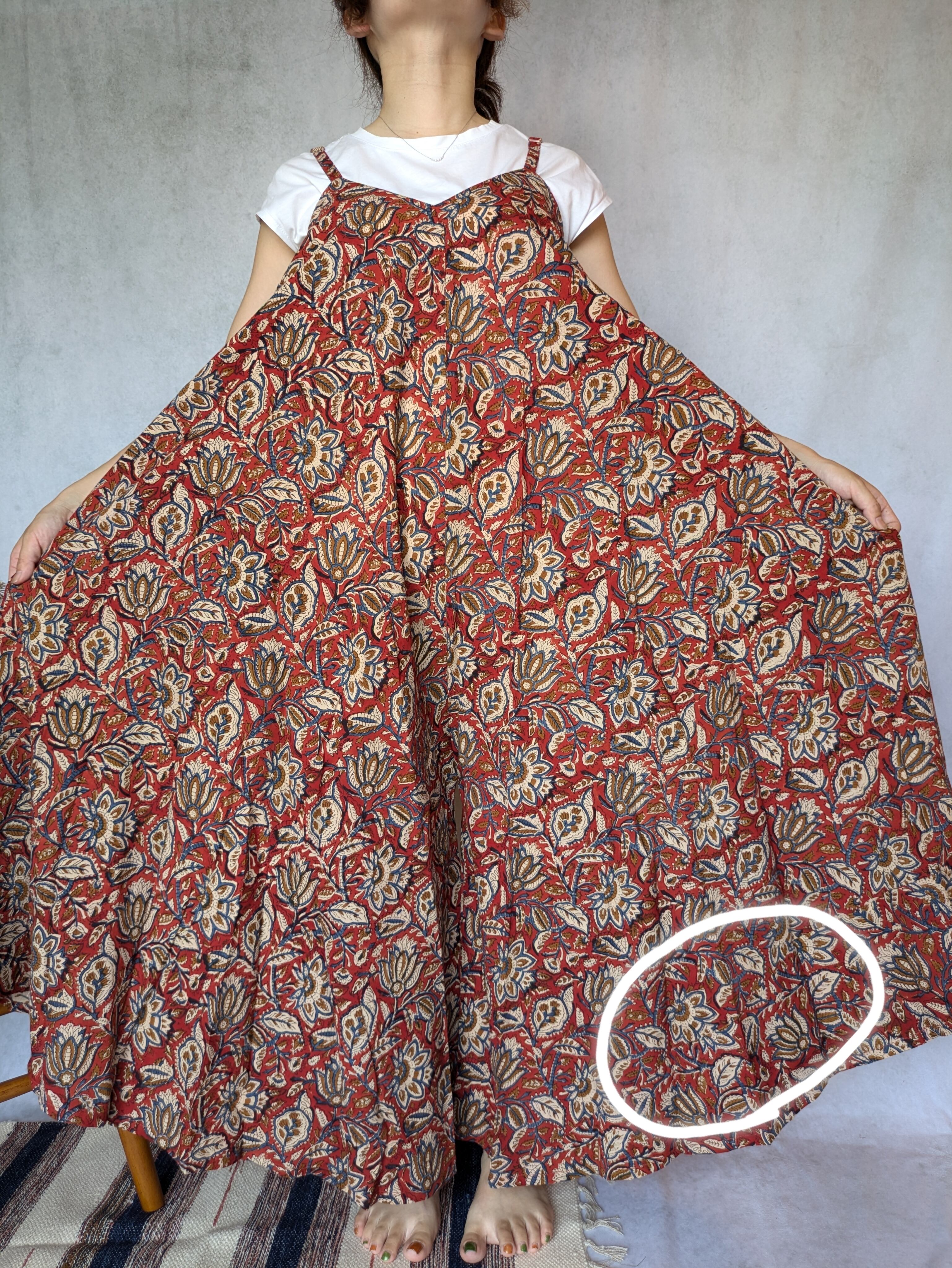 こちらは、インドの伝統工芸であるハンドブロックプリントで作られたワンピースです。
