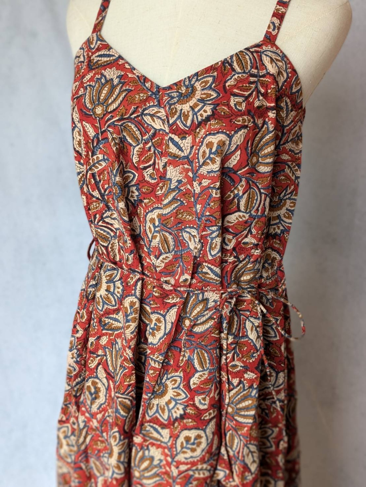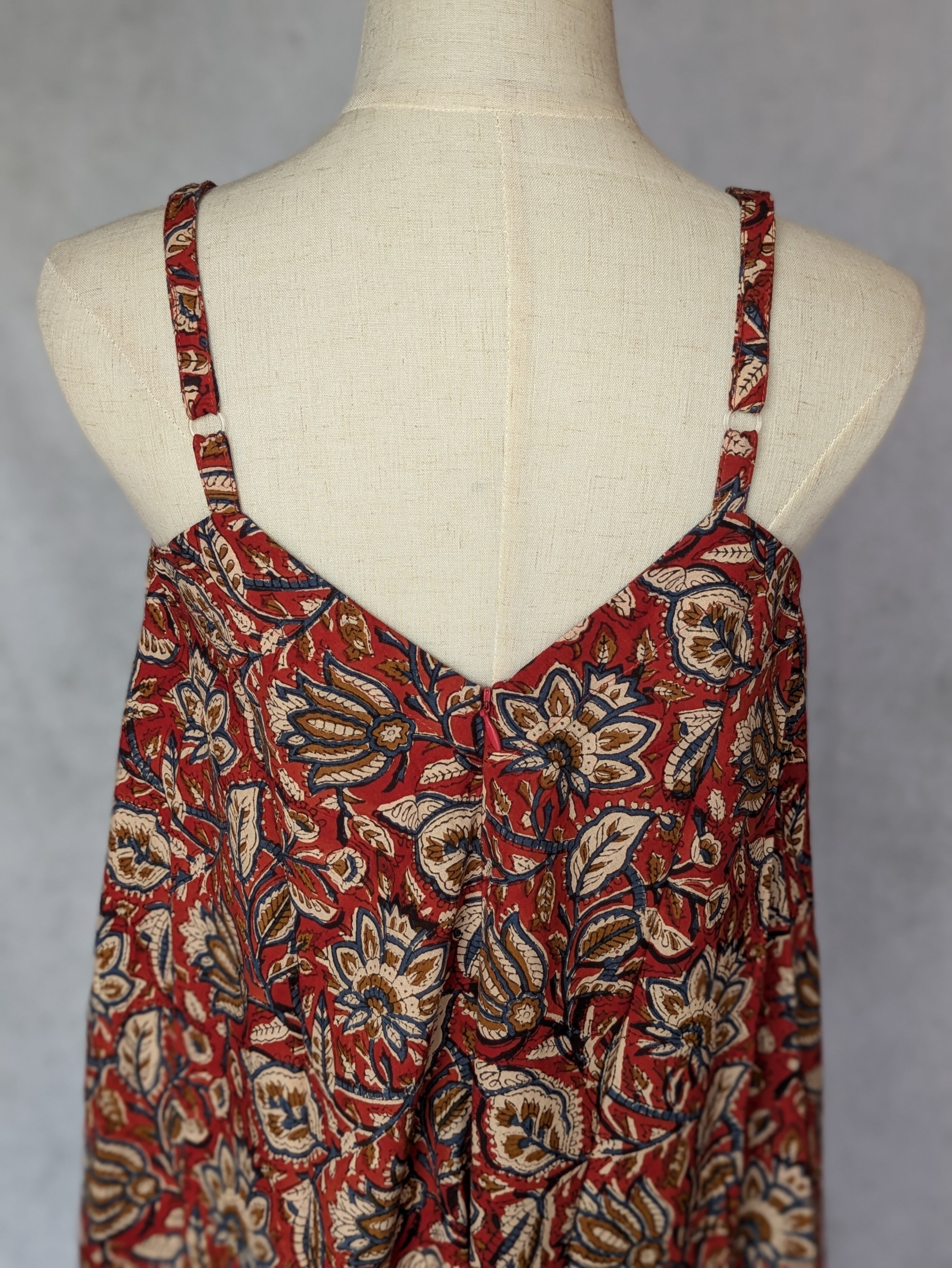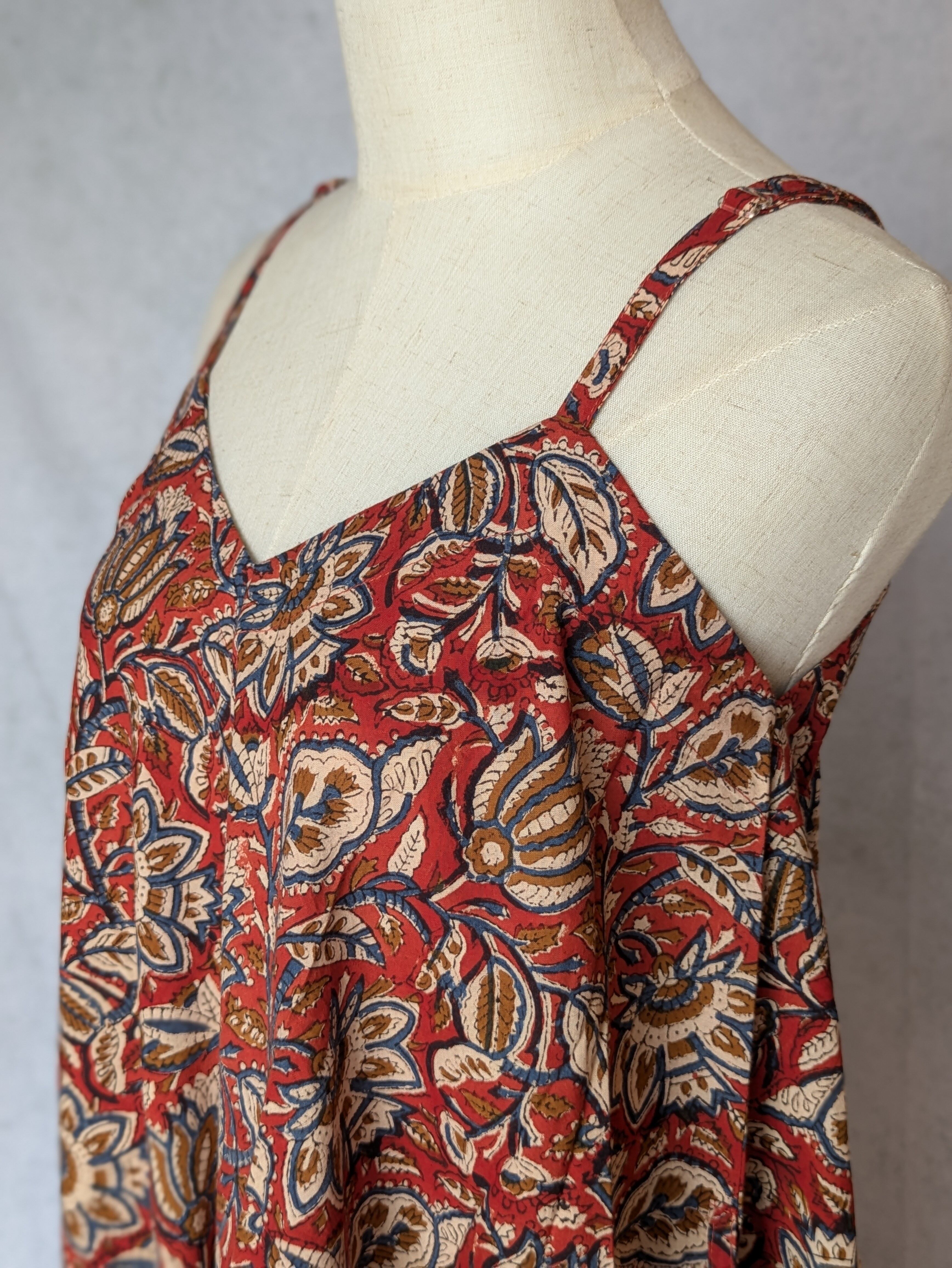 こちらは、インドの伝統工芸であるハンドブロックプリントで作られたワンピースです。