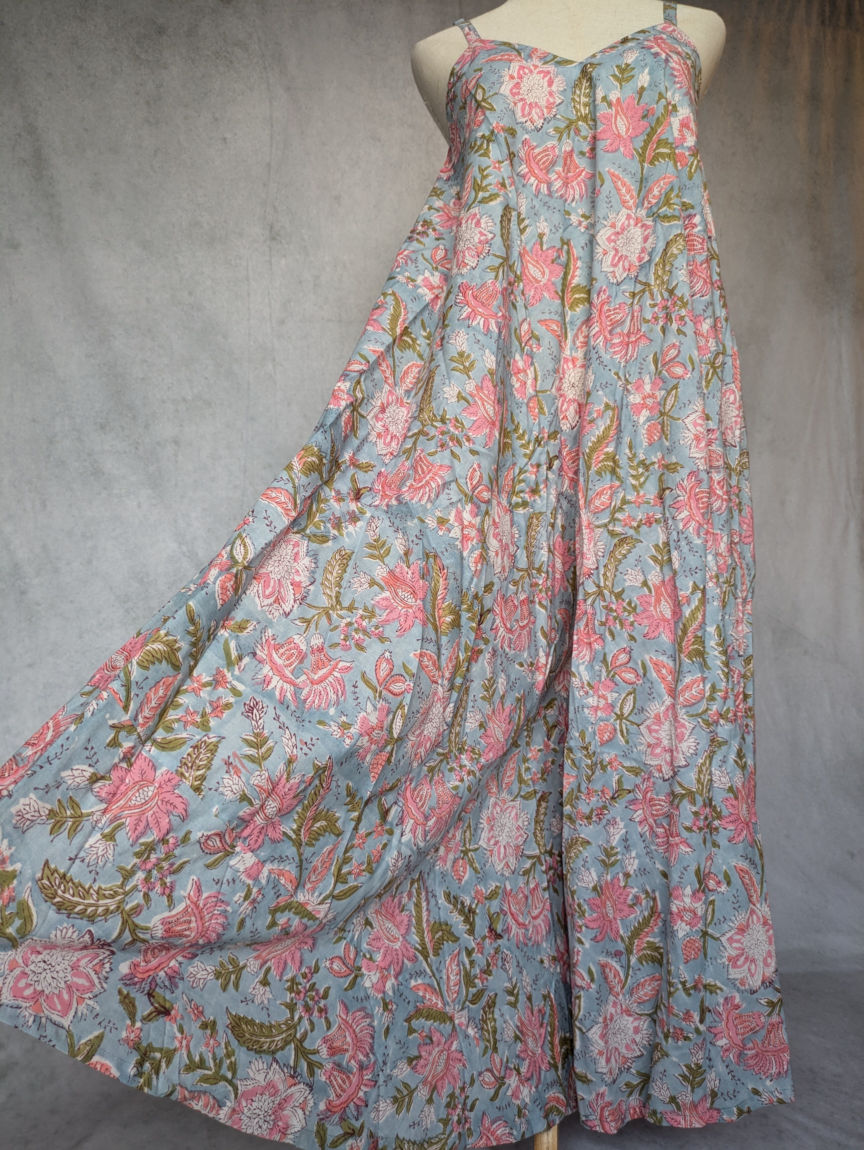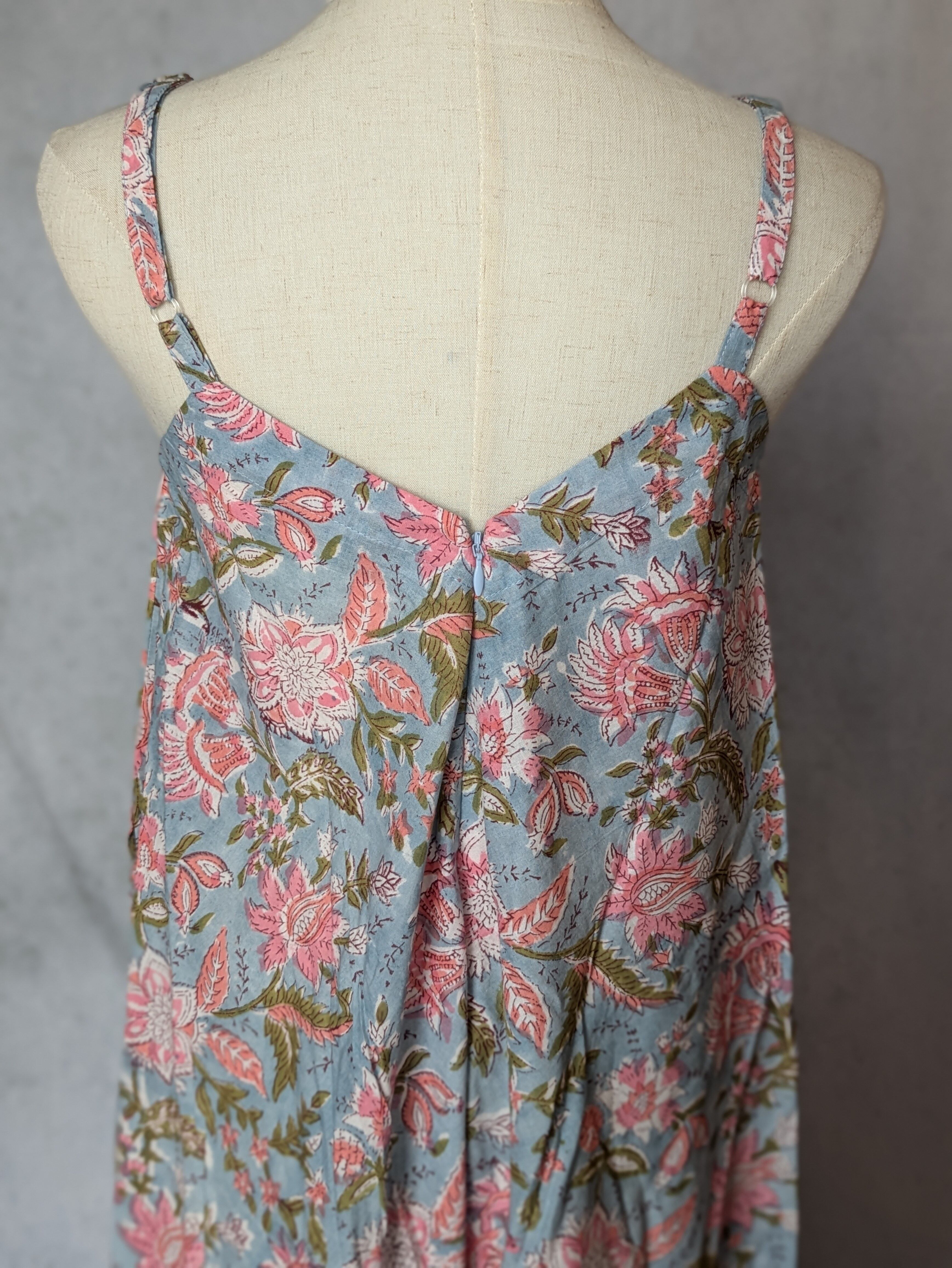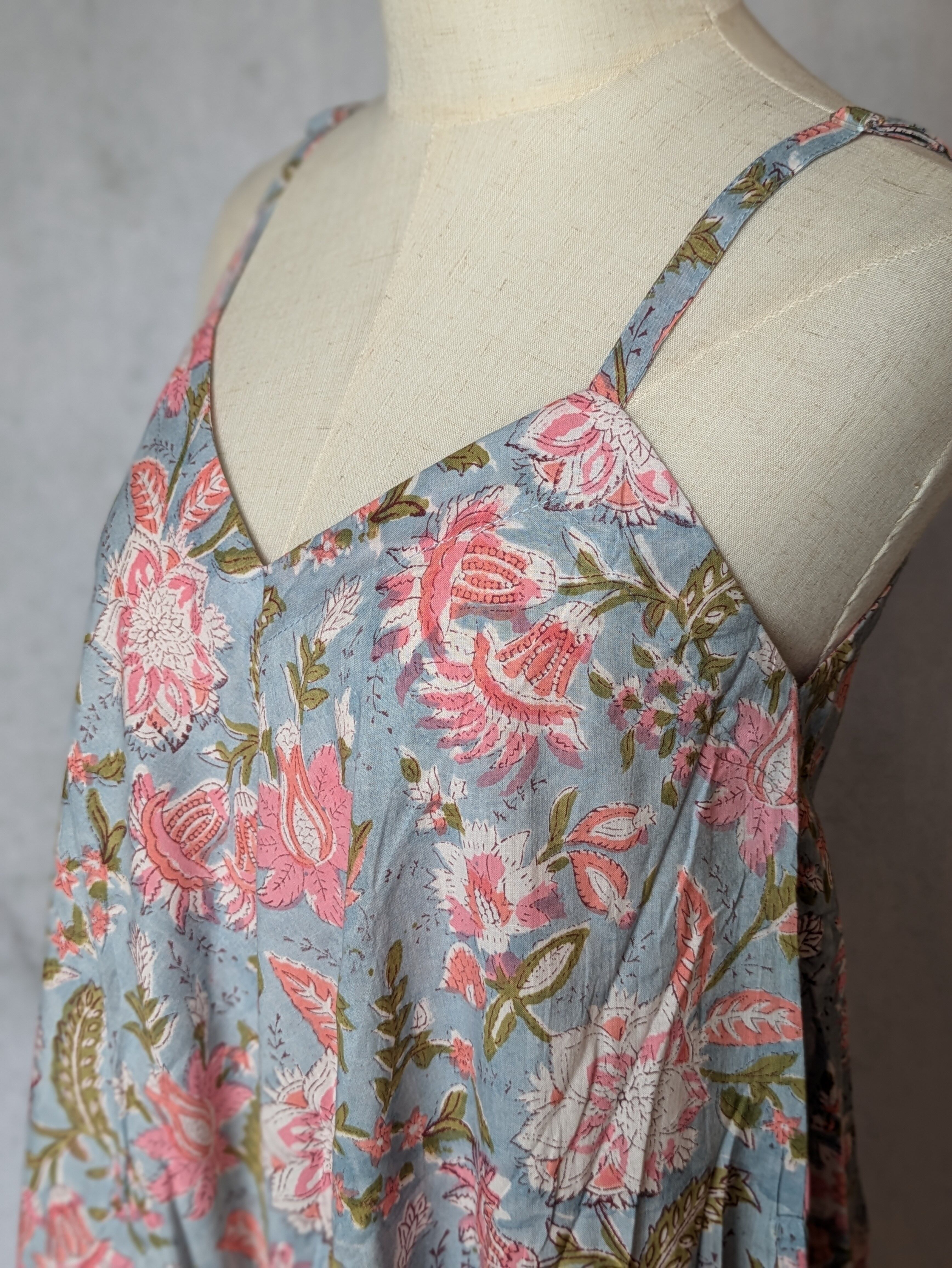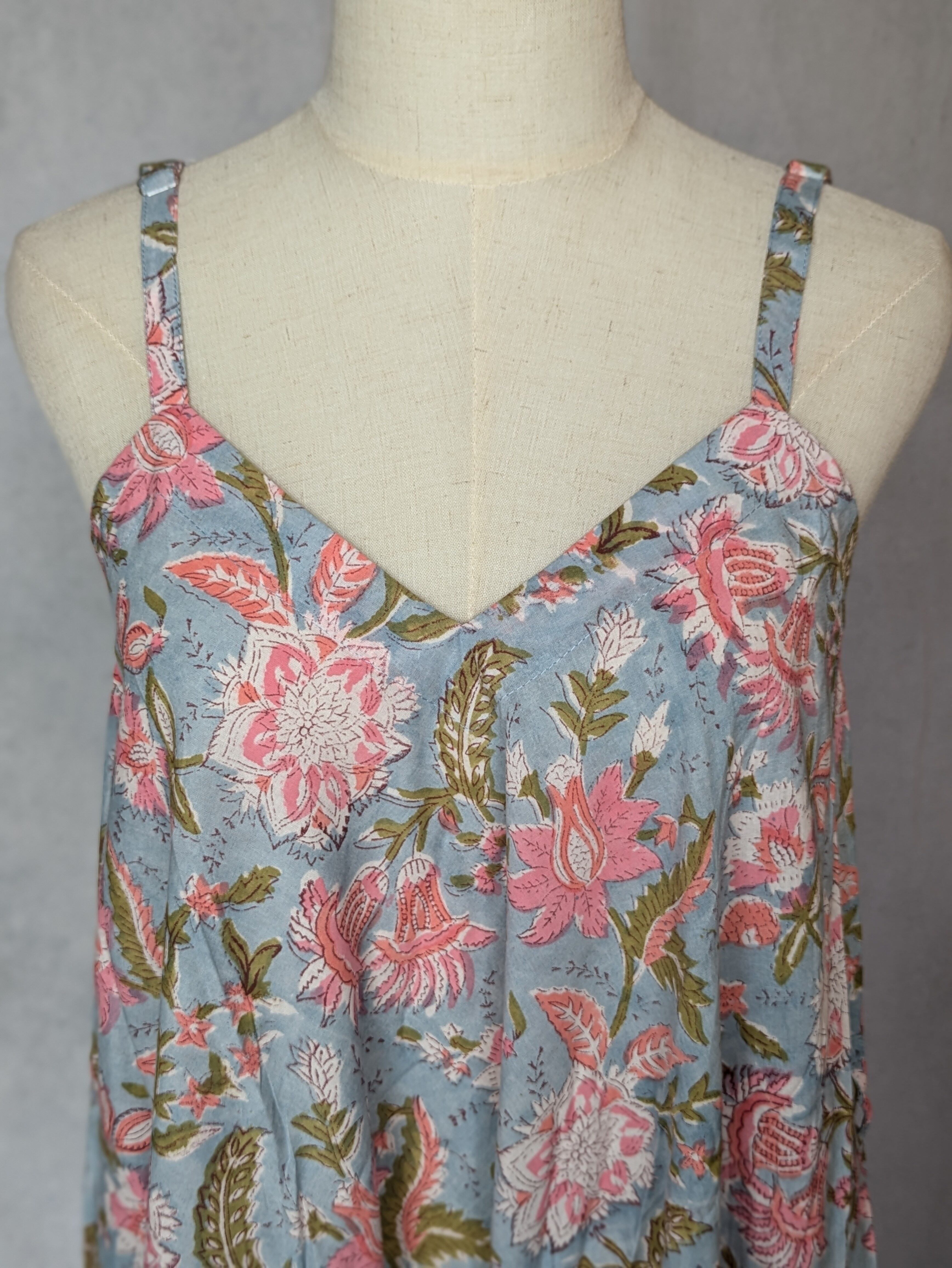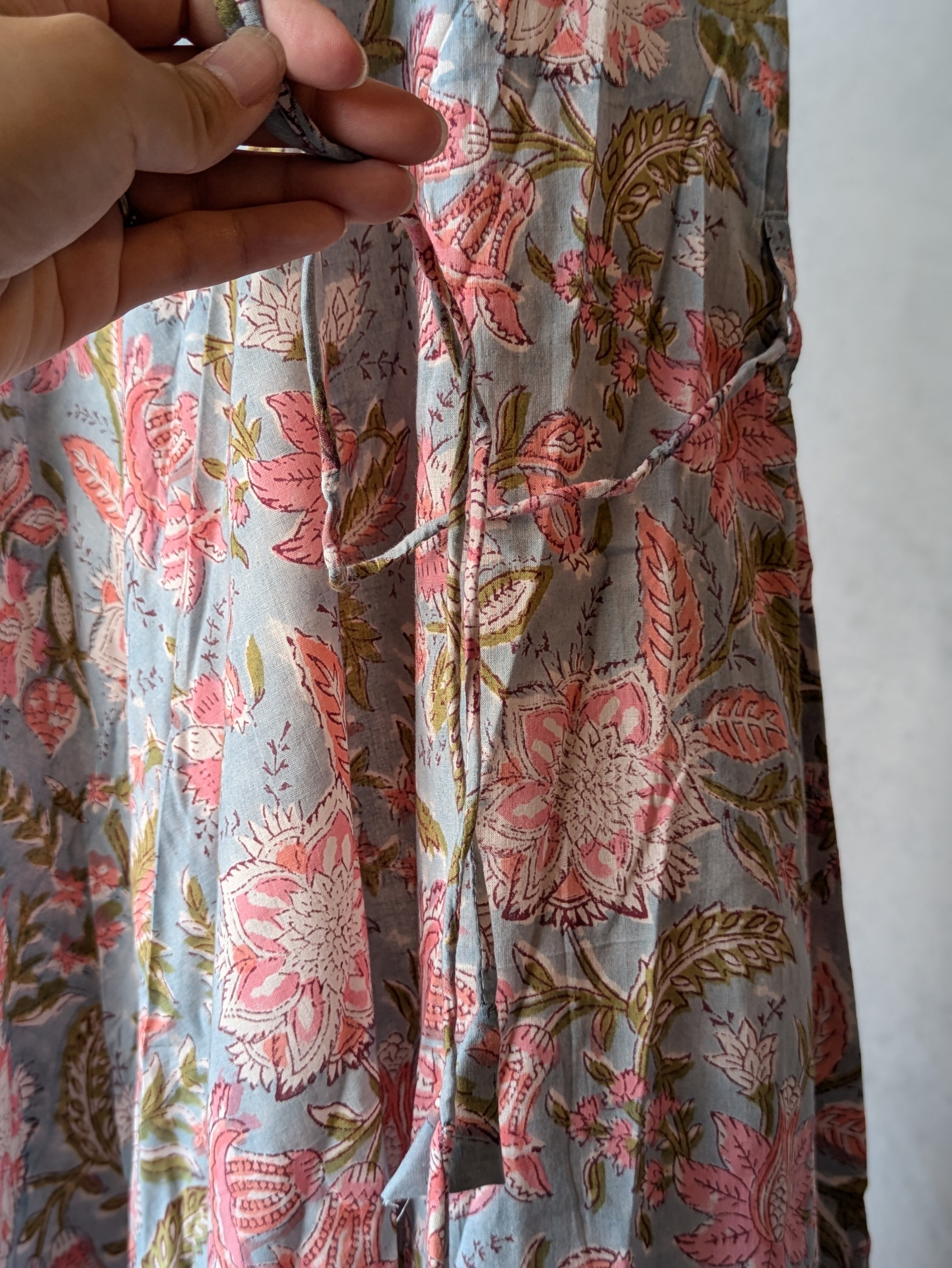こちらは、インドの伝統工芸であるハンドブロックプリントで作られたワンピースです。