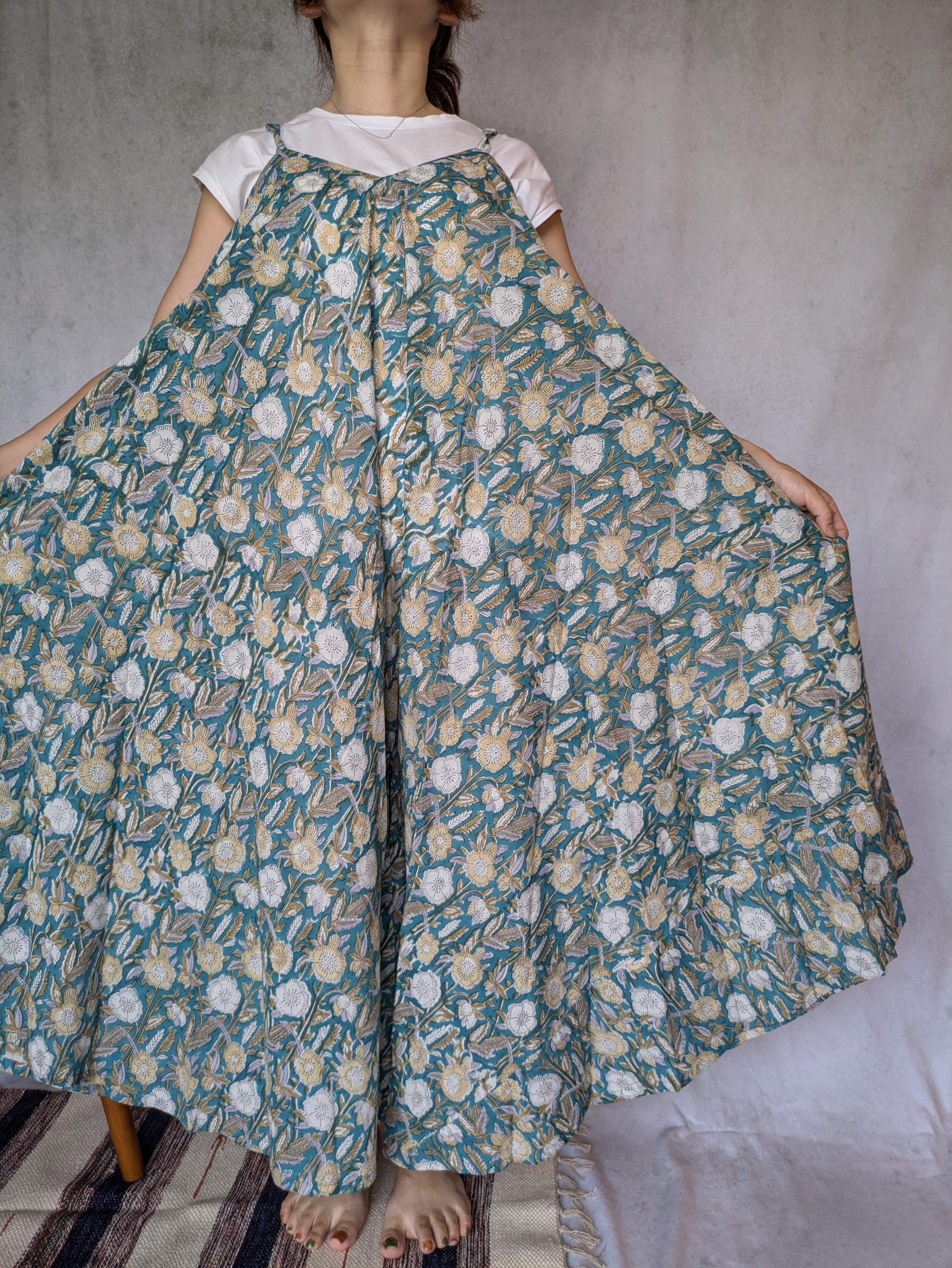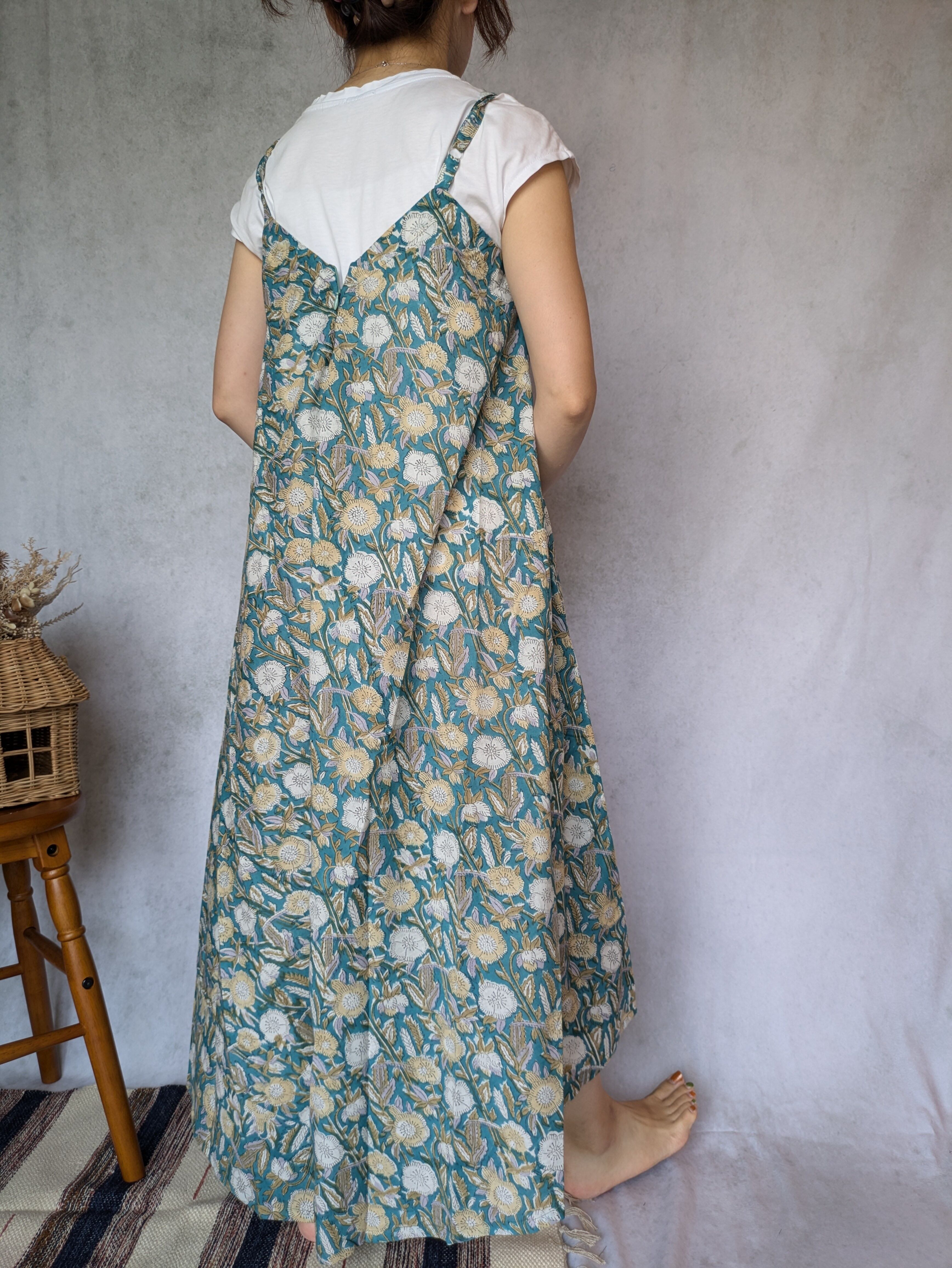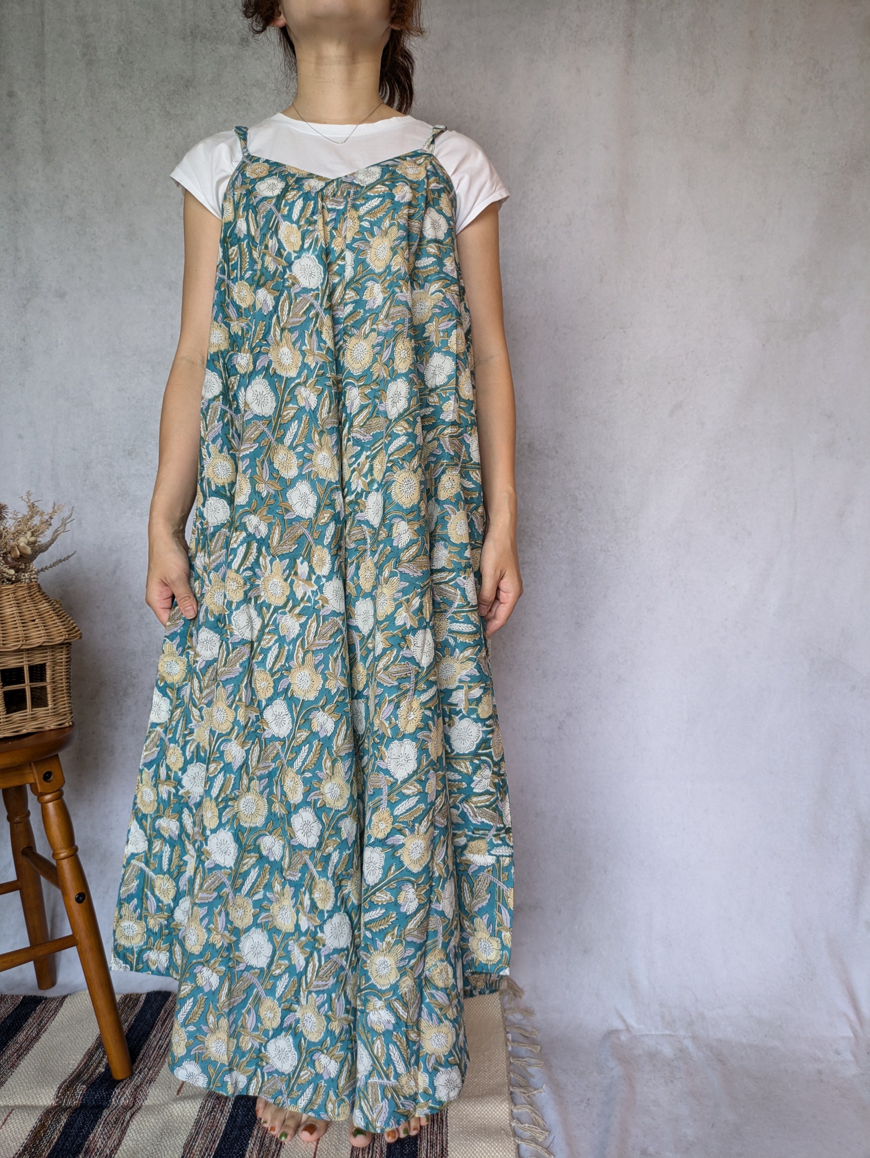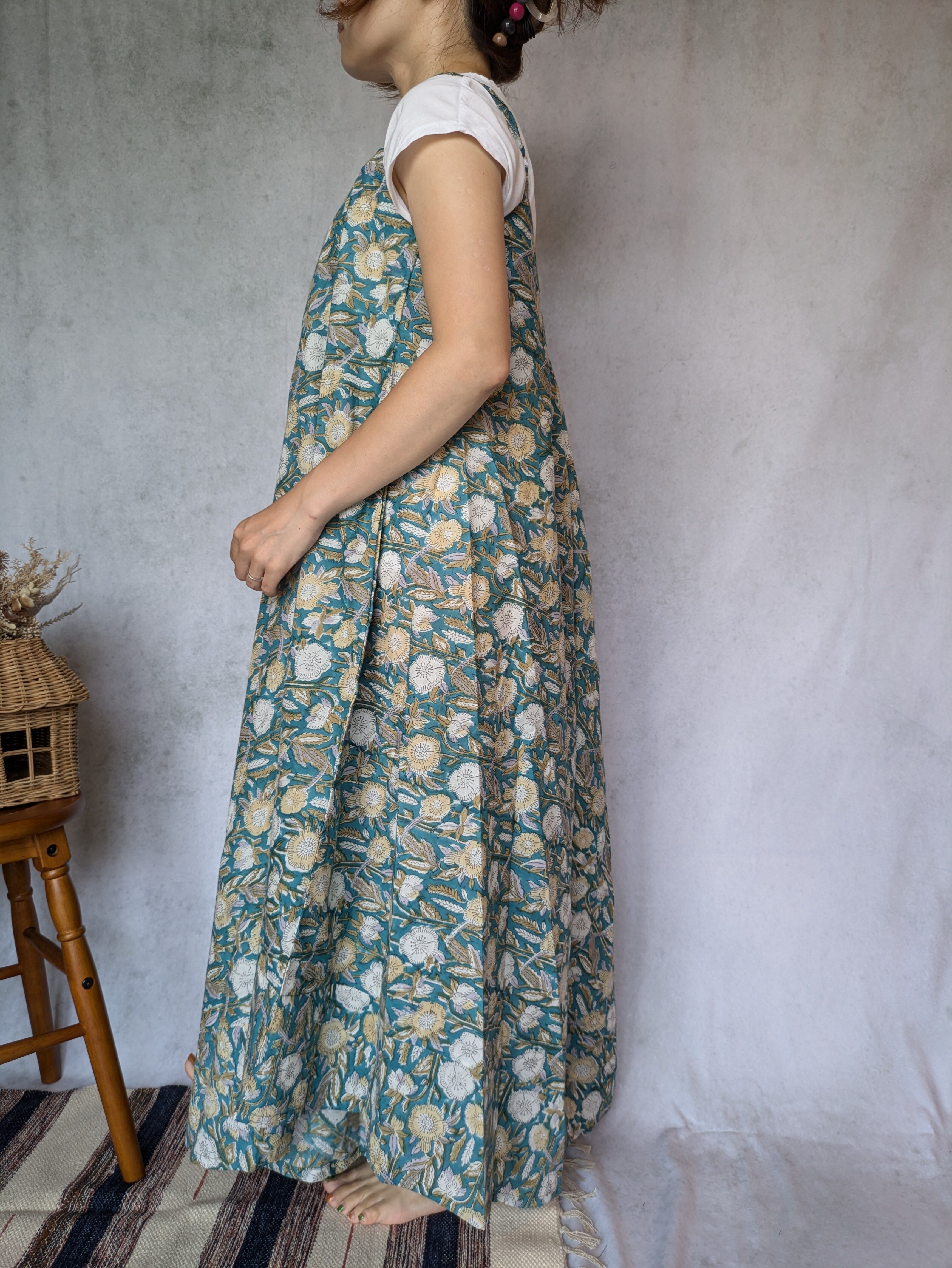 こちらは、インドの伝統工芸であるハンドブロックプリントで作られたワンピースです。
