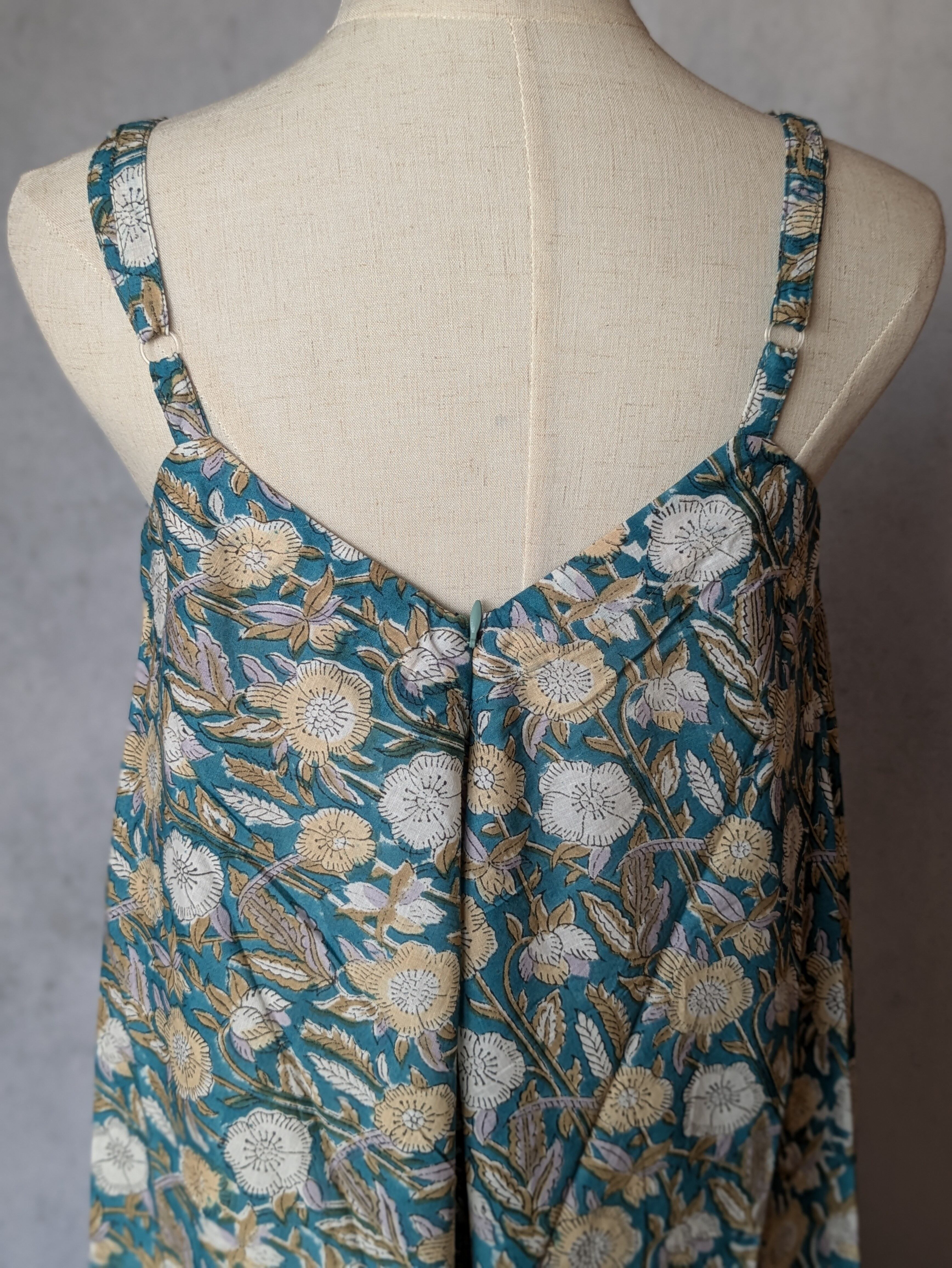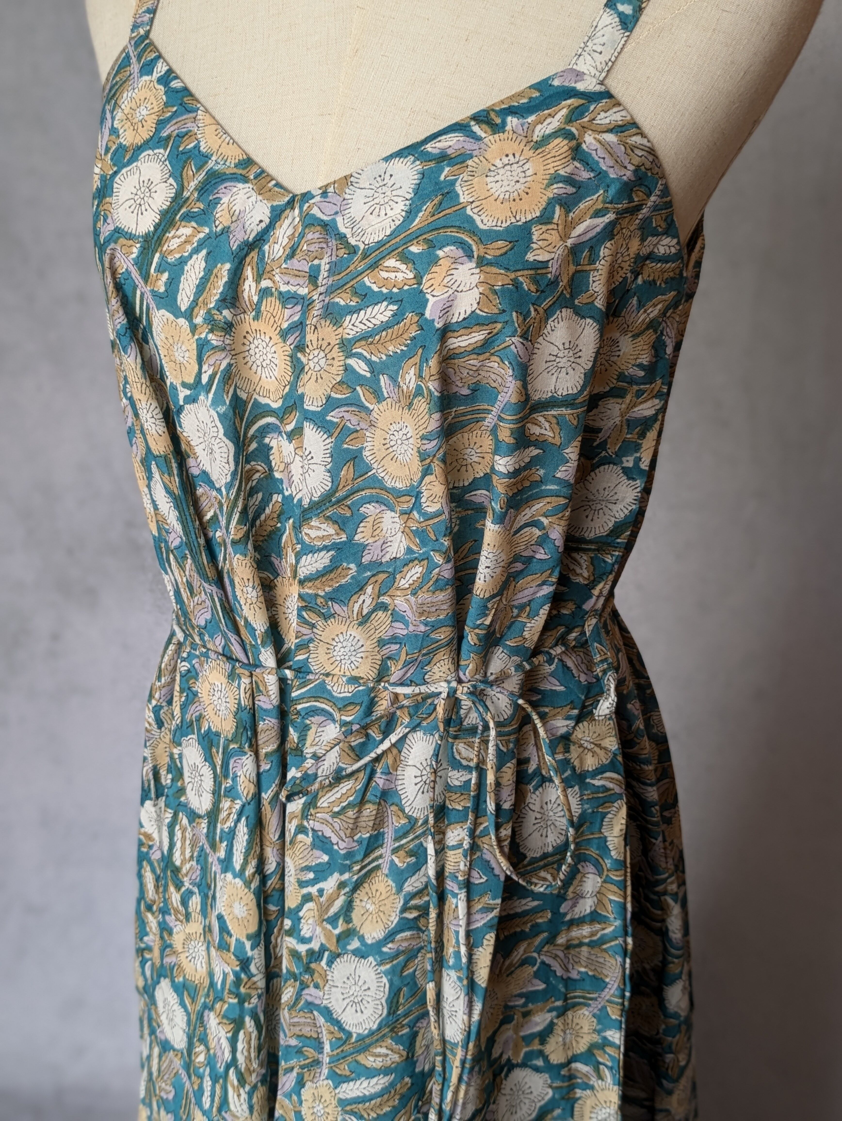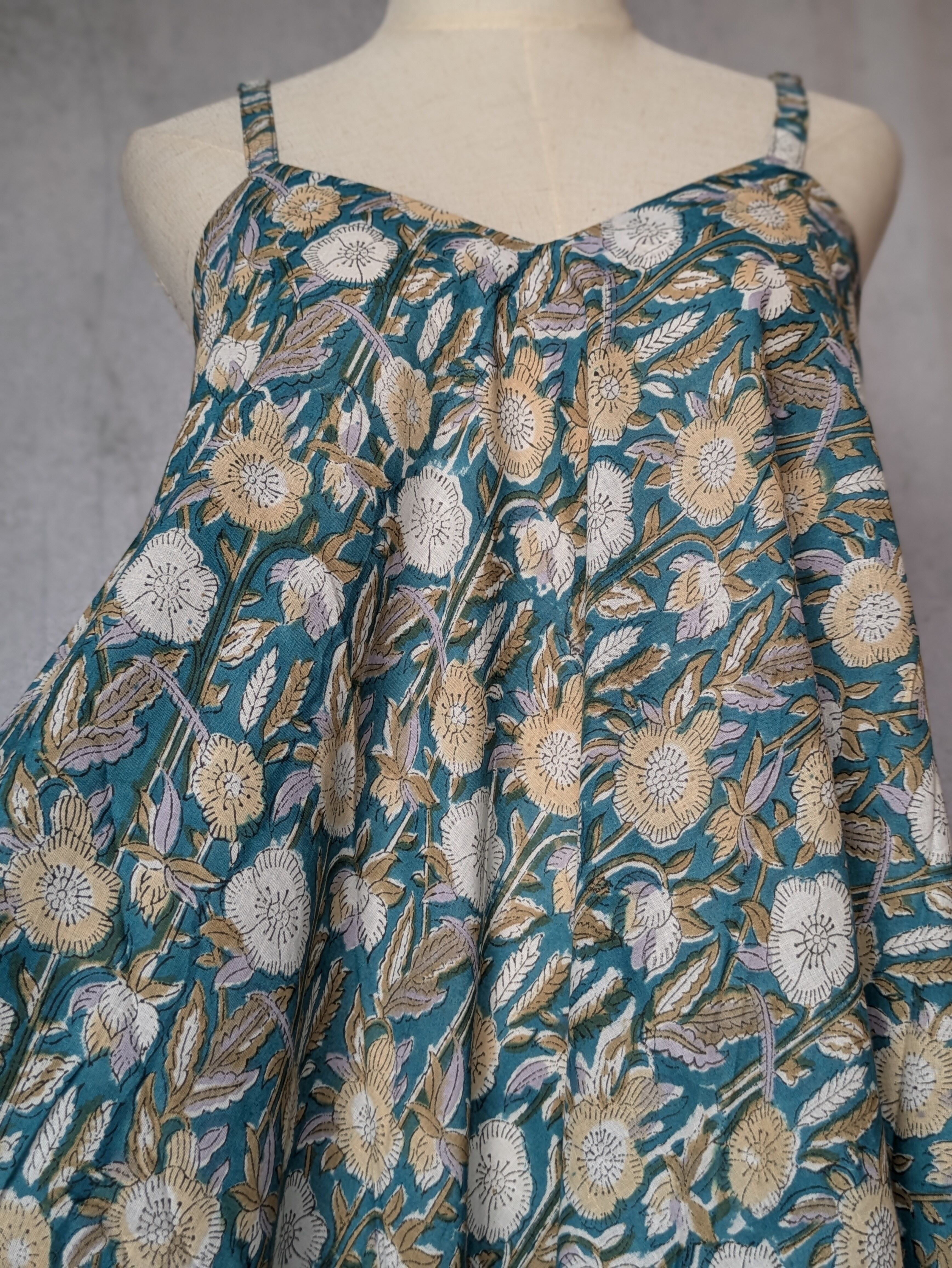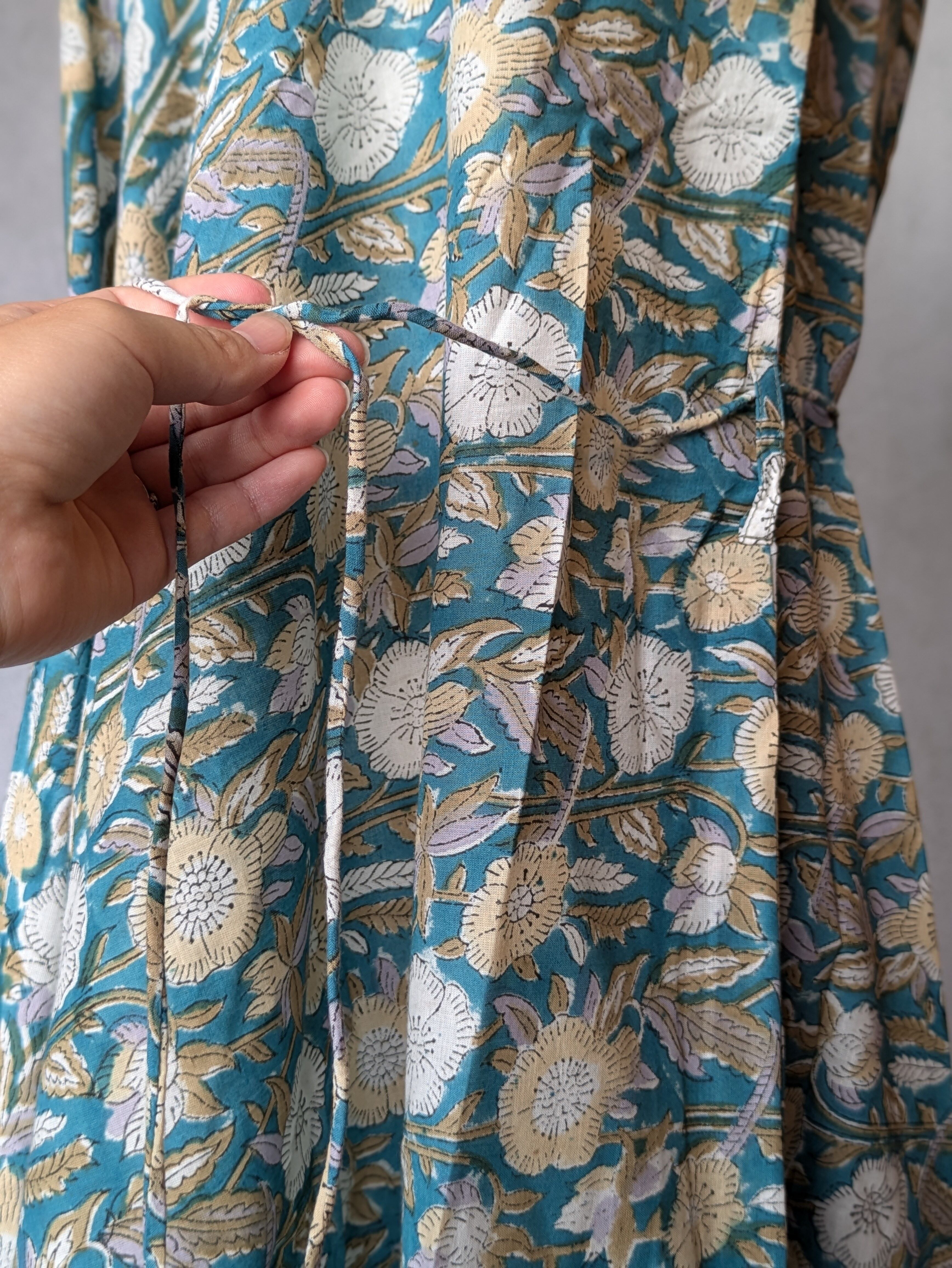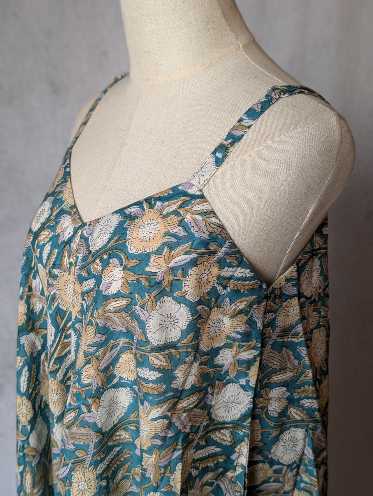 こちらは、インドの伝統工芸であるハンドブロックプリントで作られたワンピースです。