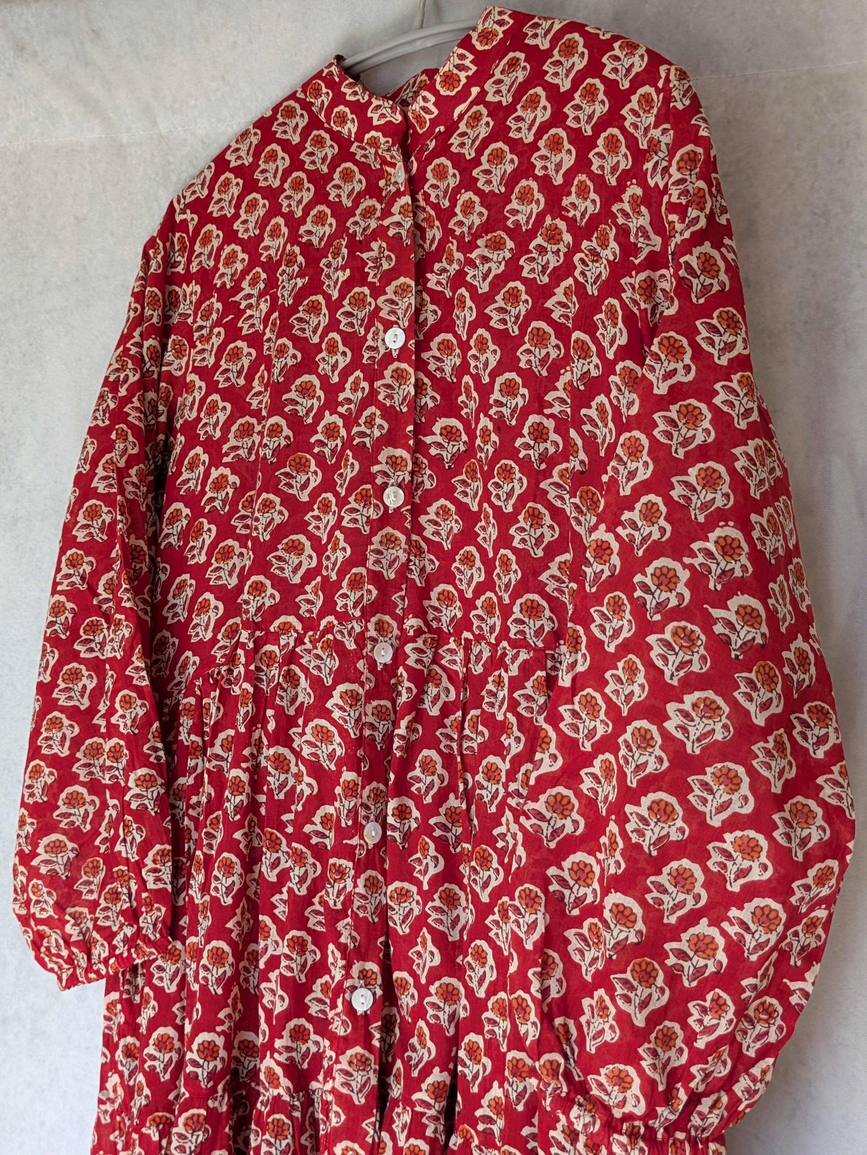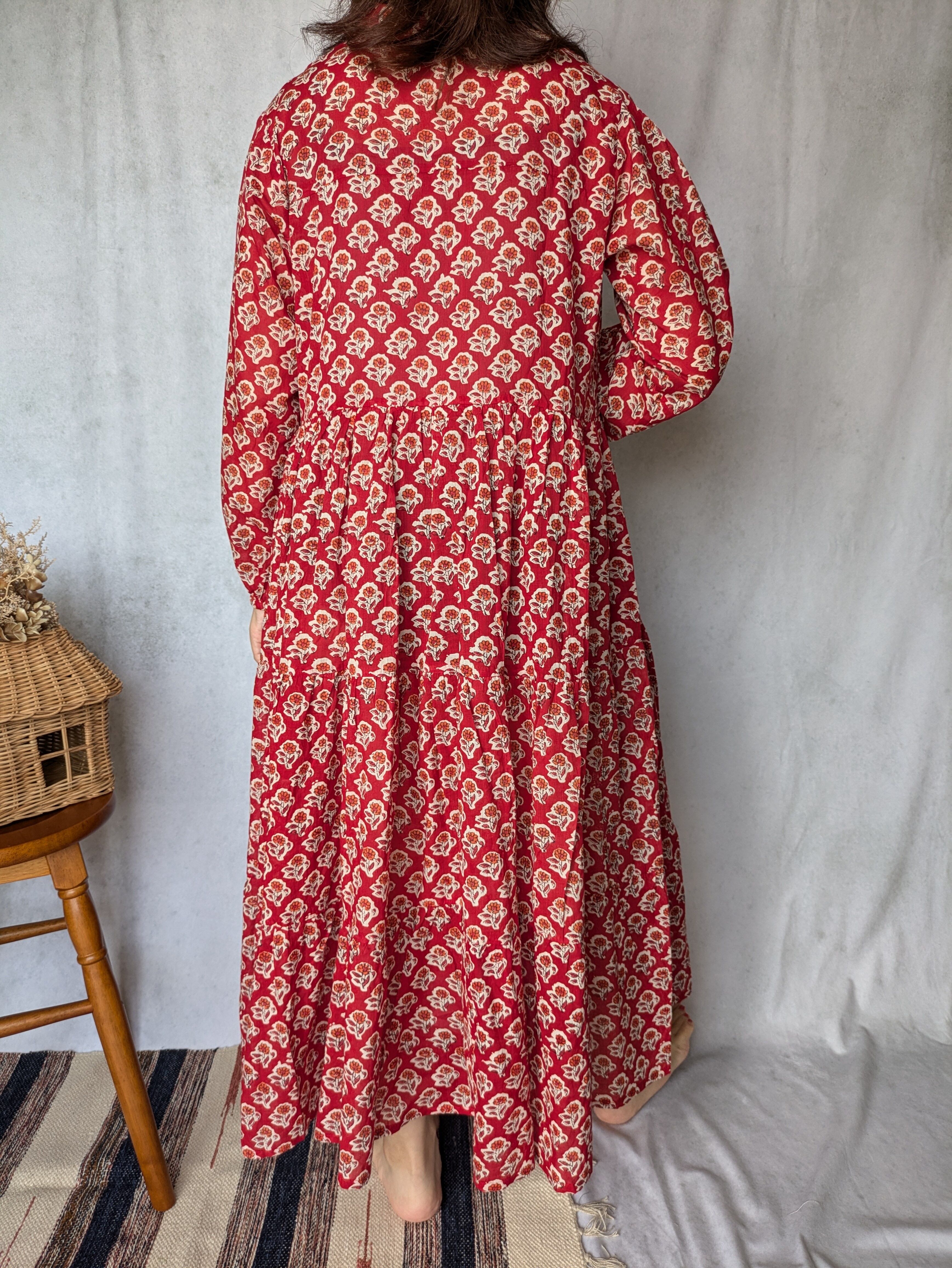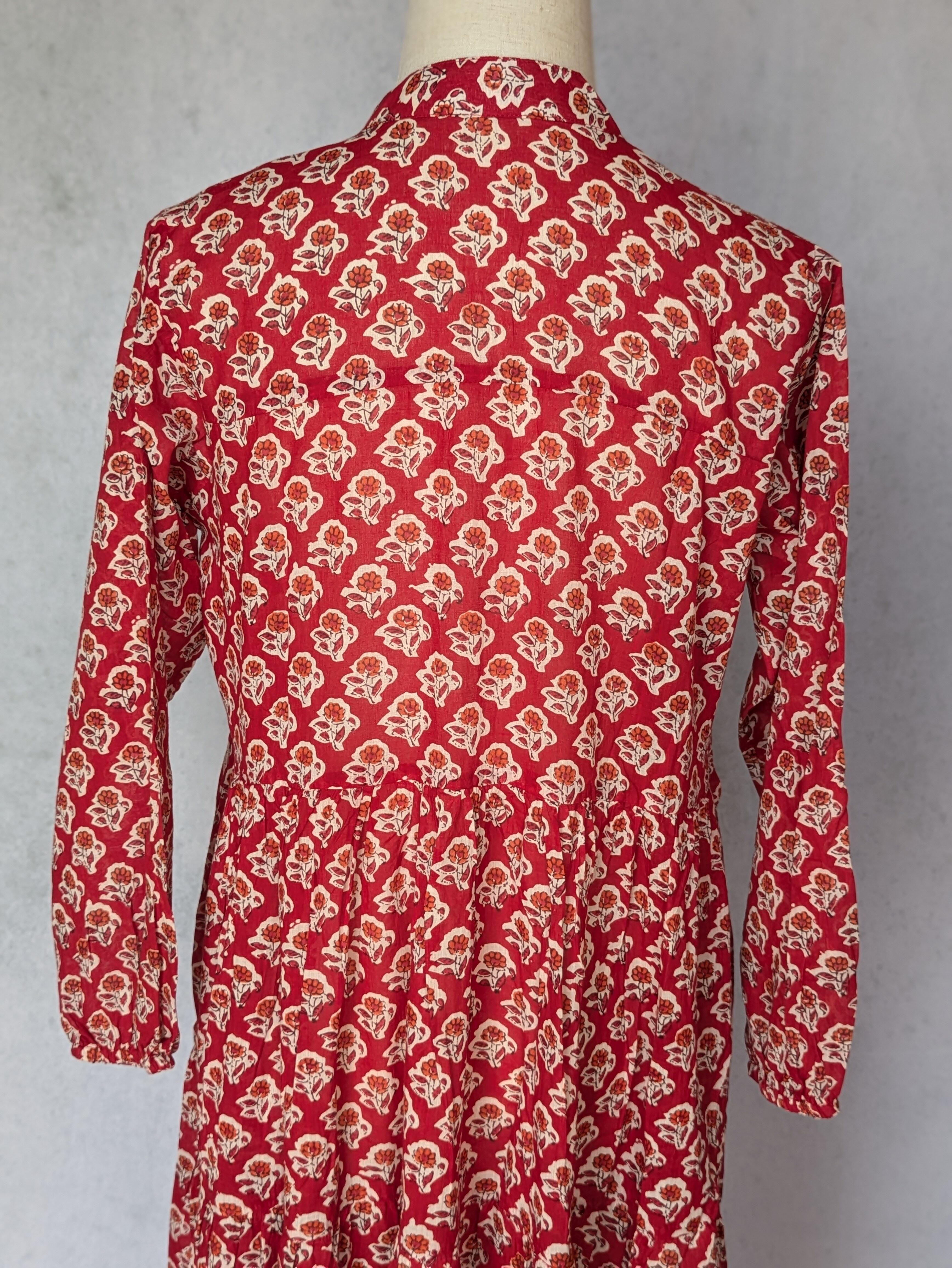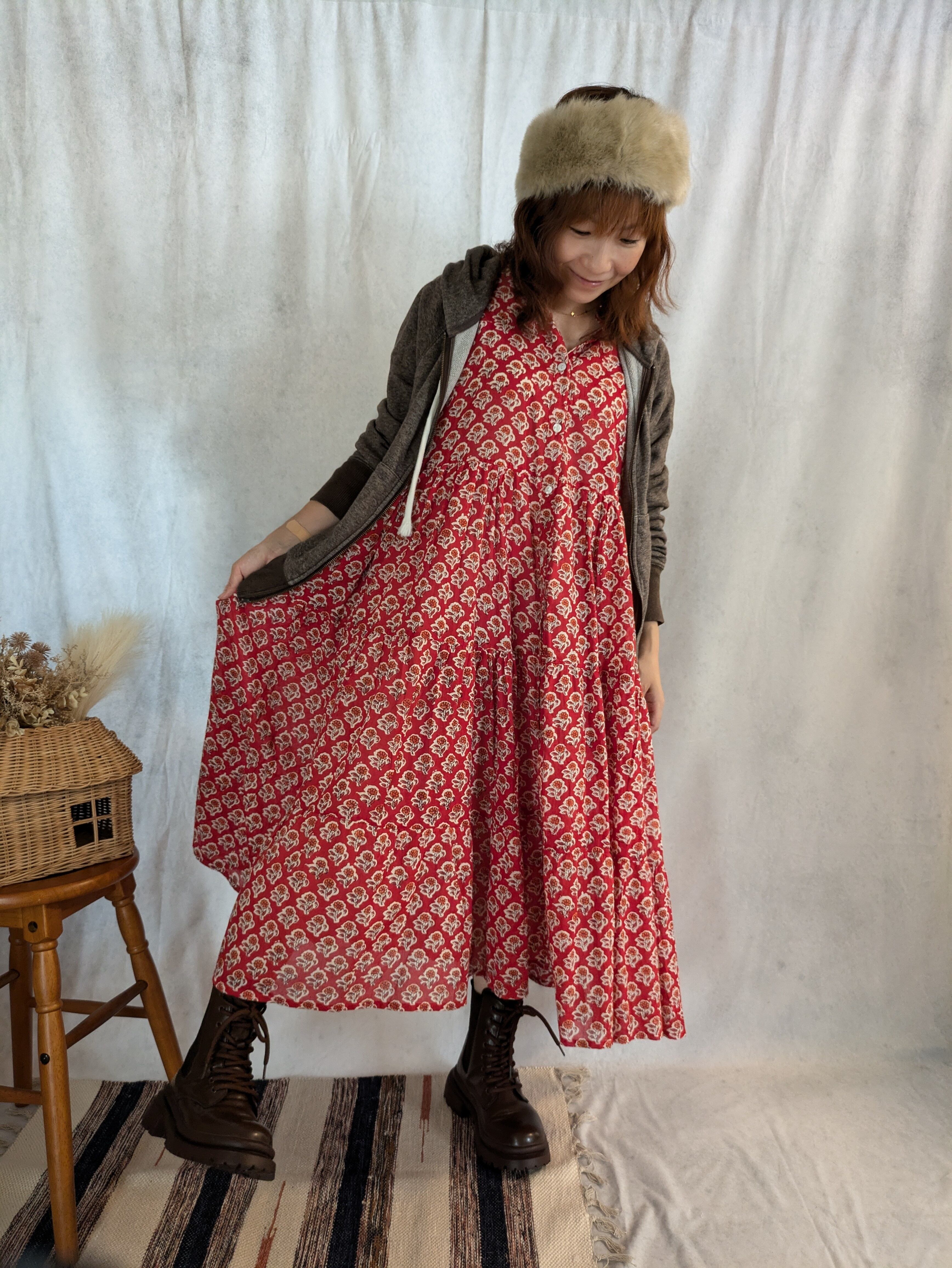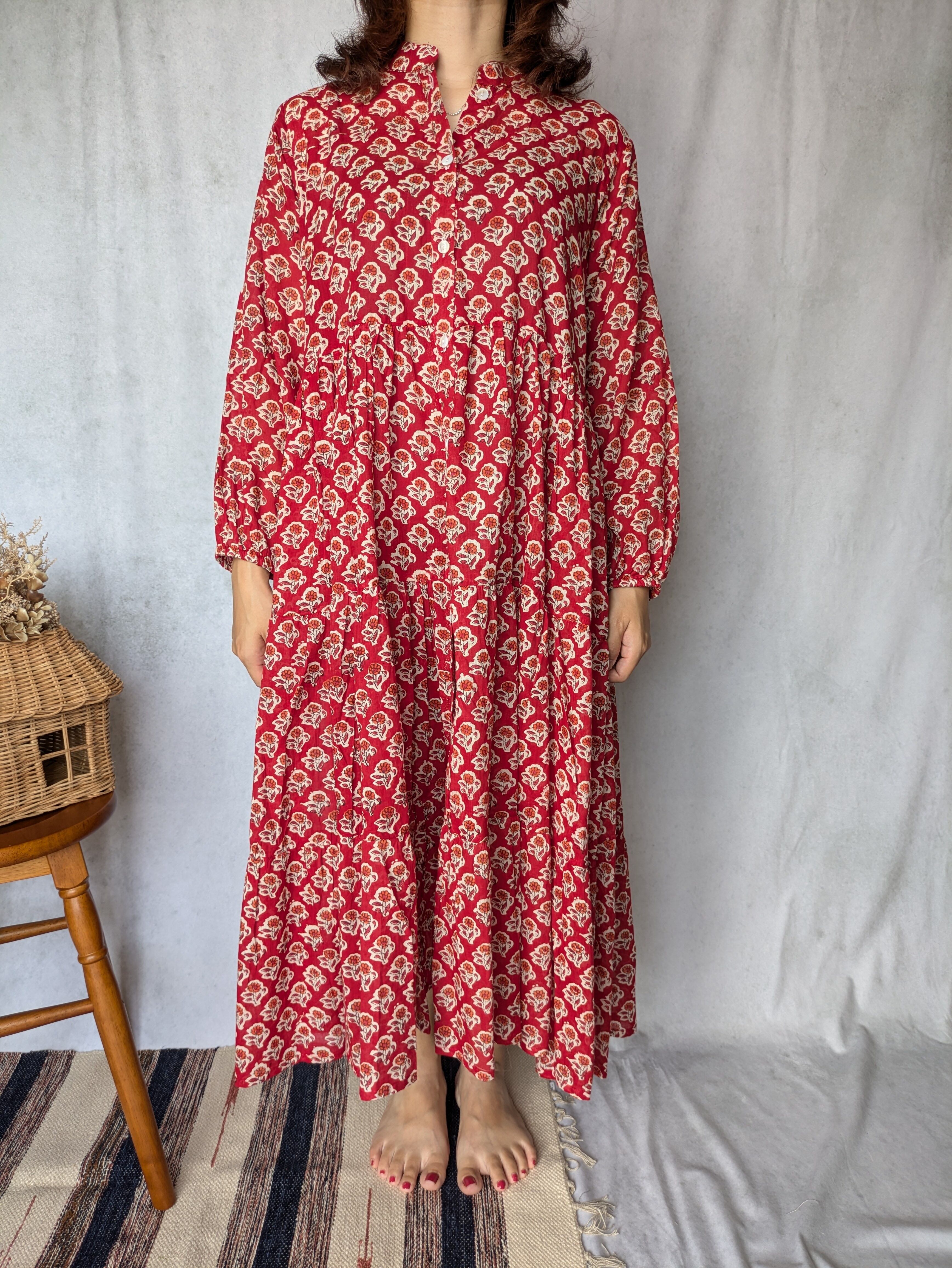 こちらは、インドの伝統工芸であるハンドブロックプリントで作られたワンピースです。
