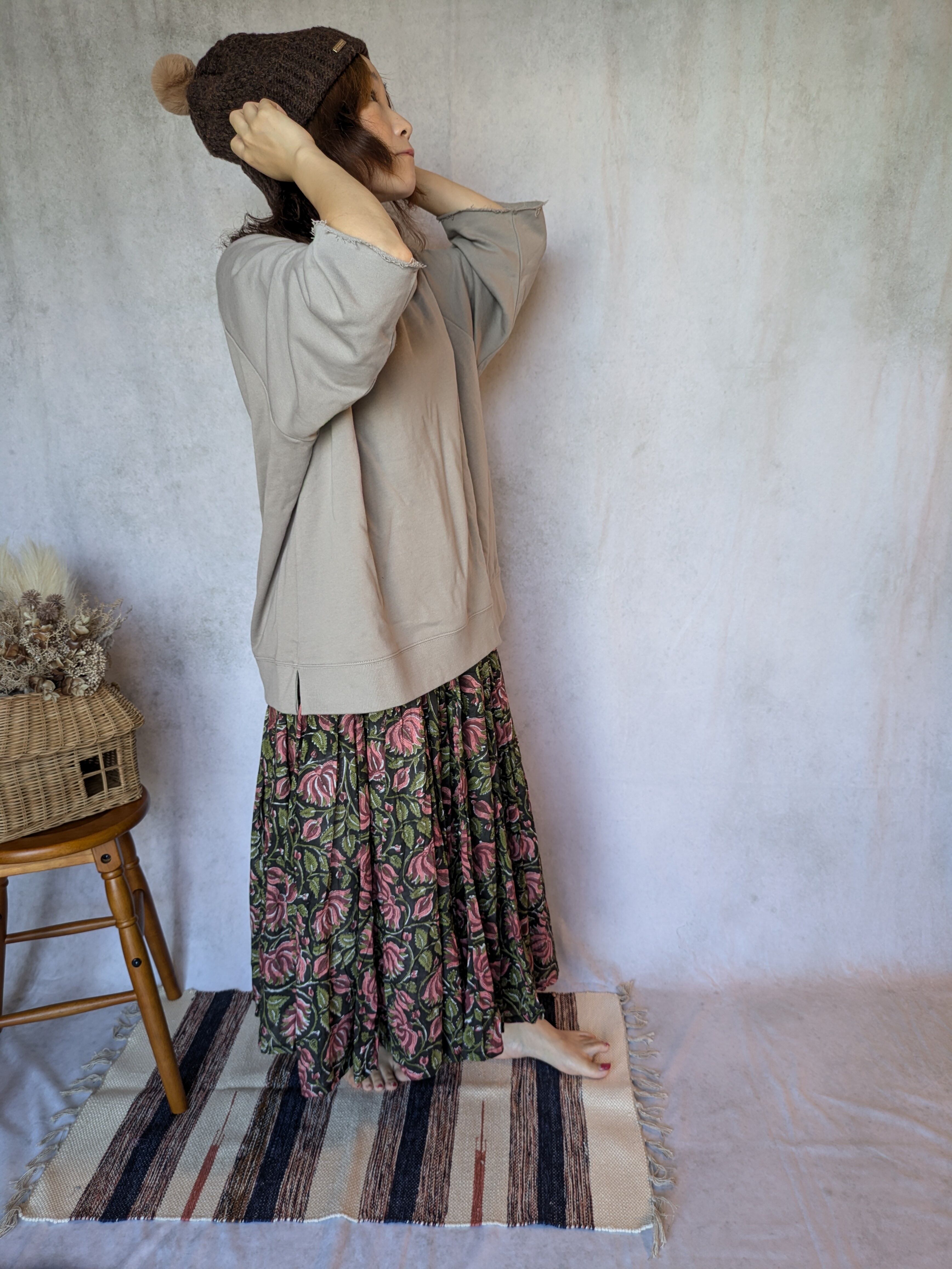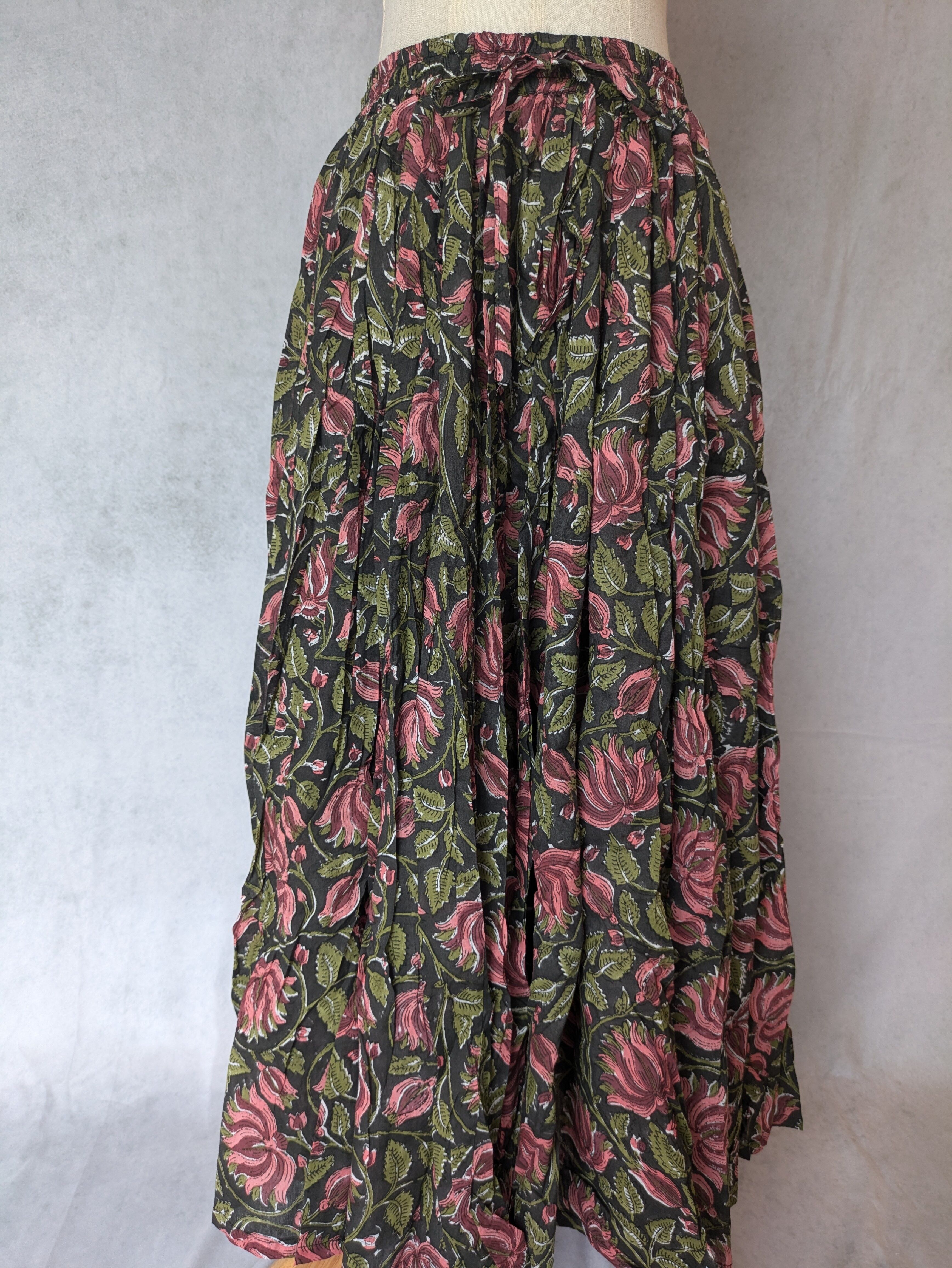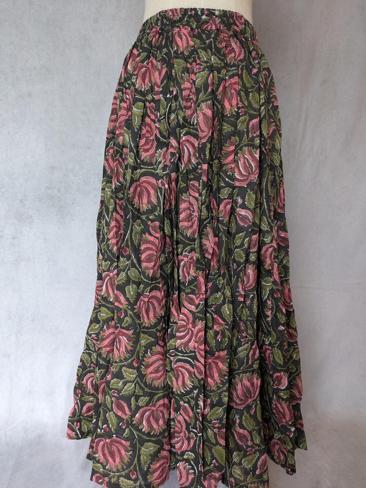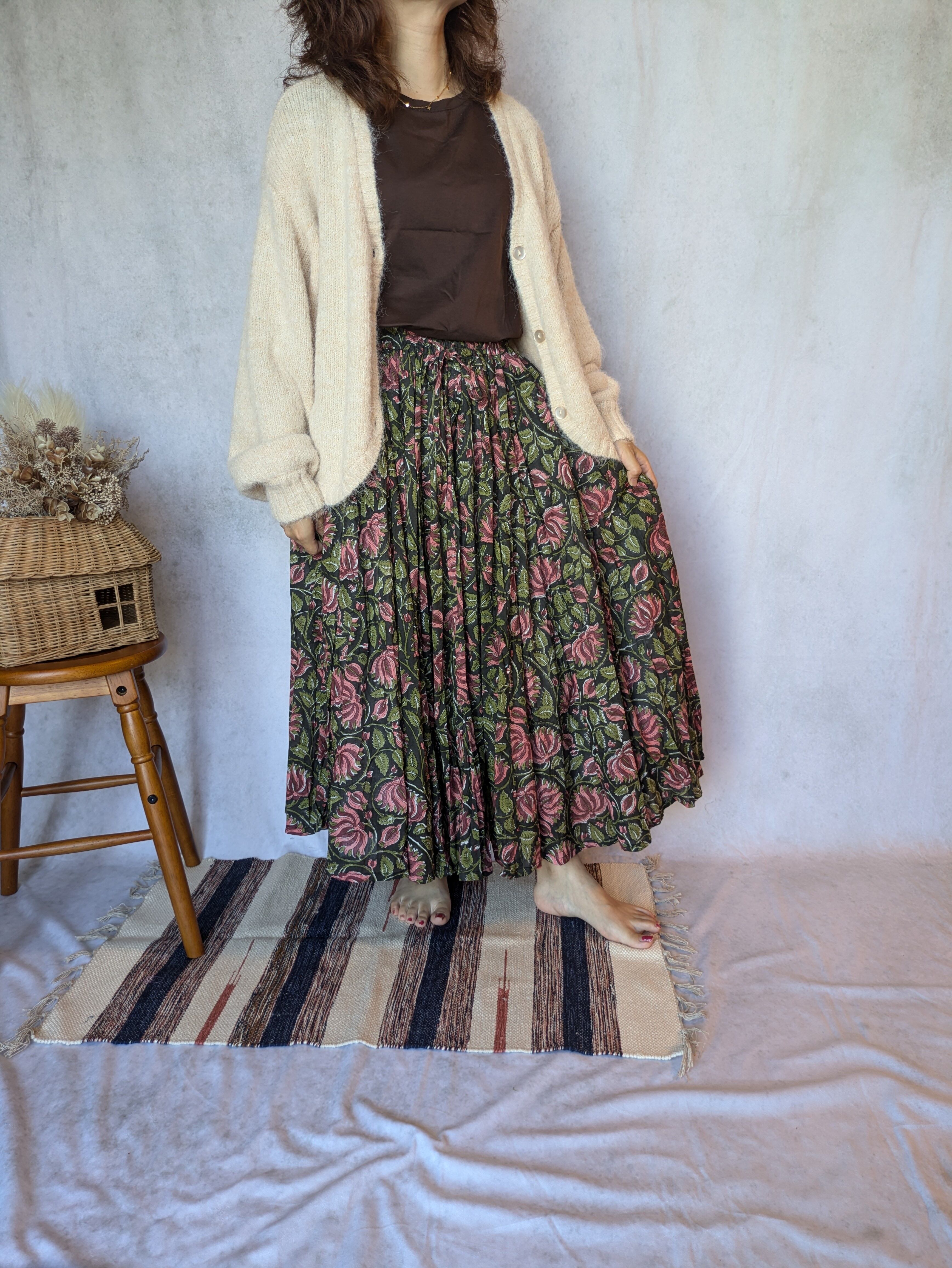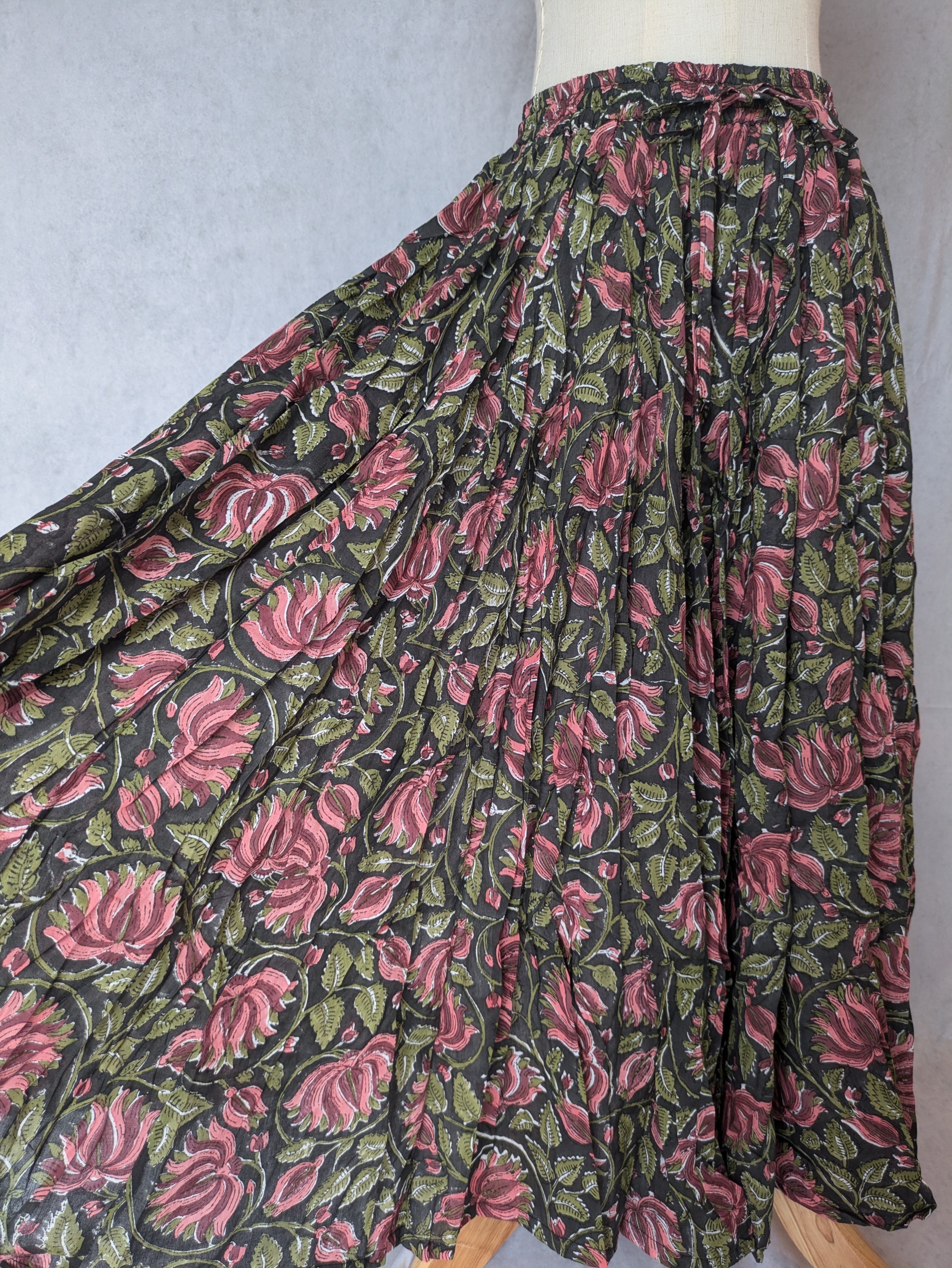 こちらは、インドの伝統工芸であるハンドブロックプリントで作られたスカートです。