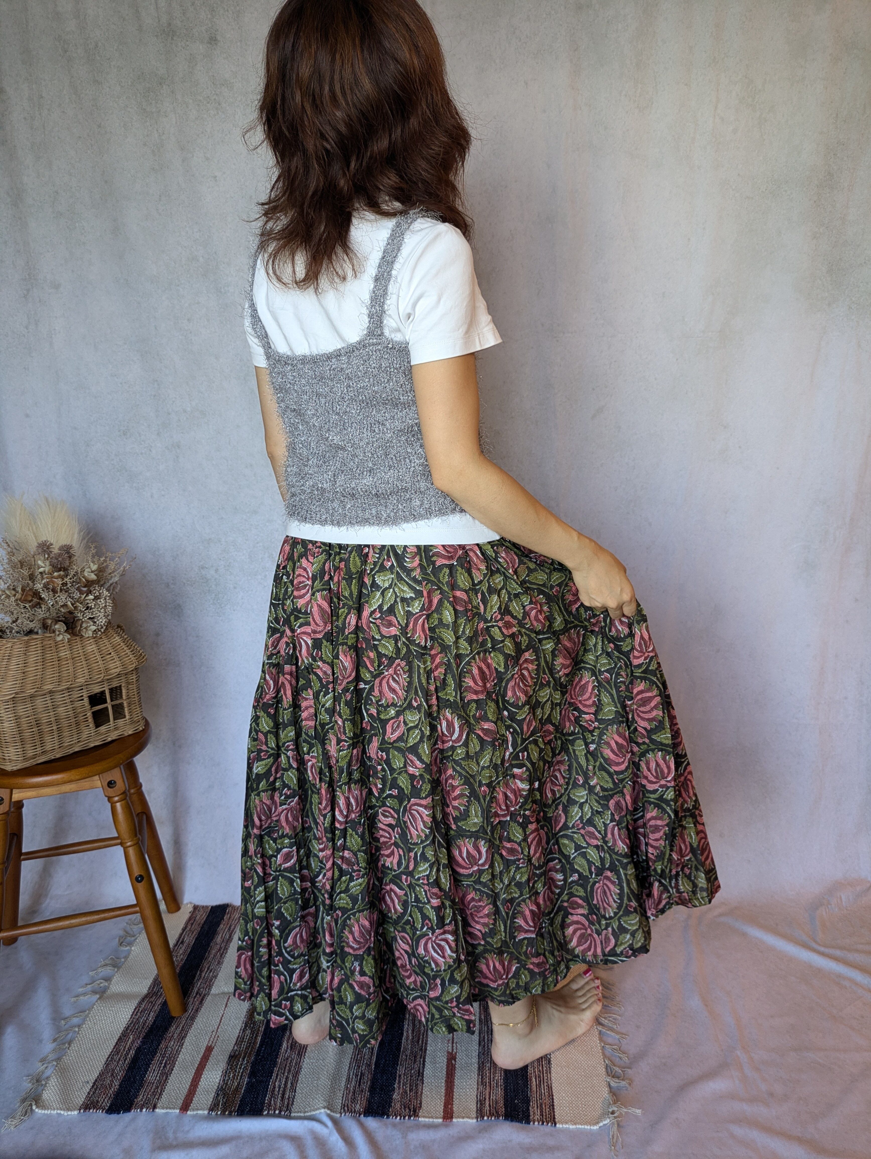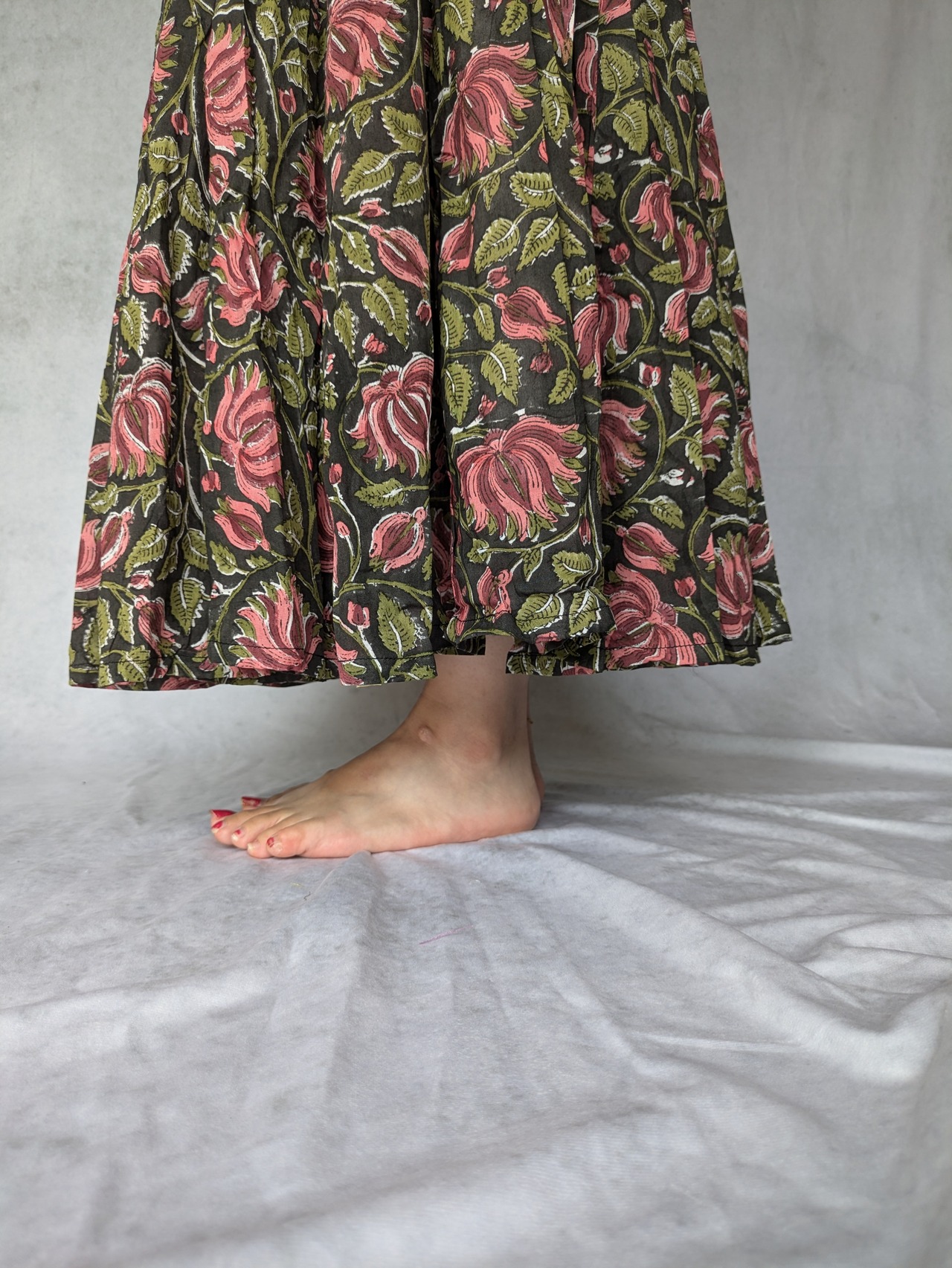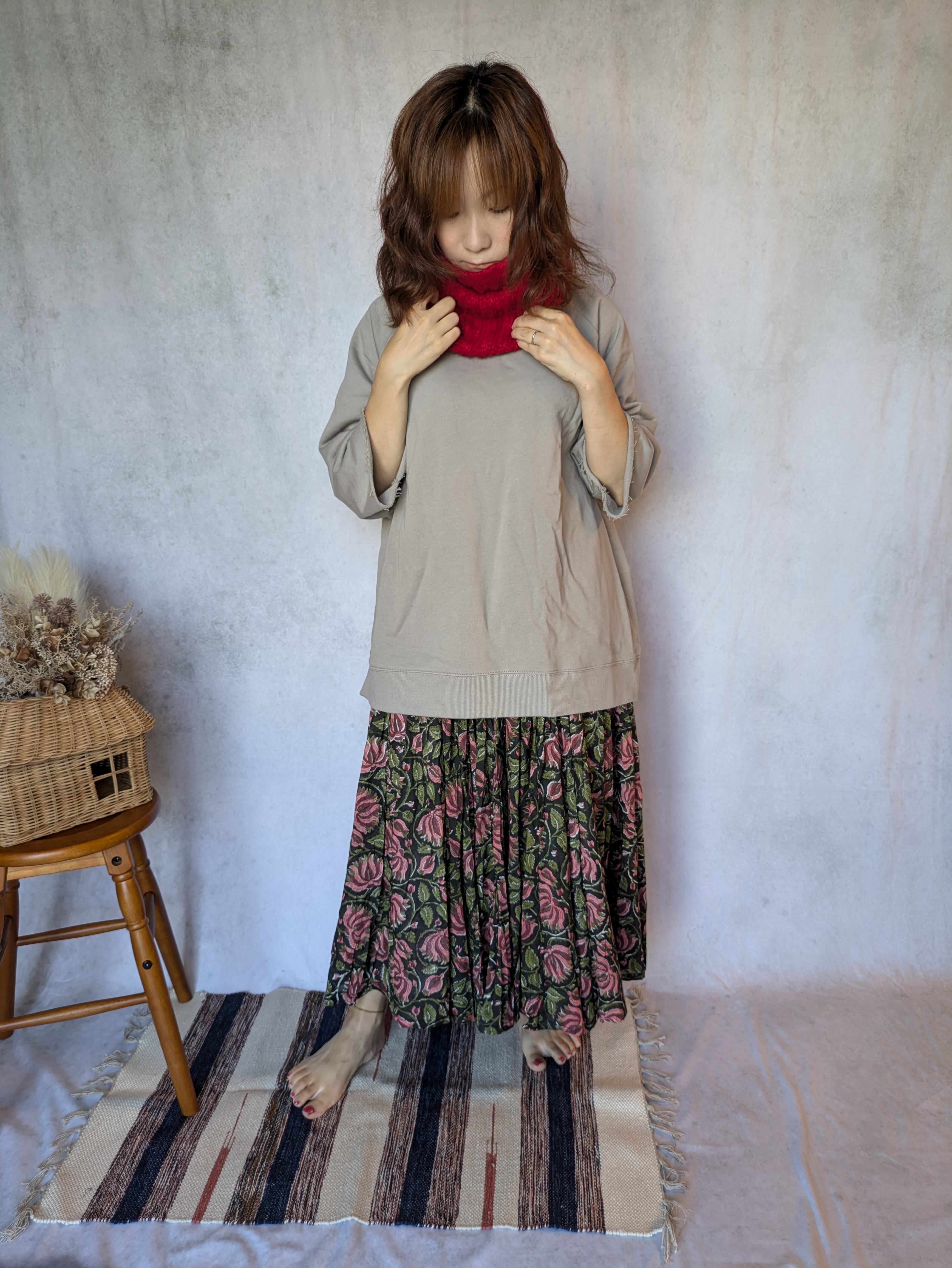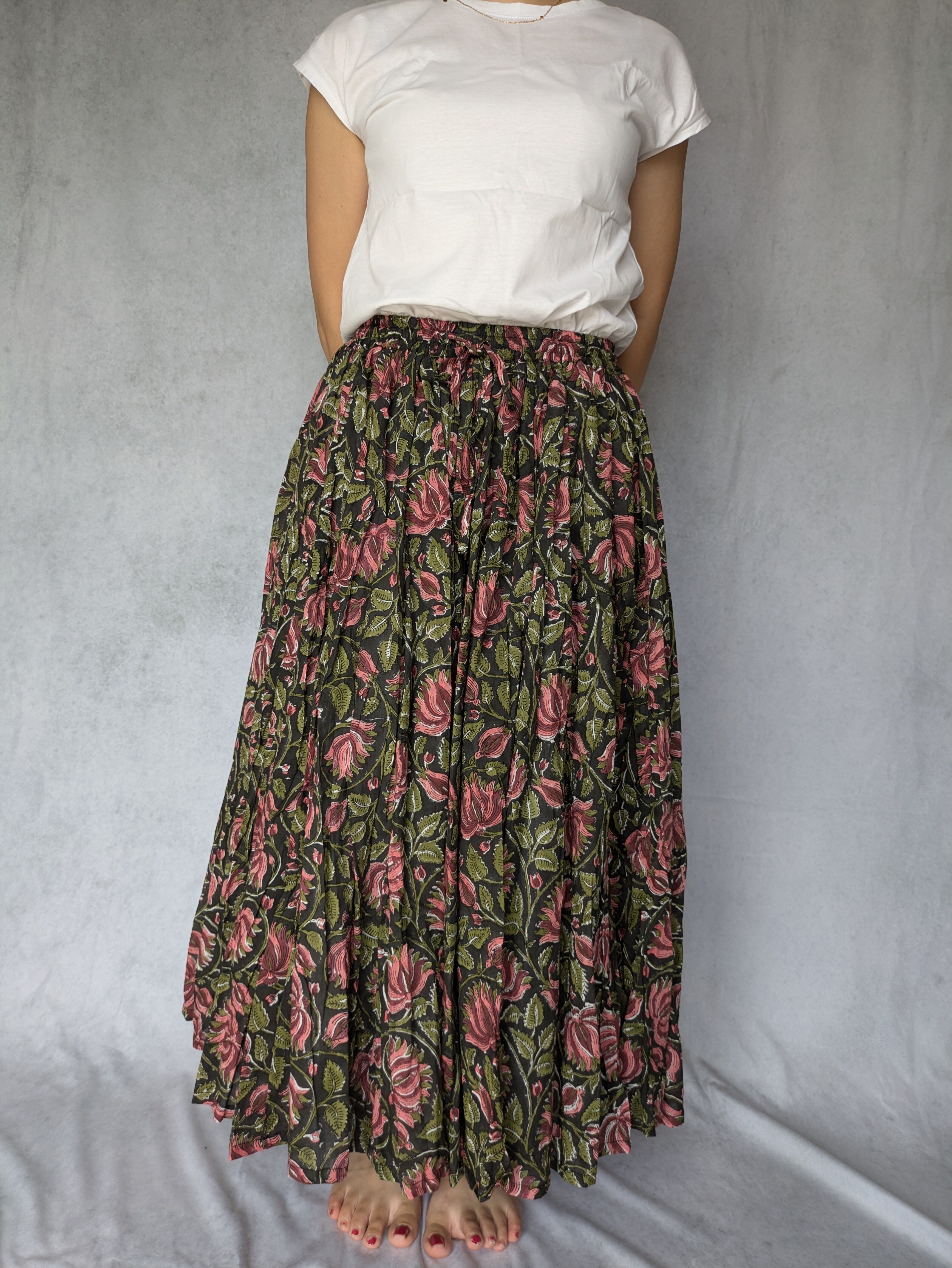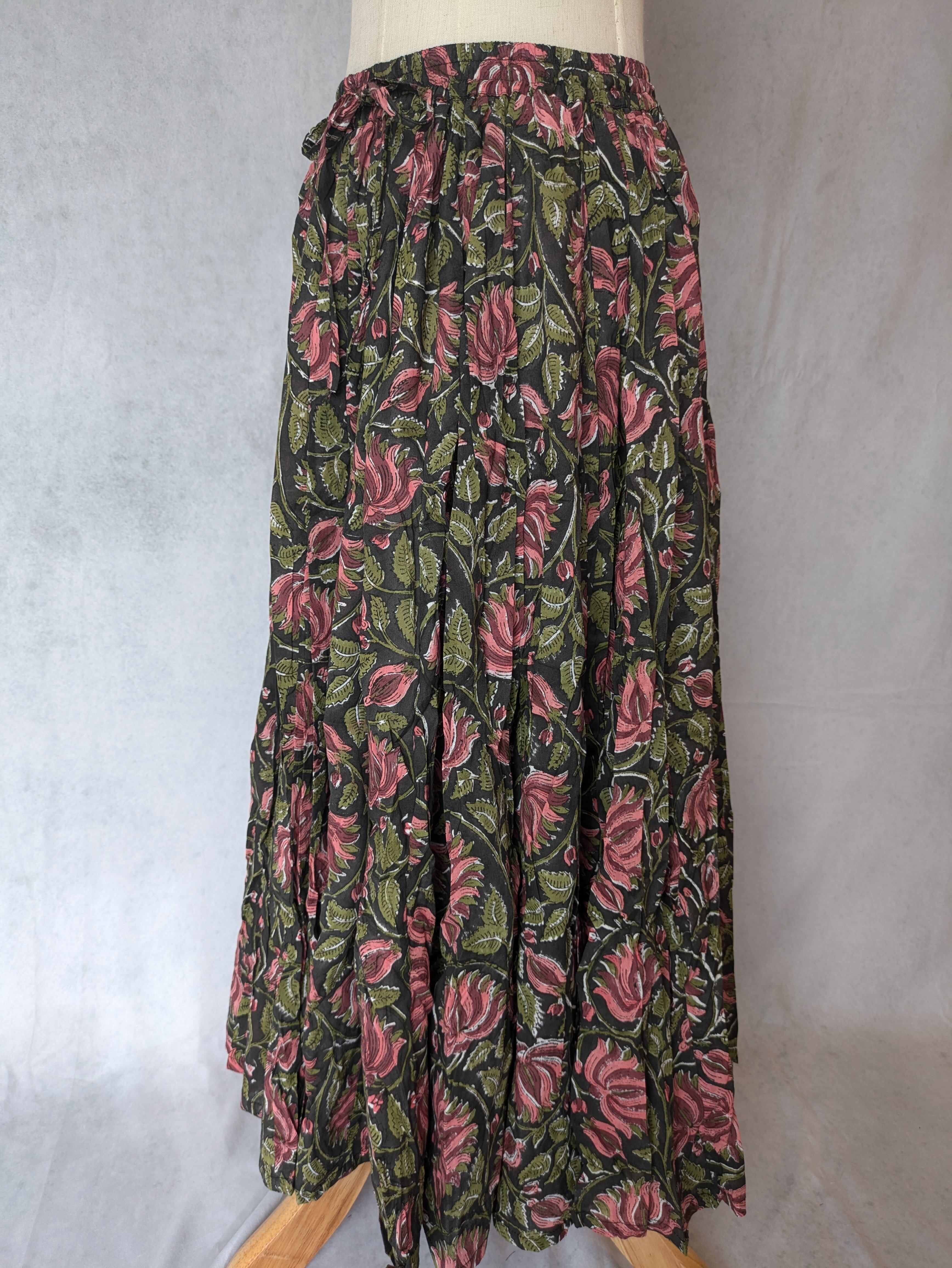こちらは、インドの伝統工芸であるハンドブロックプリントで作られたスカートです。