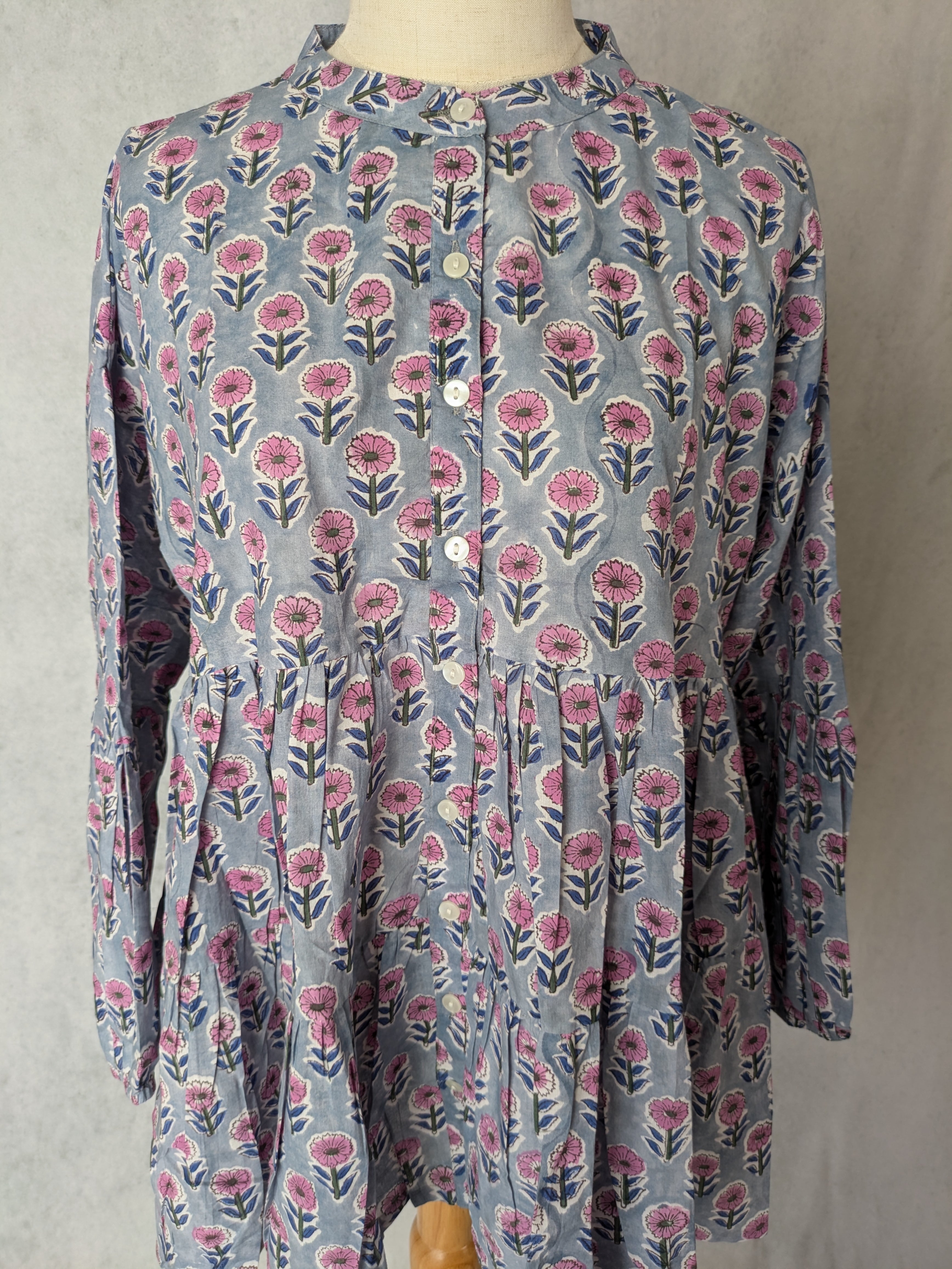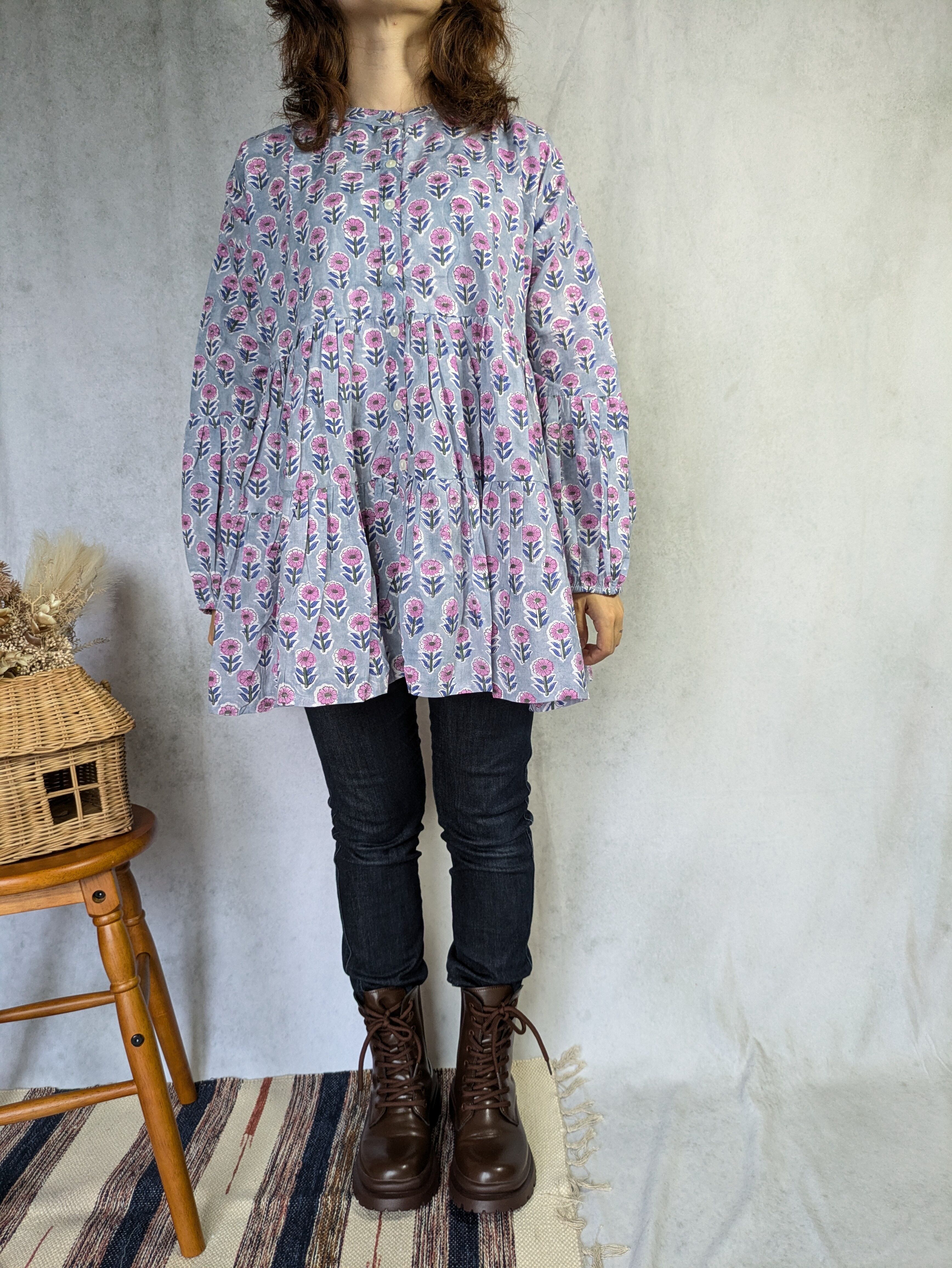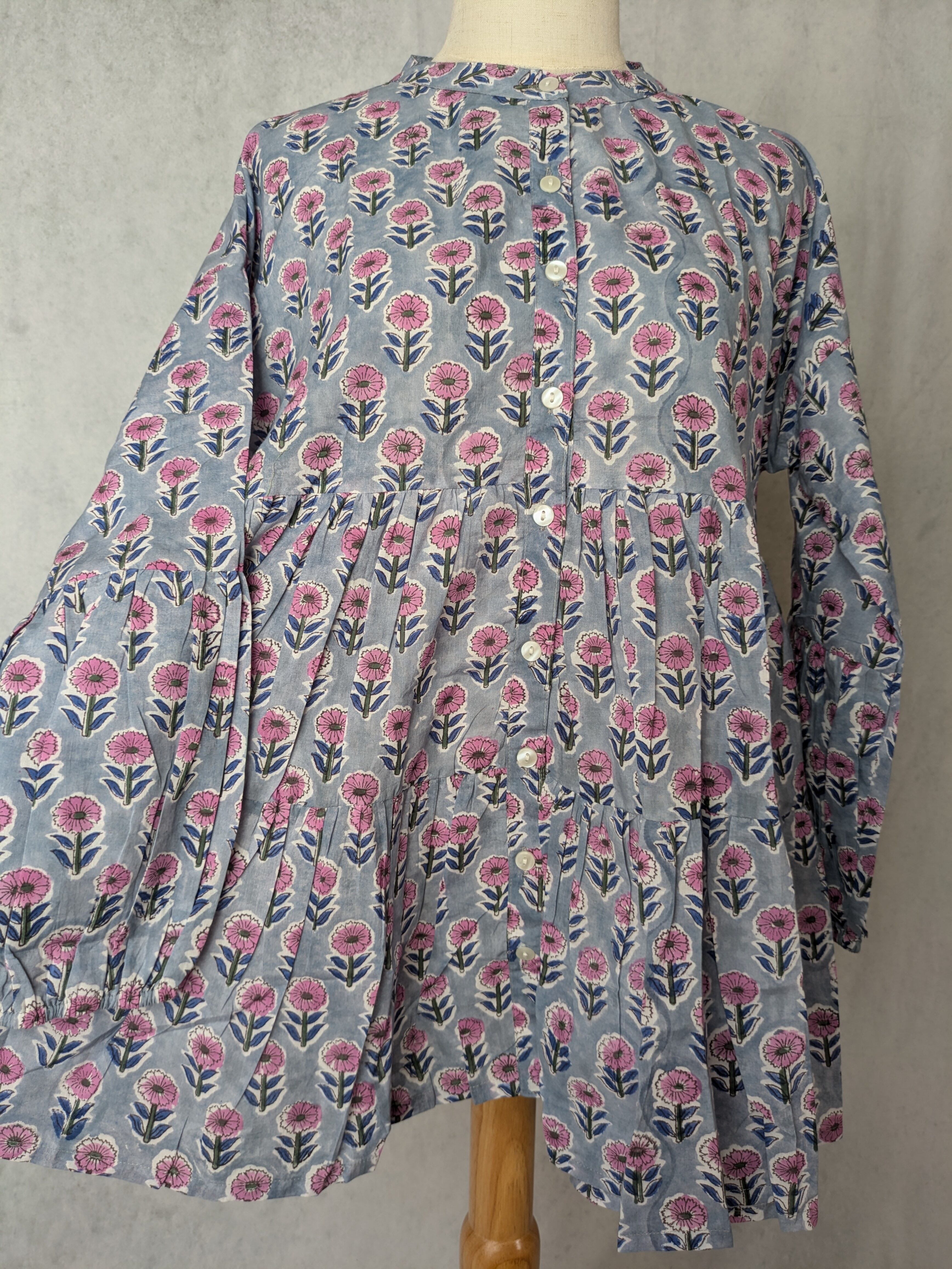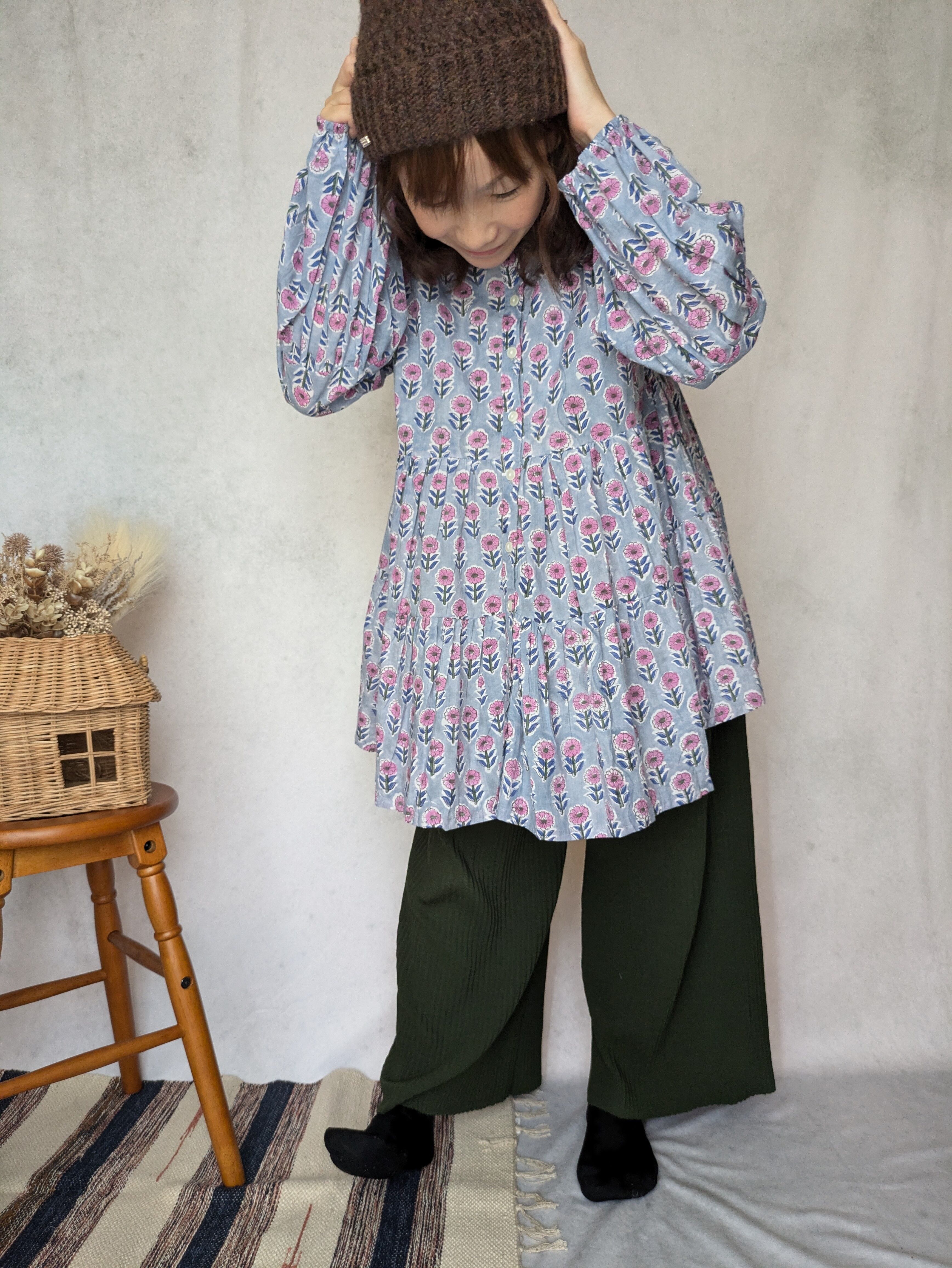 【低身長向け】シャツブラウス ブロックプリント
