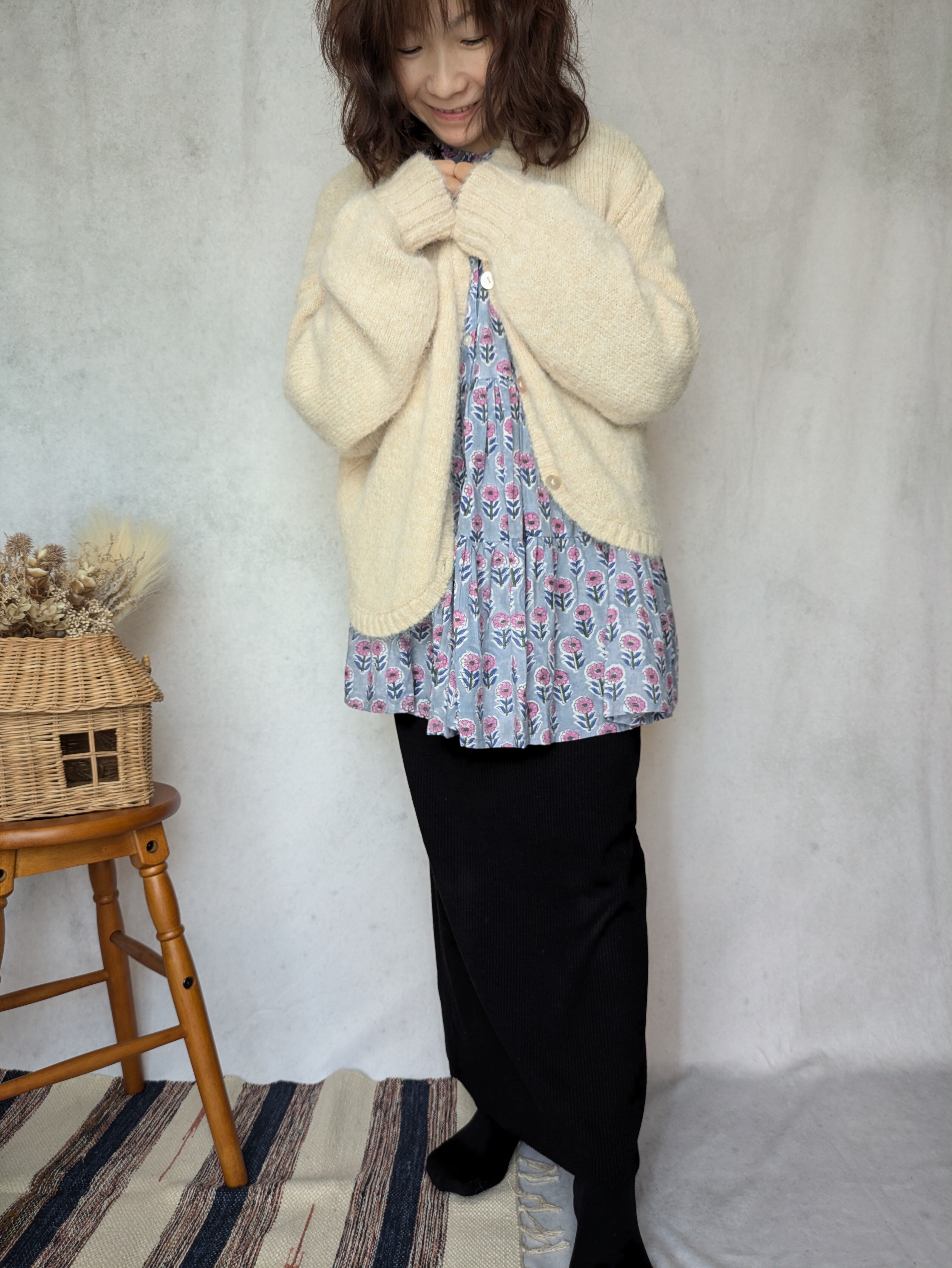 カーディガンを着たり、ニットを重ね着したり、