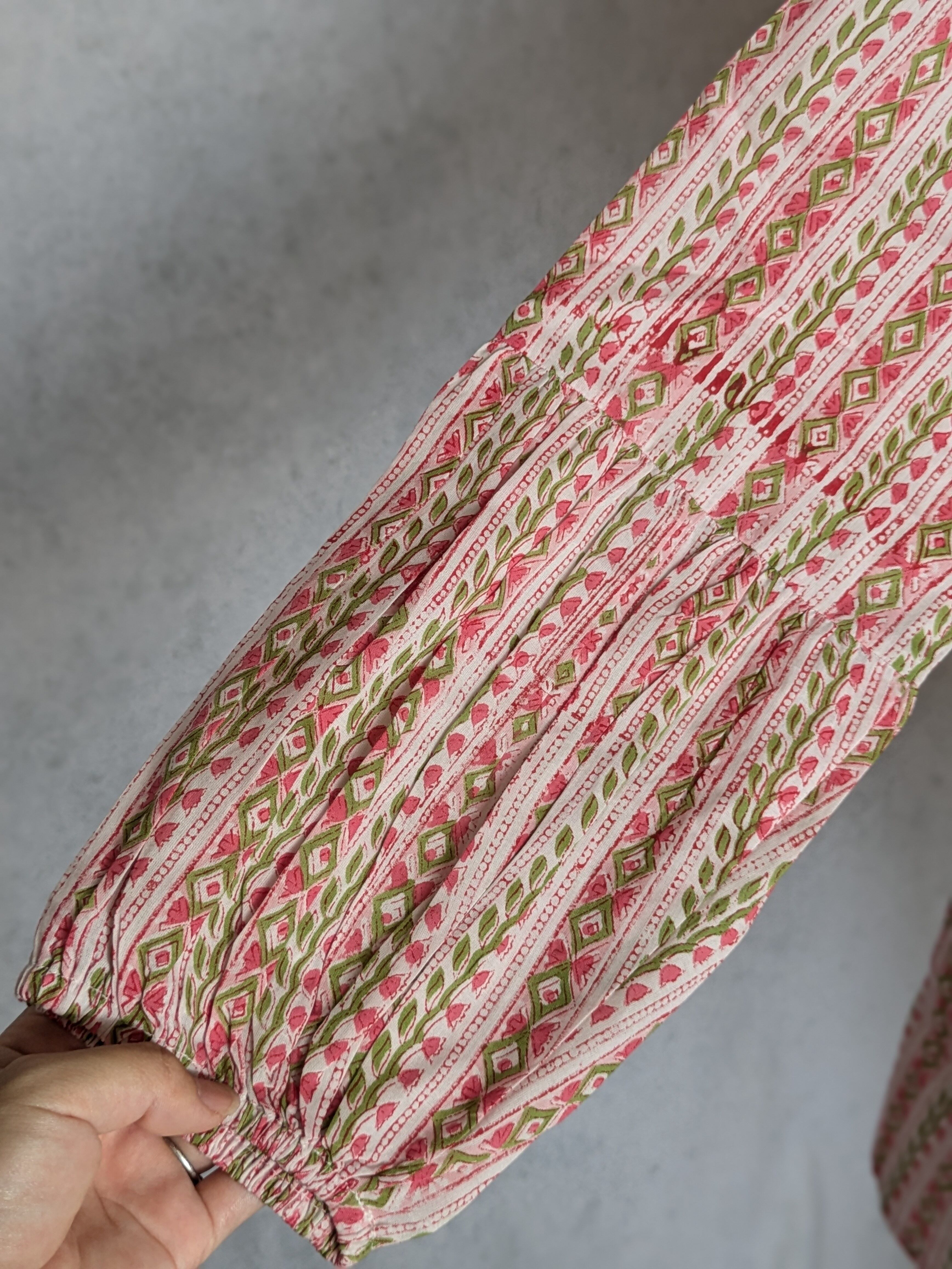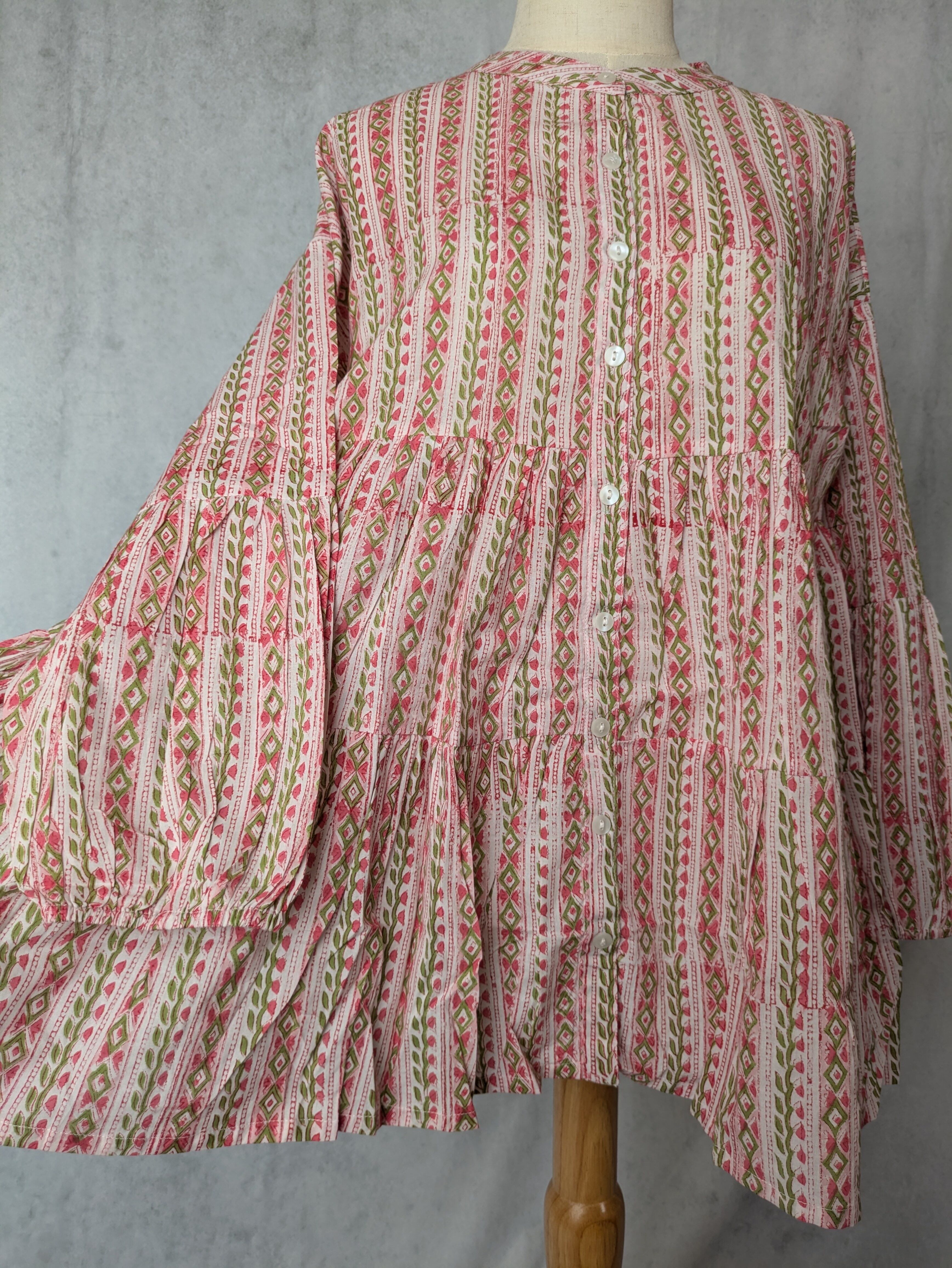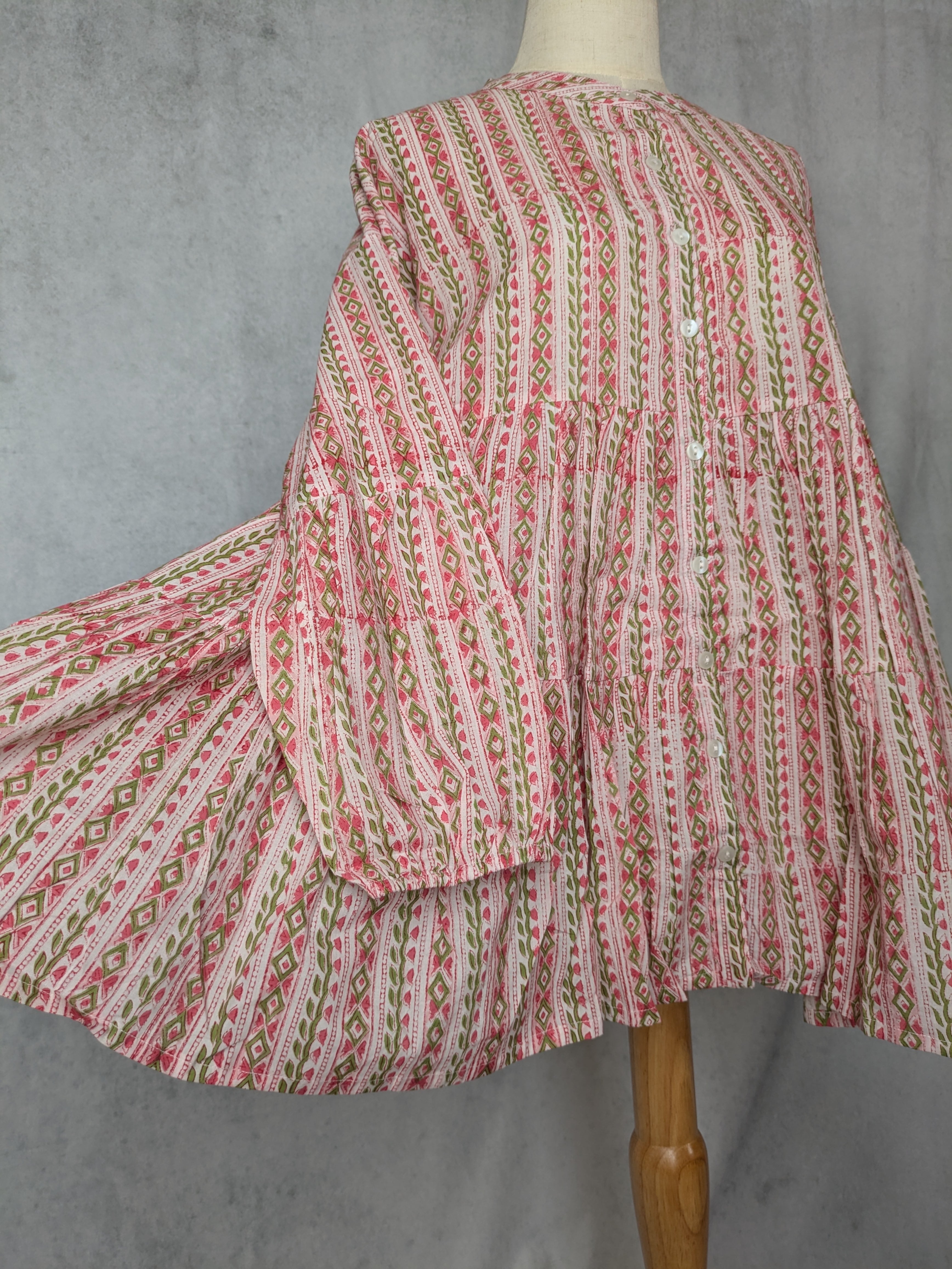こちらは、インドの伝統工芸であるハンドブロックプリントで作られたスカートです。